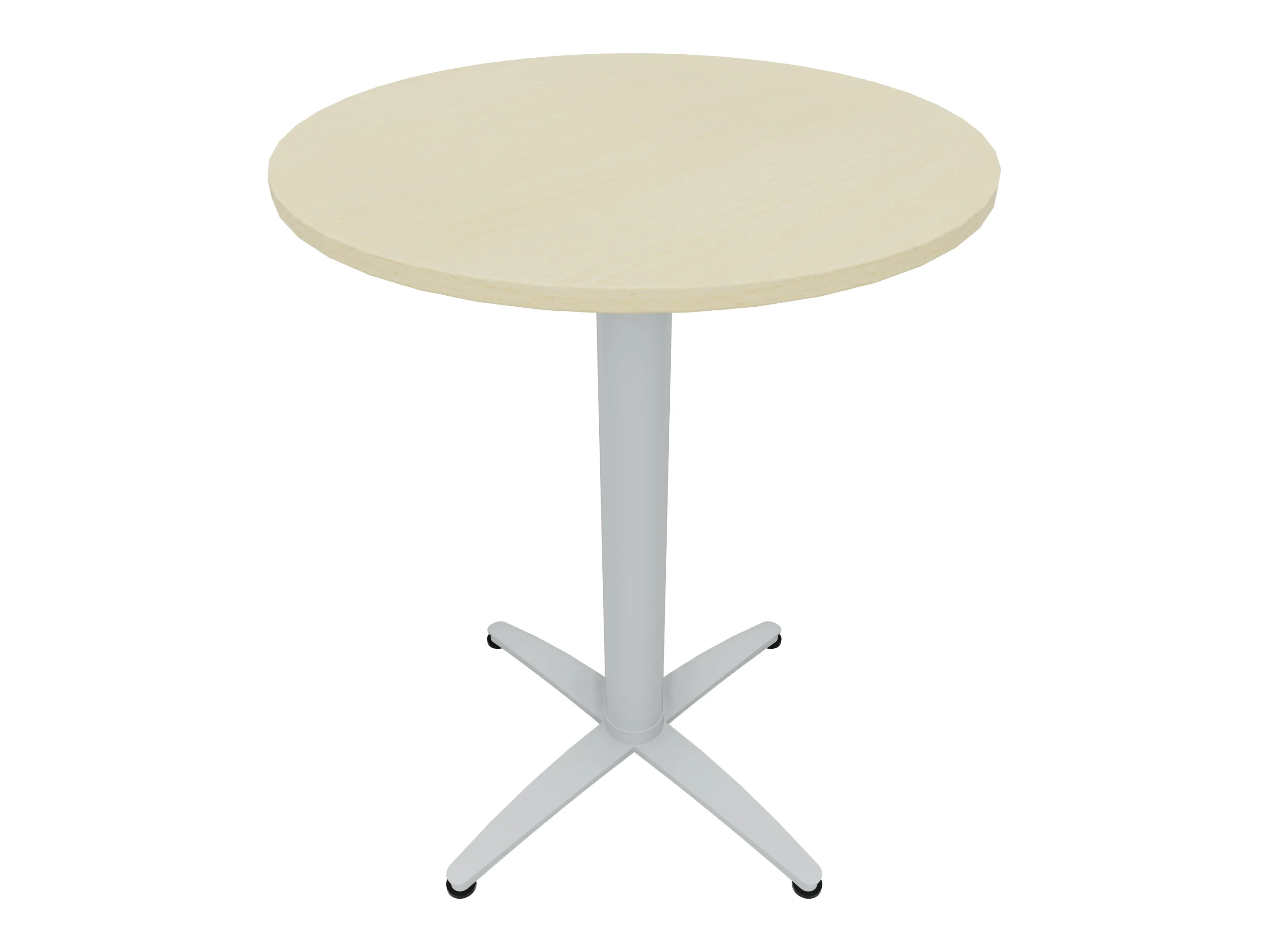 Bijzettafel met een kruisvoet op een kolom van Ø80mm, vierkant blad in de diameter Ø800mm en een hoogte van 1050mm.