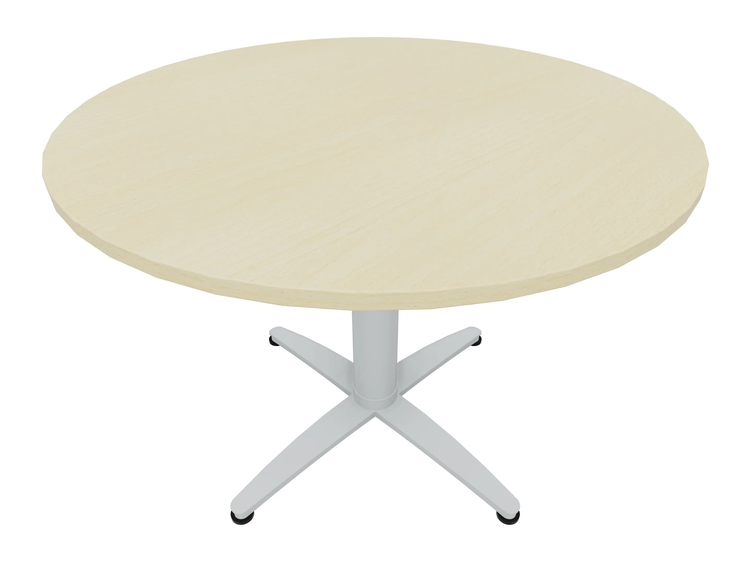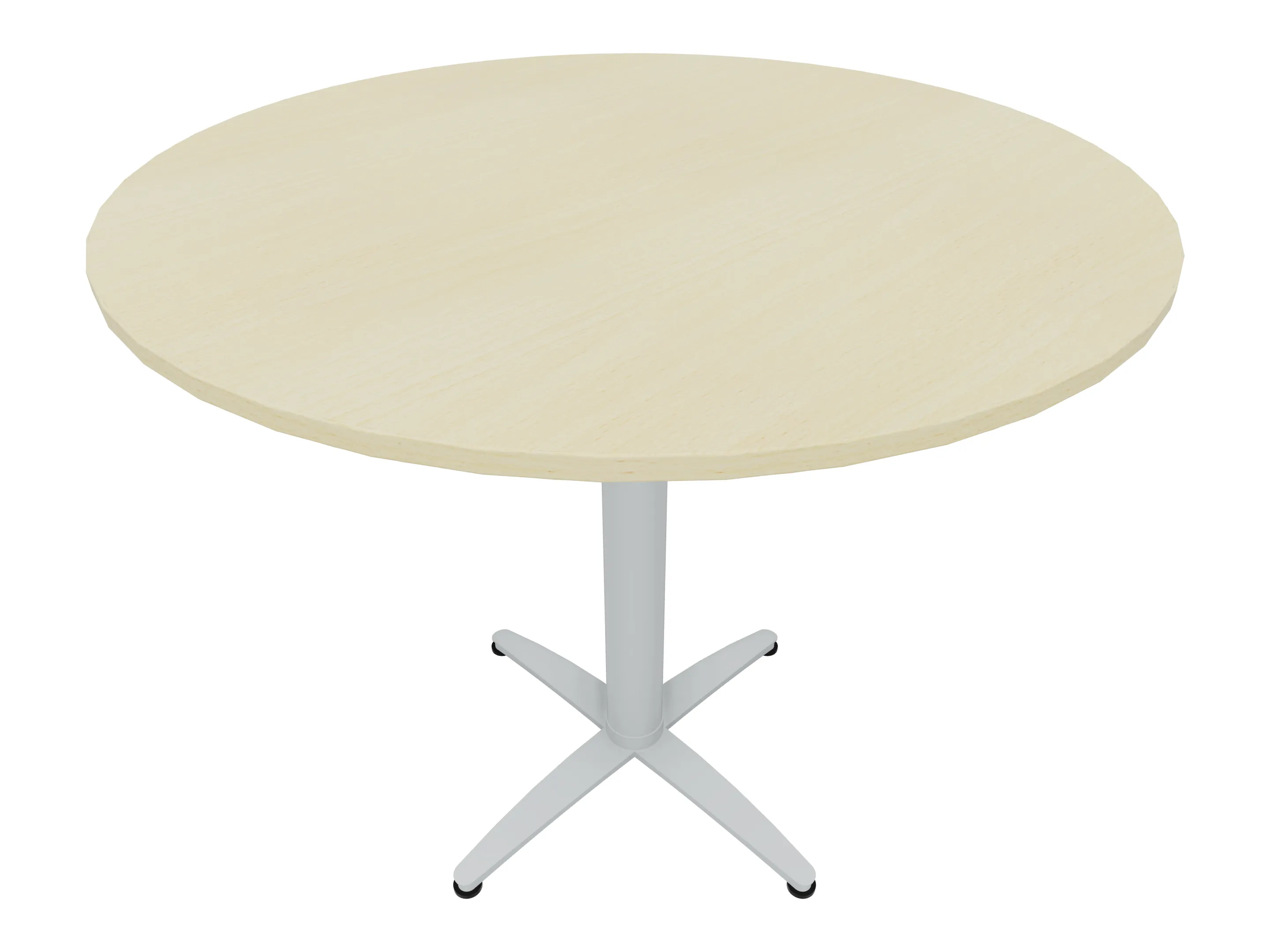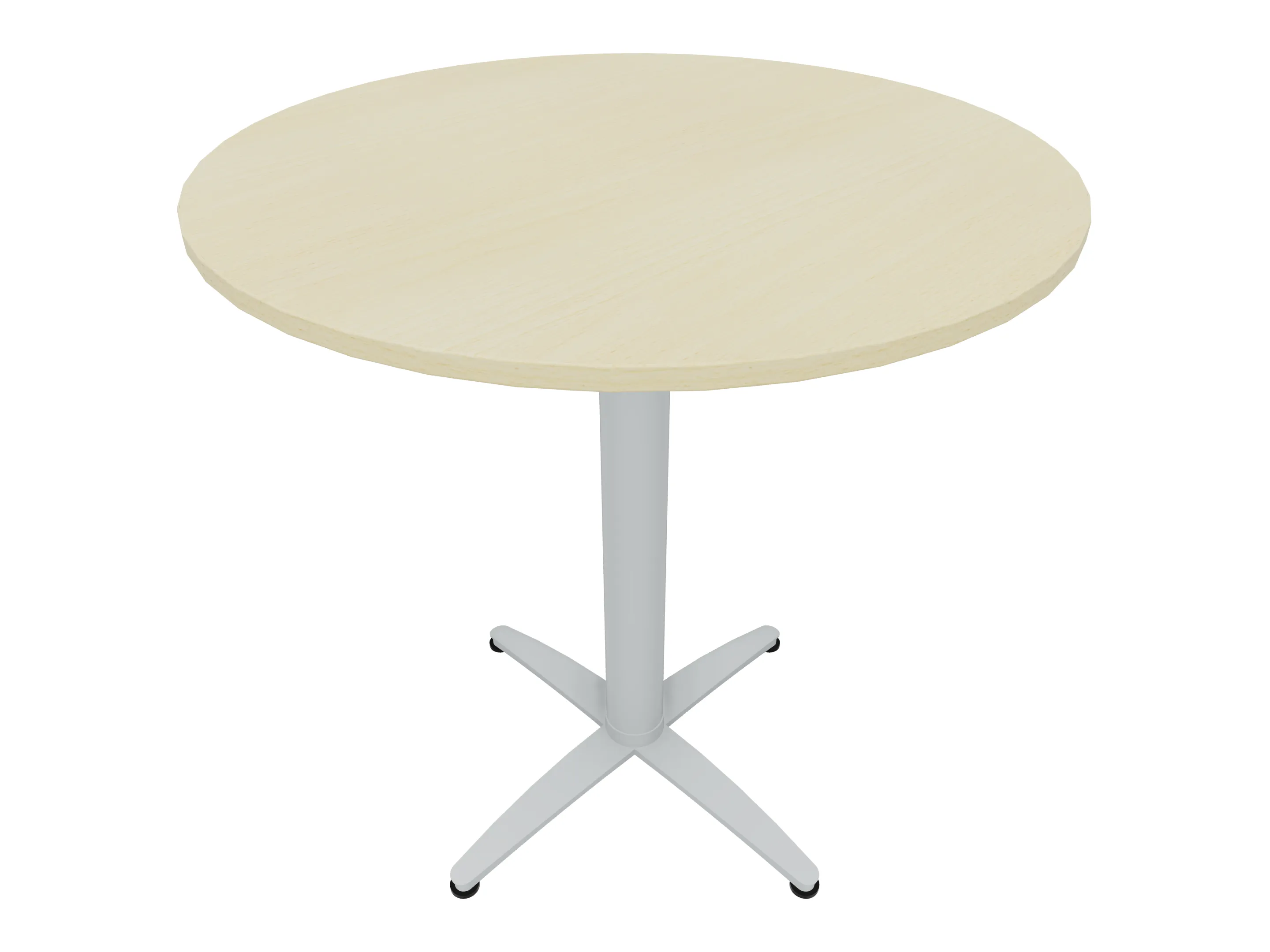 Bijzettafel met een kruisvoet op een kolom van Ø80mm, vierkant blad in de diameter Ø1200mm en een hoogte van 1050mm.