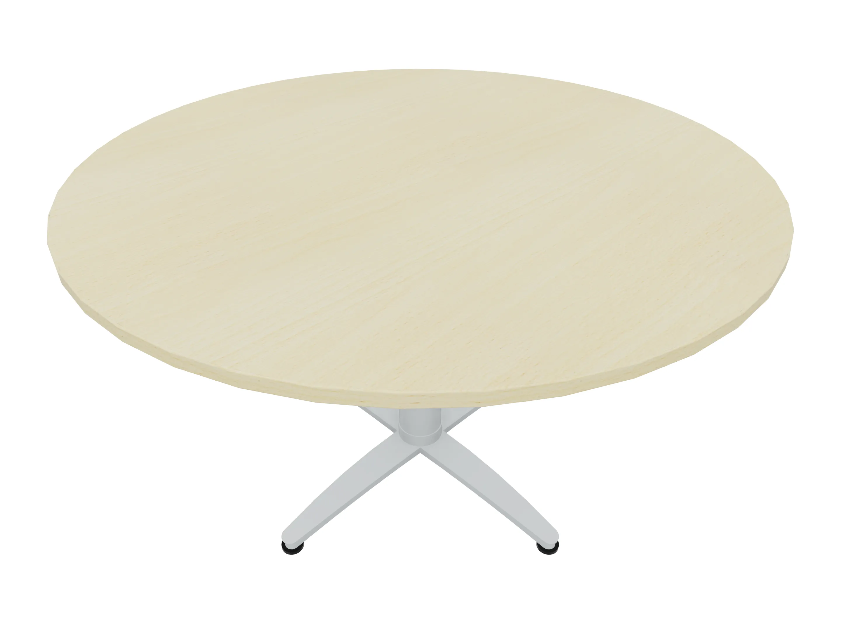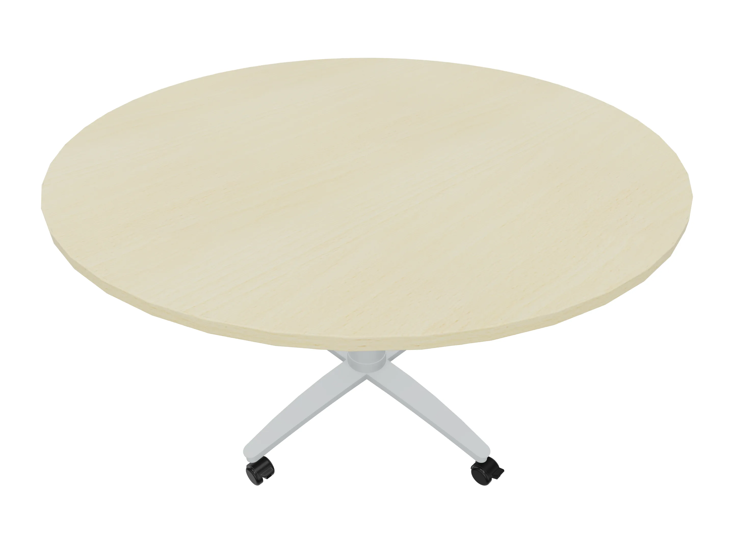 Bijzettafel met een kruisvoet op een kolom van Ø80mm, vierkant blad in de diameter Ø1200mm en een hoogte van 726mm, verrijdbaar.