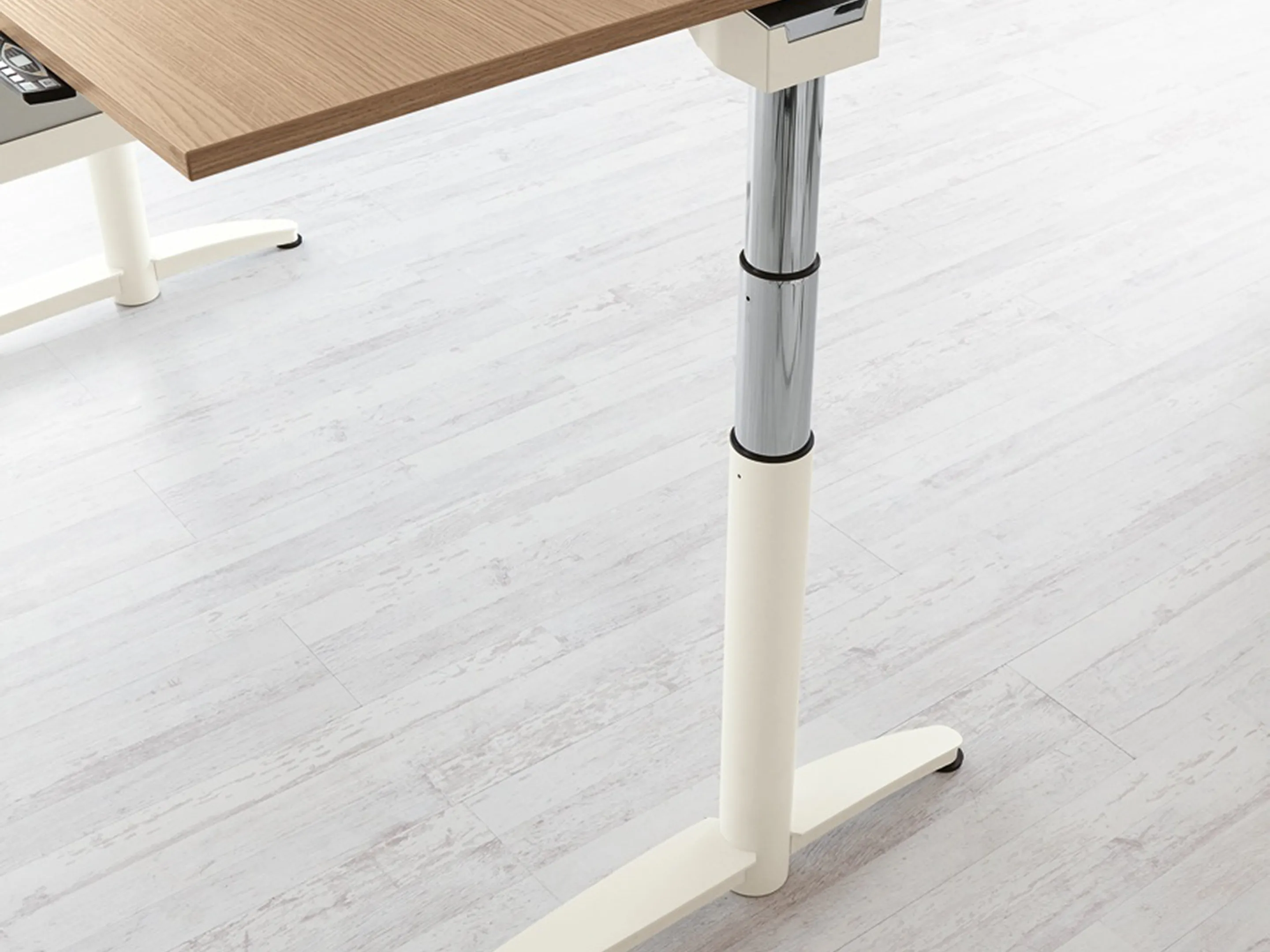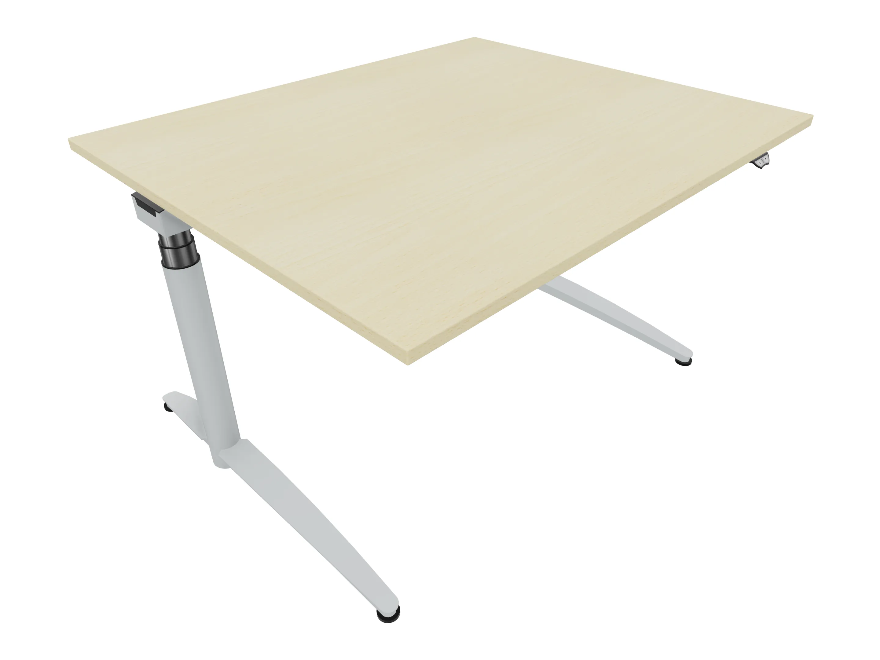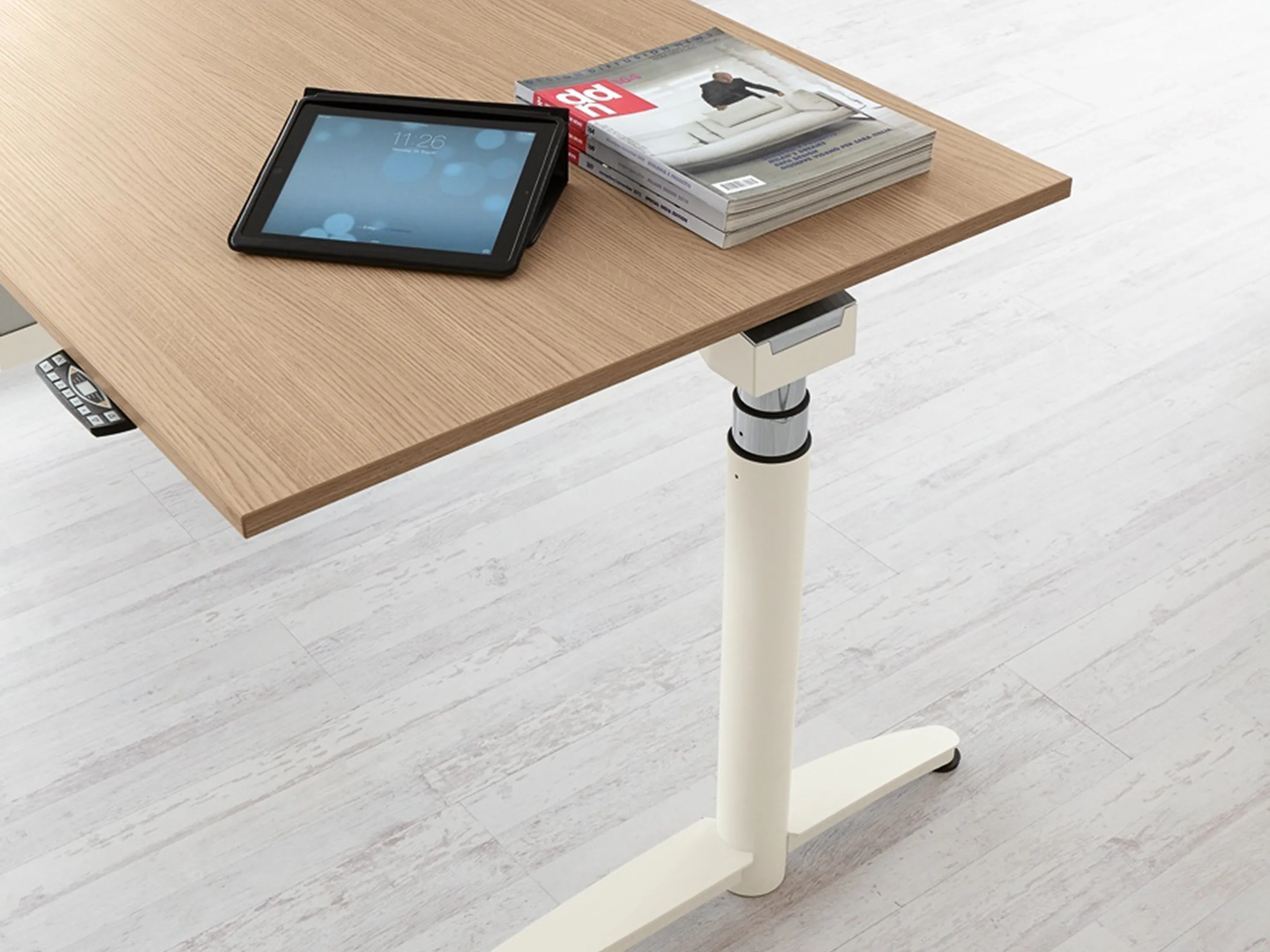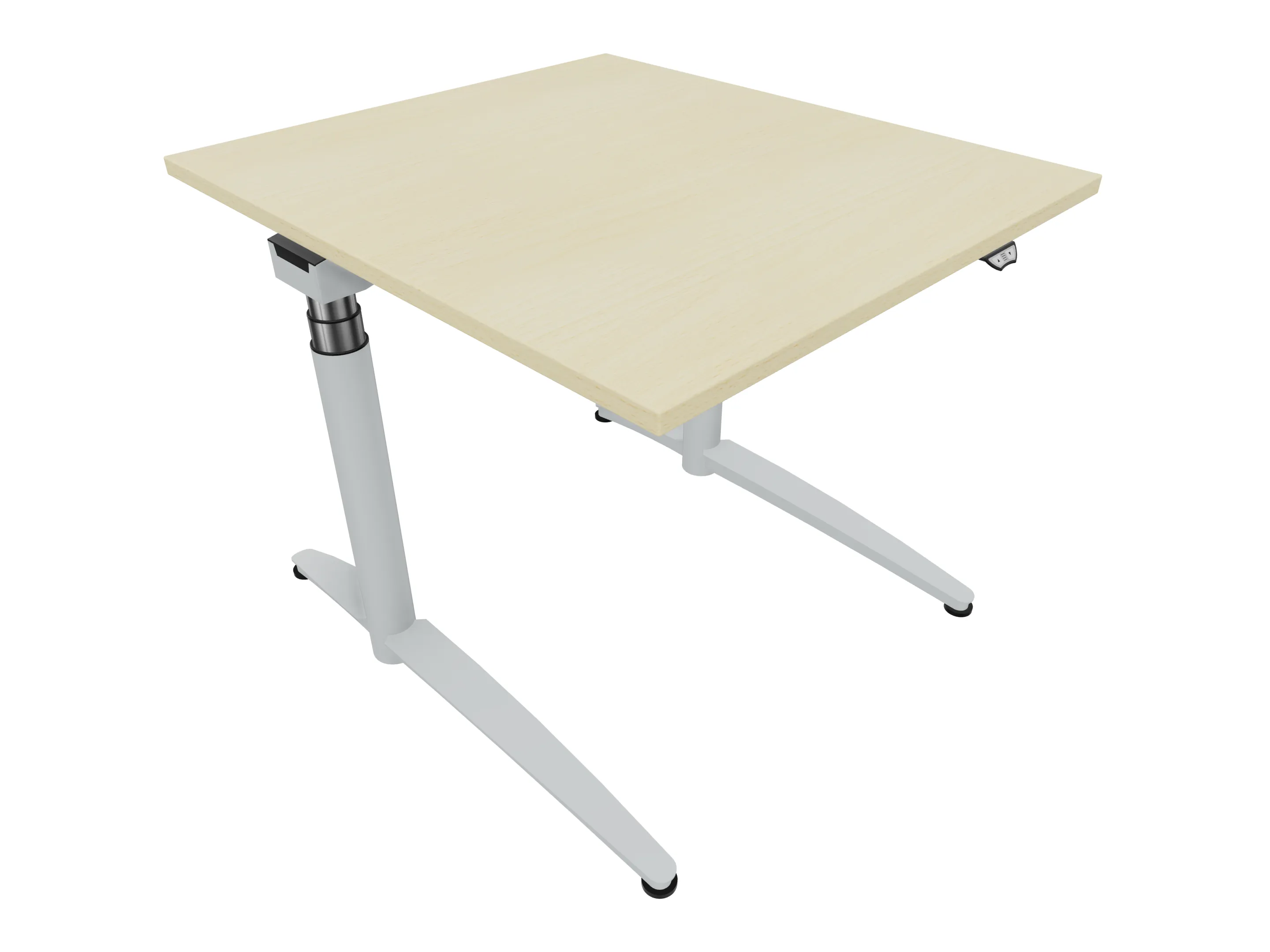 Bureau met twee poten (T-poot, hoogte instelbaar tussen 650-850mm d.m.v. veermechanisme) in de afmeting: 800 x 600mm (BxD)