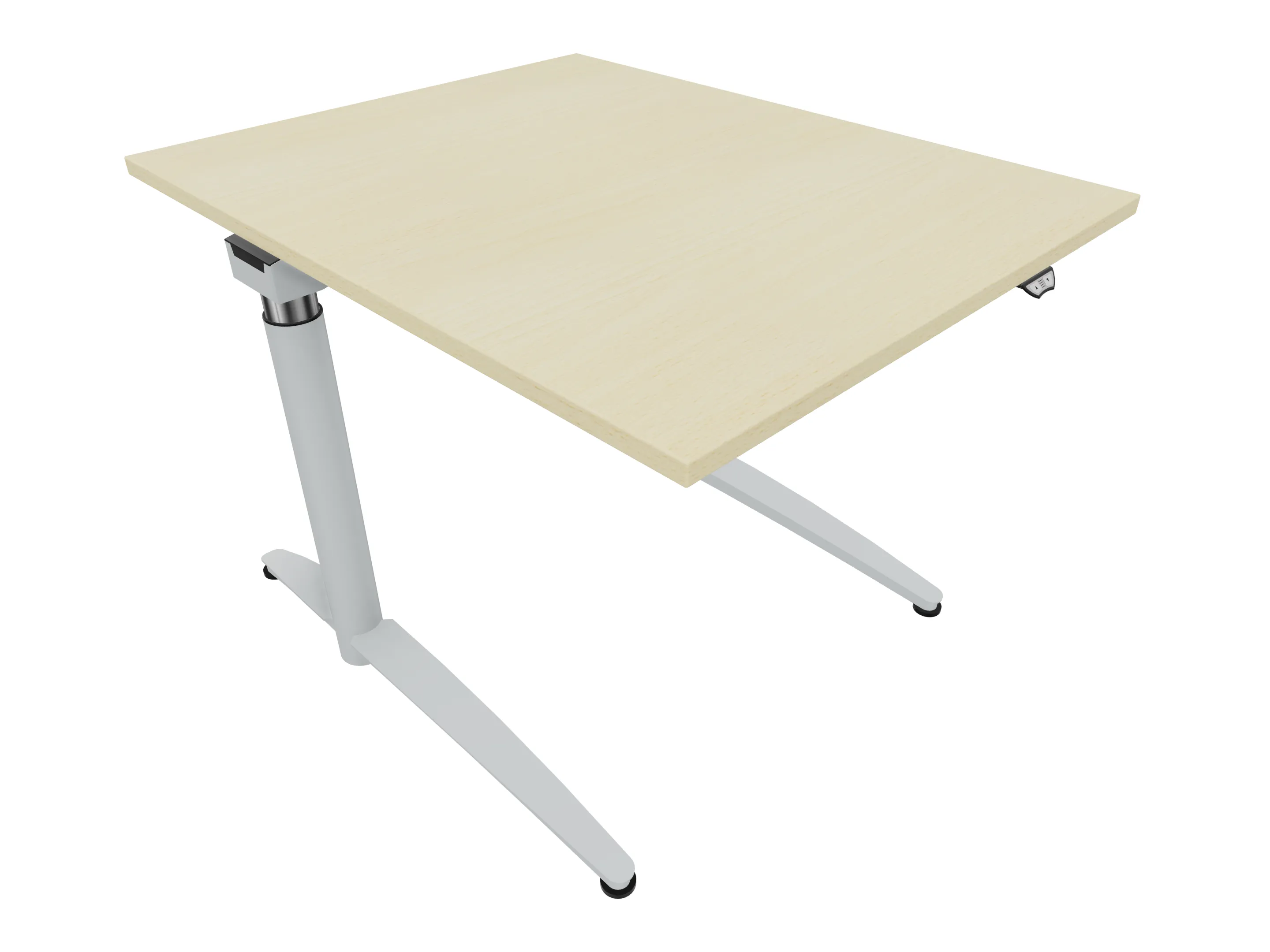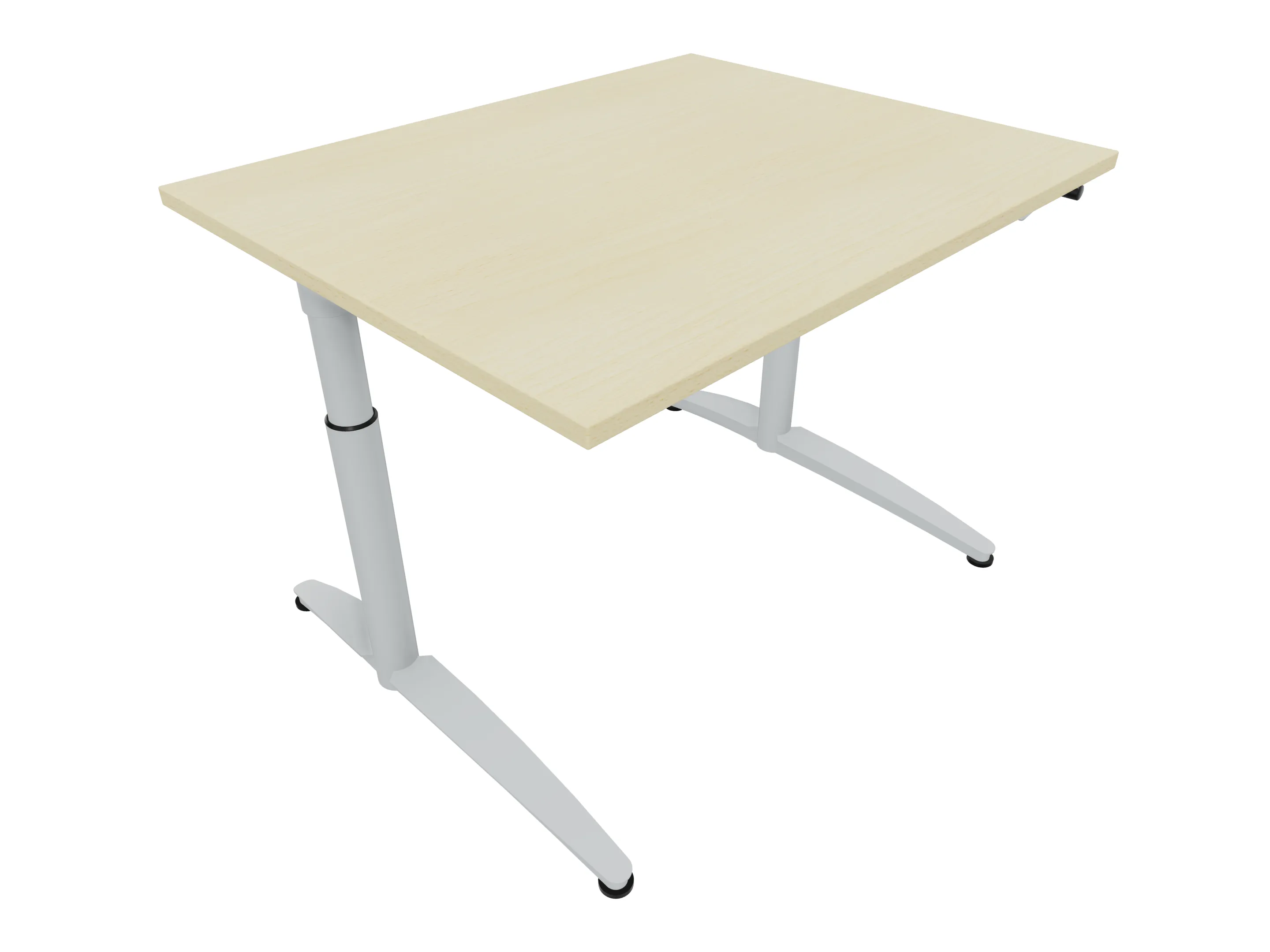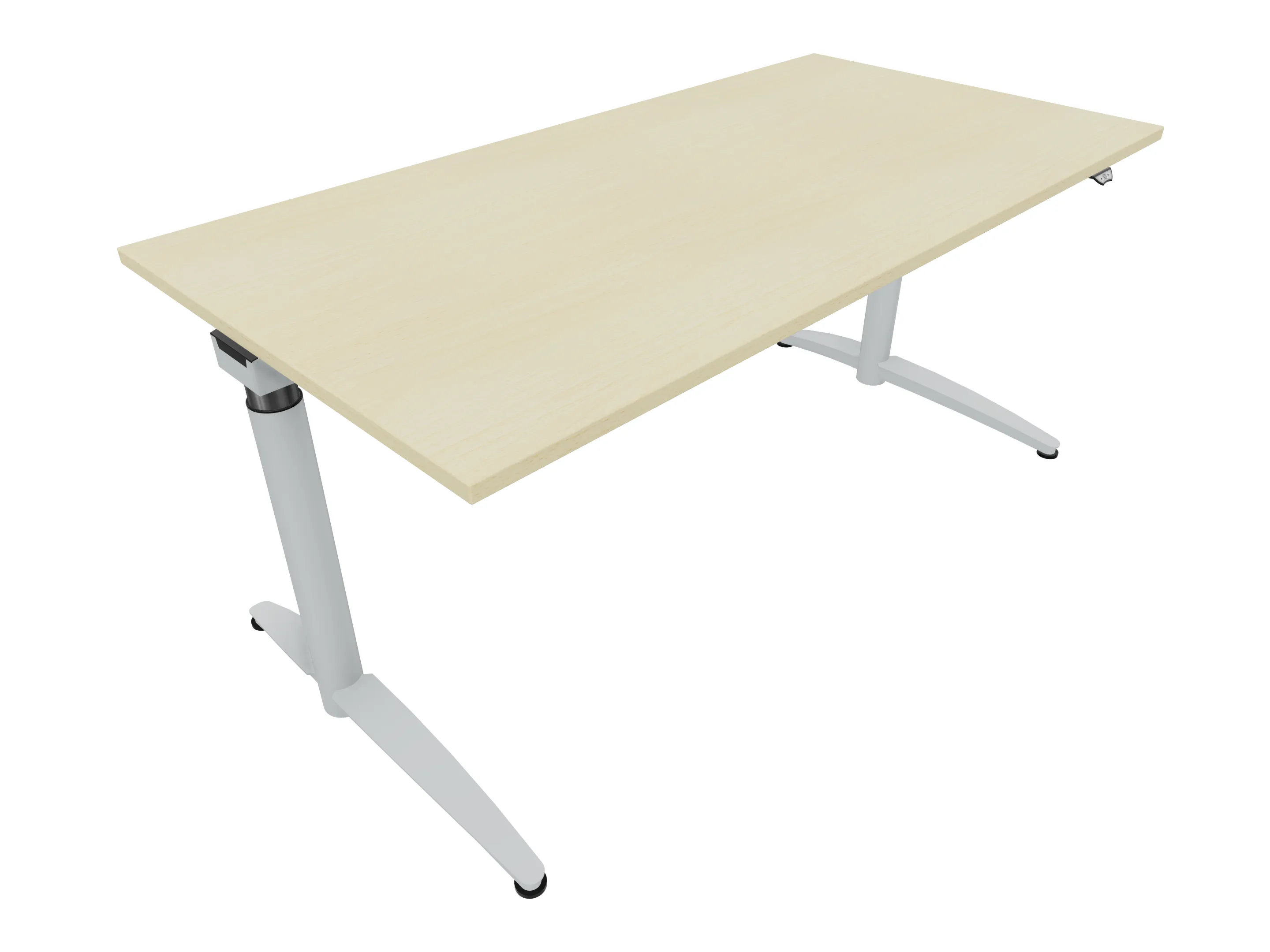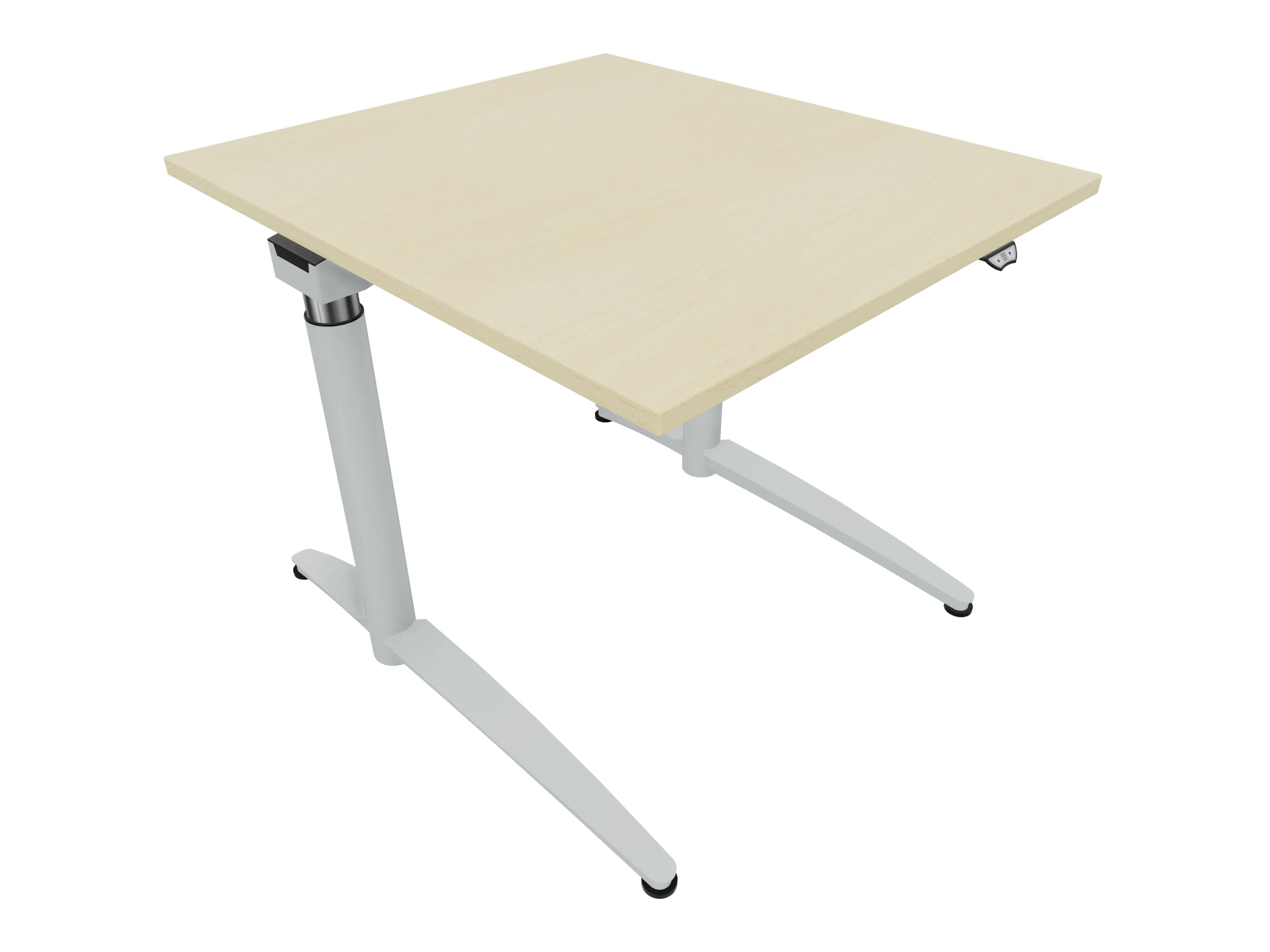 Bureau met twee poten (T-poot, hoogte instelbaar tussen 650-850mm d.m.v. veermechanisme) in de afmeting: 1000 x 600mm (BxD)