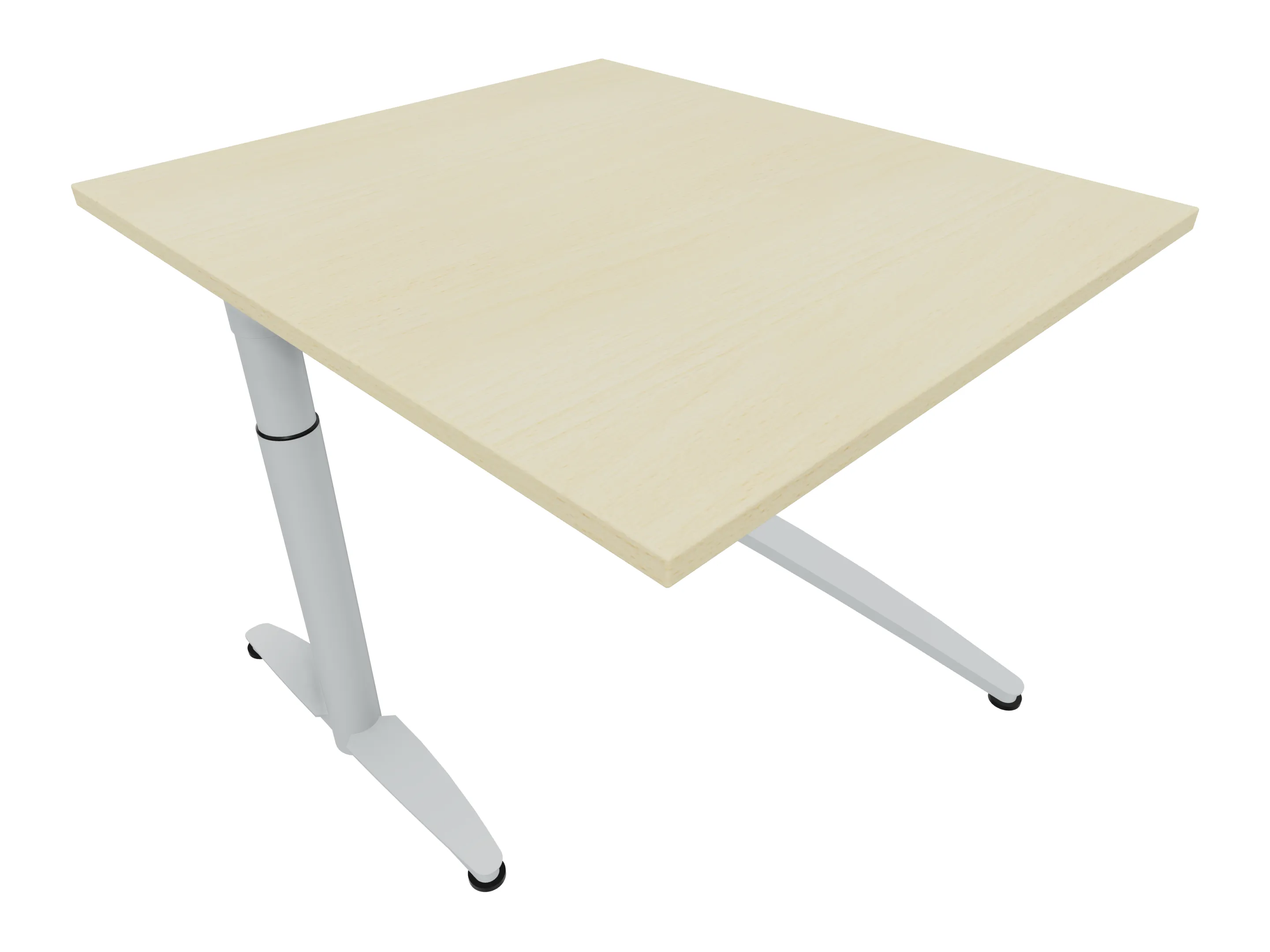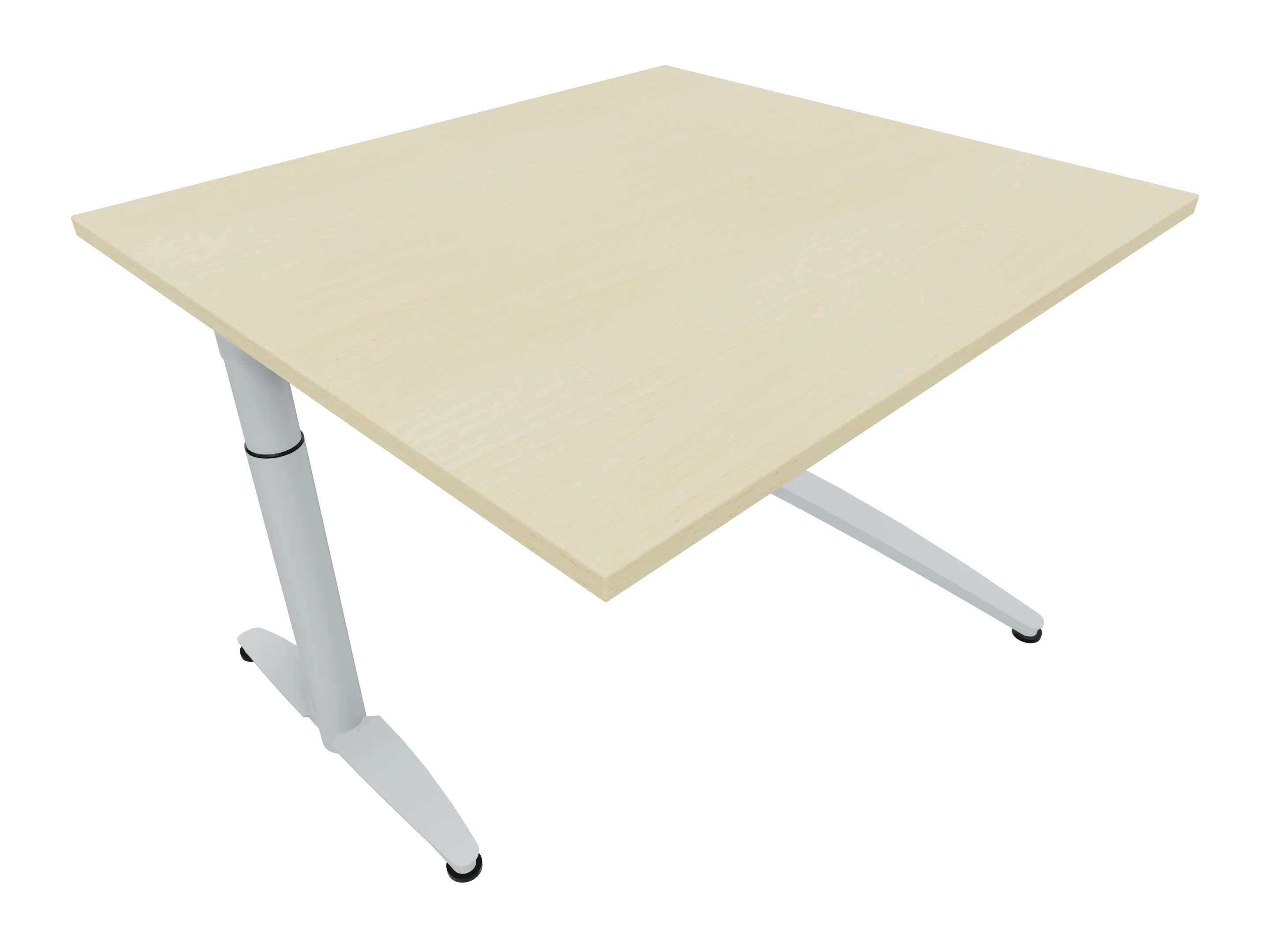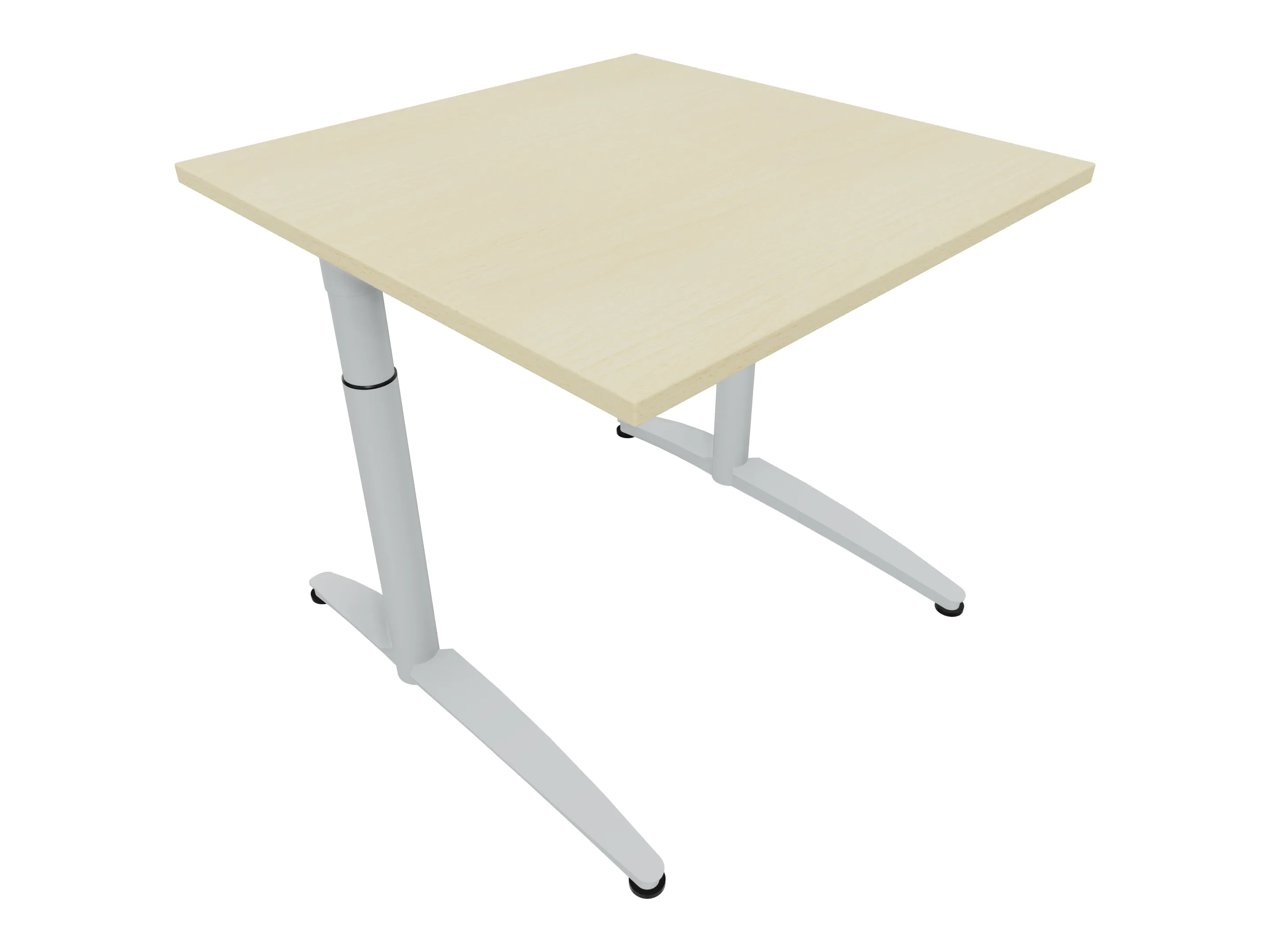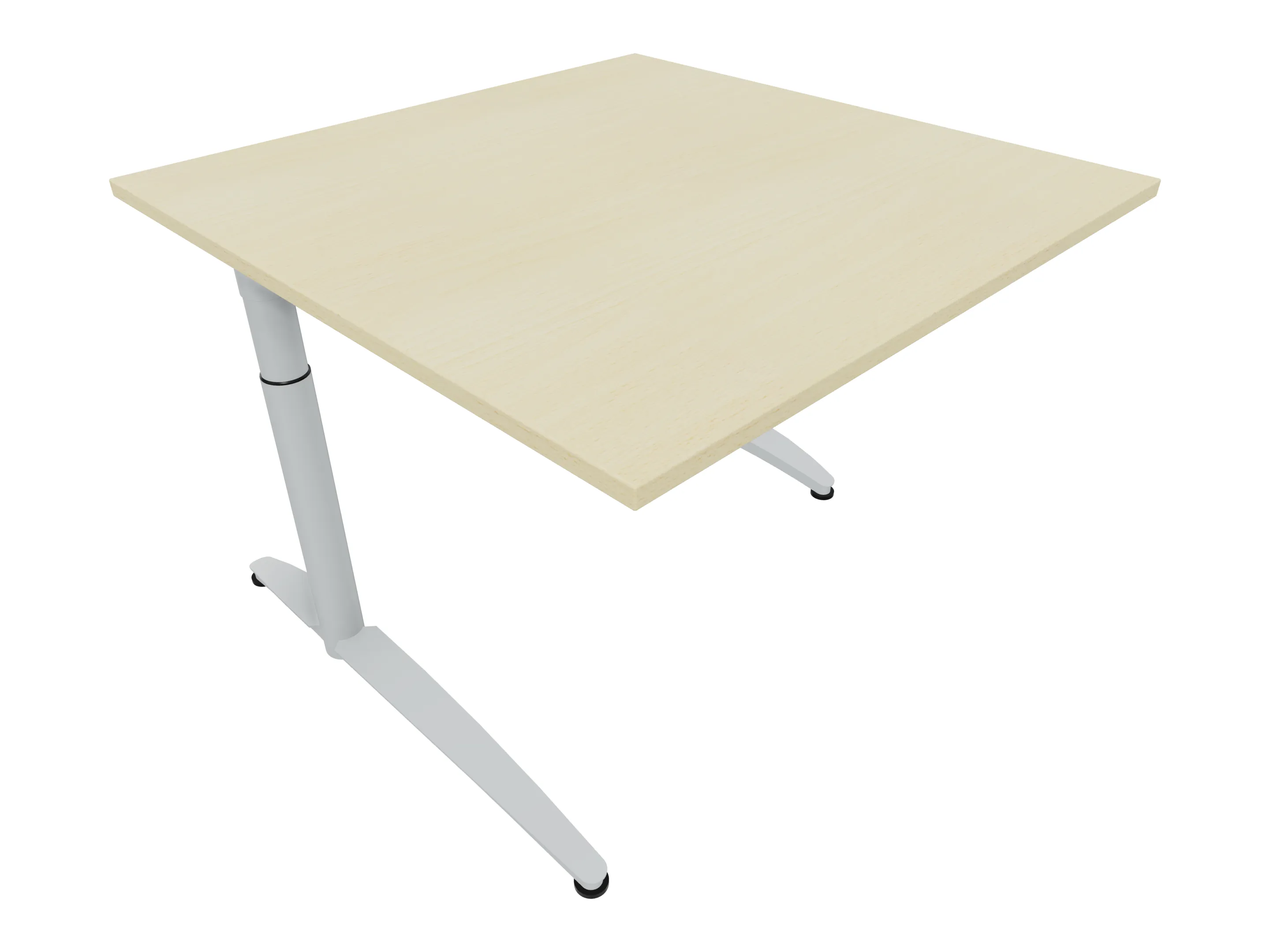 Bureau met 2 poten, waarvan de linker is teruggeplaatst en koppelbaar (T-poot, vaste hoogte 720mm) in de afmeting: 800 x 800mm (BxD)