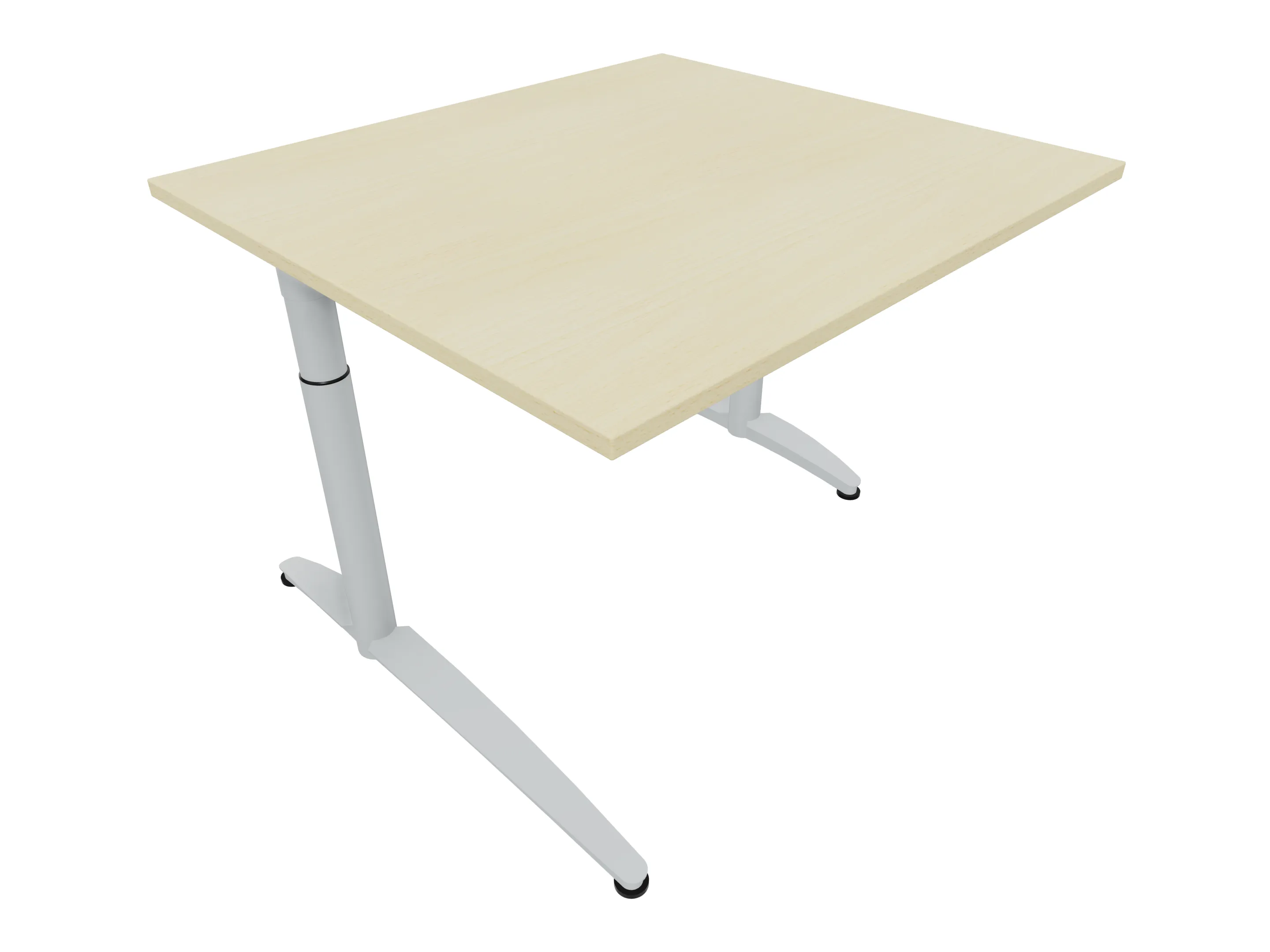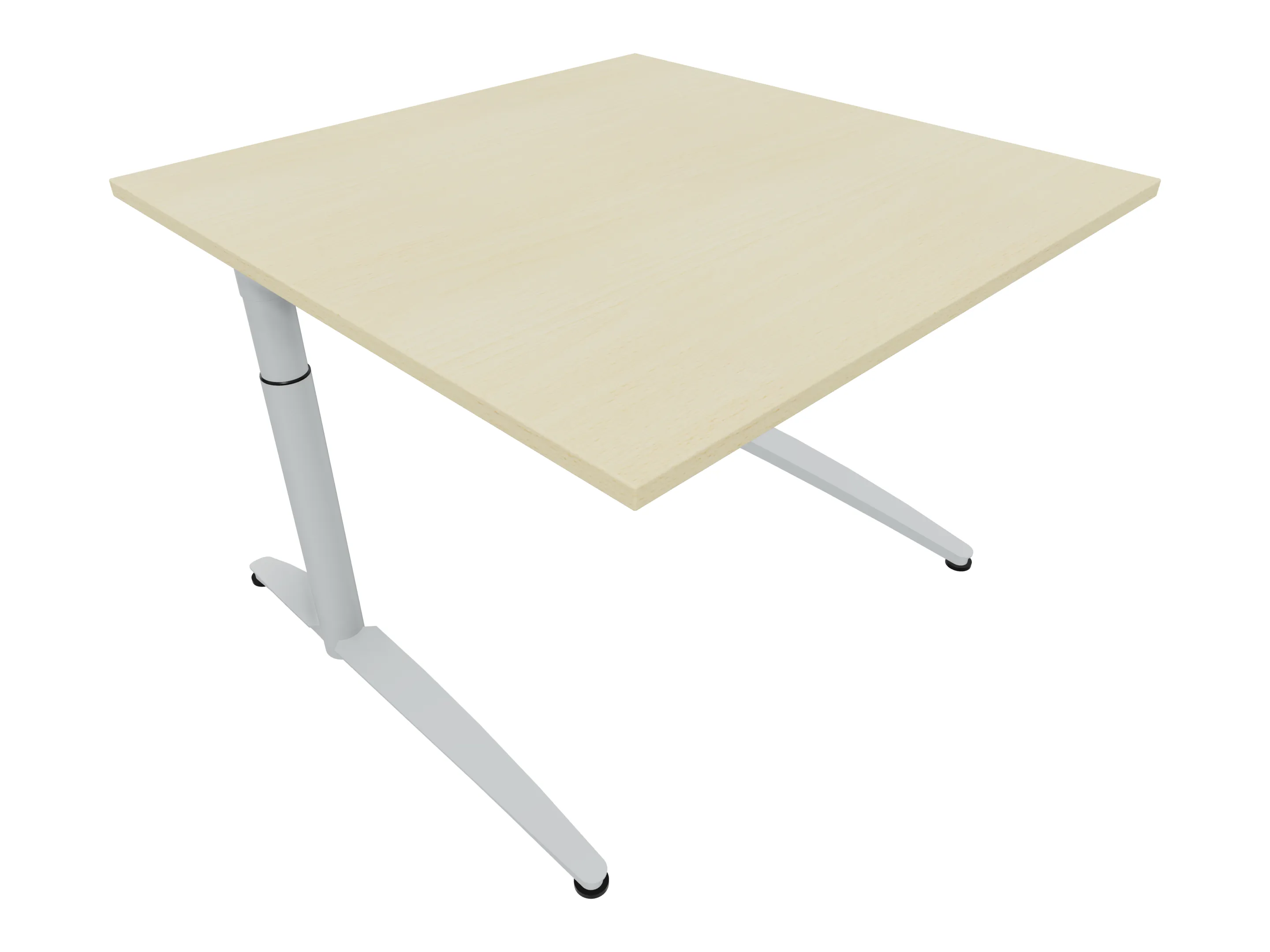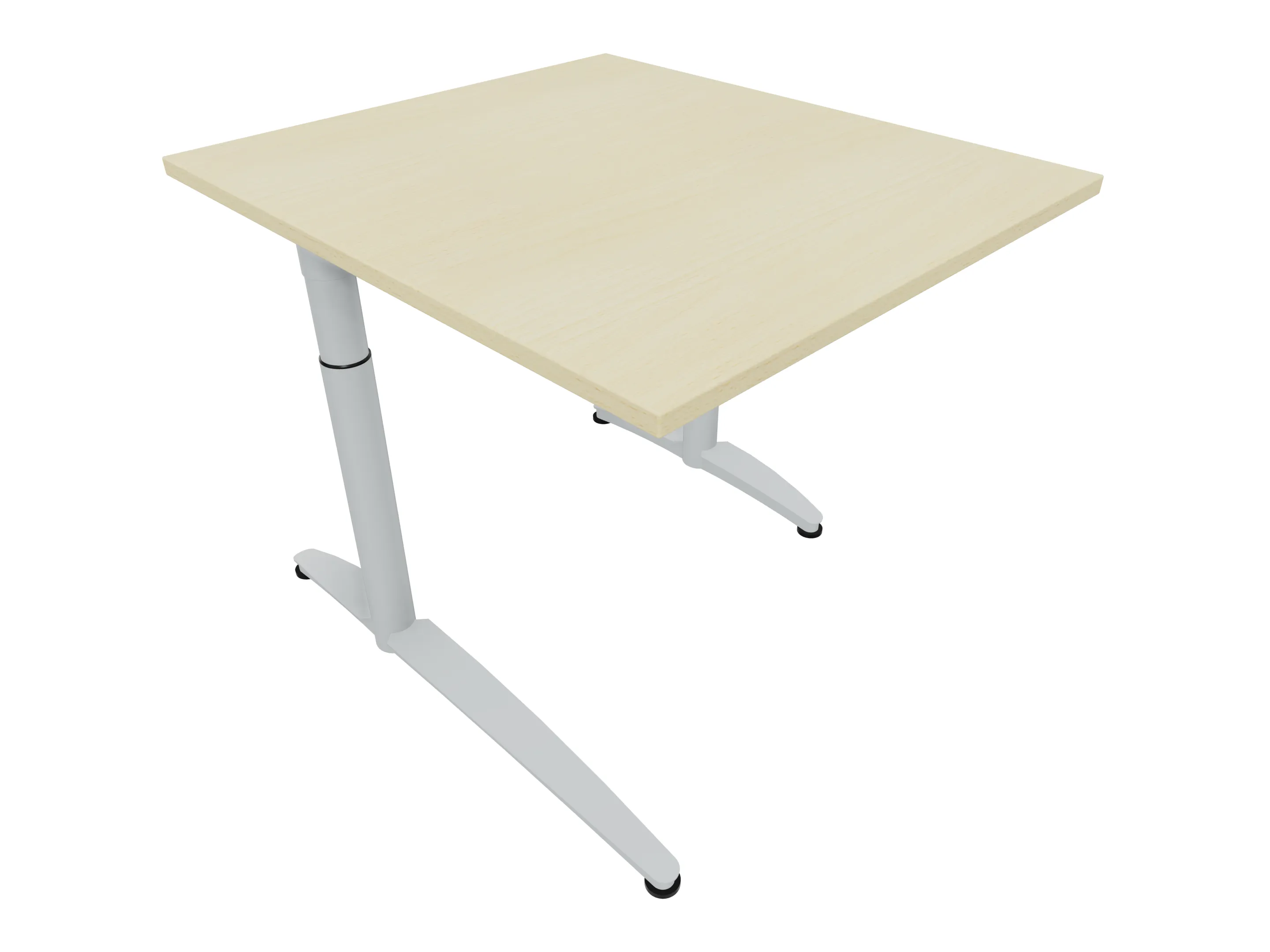 Bureau met 2 poten, waarvan de linker is teruggeplaatst en koppelbaar (T-poot, vaste hoogte 720mm) in de afmeting: 800 x 800mm (BxD)