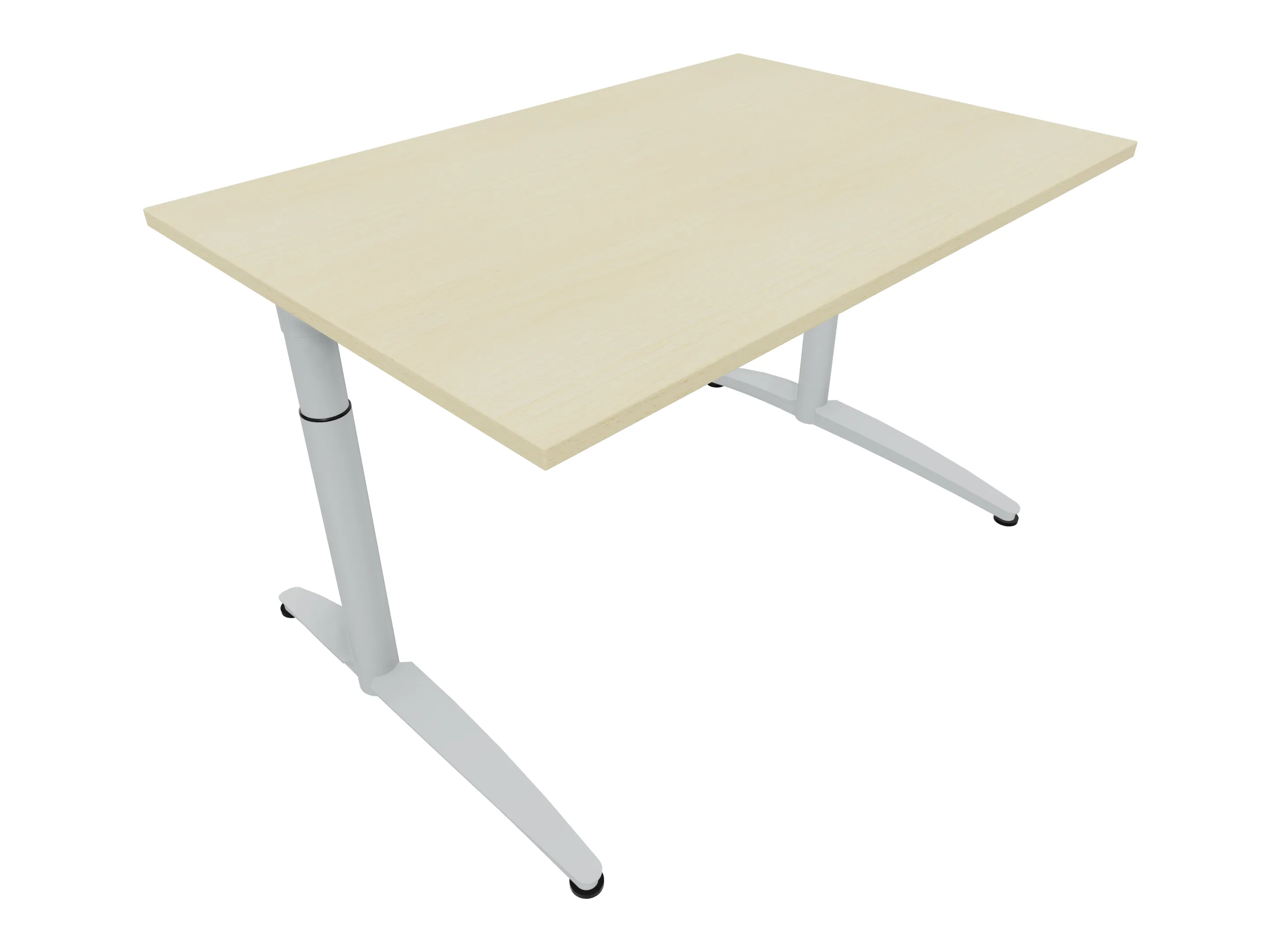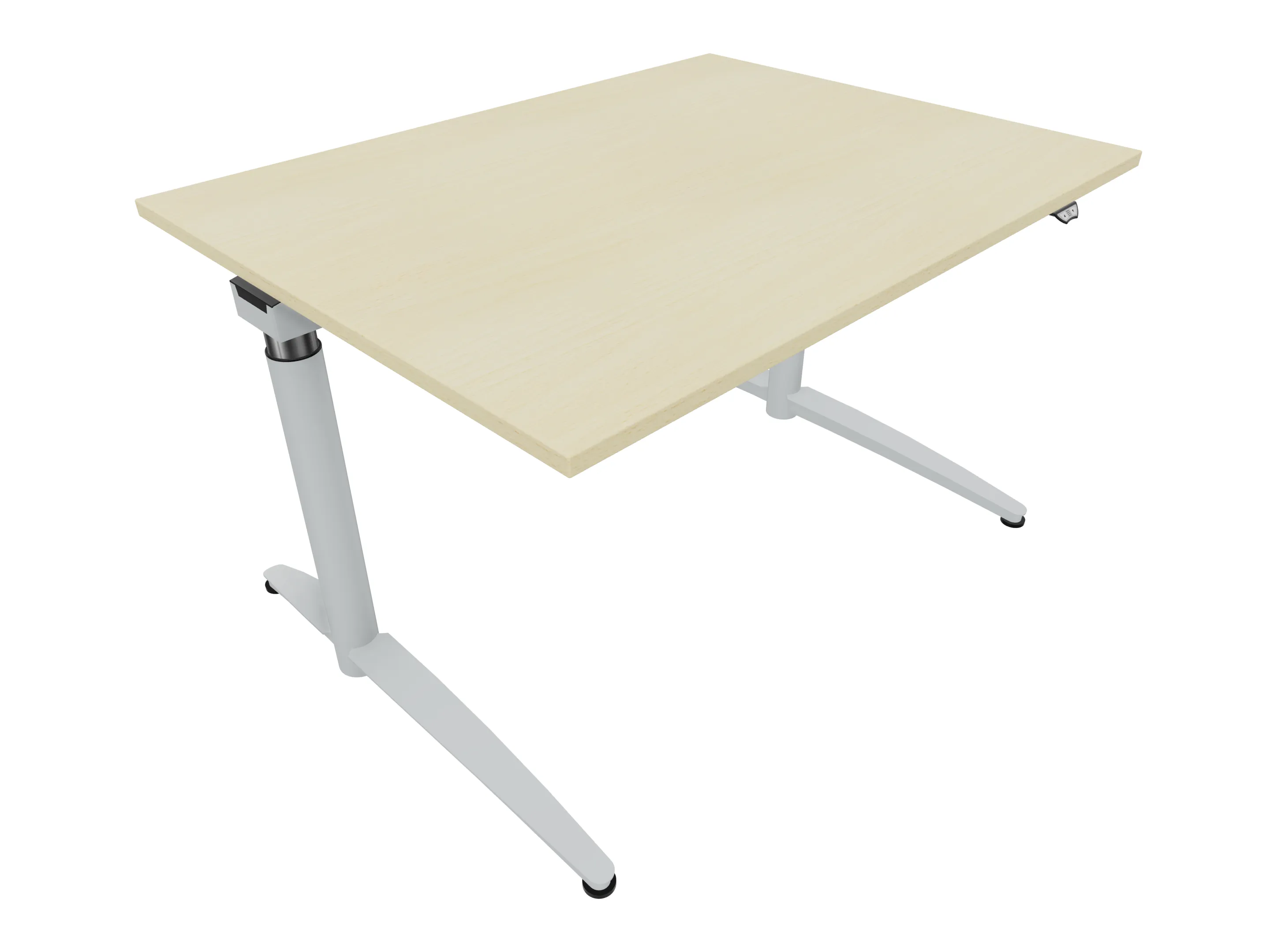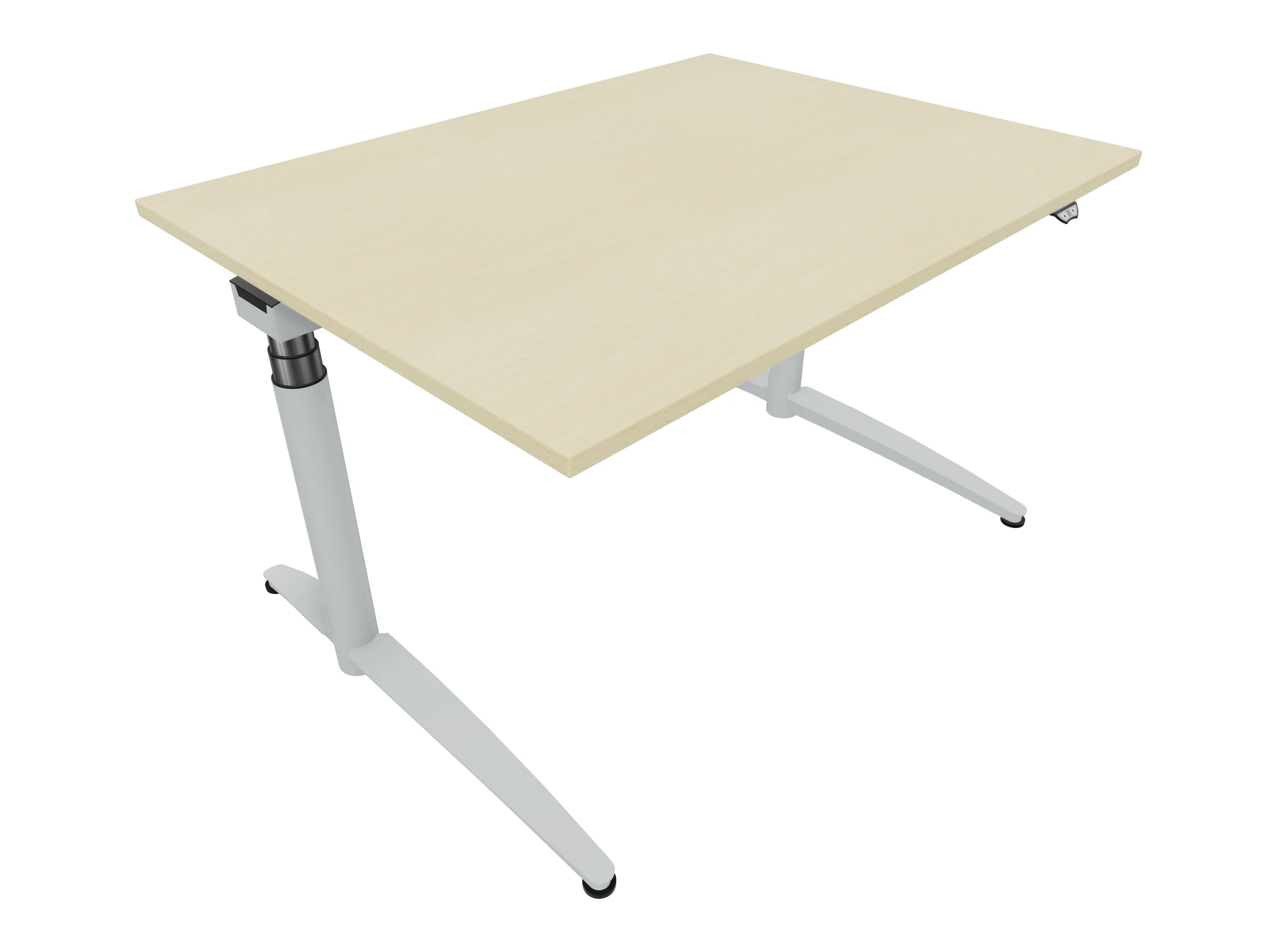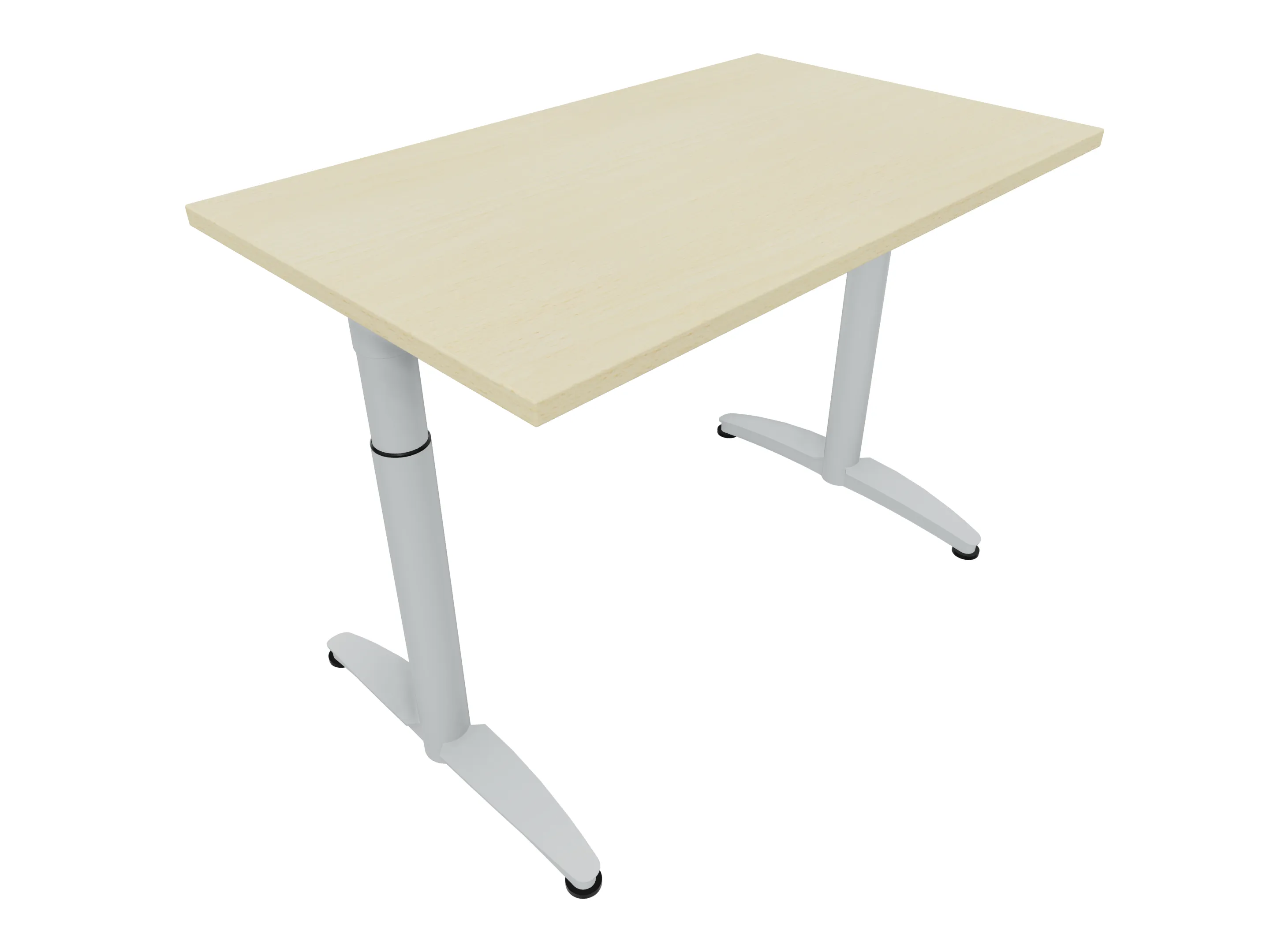 Bureau met twee poten (T-poot, hoogte instelbaar tussen 650-850mm d.m.v. veermechanisme) in de afmeting: 1200 x 600mm (BxD)