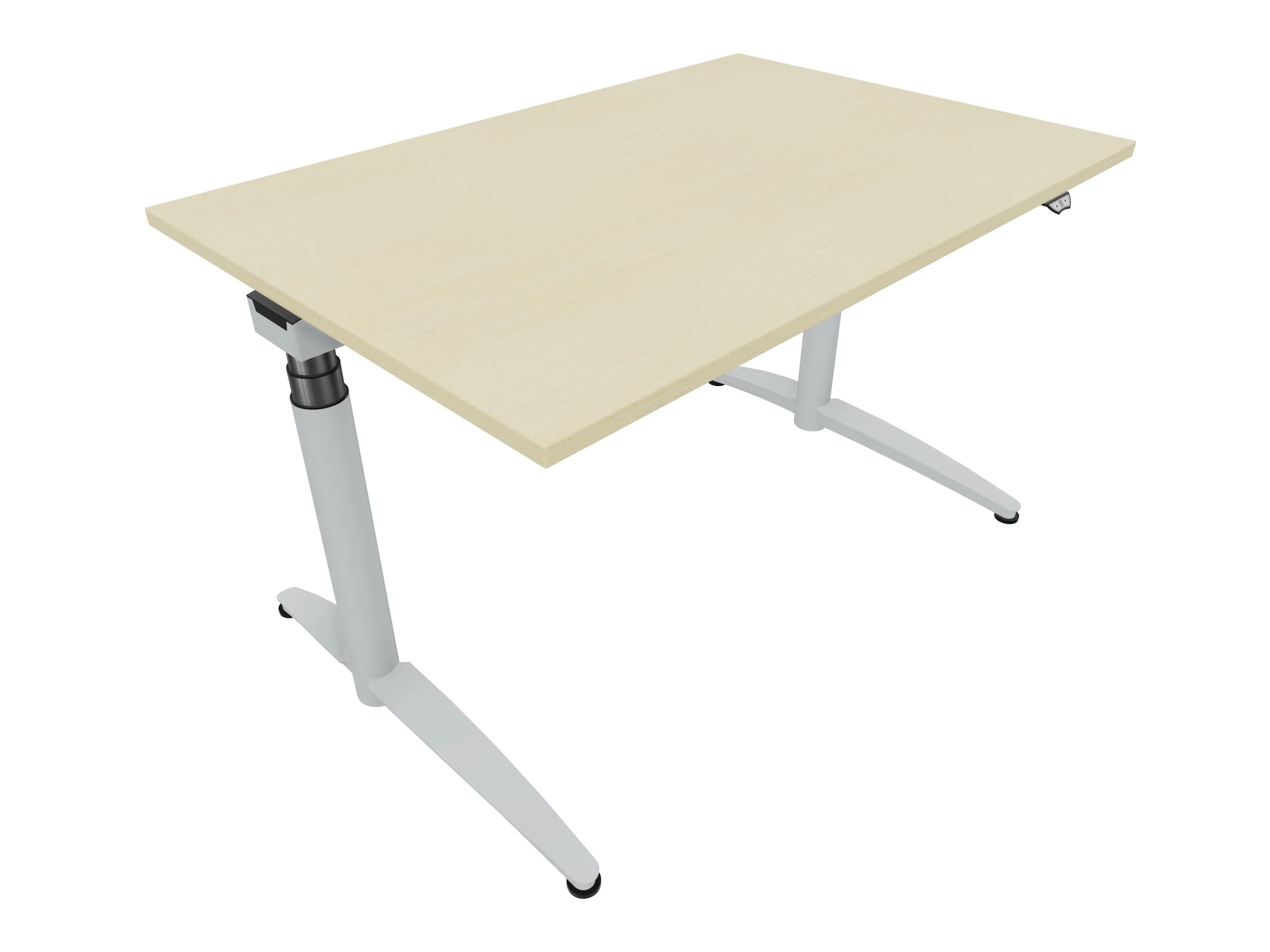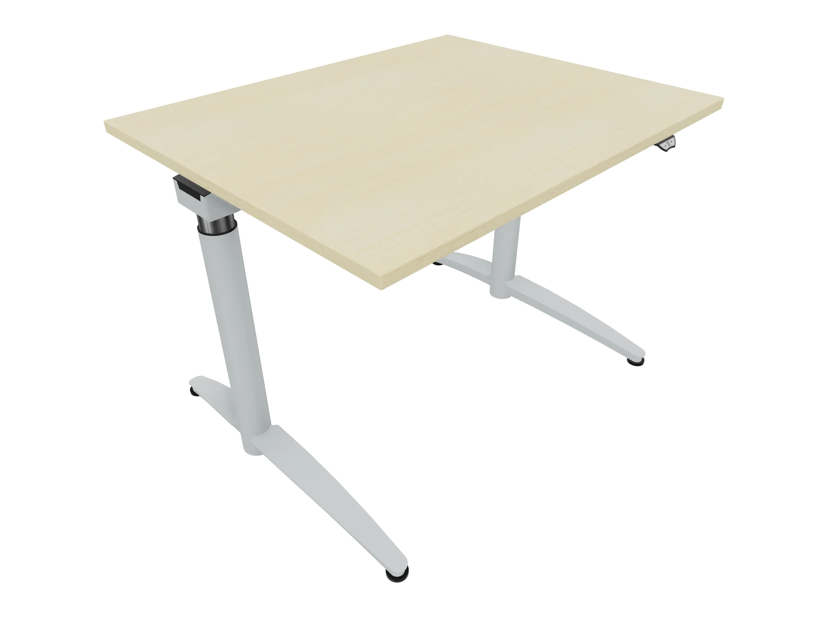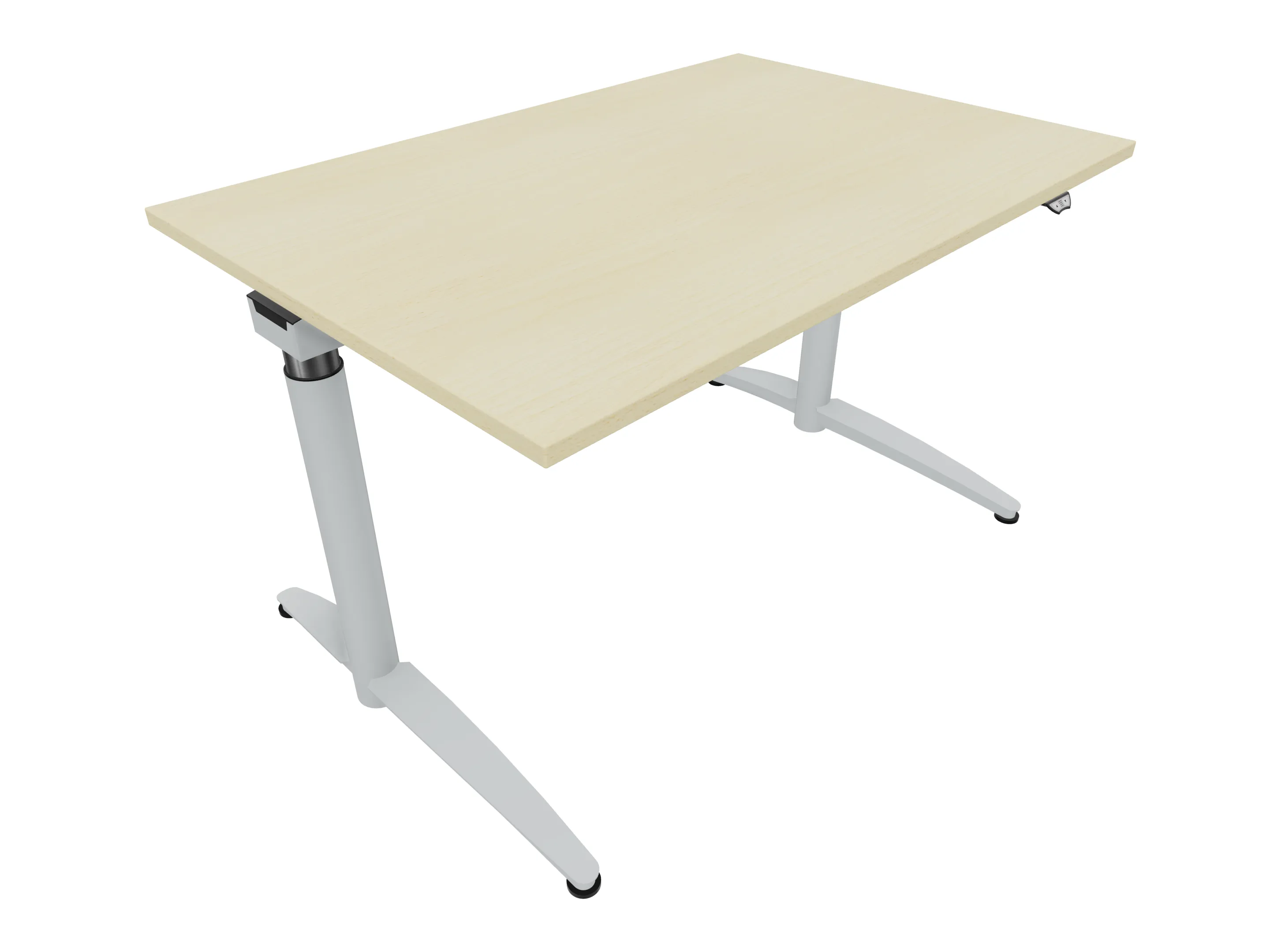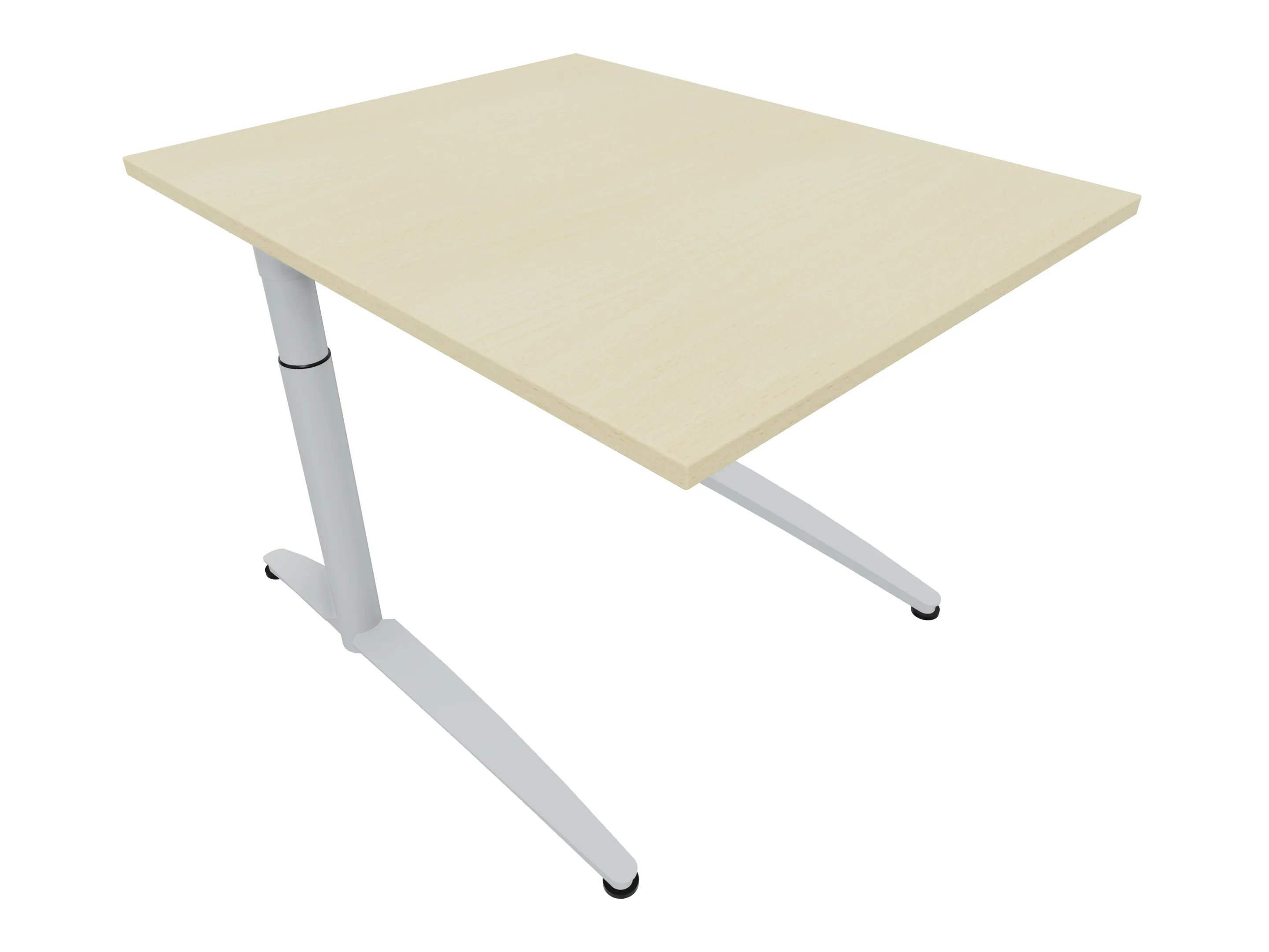 Bureau met twee poten (T-poot, hoogte instelbaar tussen 650-850mm d.m.v. veermechanisme) in de afmeting: 1200 x 600mm (BxD)