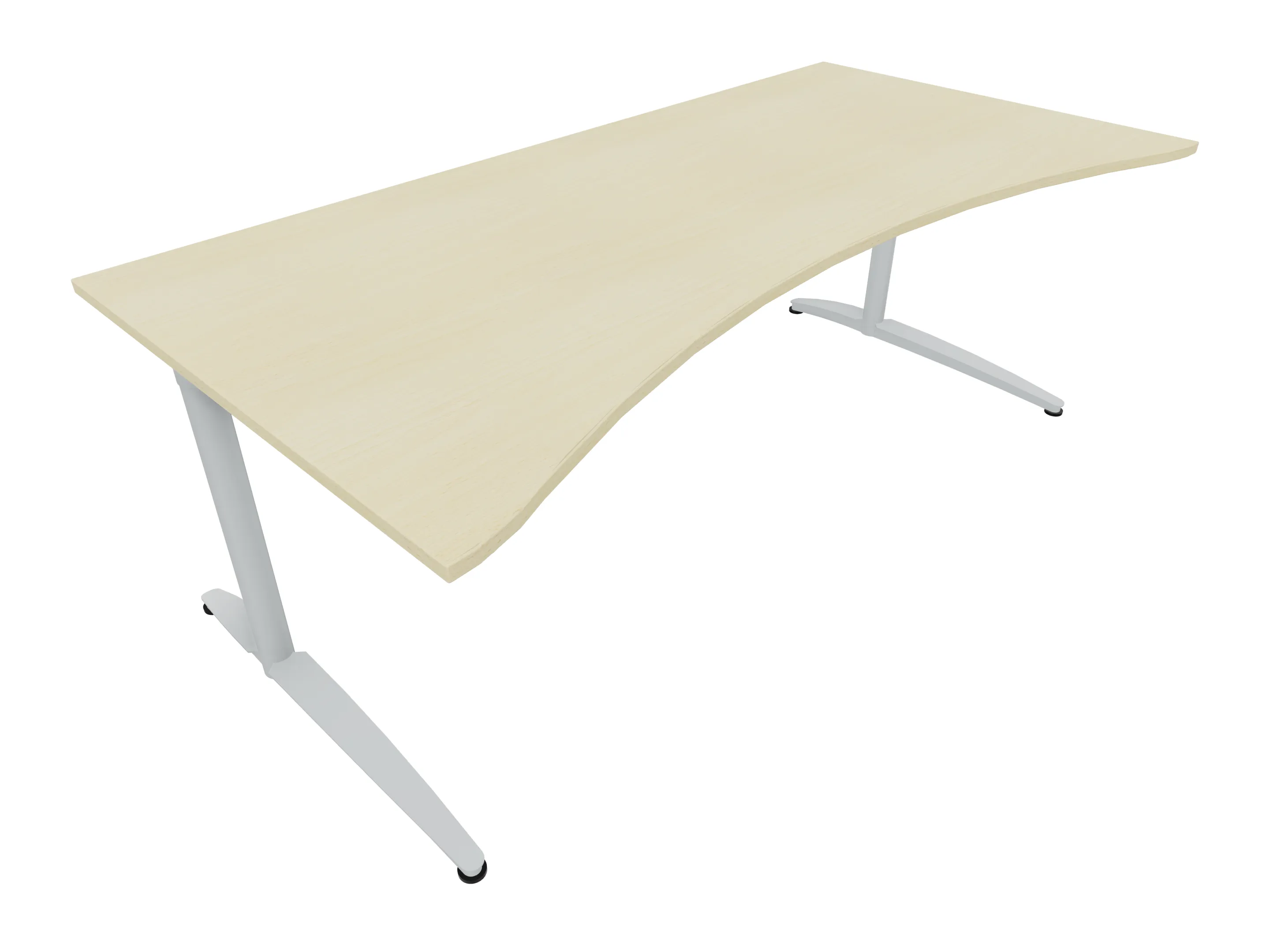 Bureau met 2 poten, waarvan de rechter is teruggeplaatst en koppelbaar (T-poot, vaste hoogte 720mm) in de afmeting: 2000 x 900mm (BxD)