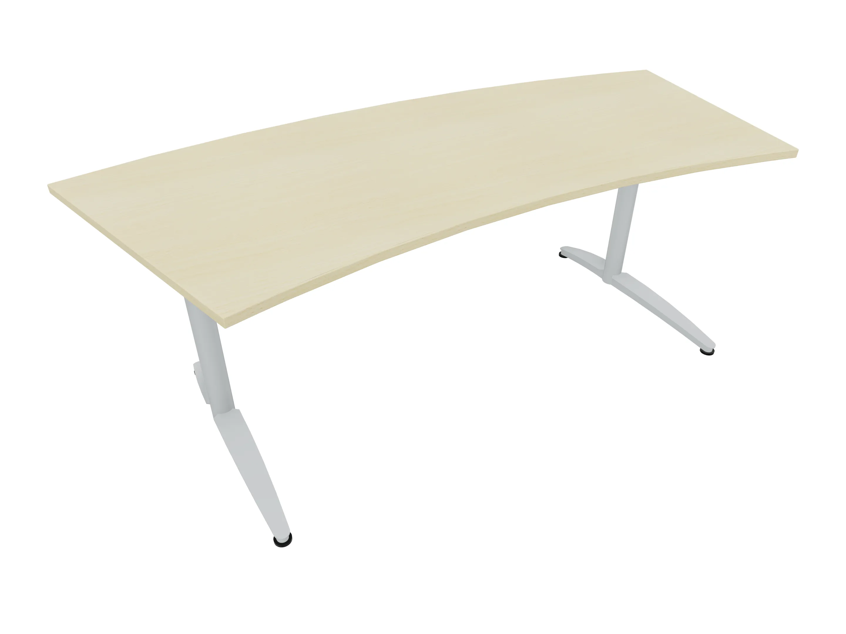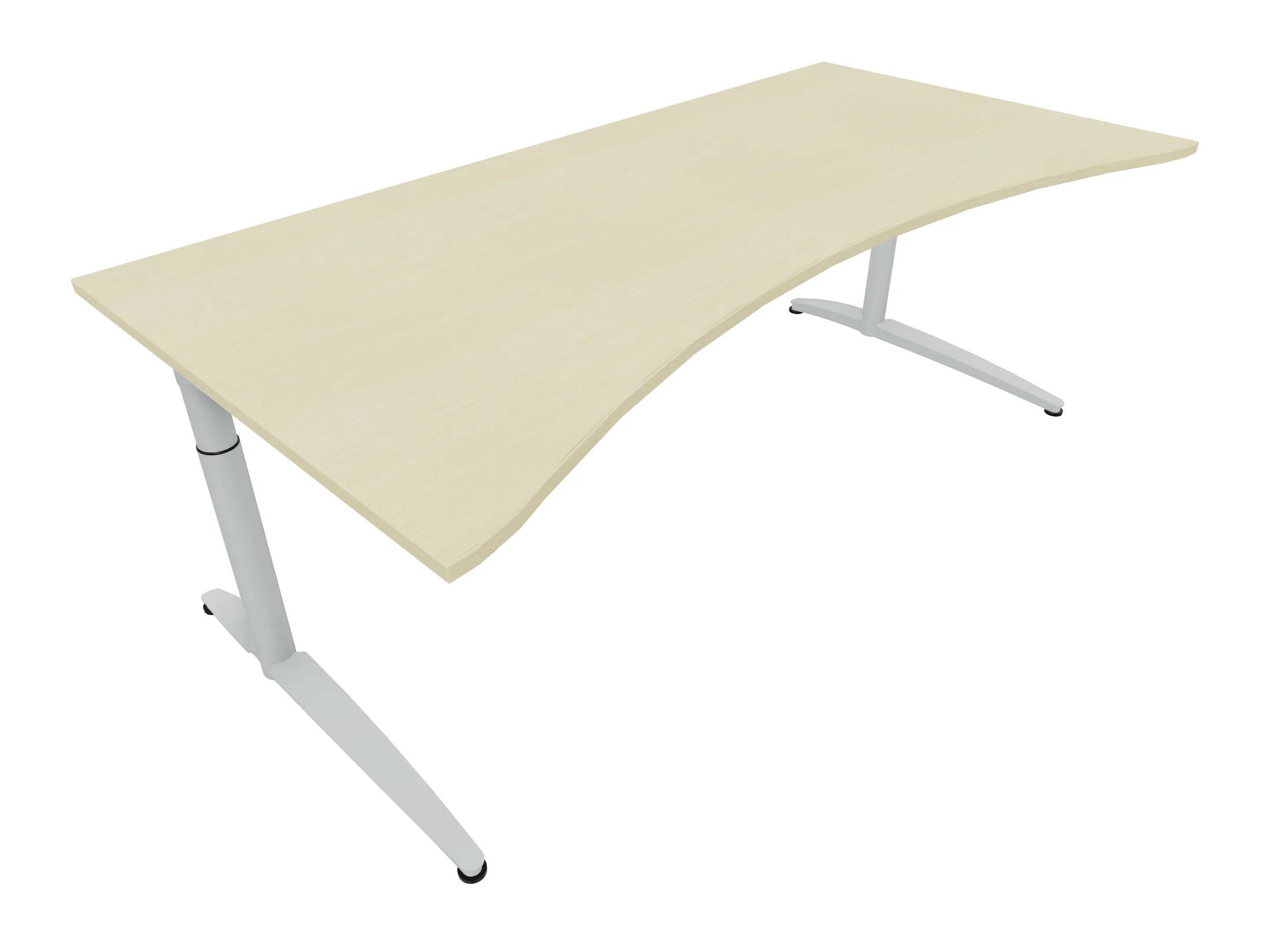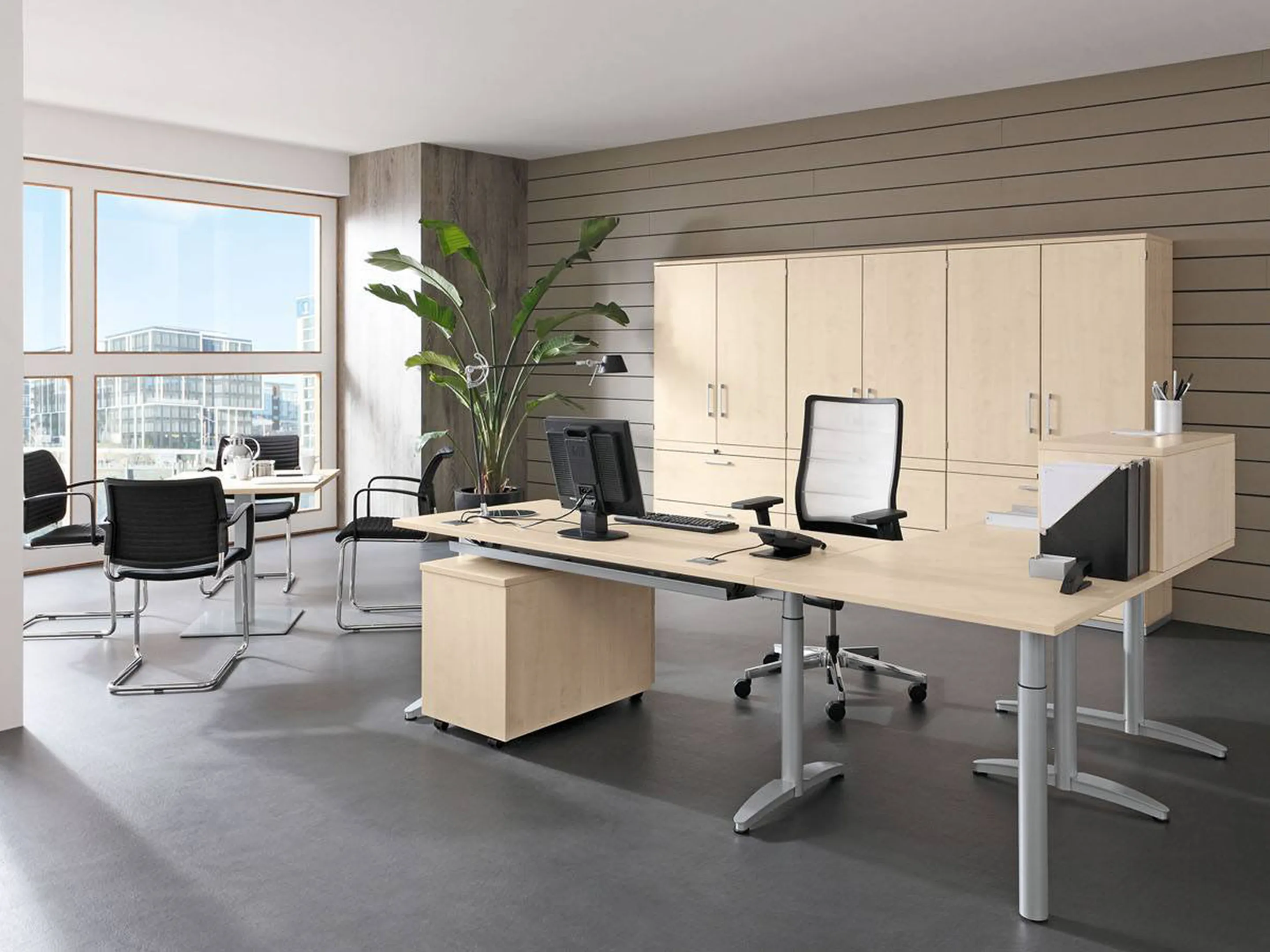 Bureau met 2 poten, waarvan de linker is teruggeplaatst en koppelbaar (T-poot, vaste hoogte 720mm) in de afmeting: 2000 x 900mm (BxD)