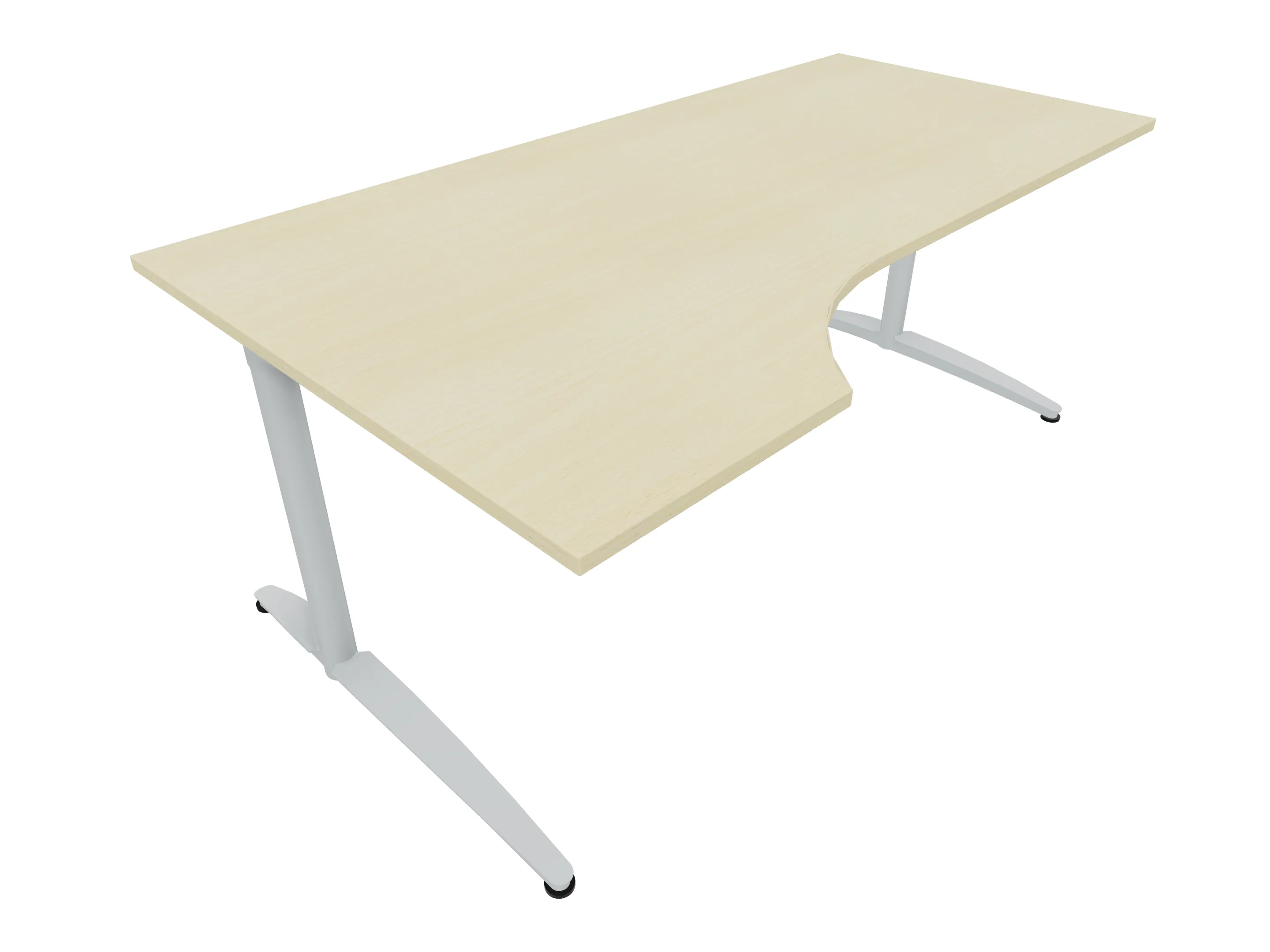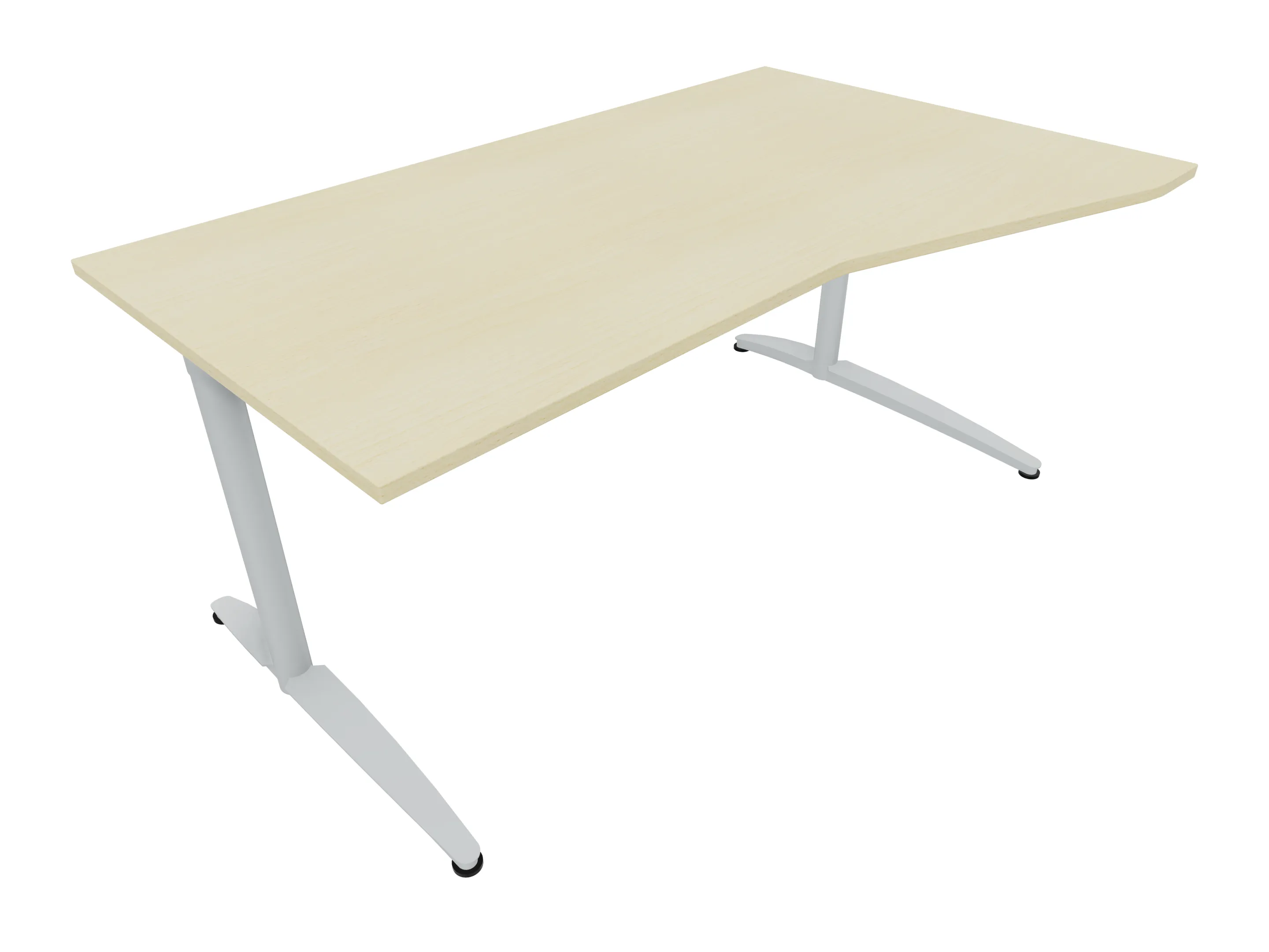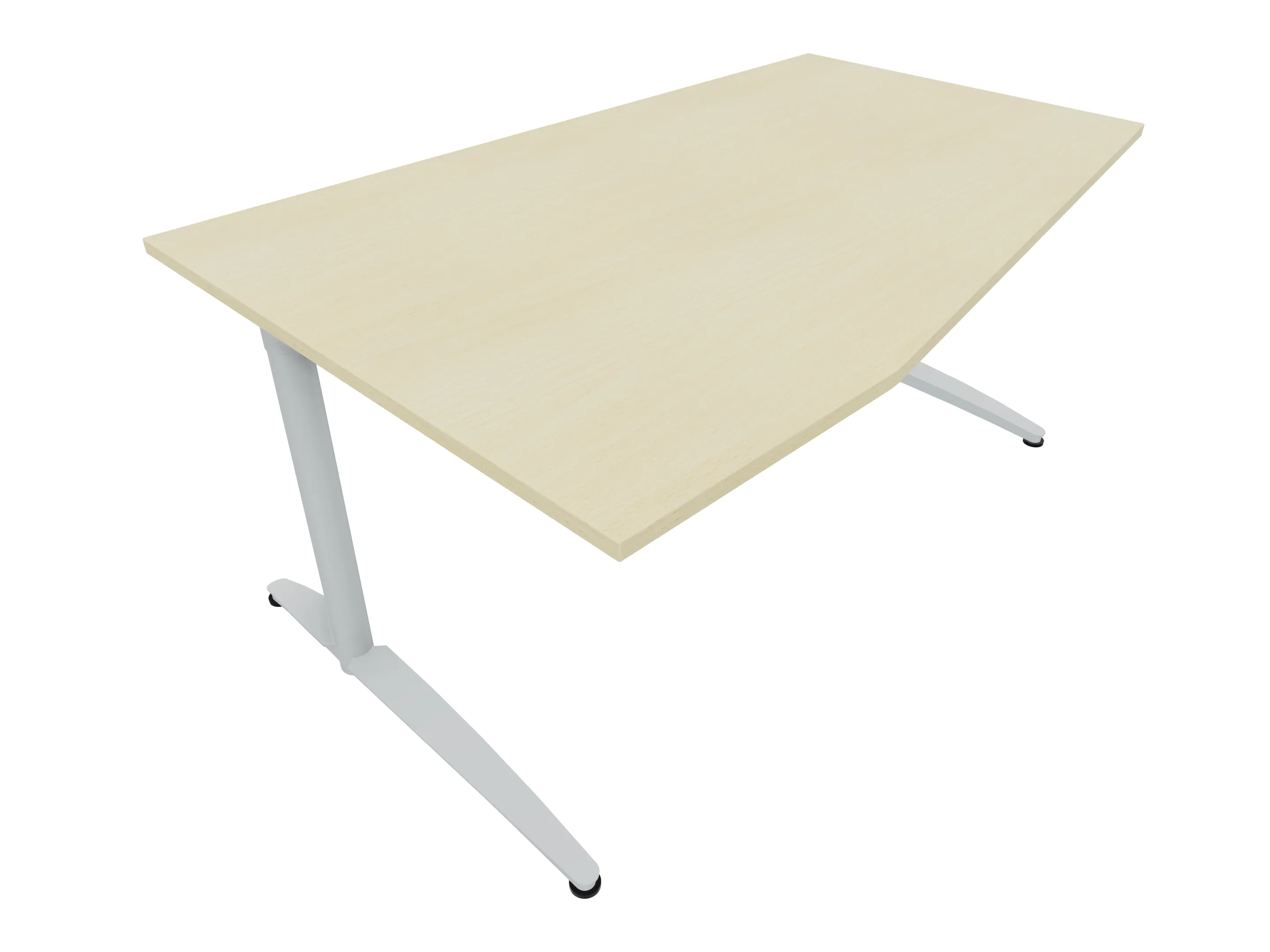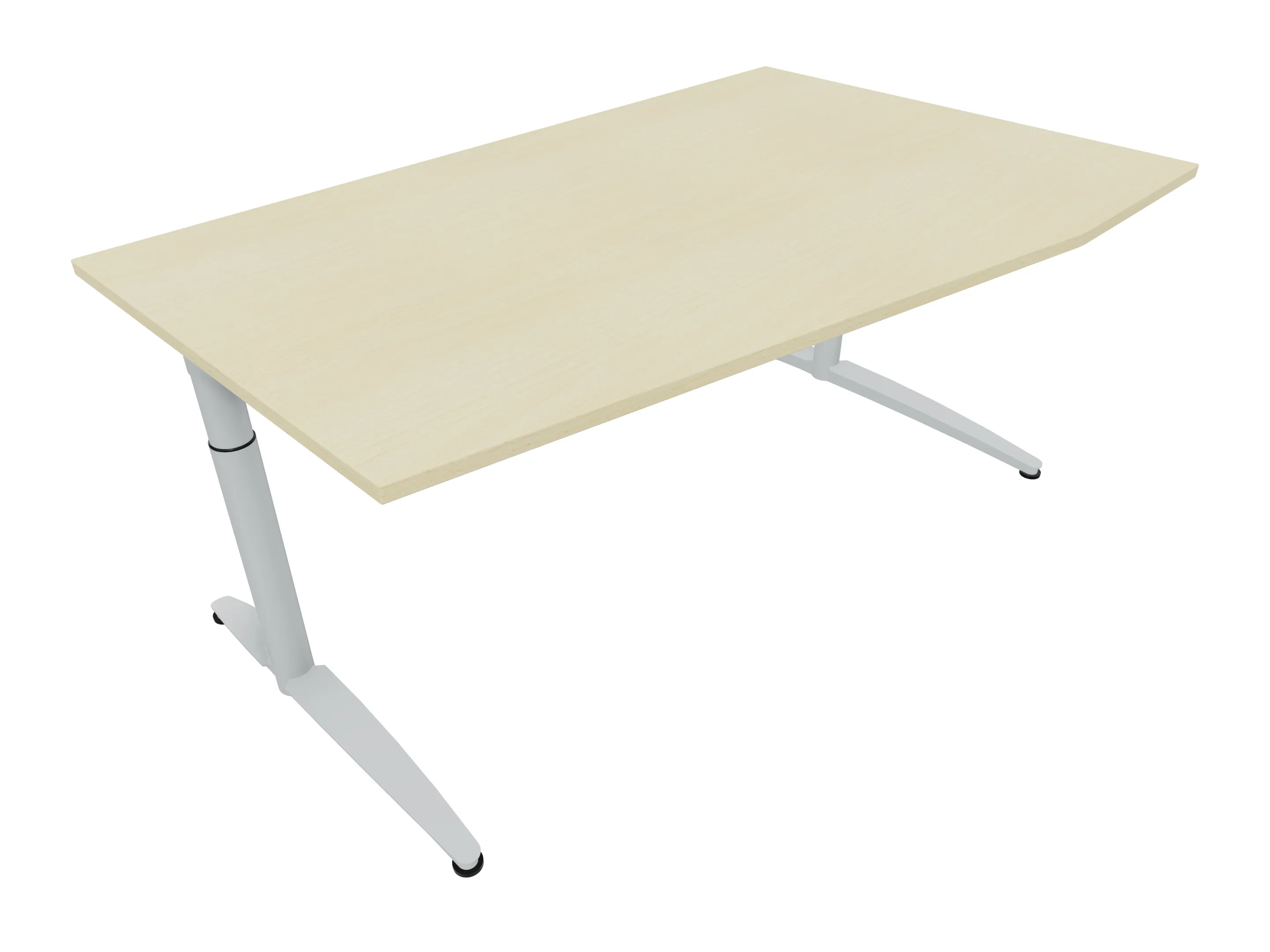Bureau met 2 poten, waarvan de linker is teruggeplaatst en koppelbaar (T-poot, vaste hoogte 720mm) in de afmeting: 1600 x 800mm (BxD)