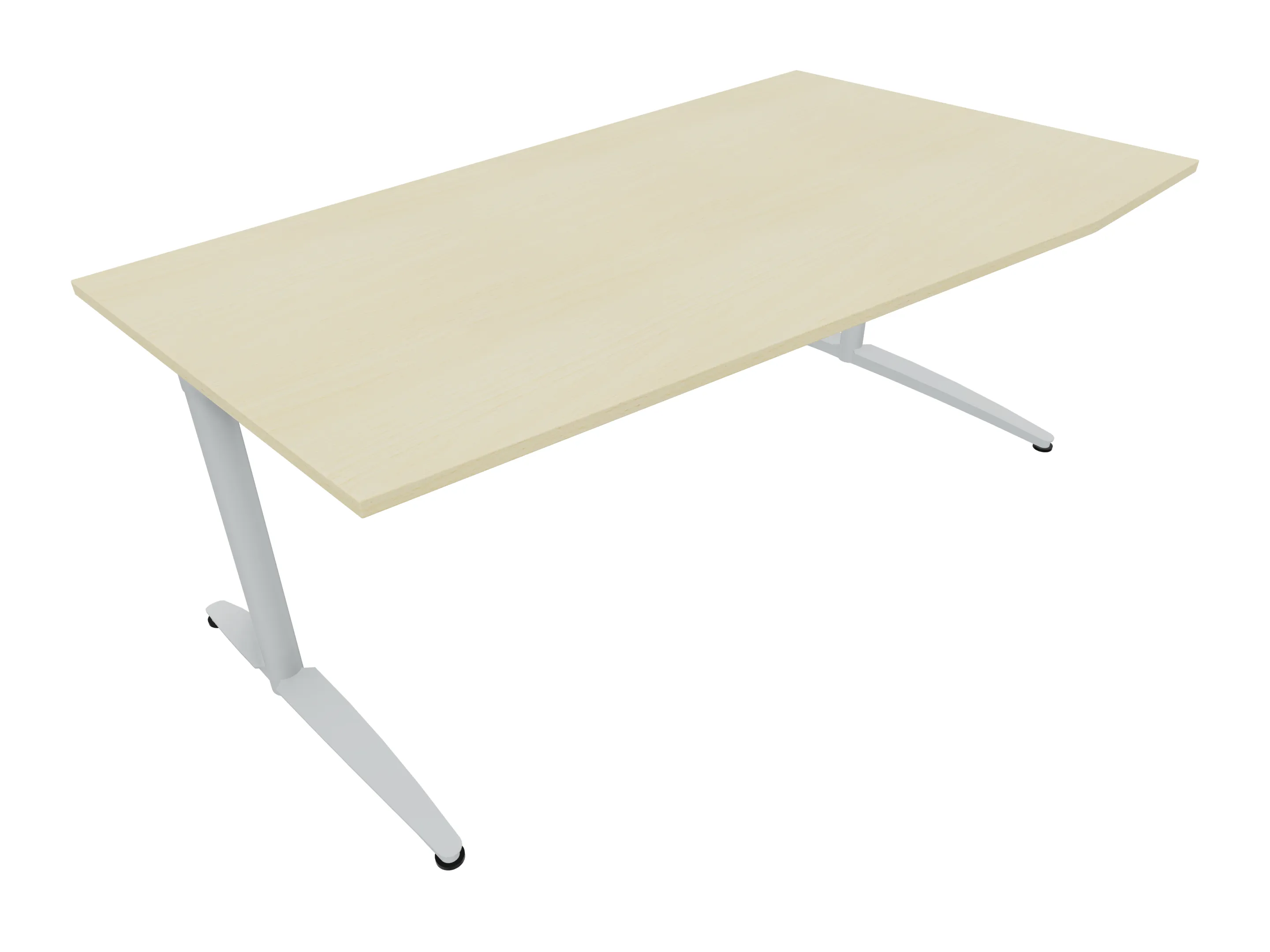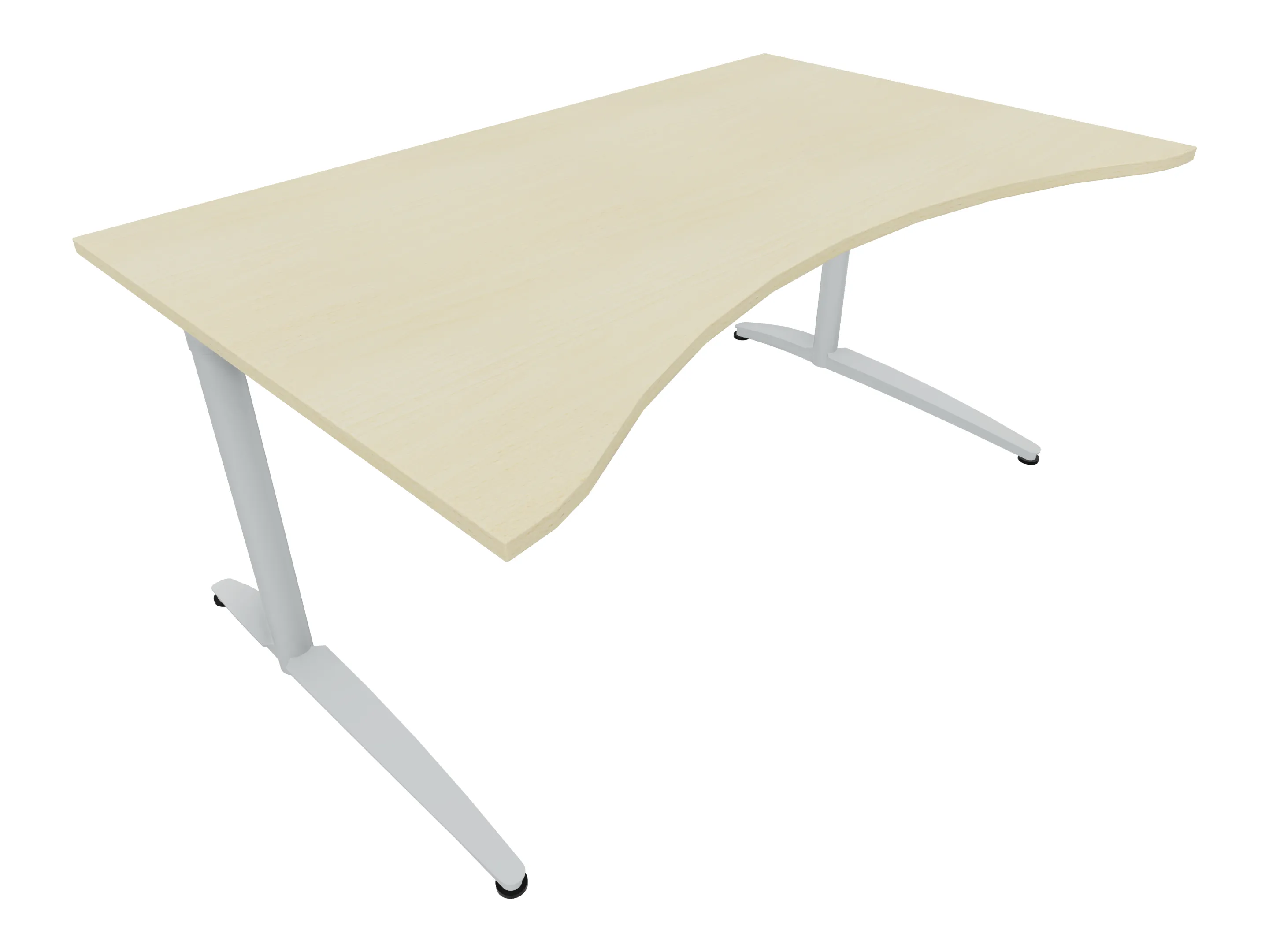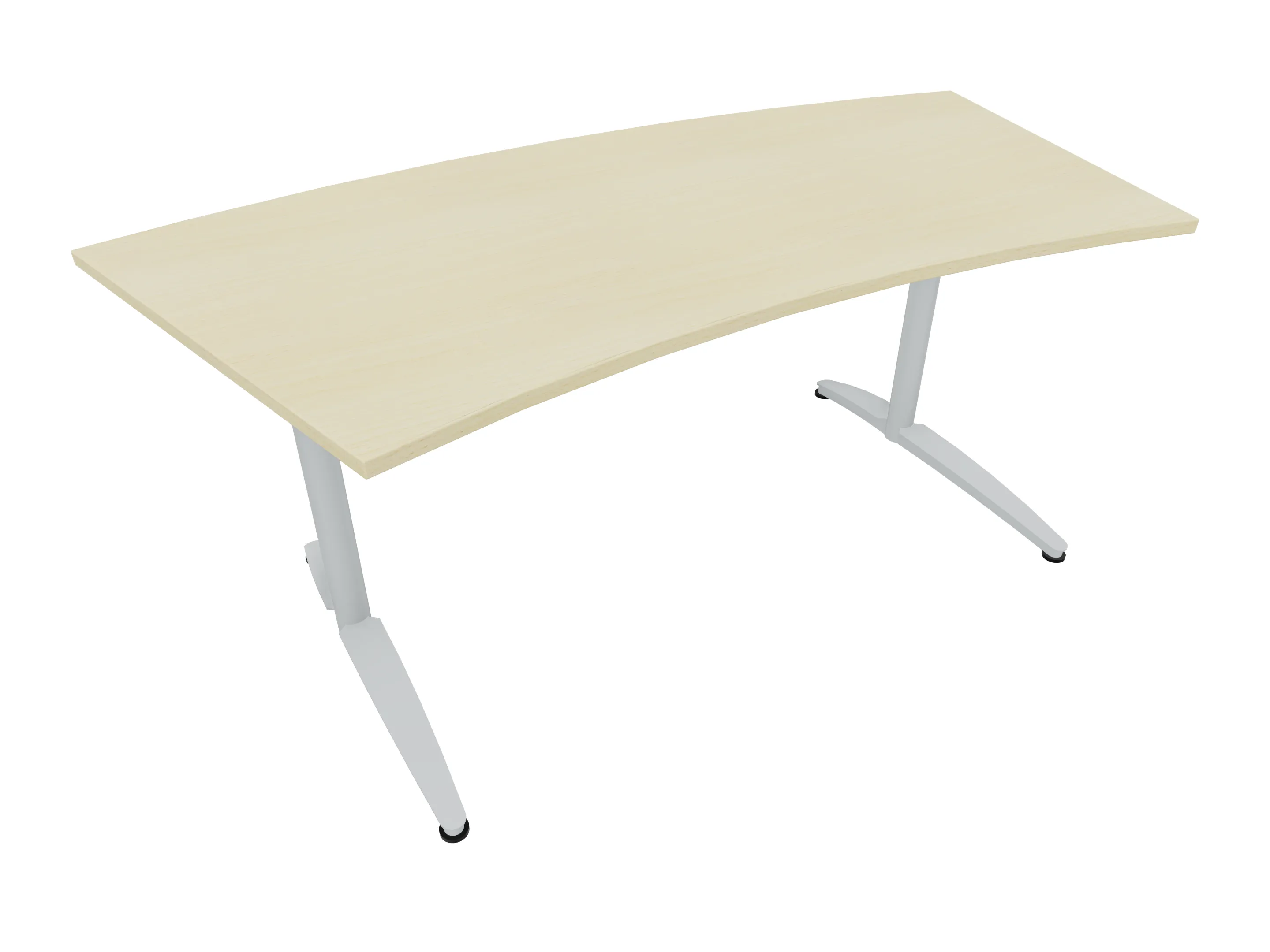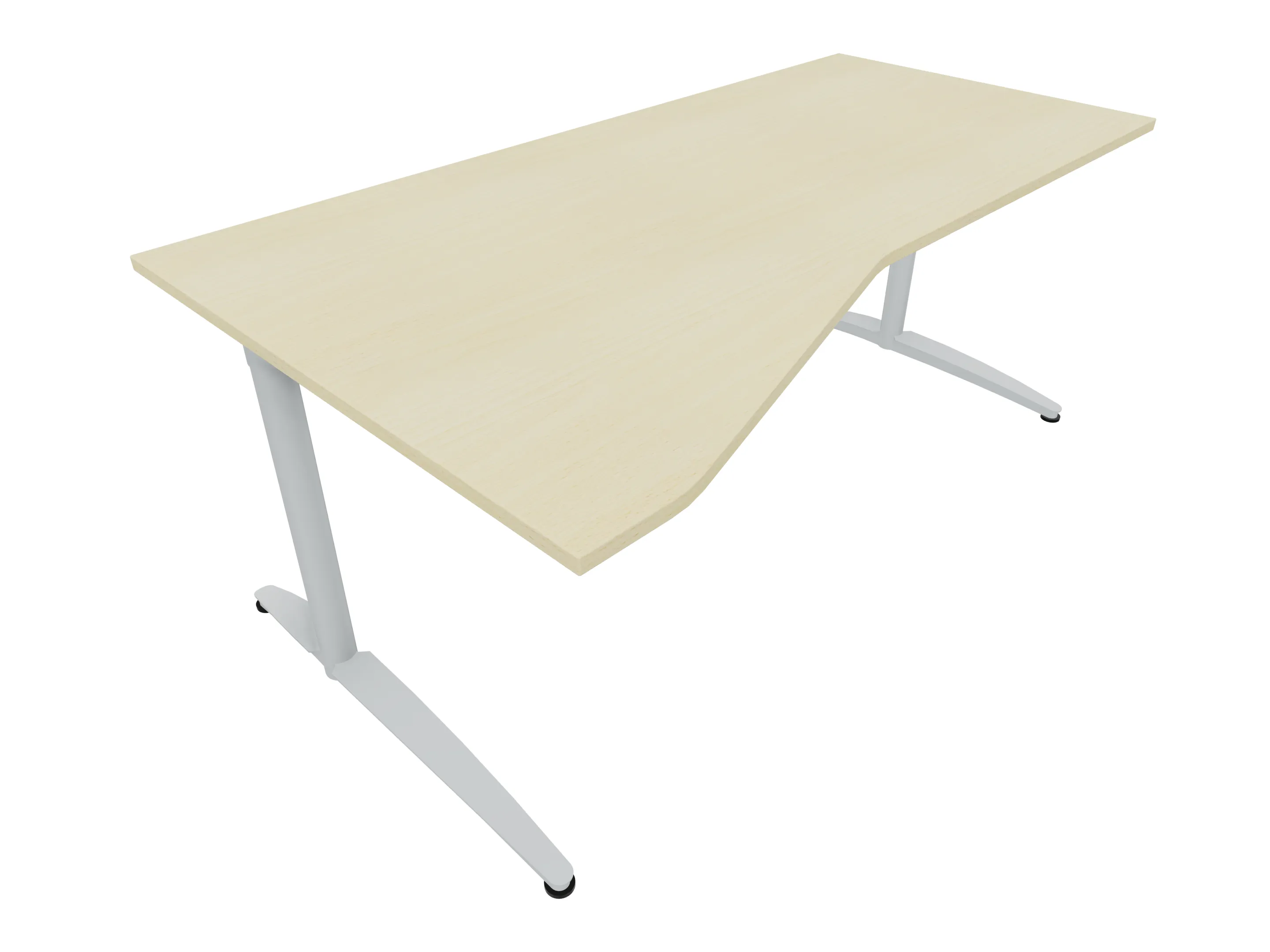 Bureau met 2 poten, waarvan de linker is teruggeplaatst en koppelbaar (T-poot, vaste hoogte 720mm) in de afmeting: 1600 x 800mm (BxD)