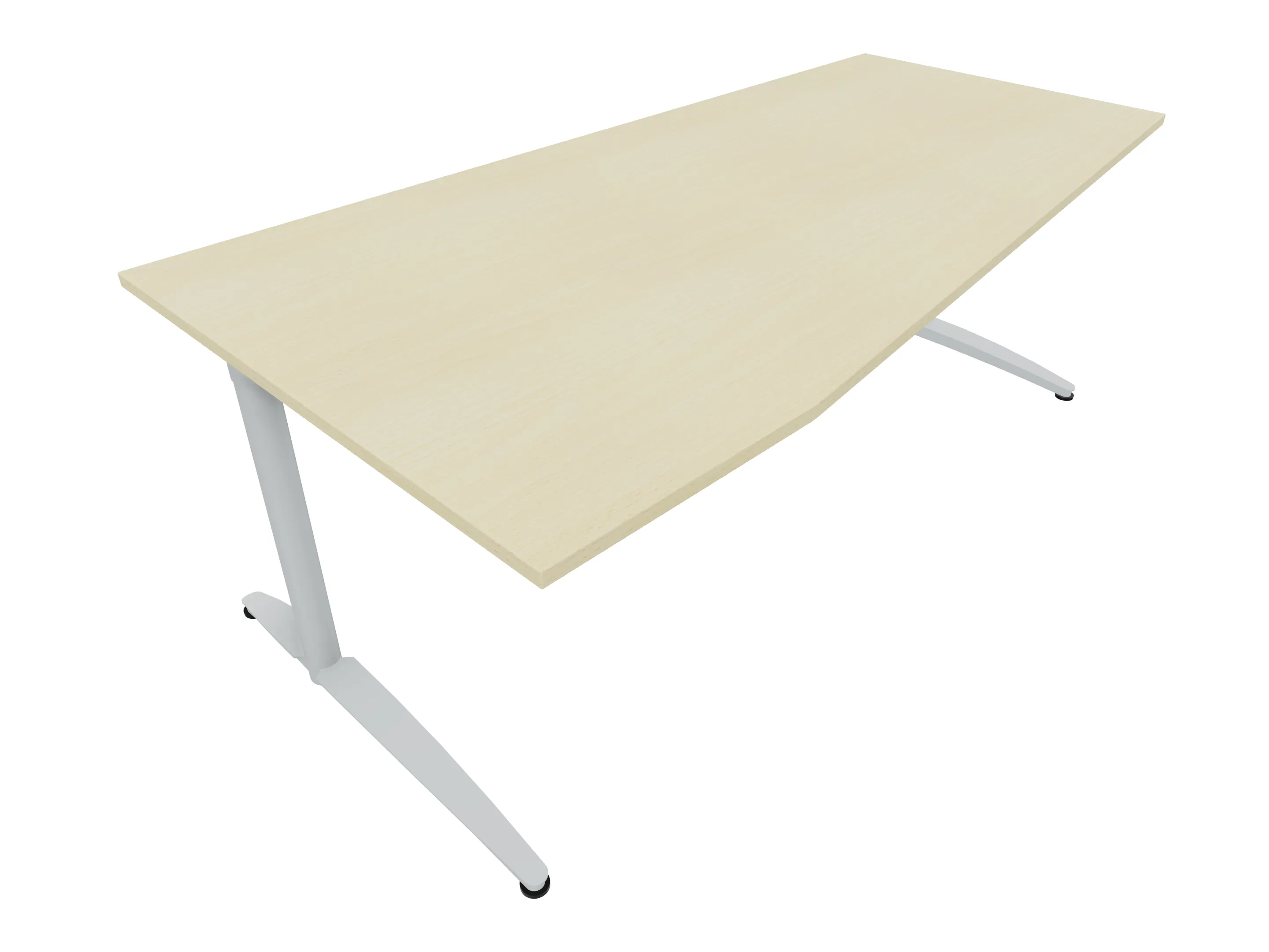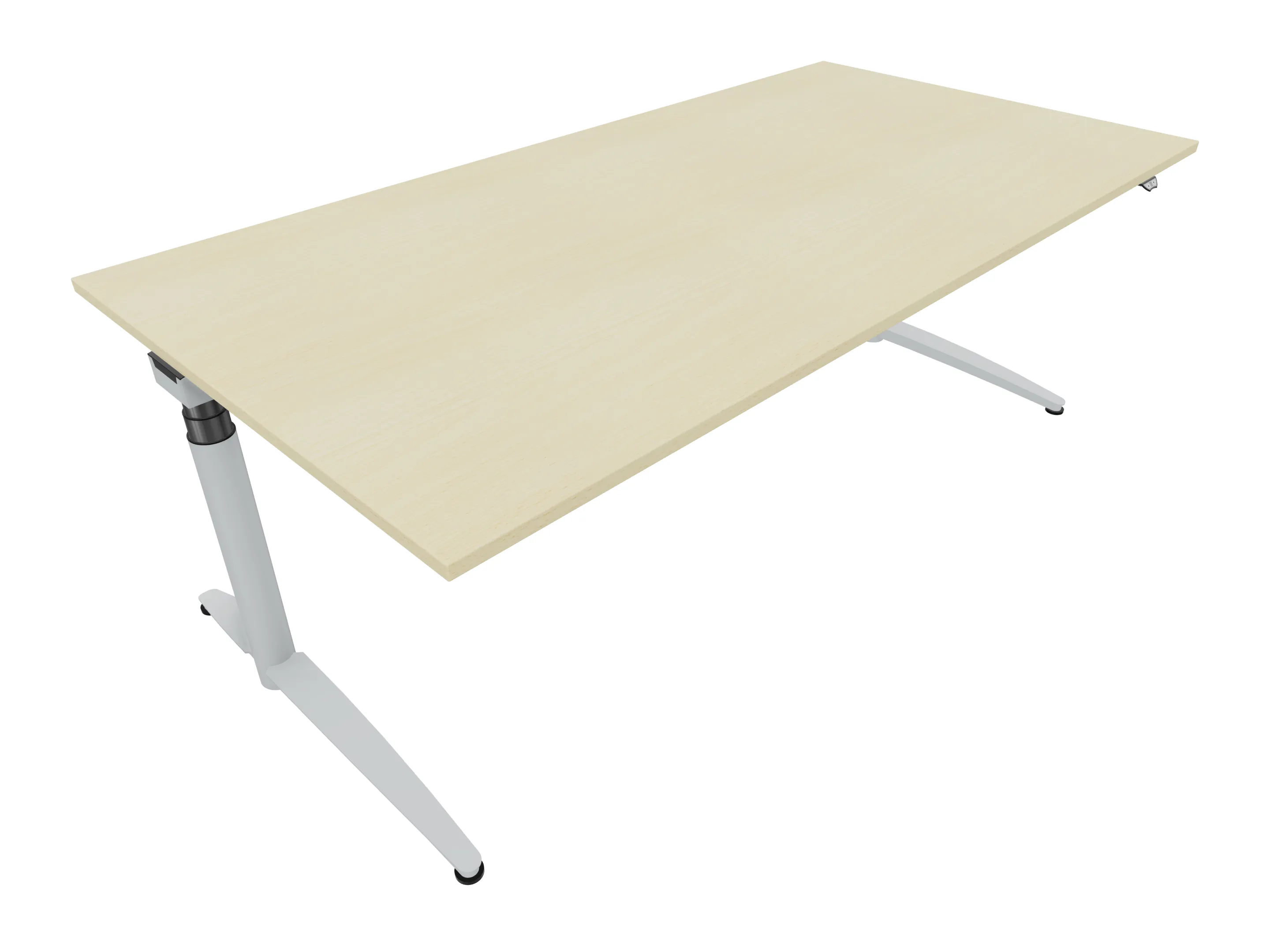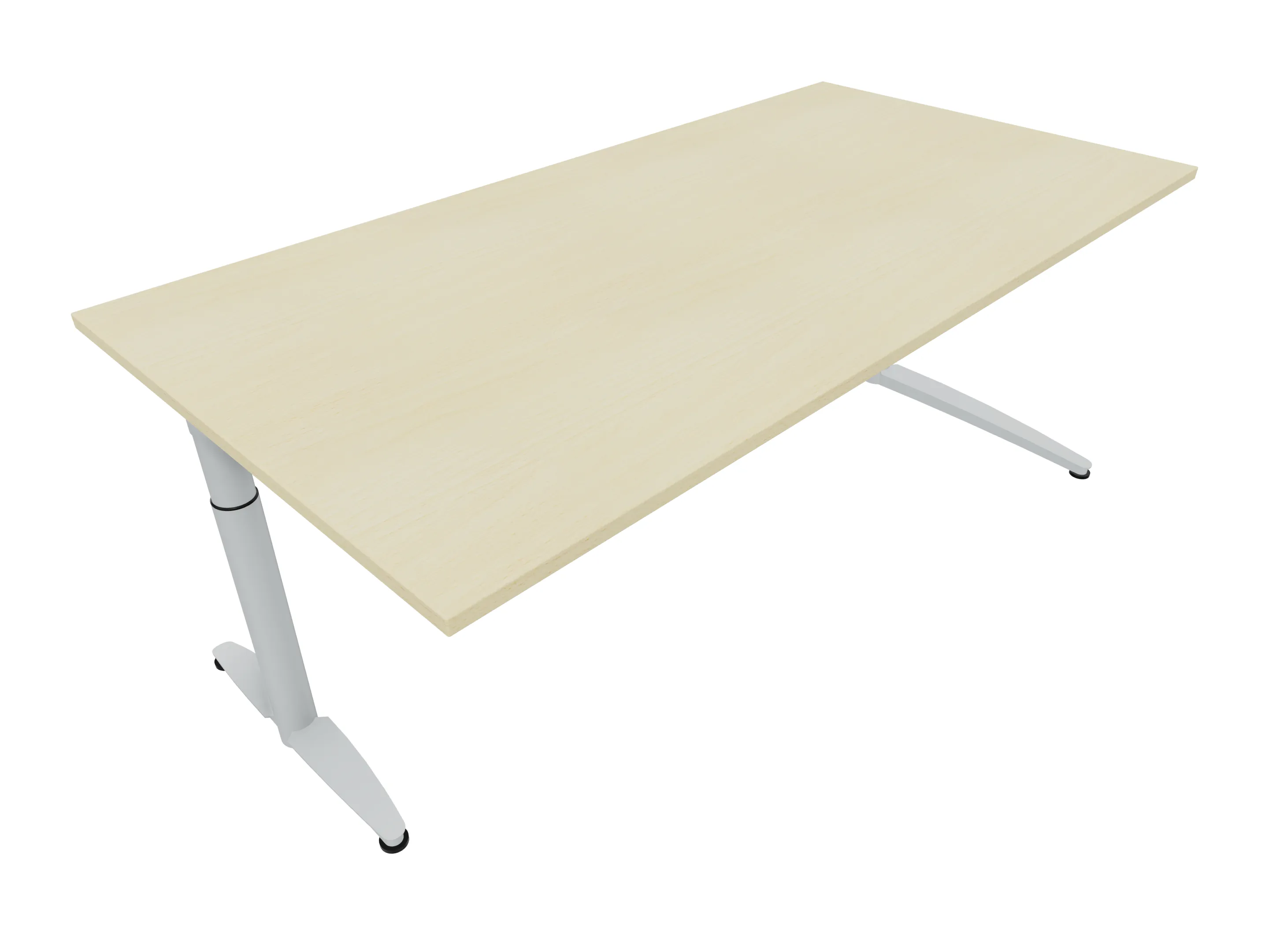 Bureau met 2 poten, waarvan de linker is teruggeplaatst en koppelbaar (T-poot, vaste hoogte 720mm) in de afmeting: 2000 x 800mm (BxD)