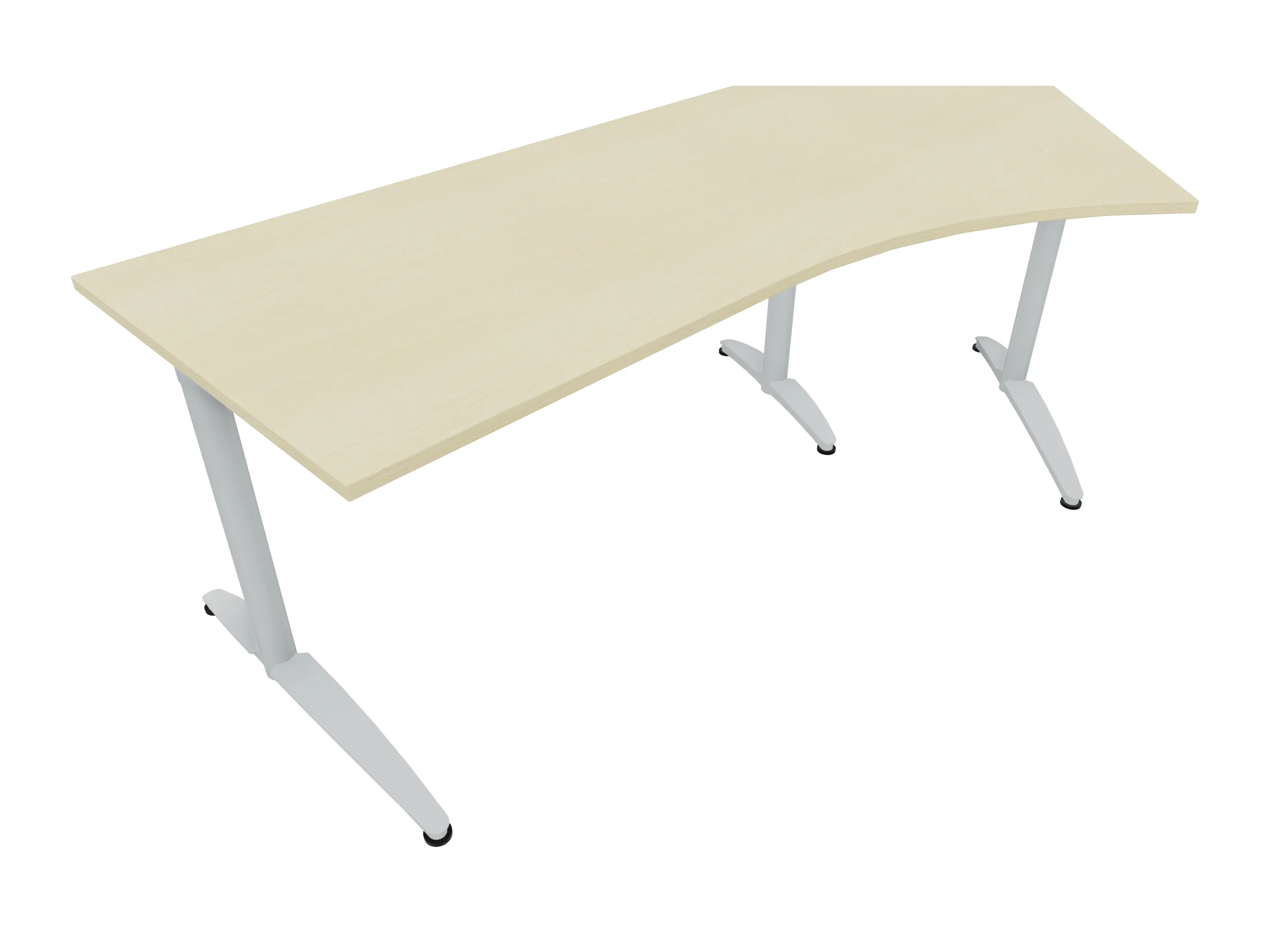 Bureau met 2 poten, waarvan de linker is teruggeplaatst en koppelbaar (T-poot, vaste hoogte 720mm) in de afmeting: 1200 x 900mm (BxD)