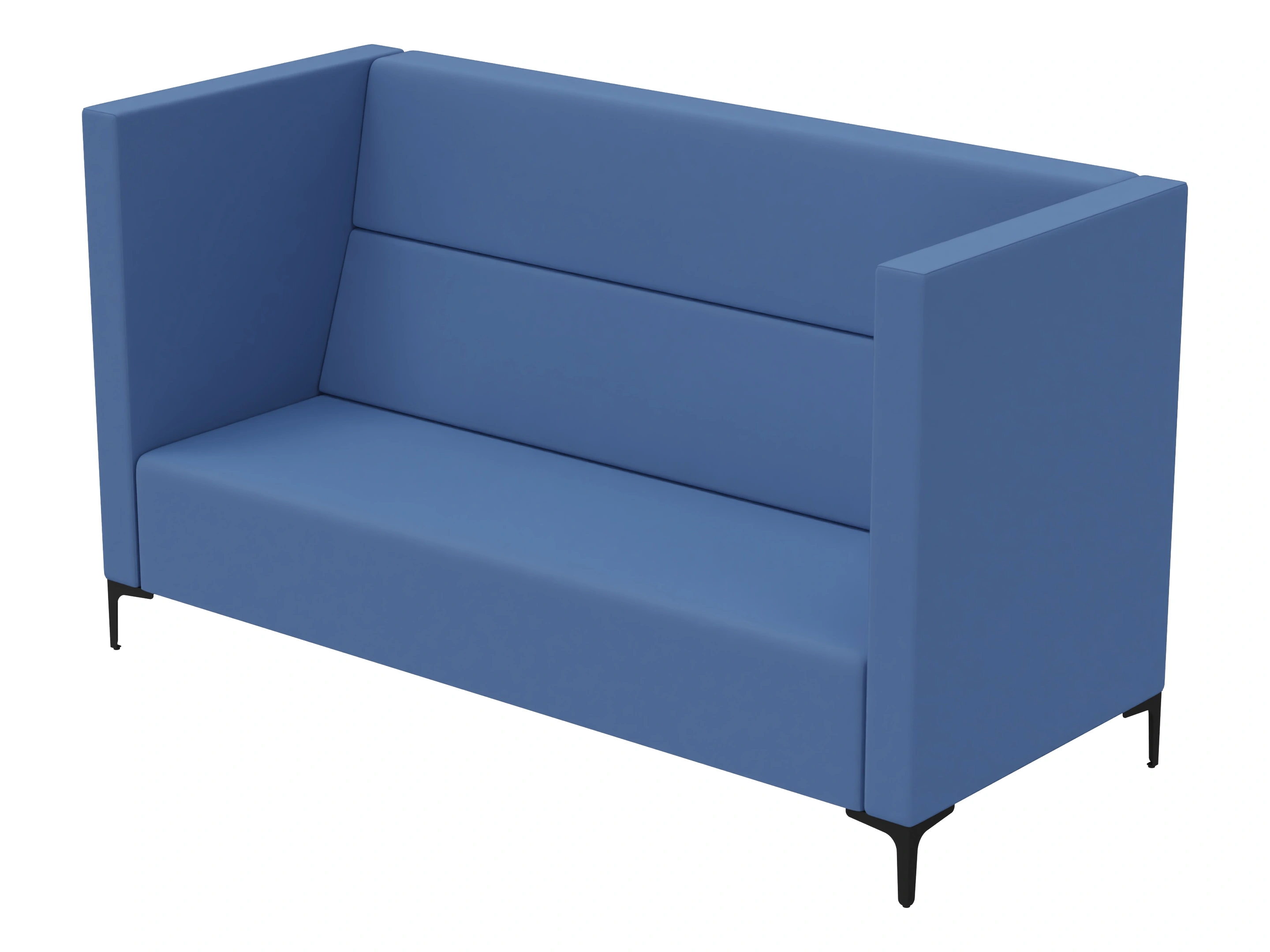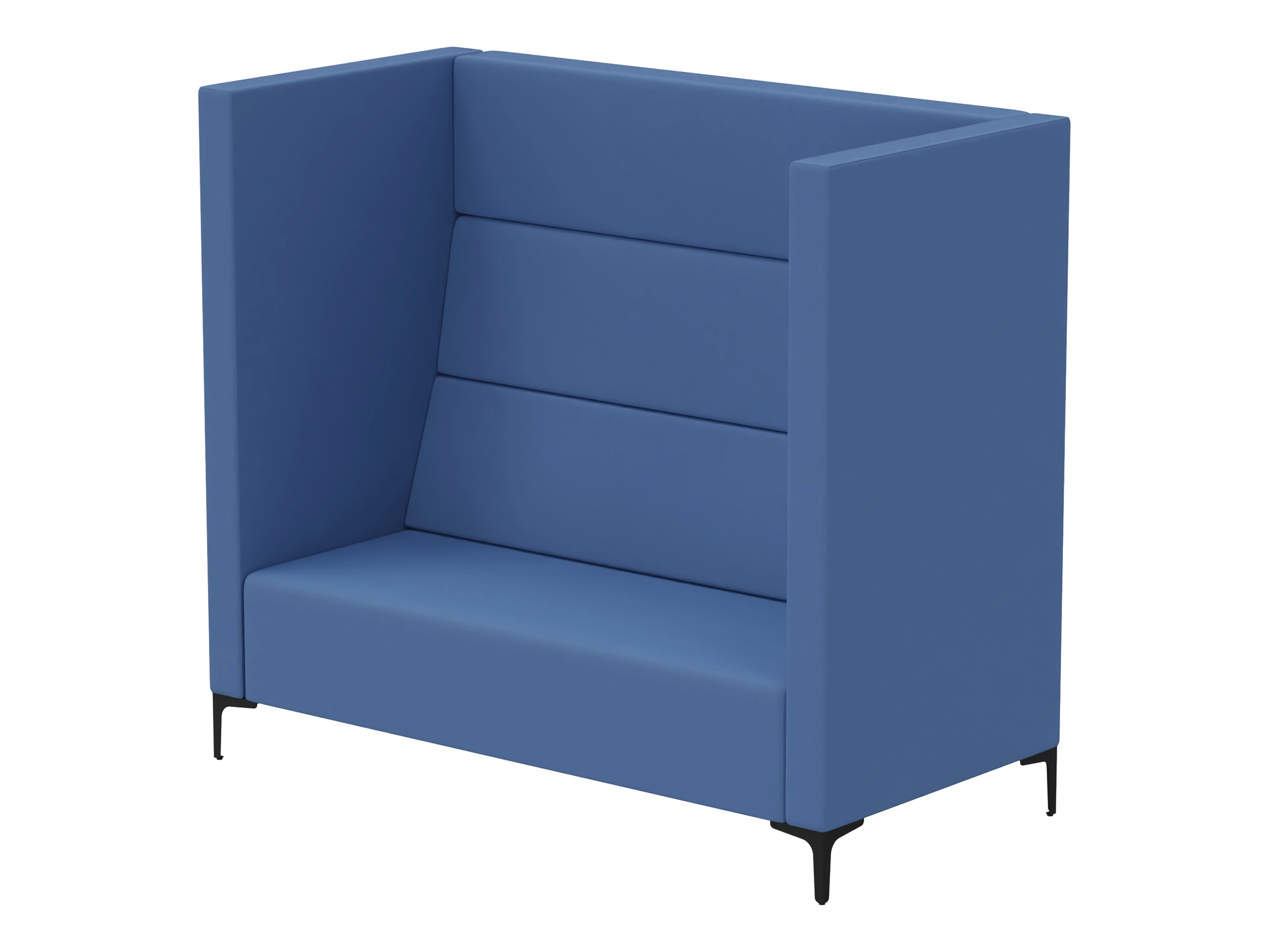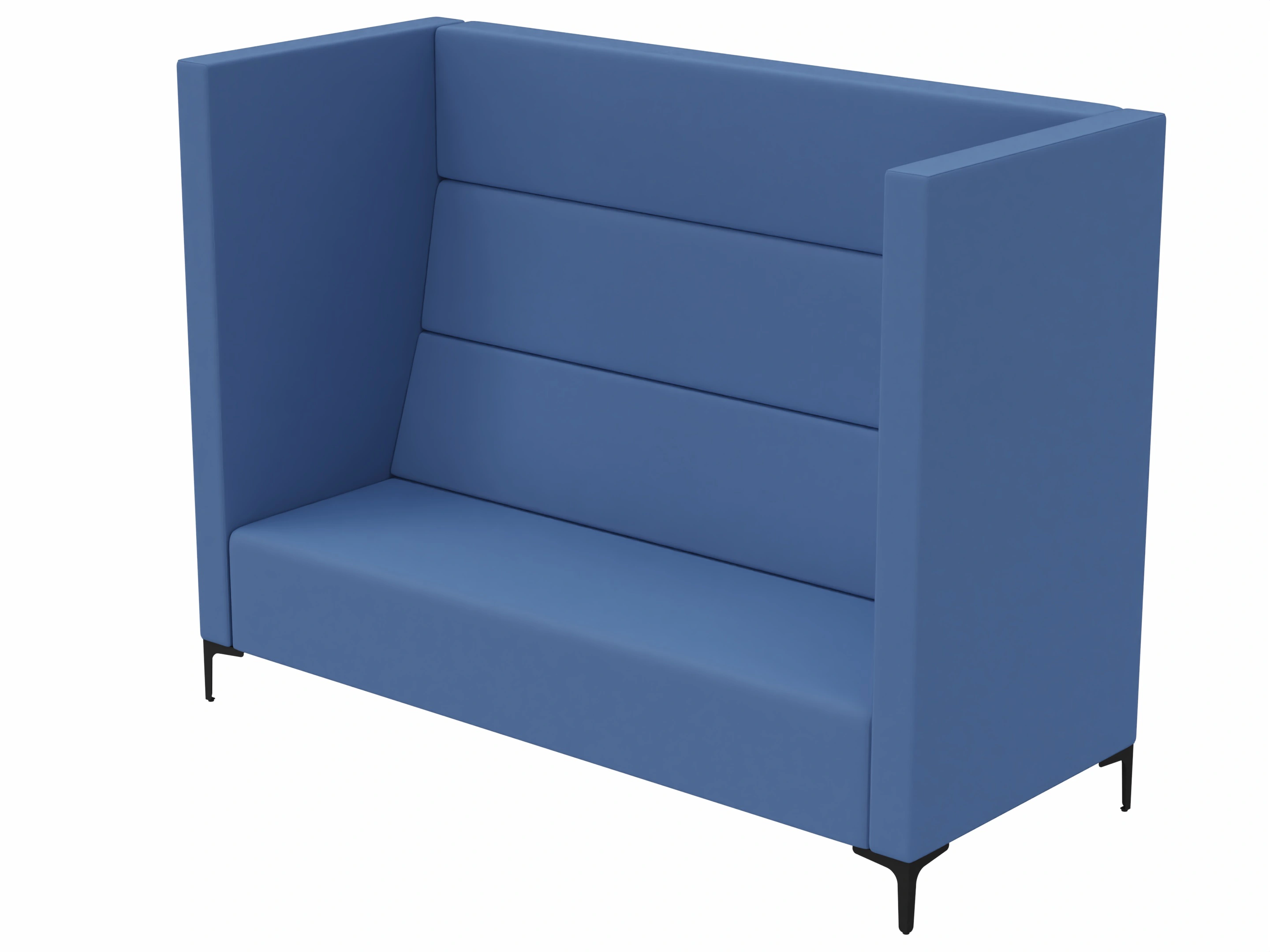 Volledig gestoffeerde bank met hoge rug en zijpanelen. Afmeting: 140x83x150cm (BxDxH)