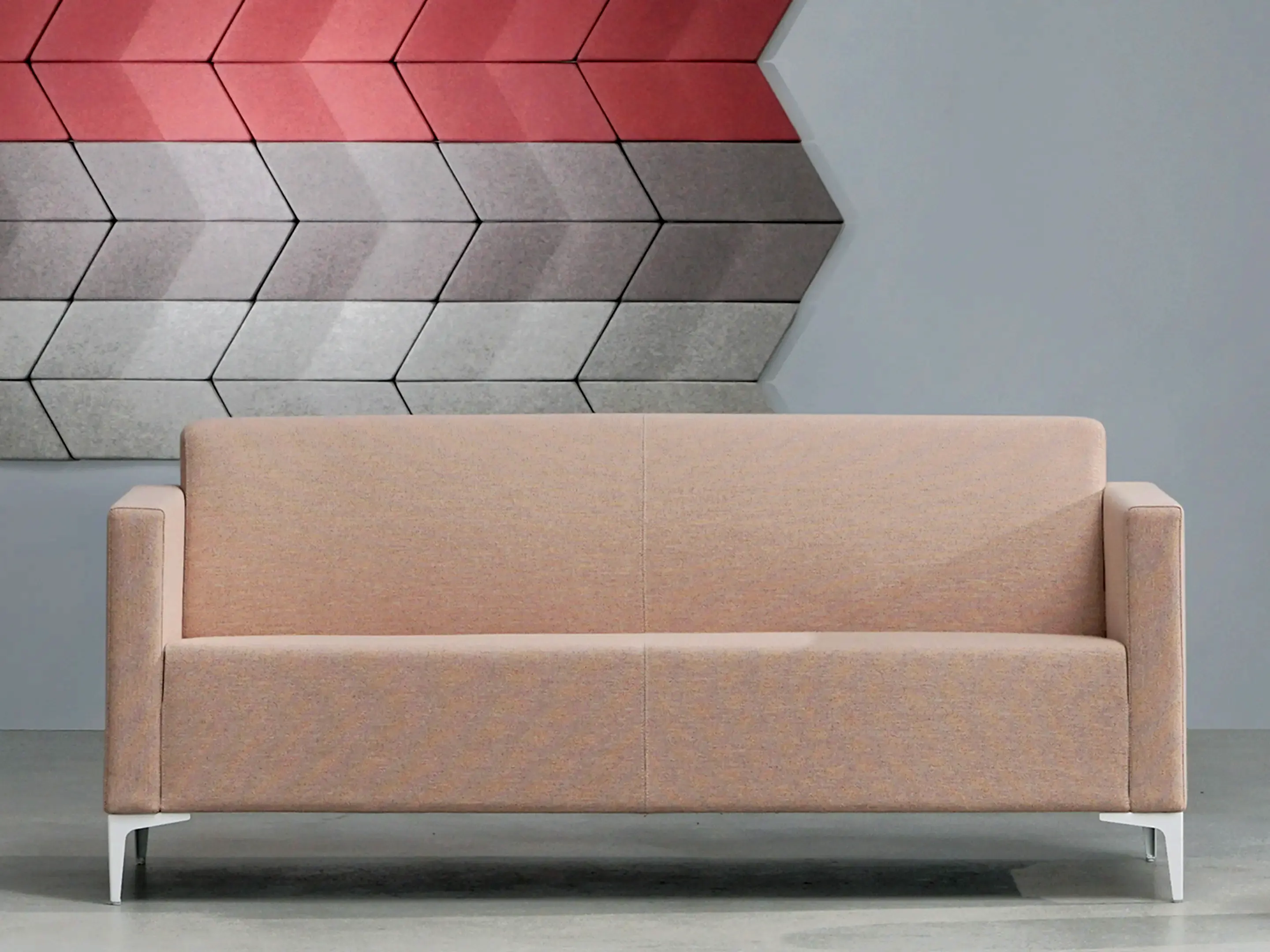 Volledig gestoffeerde bank met armleuningen. Afmeting: 130x74x78cm (BxDxH)