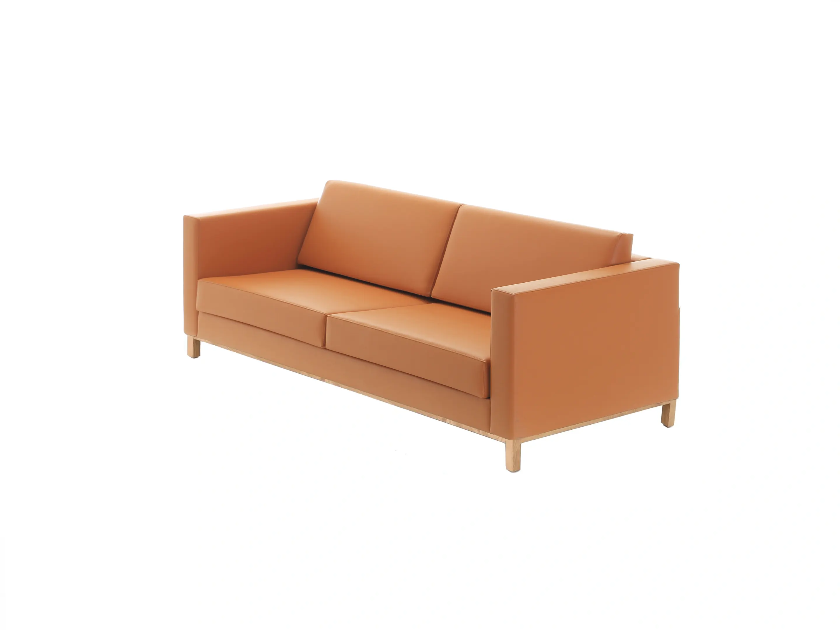 Volledig gestoffeerde bank met armleuningen. Afmeting: 185x74x78cm (BxDxH)