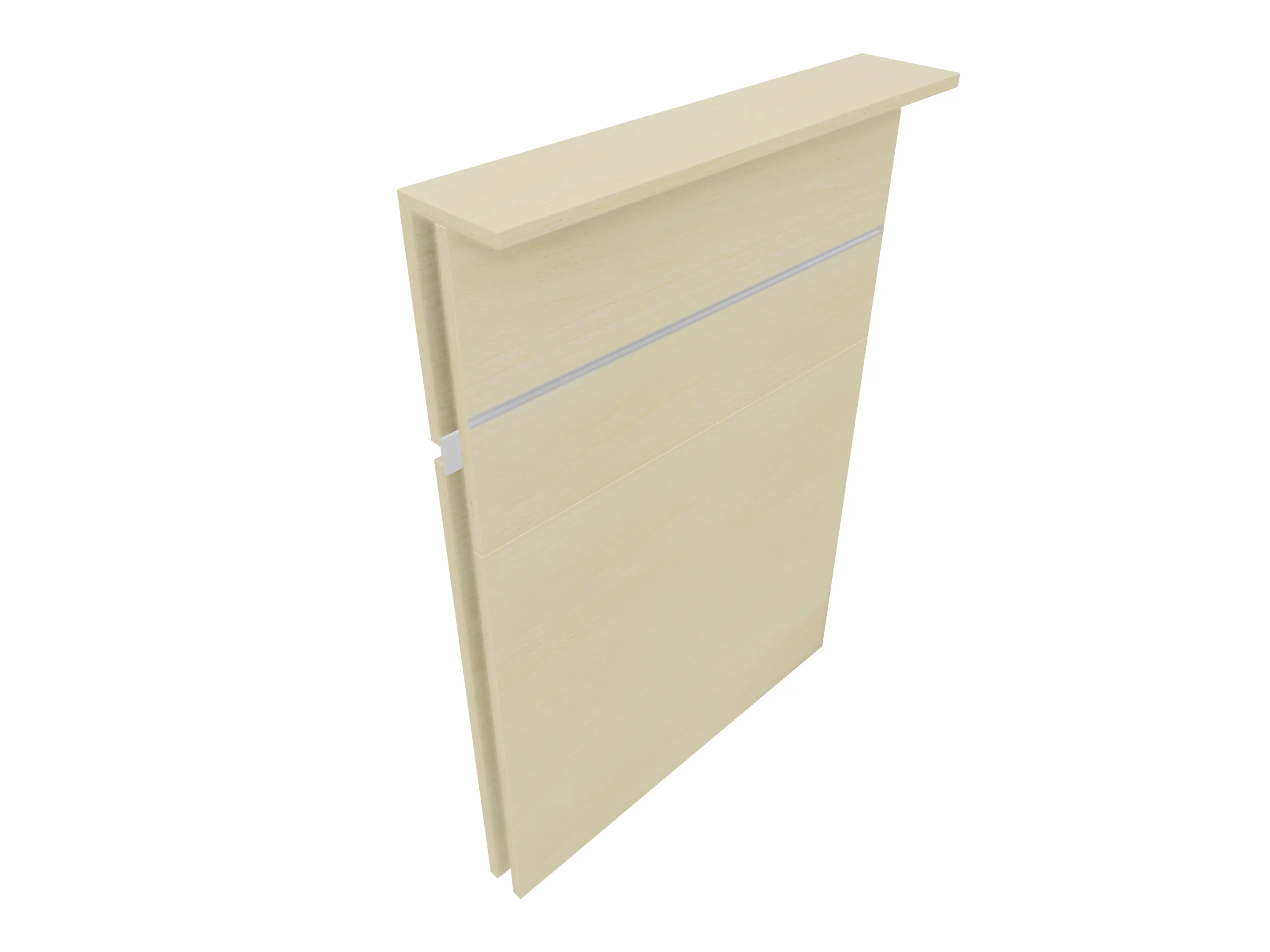 Zijpaneel met een afneembaar functiepaneel. Balie heeft links en rechts een 90º hoekverbinding (uitsluitend verbinding met frontpanelen) en de bruikbare breedte is 2000mm. Afmeting: 2156 x 1150 x 160mm (BxHxD)