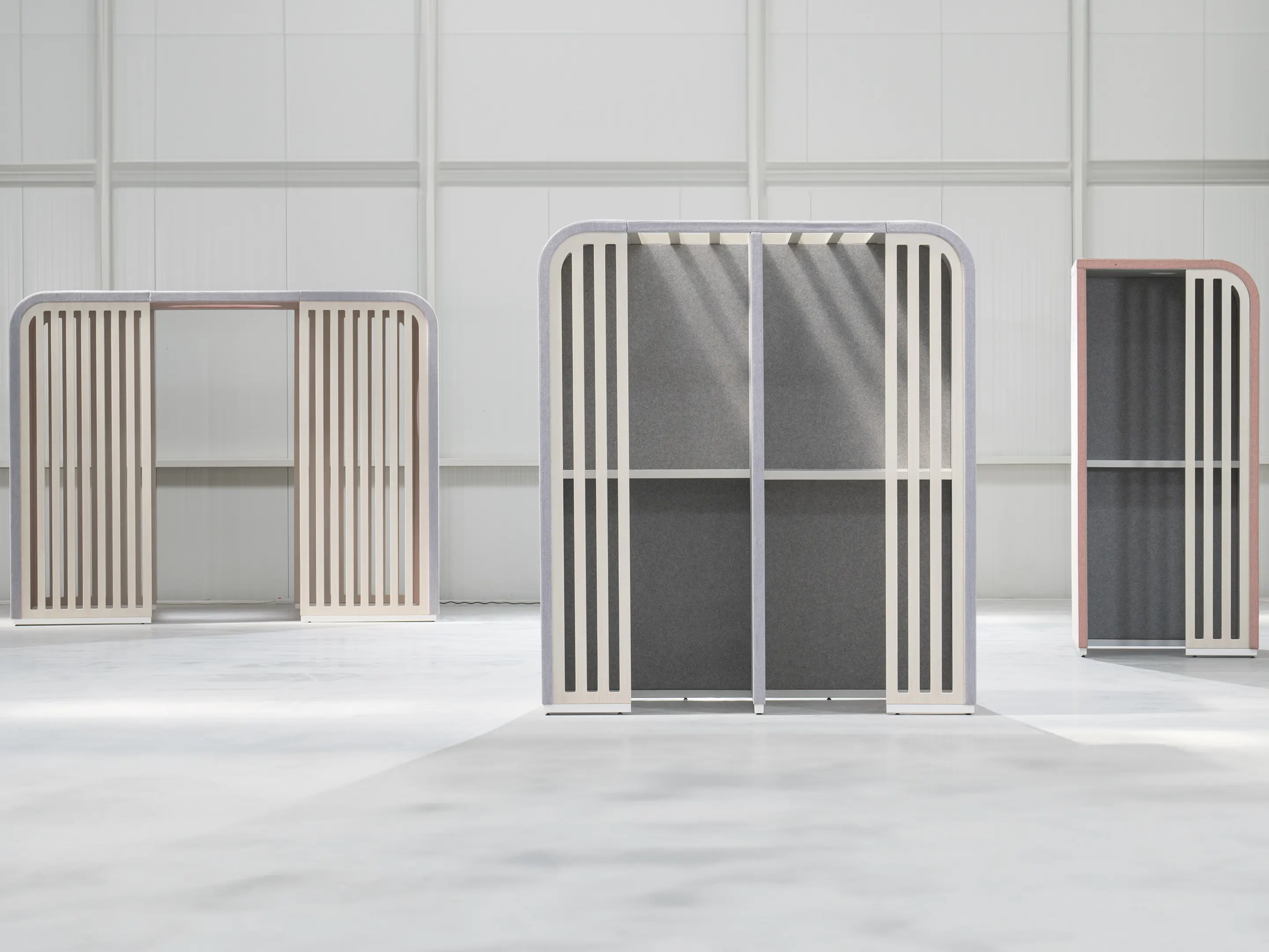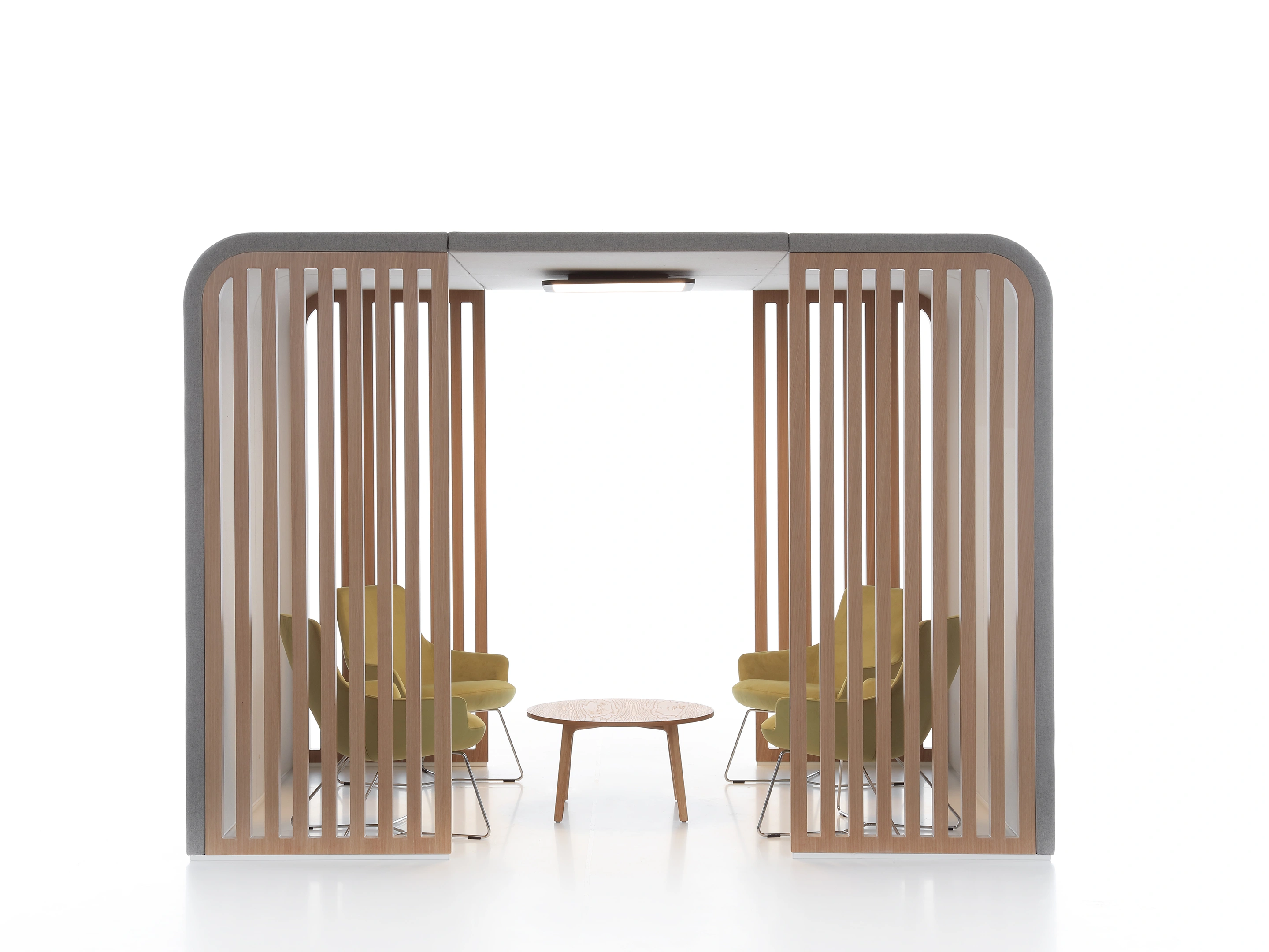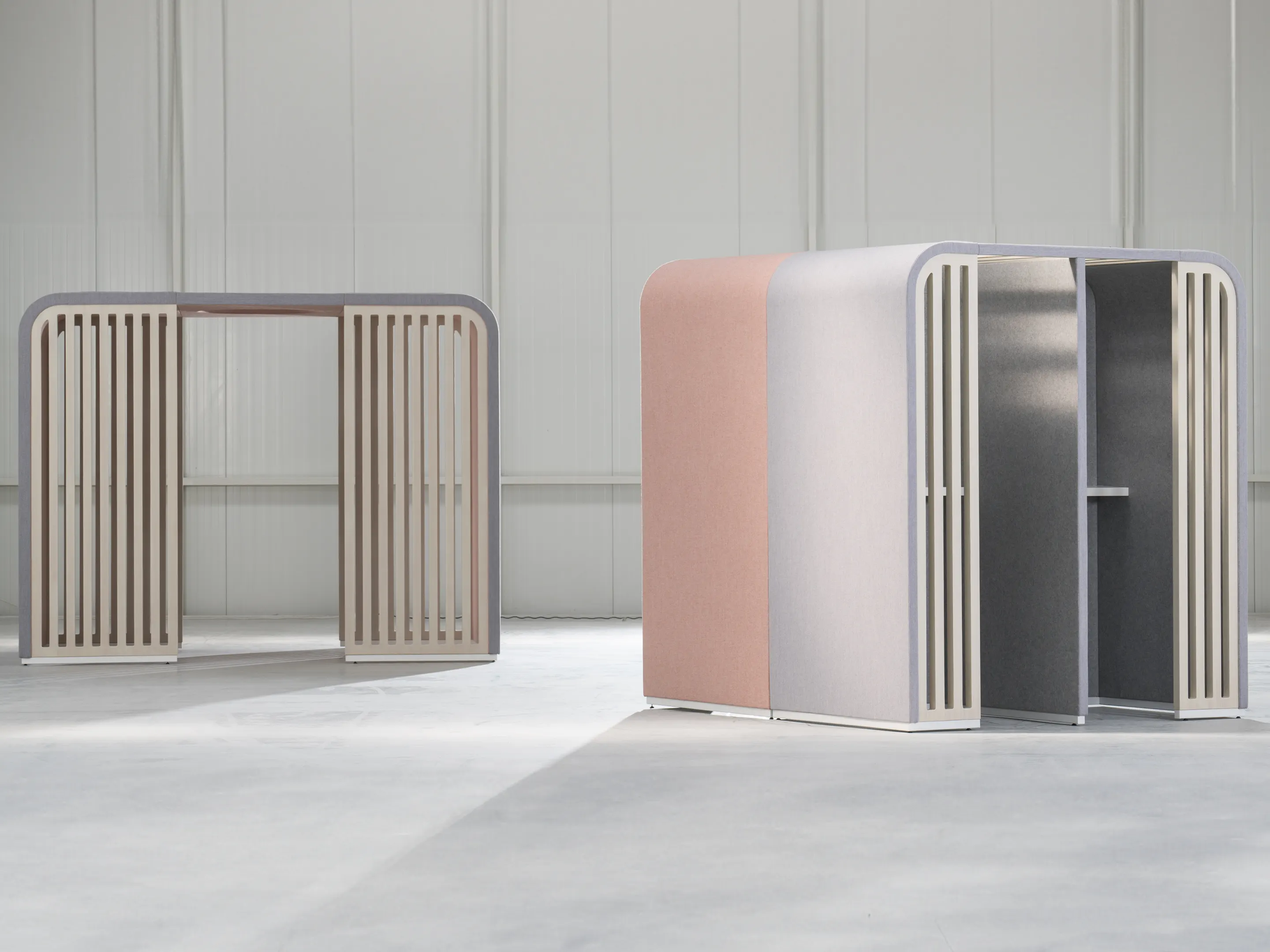 Gestoffeerde ombouw (de basis van chalet), incl. Rails voor te plaatsen inzetstukken. Afmeting: 267x220x220cm (BxDxH). Doorloop is 80cm wanneer inzetstukken zijn geplaatst.