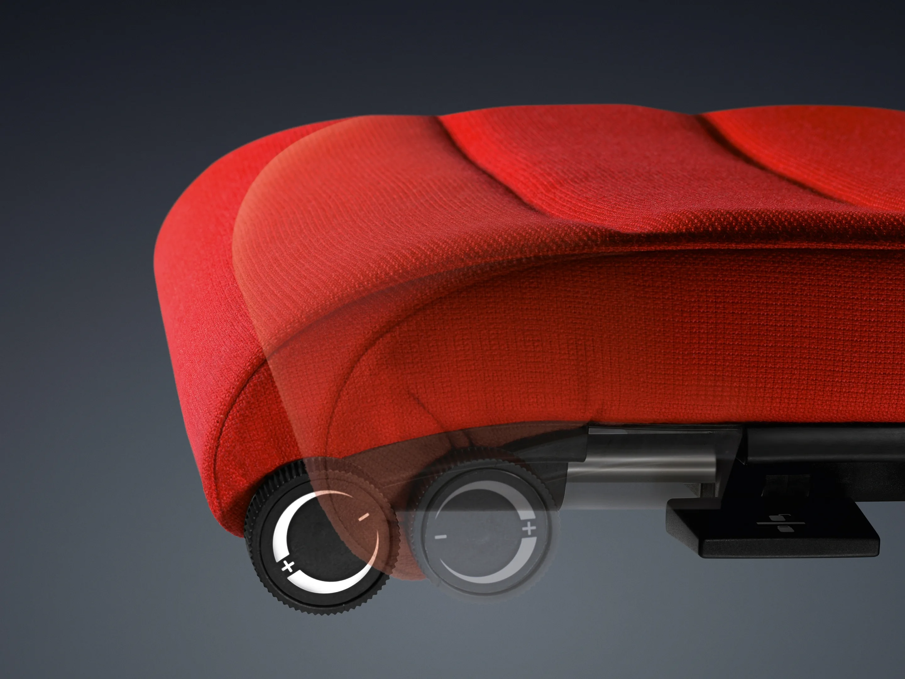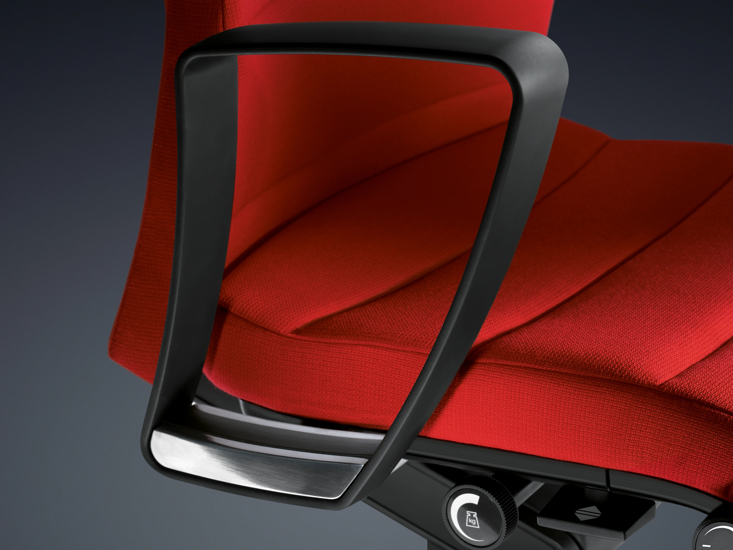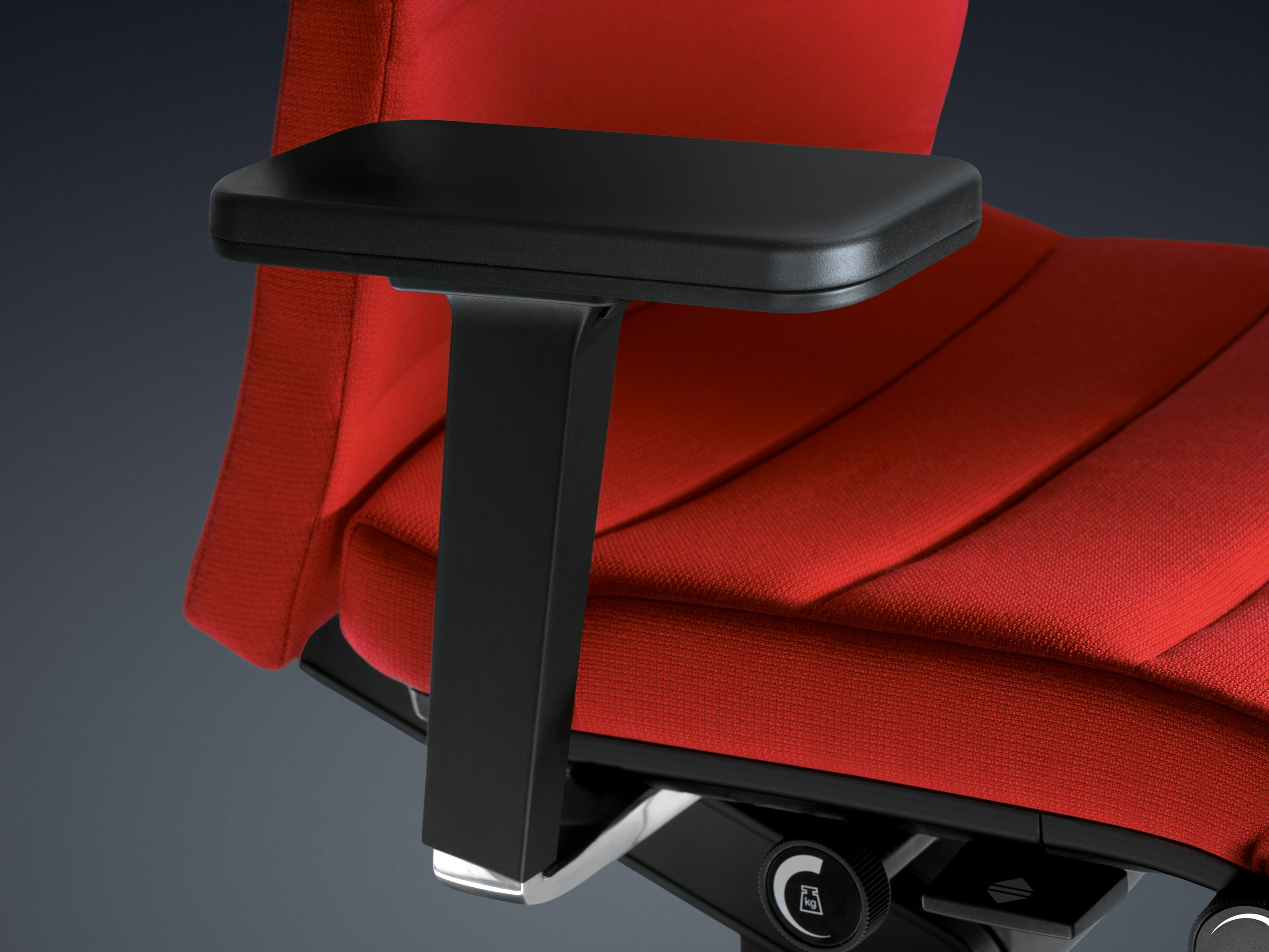Bureaustoel met body-float synchroonmechaniek, gewichtsregeling traploosinstellbaar, zithoogte: 415-535mm, Rugleuning 6cm instelbaar, mechanische zitdieptevering, standaard een kunststof voetkruis.