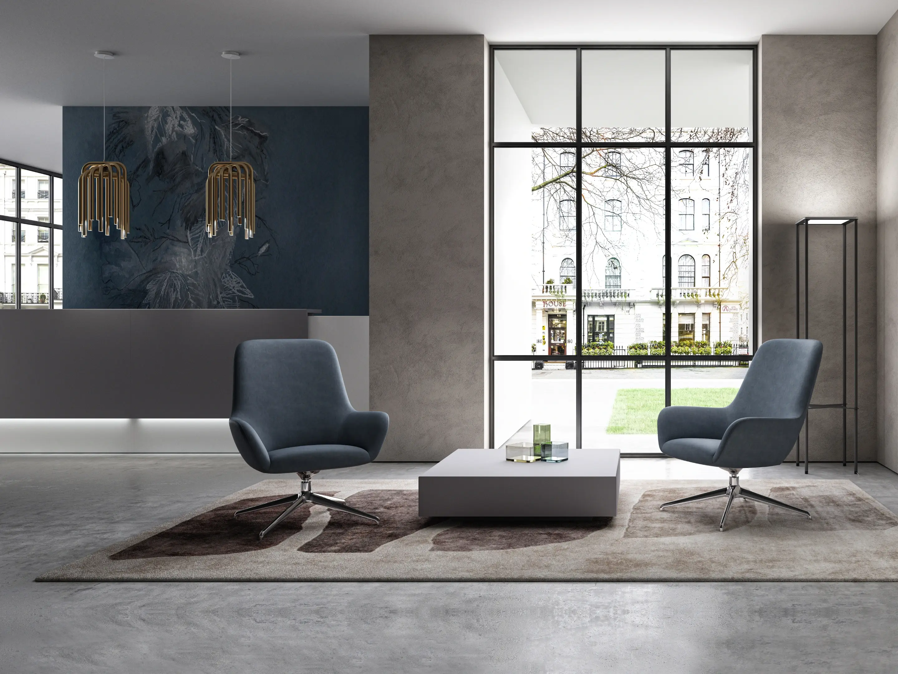Volledig gestoffeerde fauteuils met een Medium rug op een metalen 4-teens voetkruis voorzien van glijdoppen.