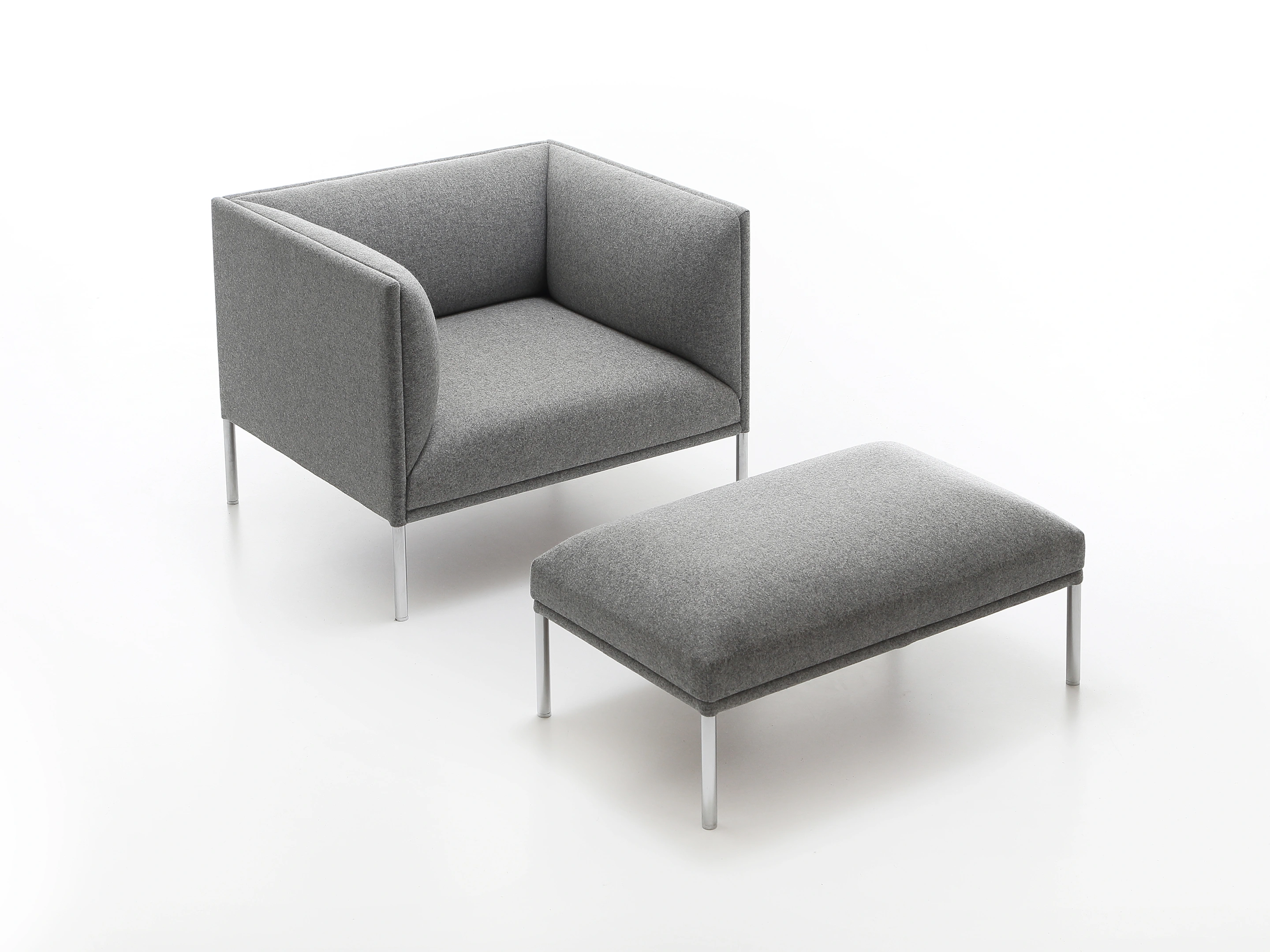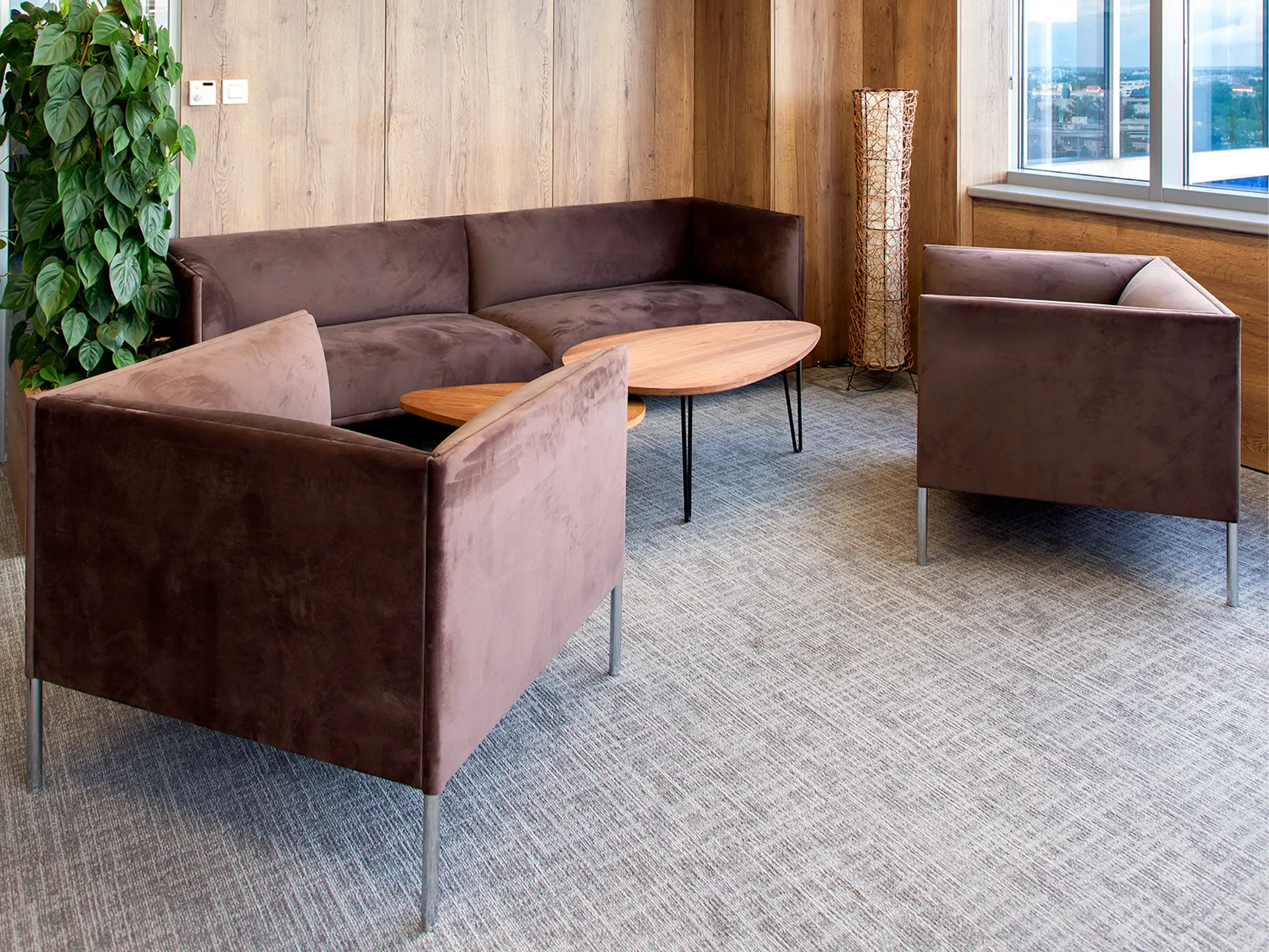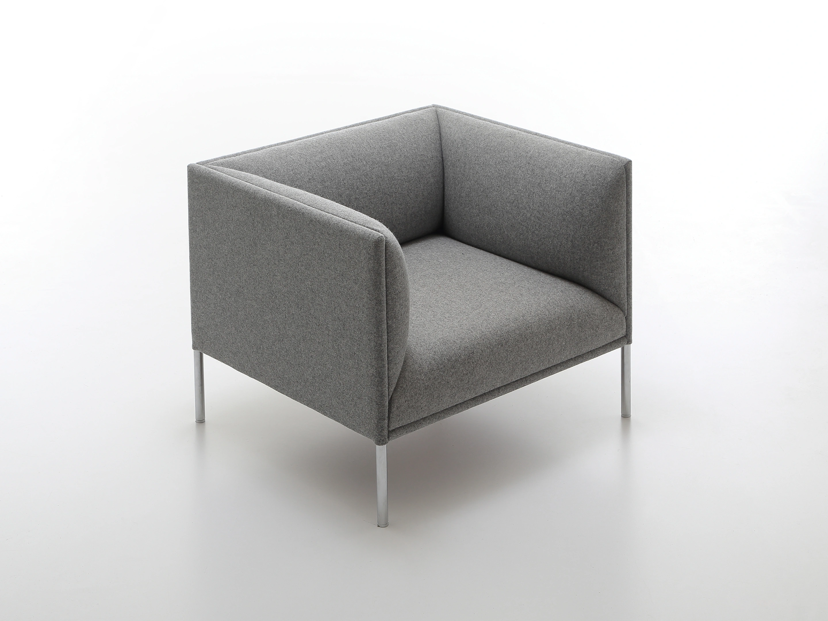 Volledig gestoffeerd fauteuil met zij en rugkussens.