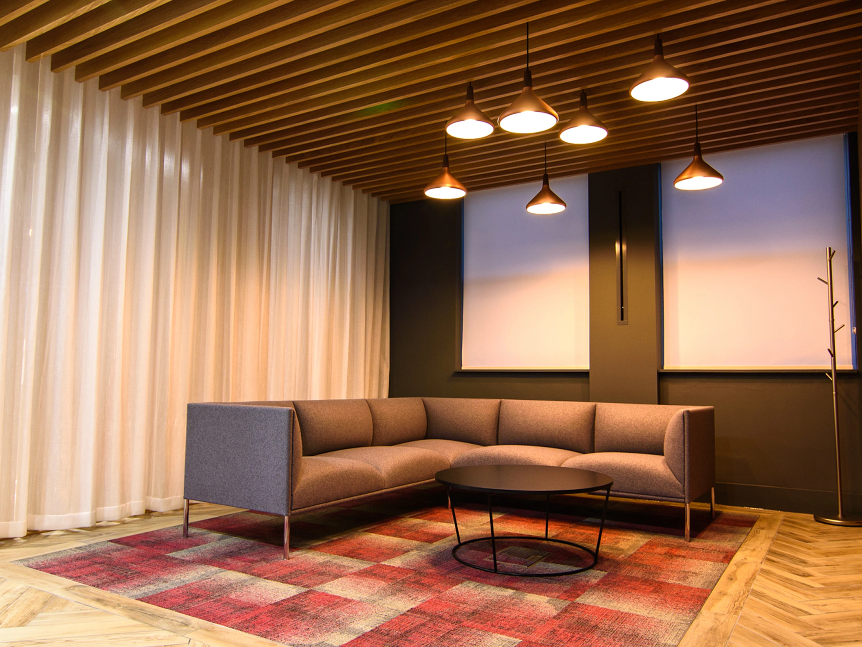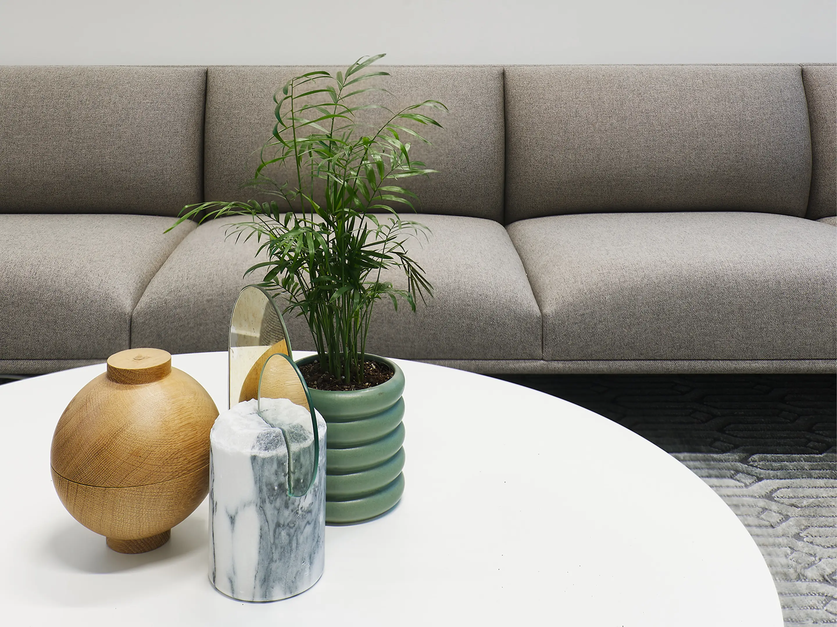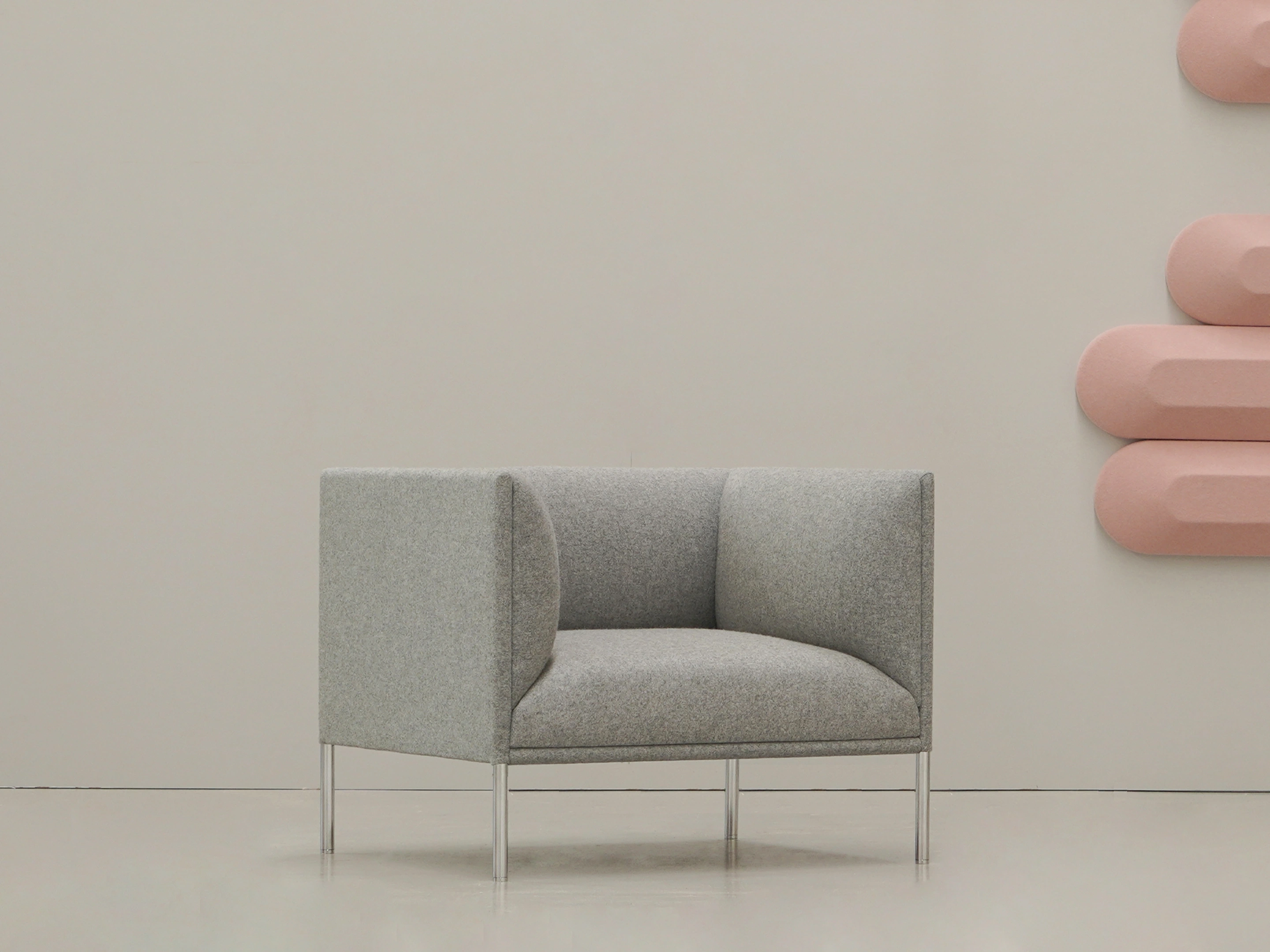 Volledig gestoffeerd fauteuil met zij en rugkussens.