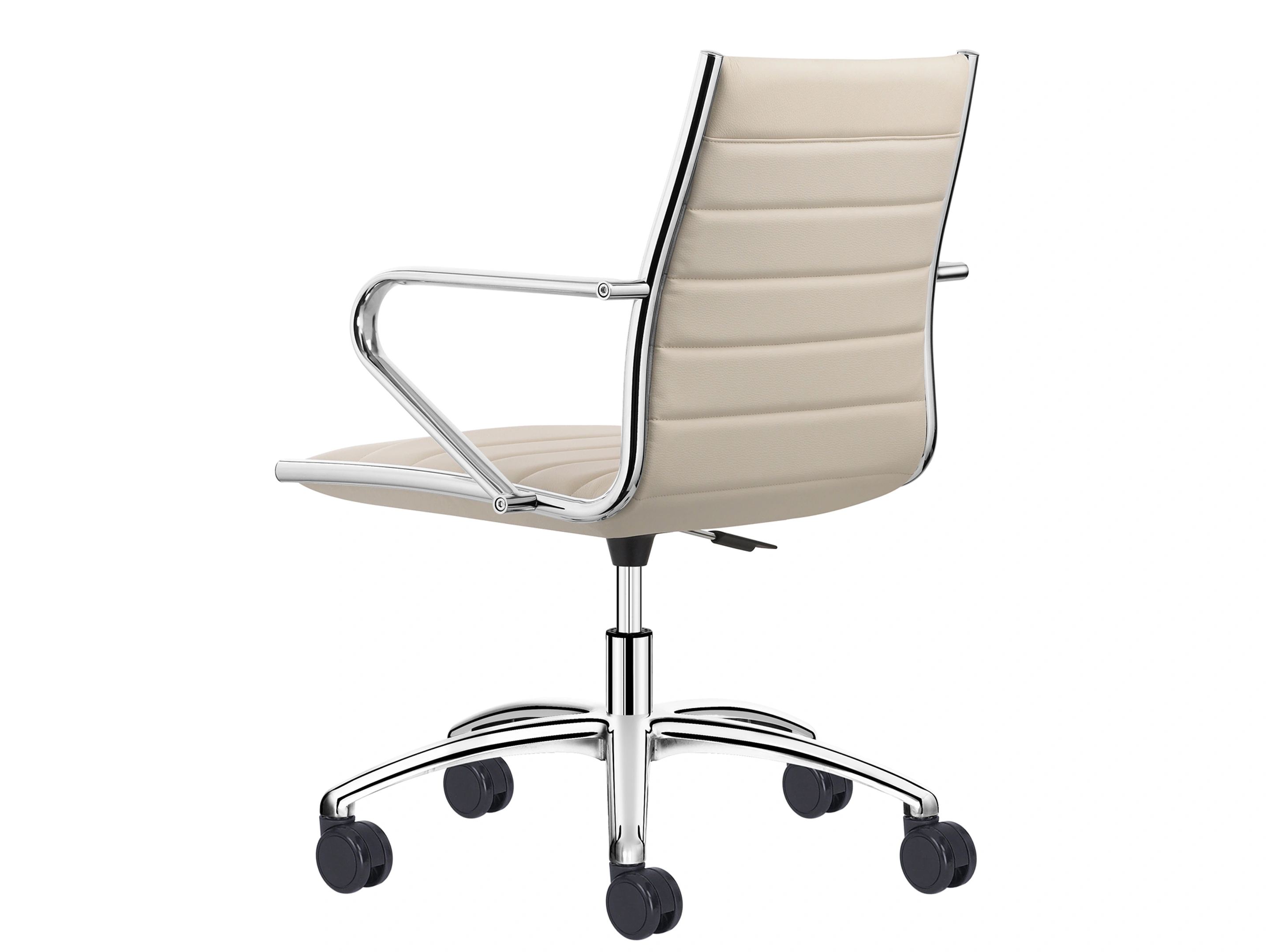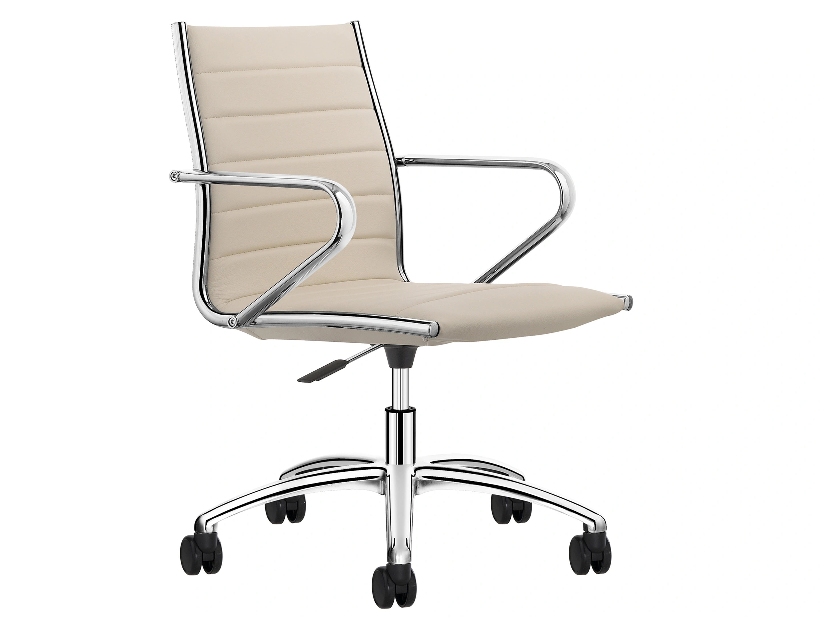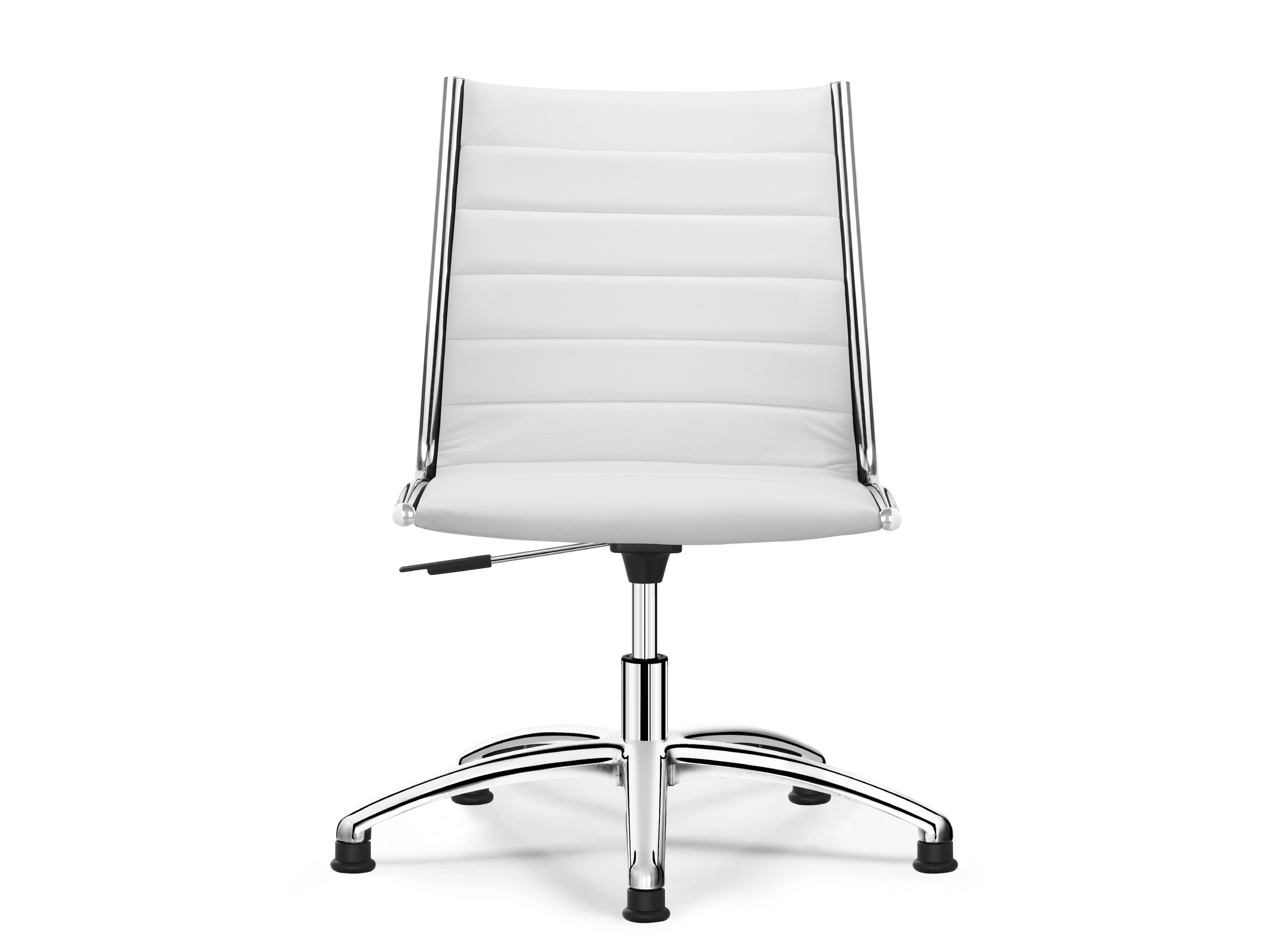 Vergaderstoel met self-return gaslift exclusief armleggers met een volledig gestoffeerde kuip voorzien van classic stiksel op 5-teens voetkruis voorzien van glijdoppen.