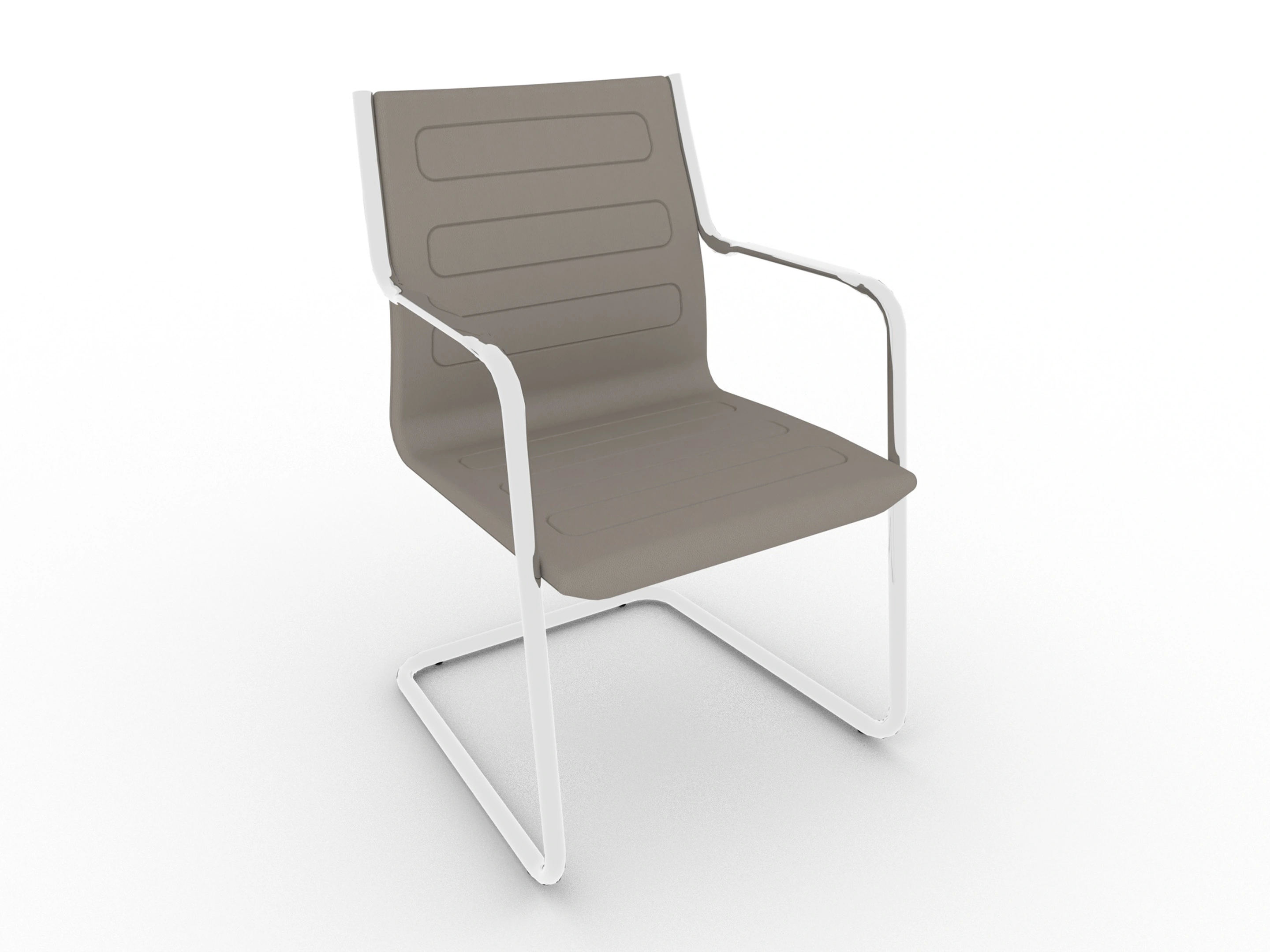 Bezoekersstoel met een volledig gestoffeerde kuip met Classic+ stiksel, op een sledeframe voorzien van armleggers.
