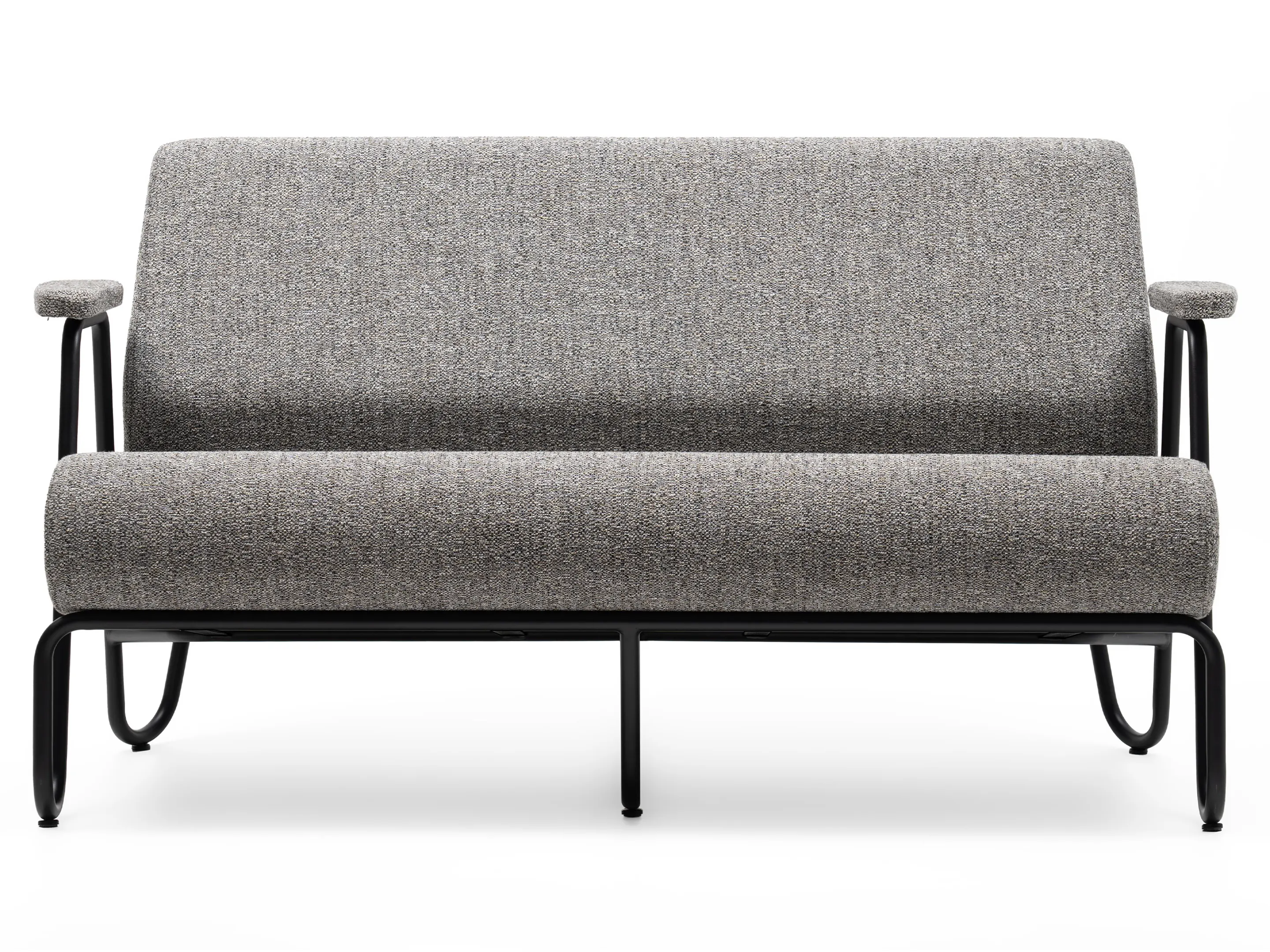 Volledig gestoffeerde 2-zits bank op een doorlopend 5-poots draadframe. Incl. armleuningen. Afmeting: 790 x 805 x 780mm (B x D x H). Zithoogte 420mm.
