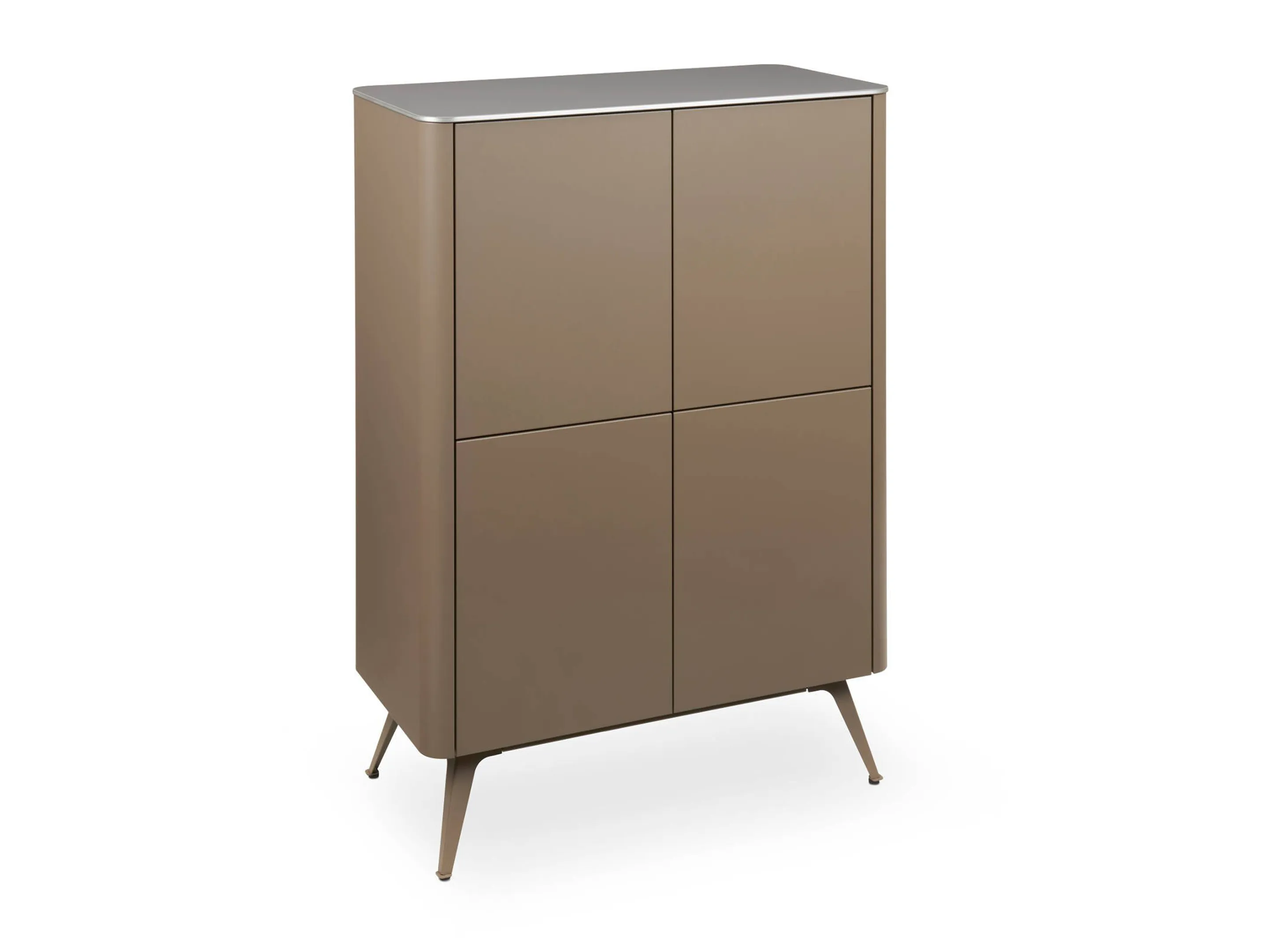 Kast volledig uit staal en een houten top. Voorzien van 4 HPL draaideuren en drie verstelbare legborden. Afmeting: 1700 x 740 x 450mm (BxHxD).