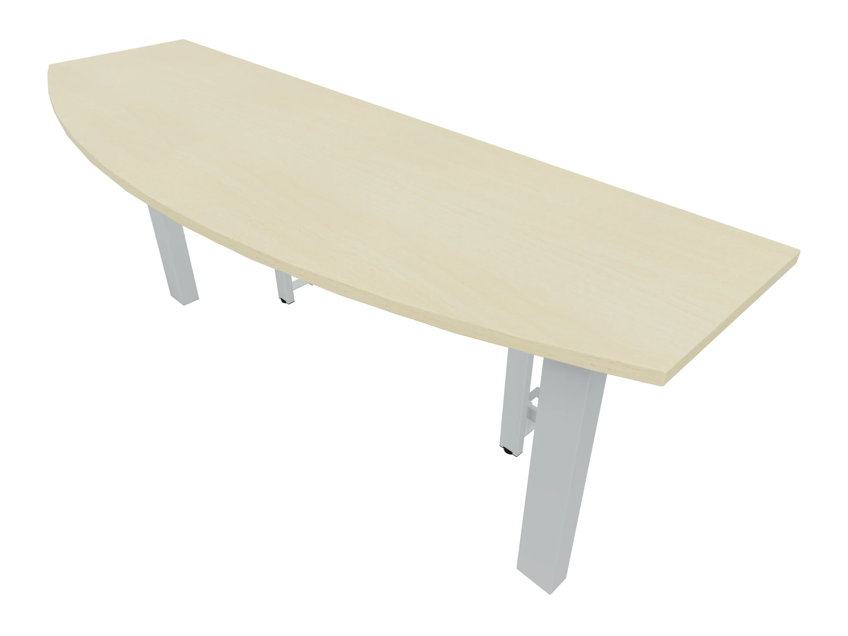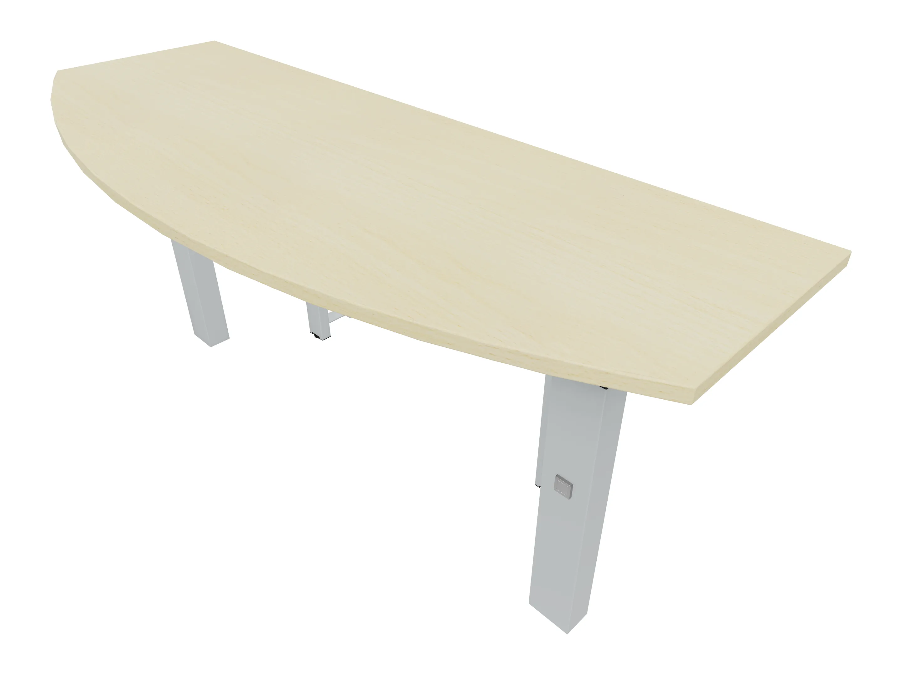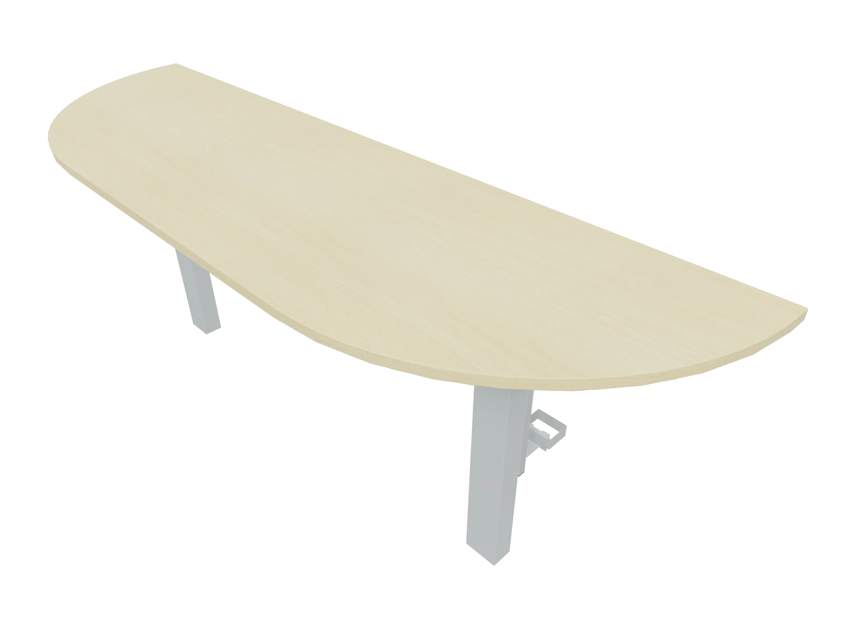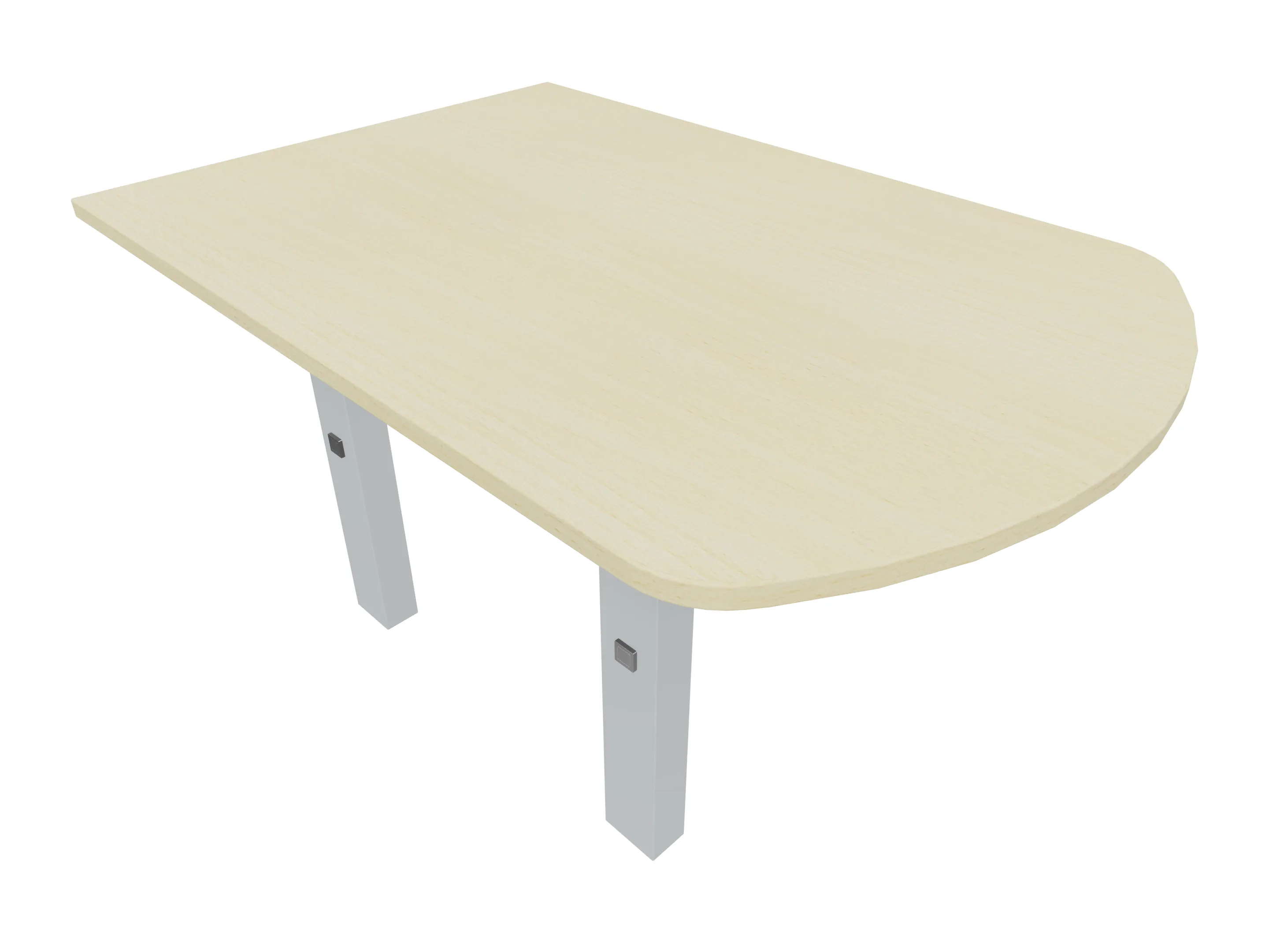 Aanbouwelement voor plaatsing aan zit-sta bureaus, van 1625mm breed en 800mm diep. Blad is voorzien van een doorlopende ronding, diameter 800mm. Inclusief twee koppel-steunpoten zonder hoogte verstelling.