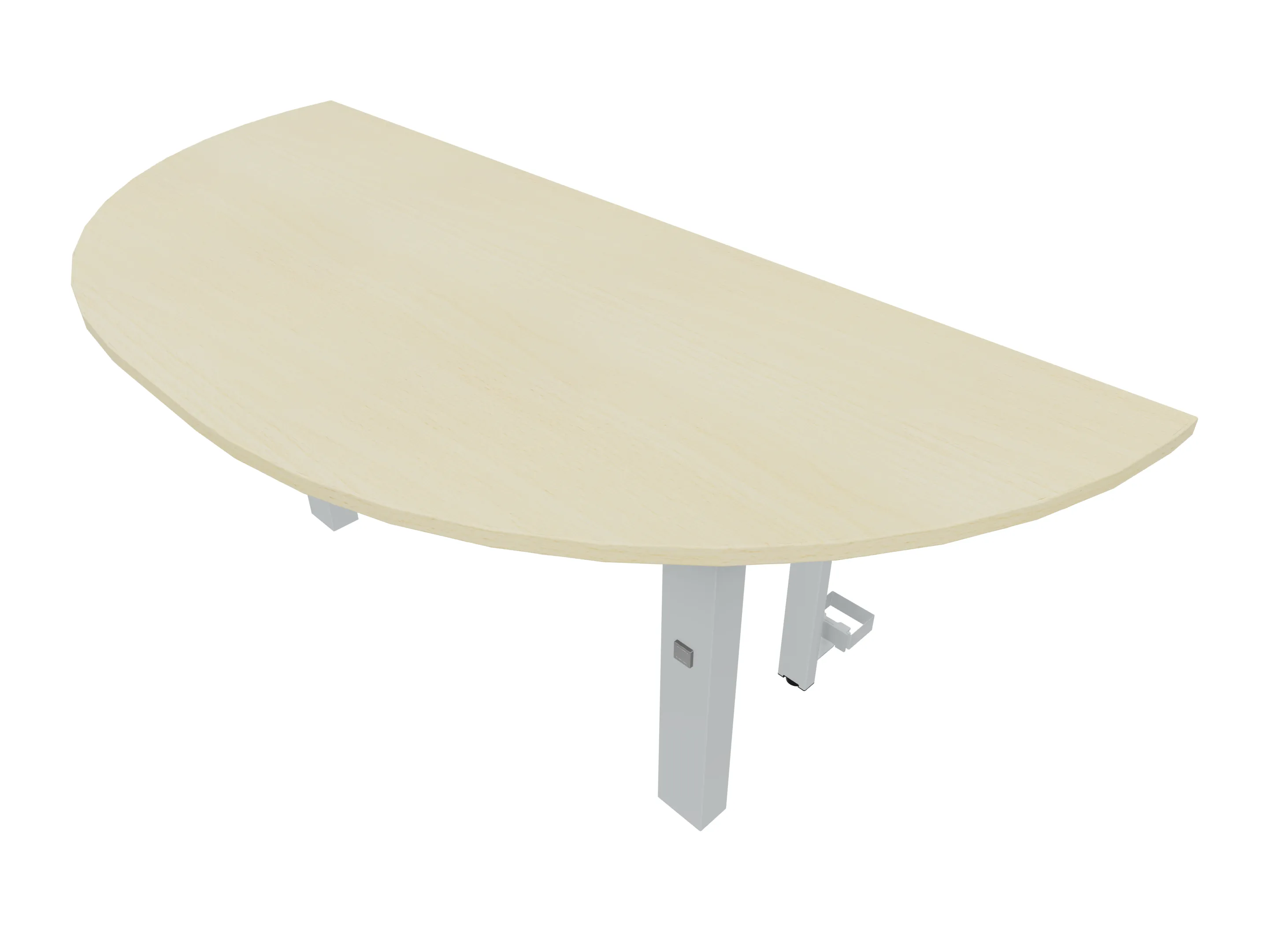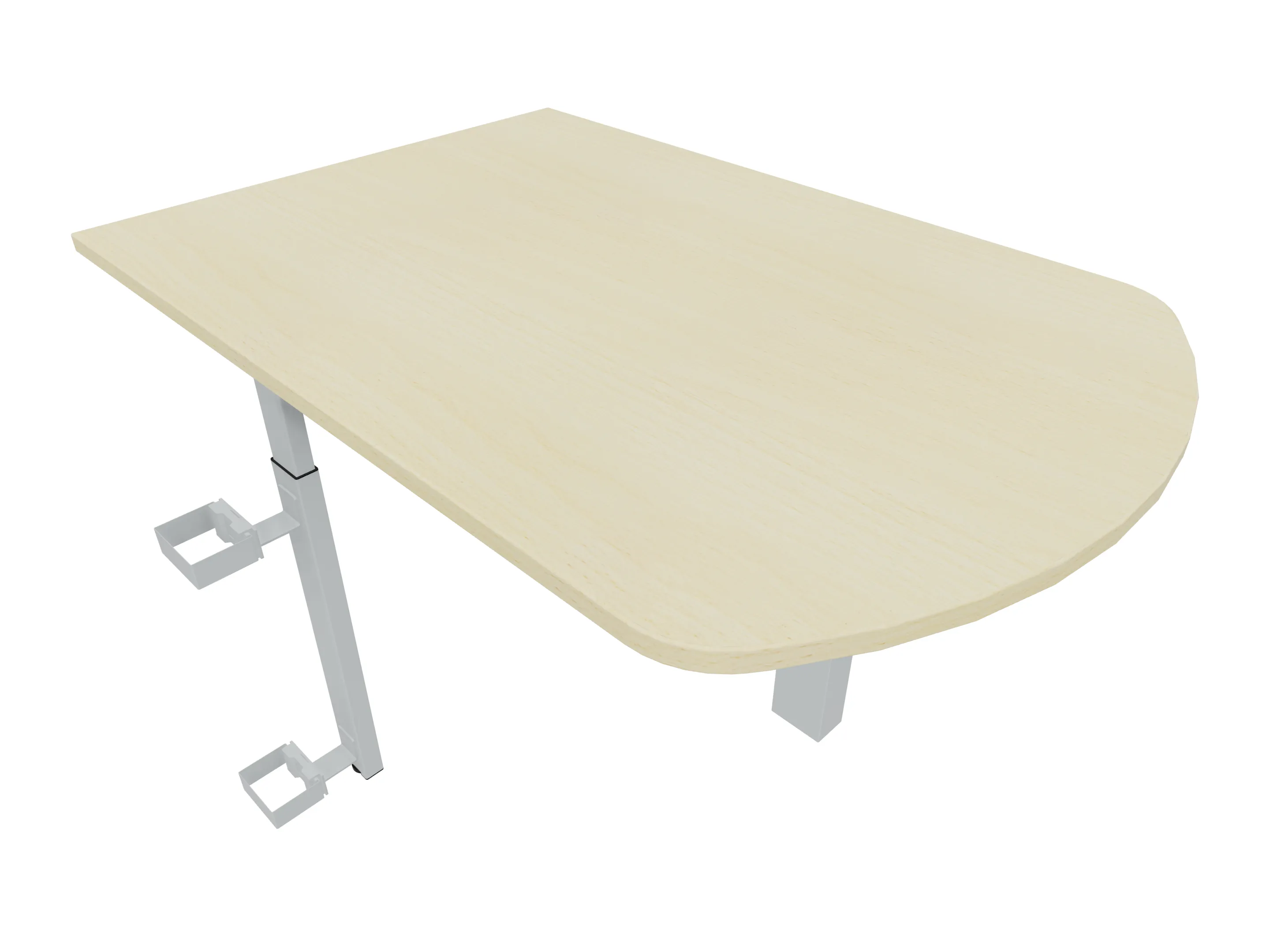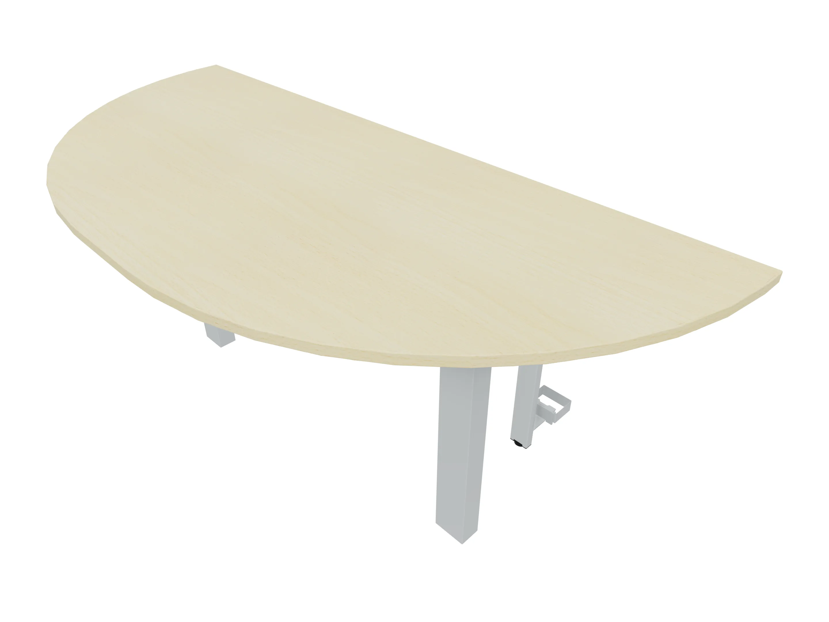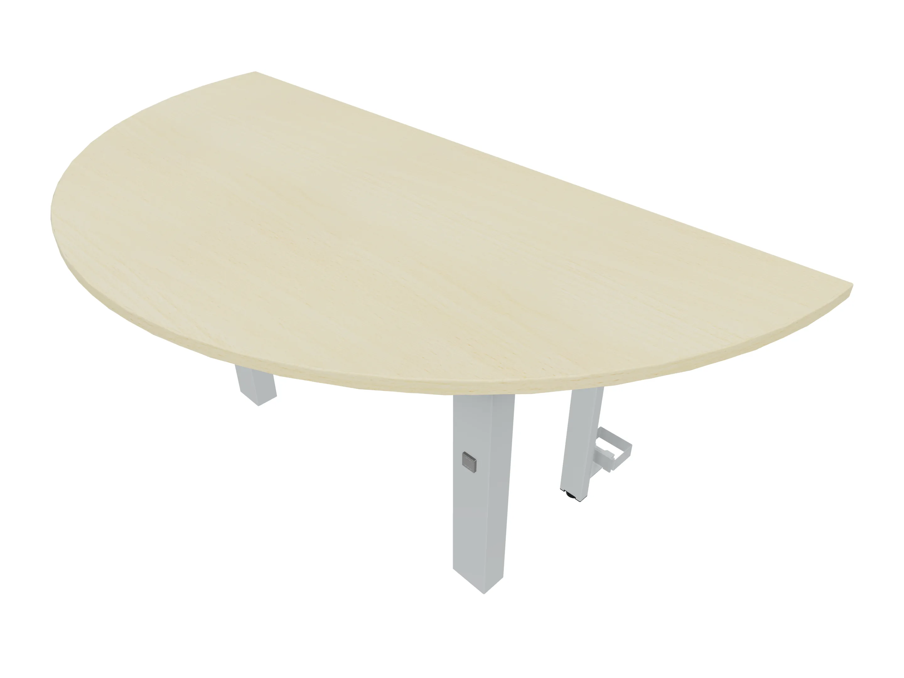 Aanbouwelement voor plaatsing aan zit-sta bureaus, van 1625mm breed en 800mm diep. Blad is voorzien van een doorlopende ronding, diameter 800mm. Inclusief twee koppel-steunpoten met hoogte verstelling (650-850mm, d.m.v. "Easy-Push").