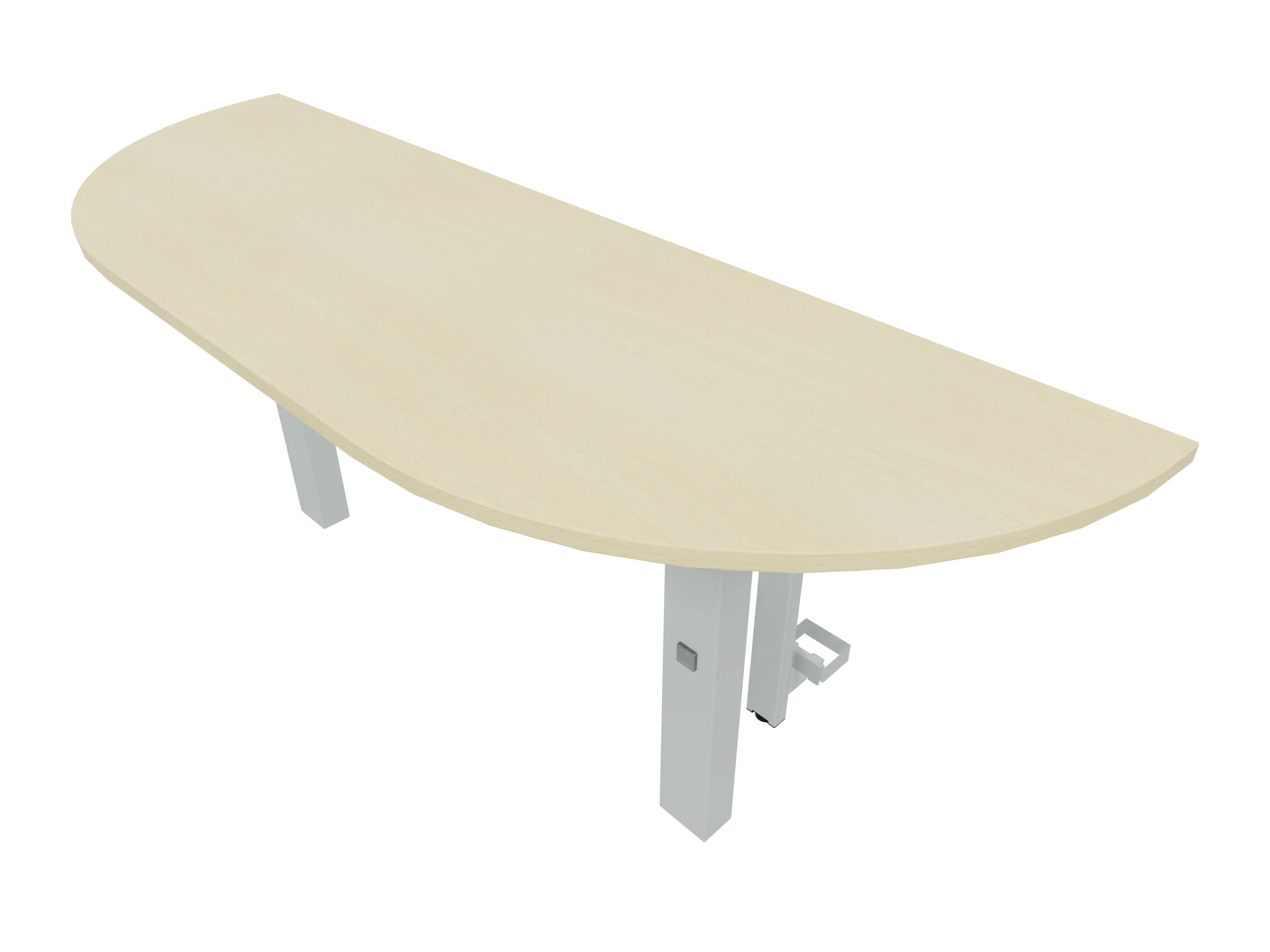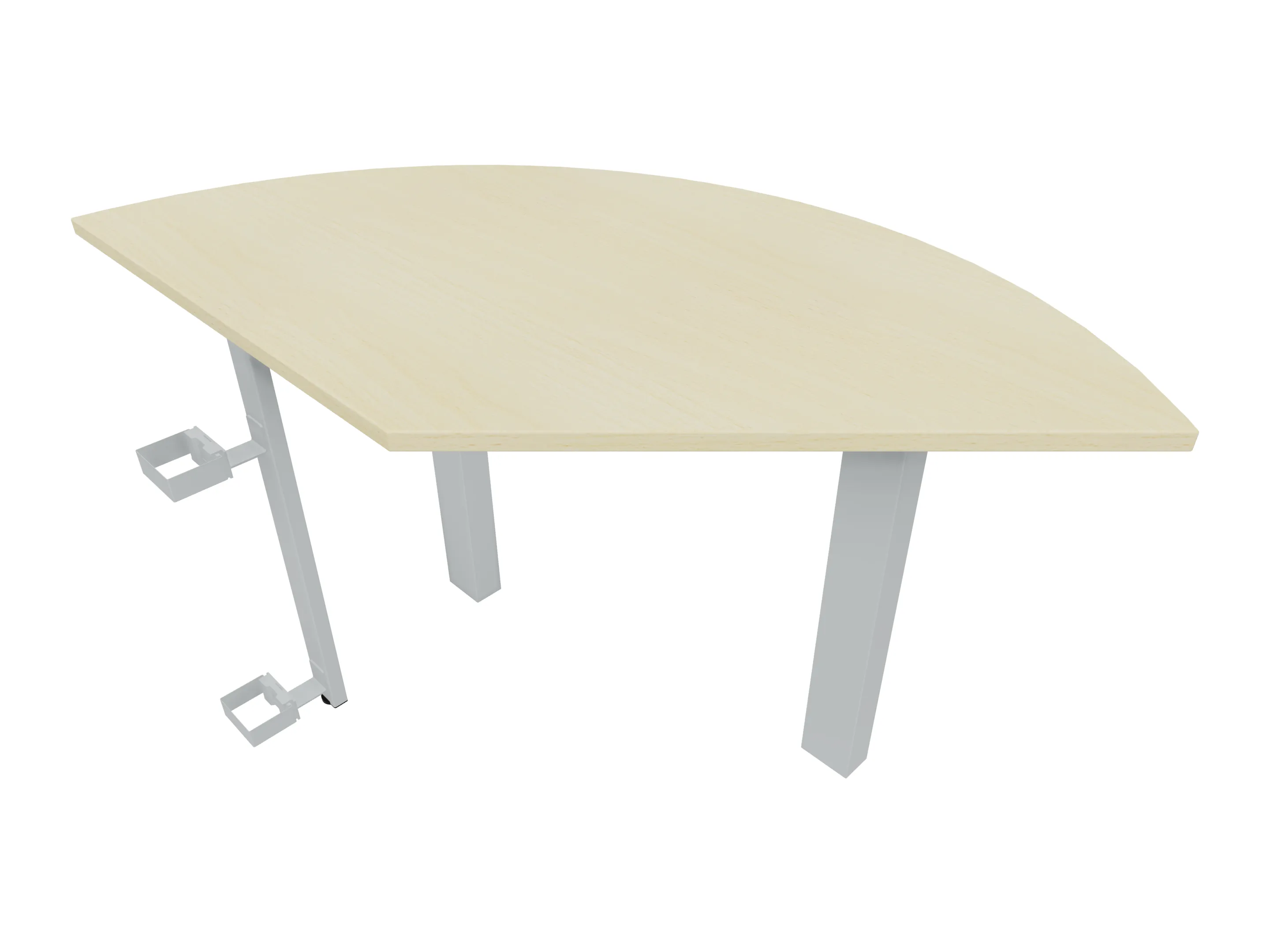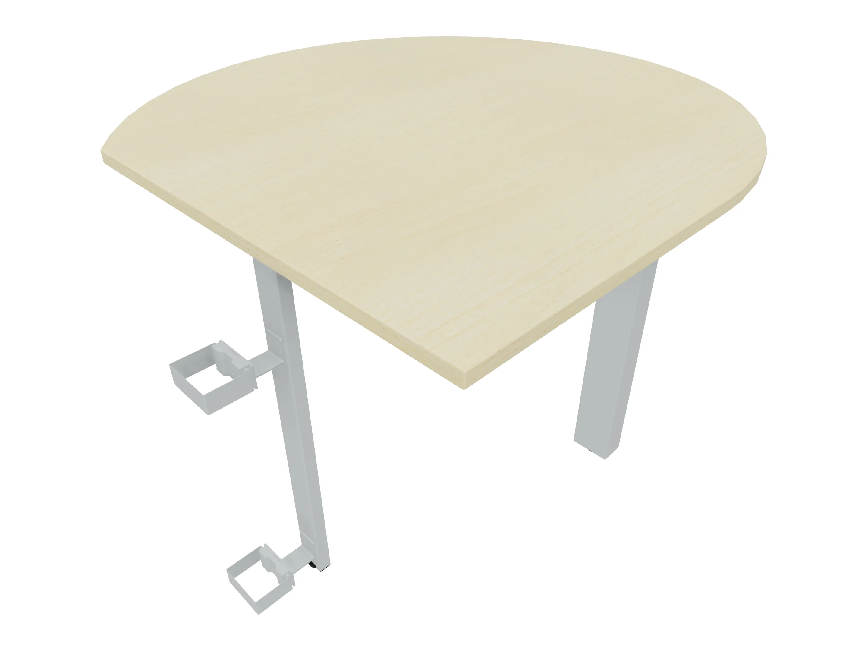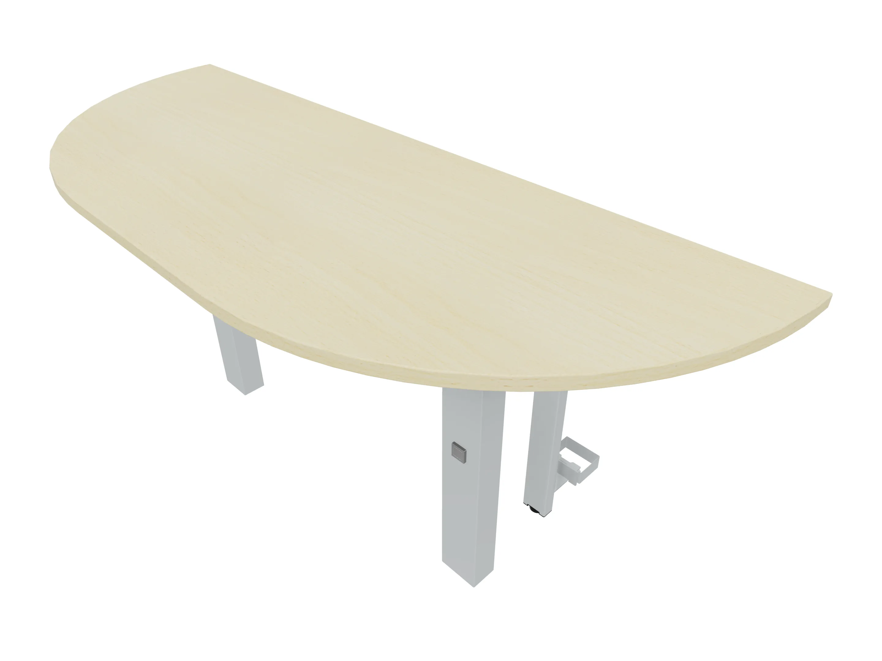 Aanbouwelement voor plaatsing aan zit-sta bureaus, van 1625mm breed en 800mm diep. Blad is voorzien van een doorlopende ronding, diameter 800mm. Inclusief twee koppel-steunpoten met hoogte verstelling (650-850mm, d.m.v. "Easy-Push").