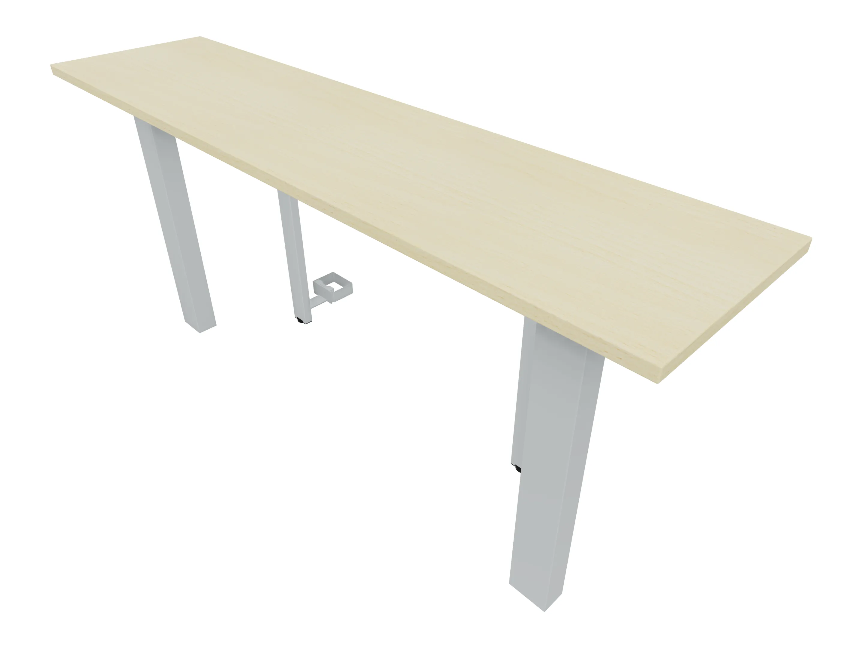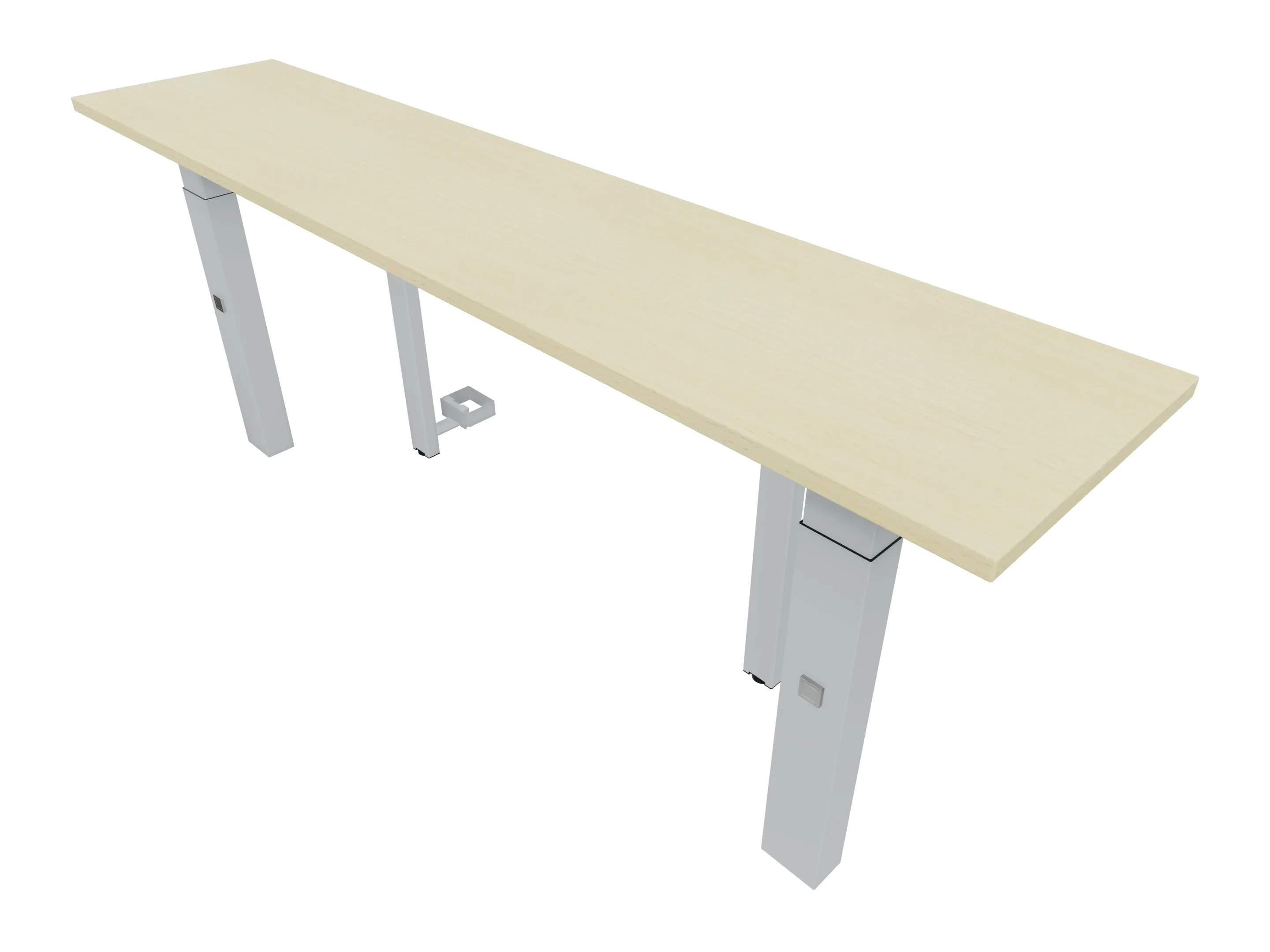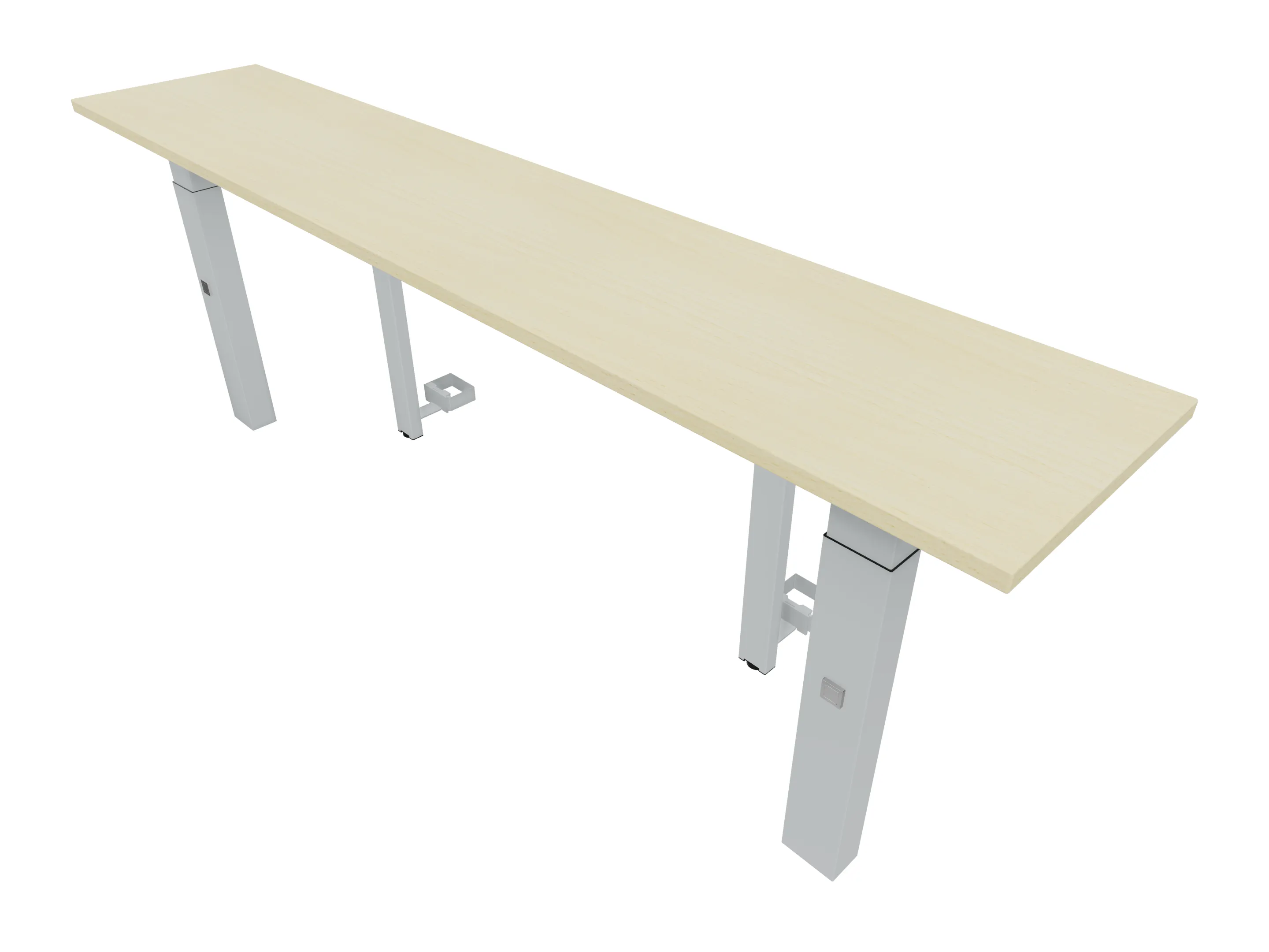 Aanbouwelement voor plaatsing aan zit-sta bureaus, van 2025mm breed en 600mm diep, voor koppeling aan poten. Inclusief twee koppel-steunpoten zonder hoogte verstelling.