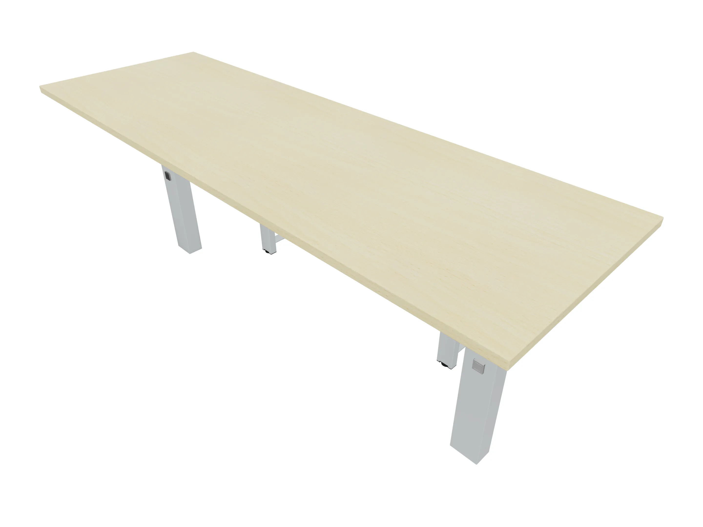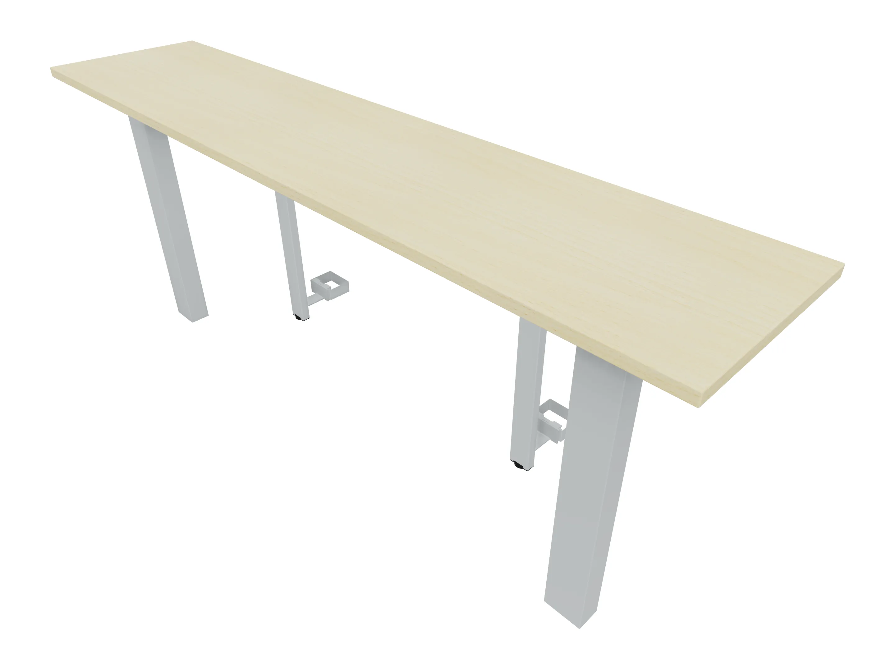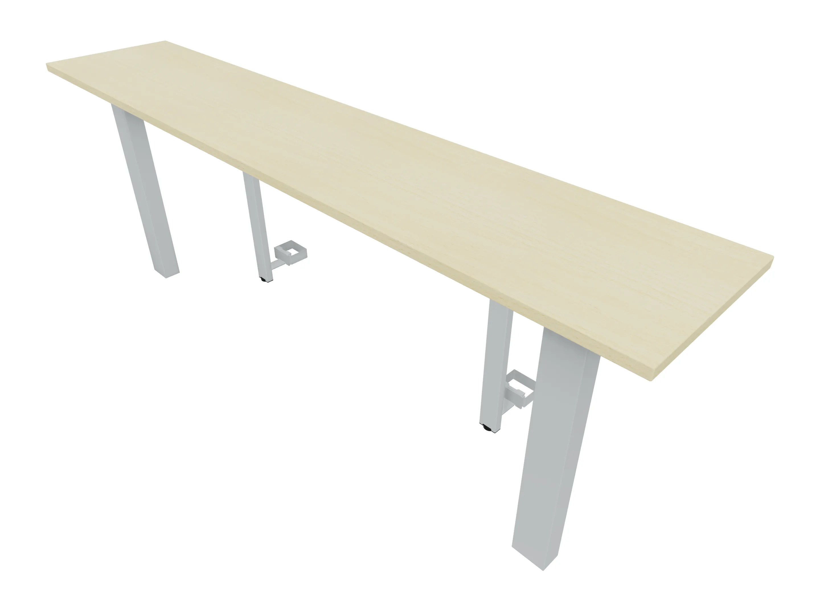 Aanbouwelement voor plaatsing aan zit-sta bureaus, van 2025mm breed en 600mm diep, voor koppeling aan poten. Inclusief twee koppel-steunpoten zonder hoogte verstelling.