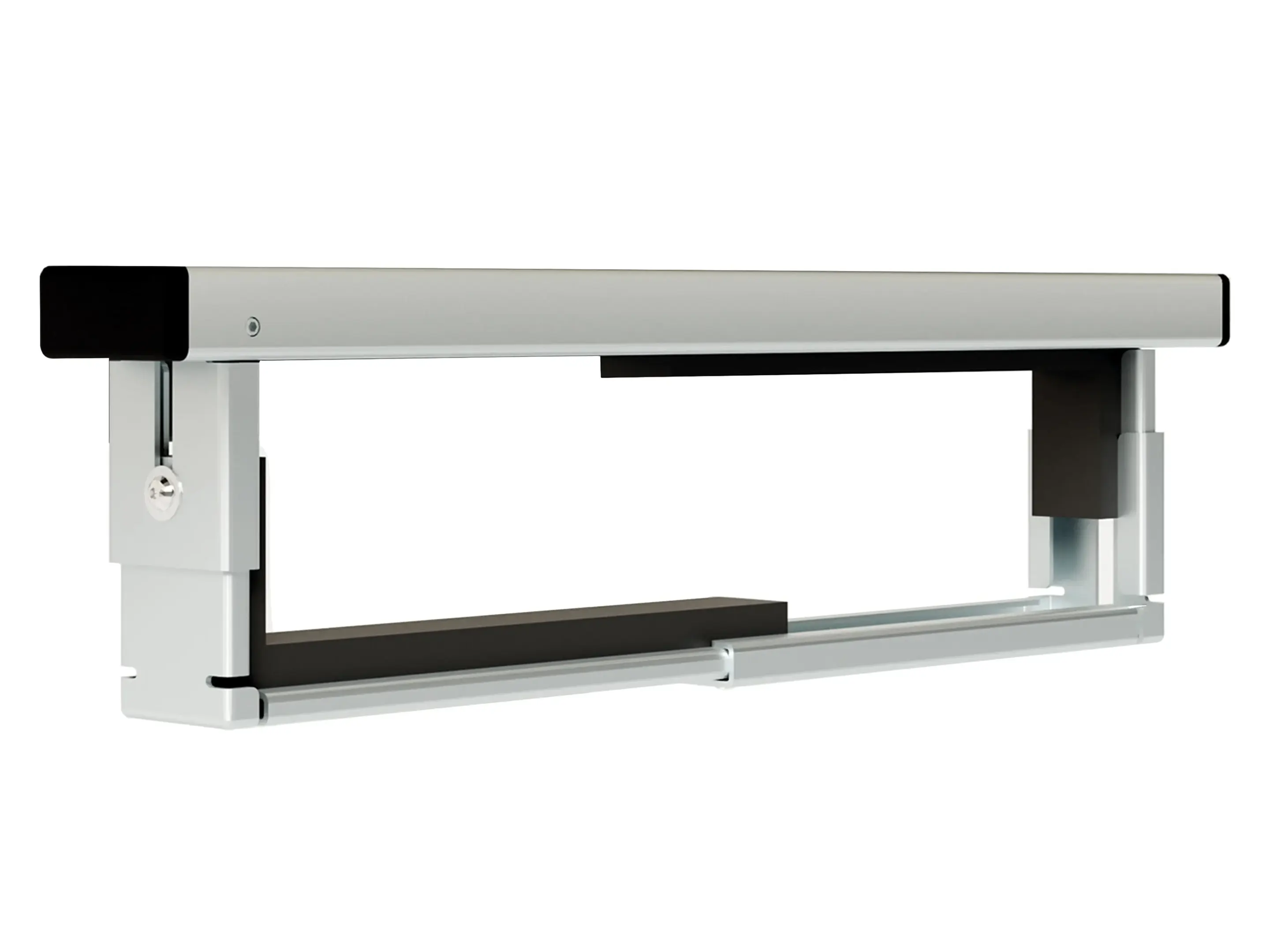 Voor bureaus zonder hoogte verstelling. Montage onder bureaublad, compleet uit metaal breedte verstelbaar 164 - 215 mm hoogte CPU max. 475 mm, belasting max. 15 kg