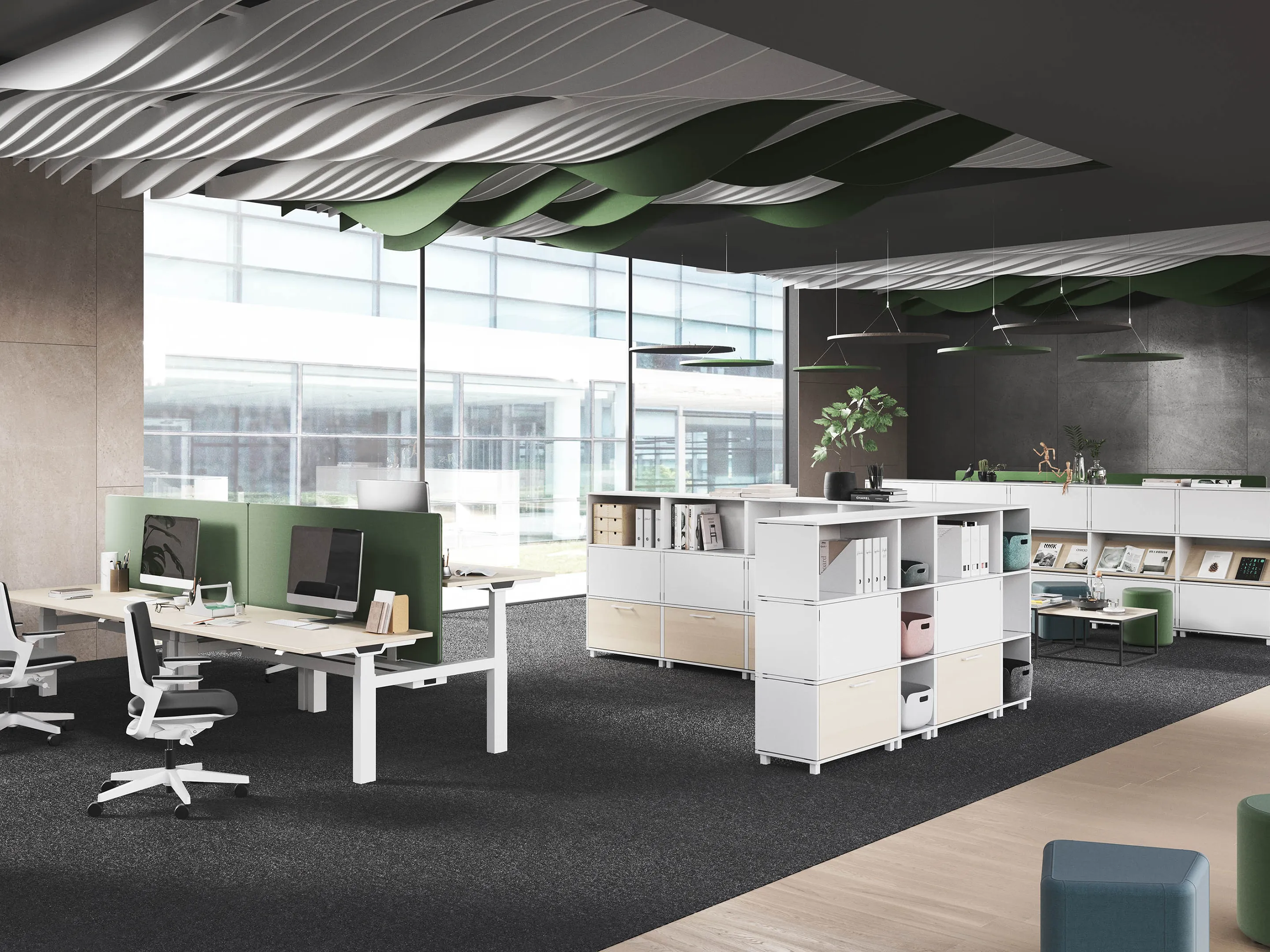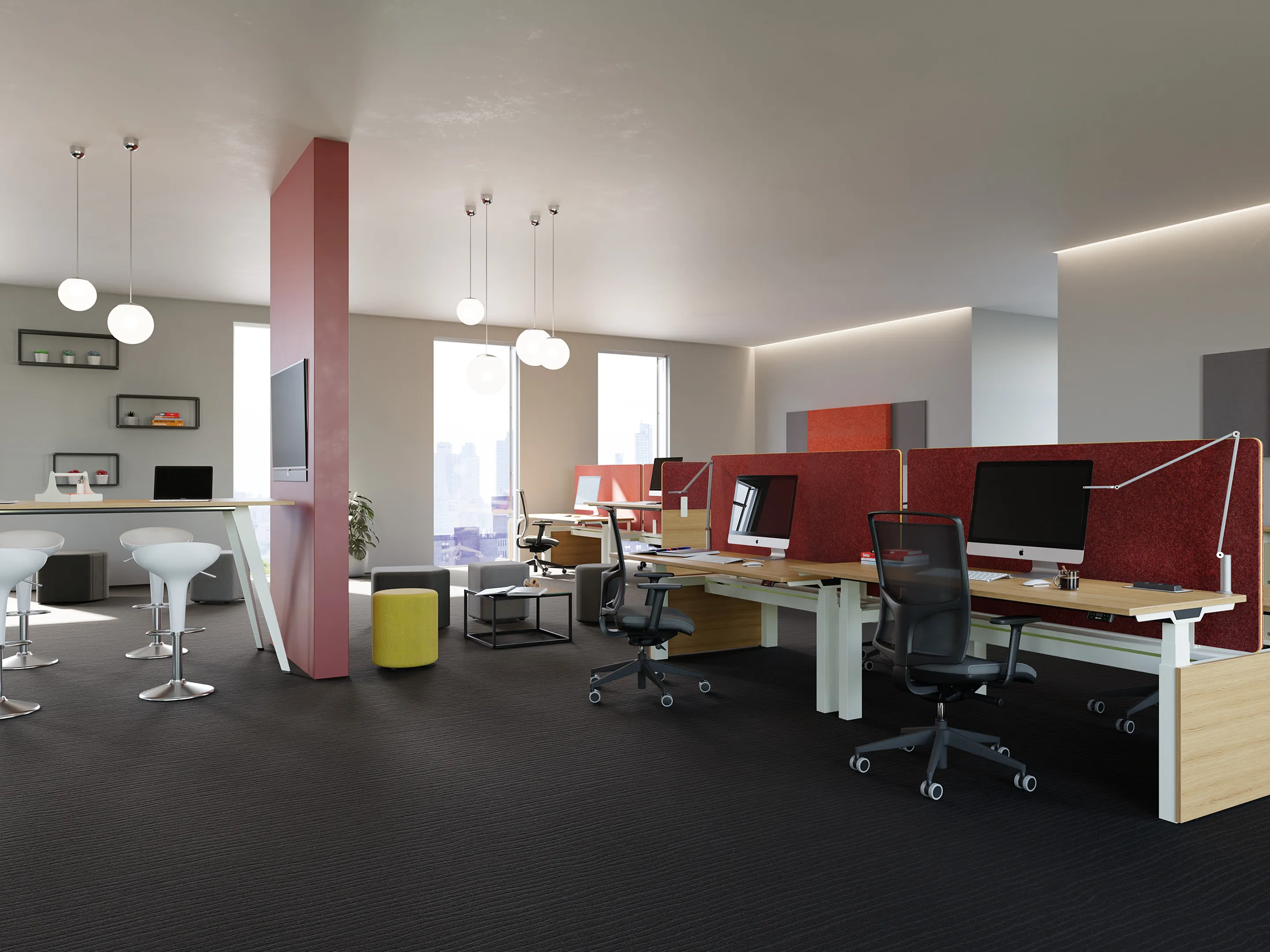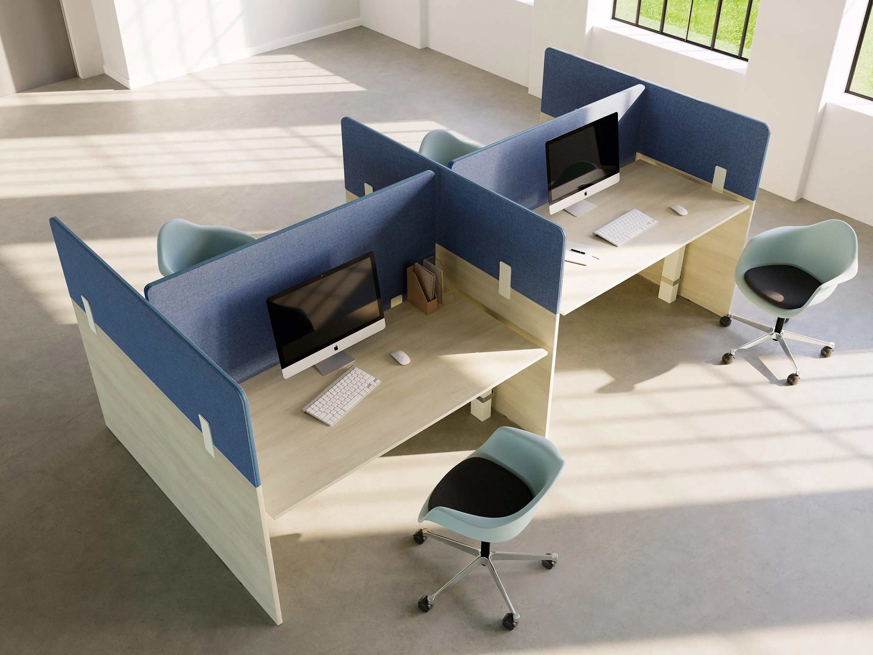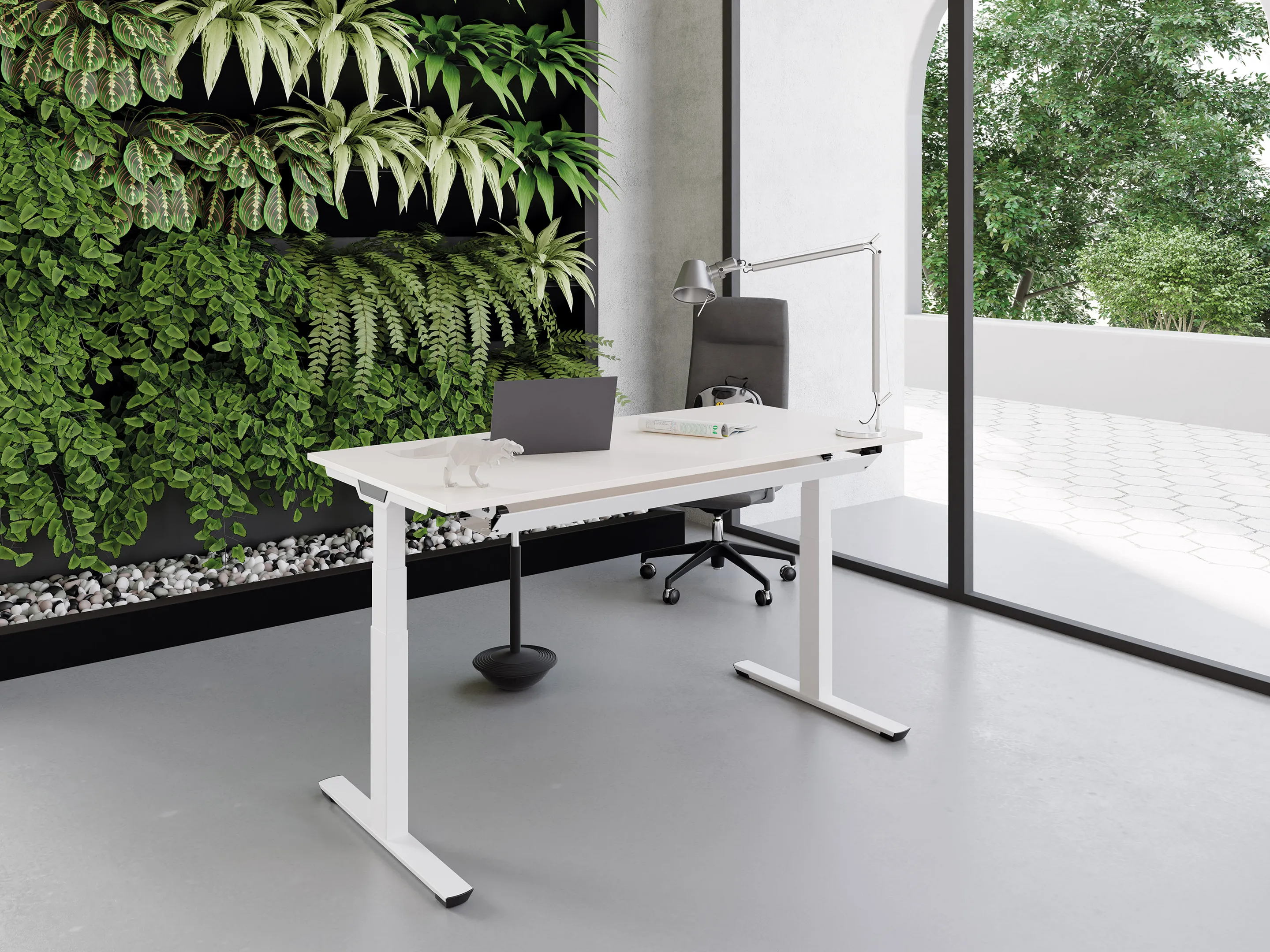 Crew-T bureau - T-poot zit-sta, druppel links voor, 2200 x 800/1100mm