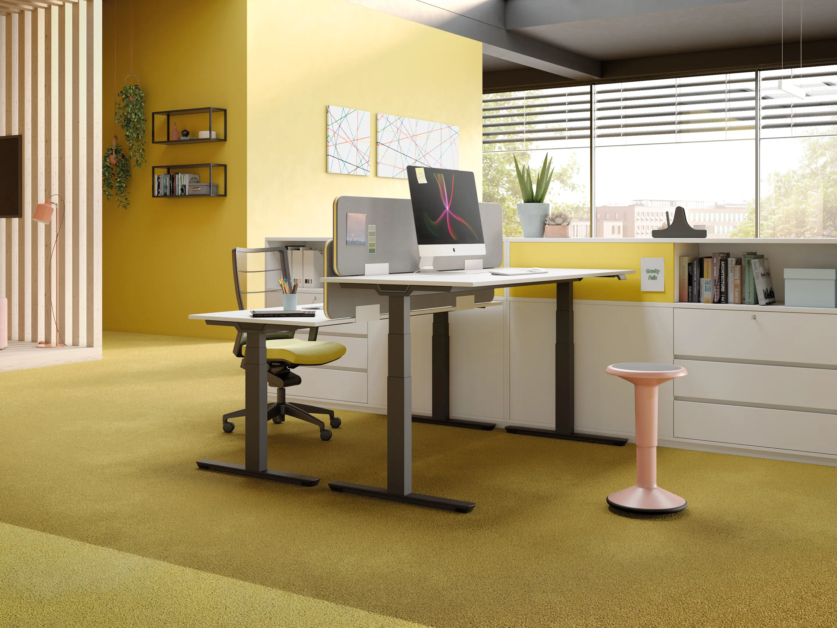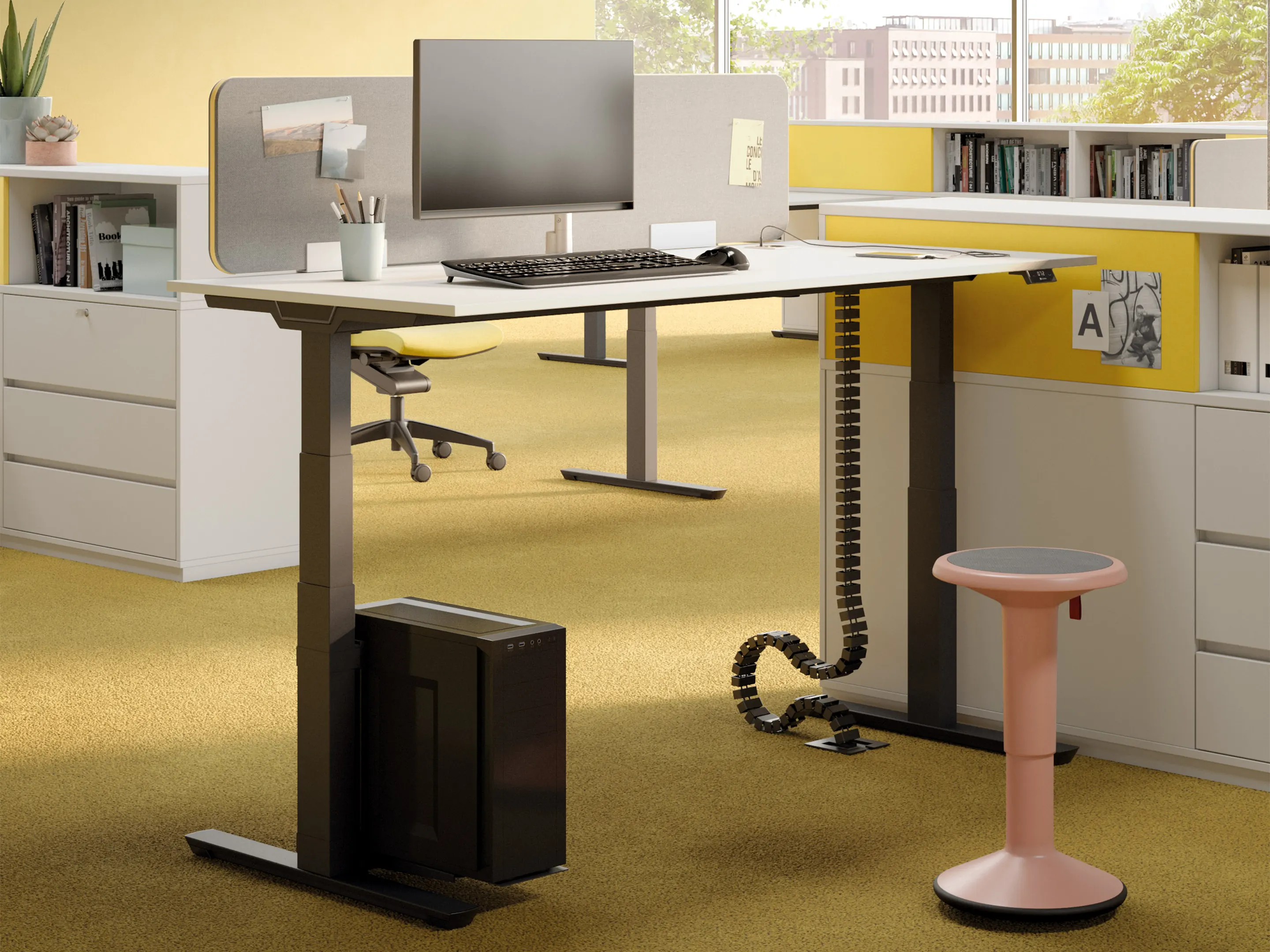 Crew-T bureau - T-poot zit-sta, druppel rechts achter, 2400 x 800/1100mm