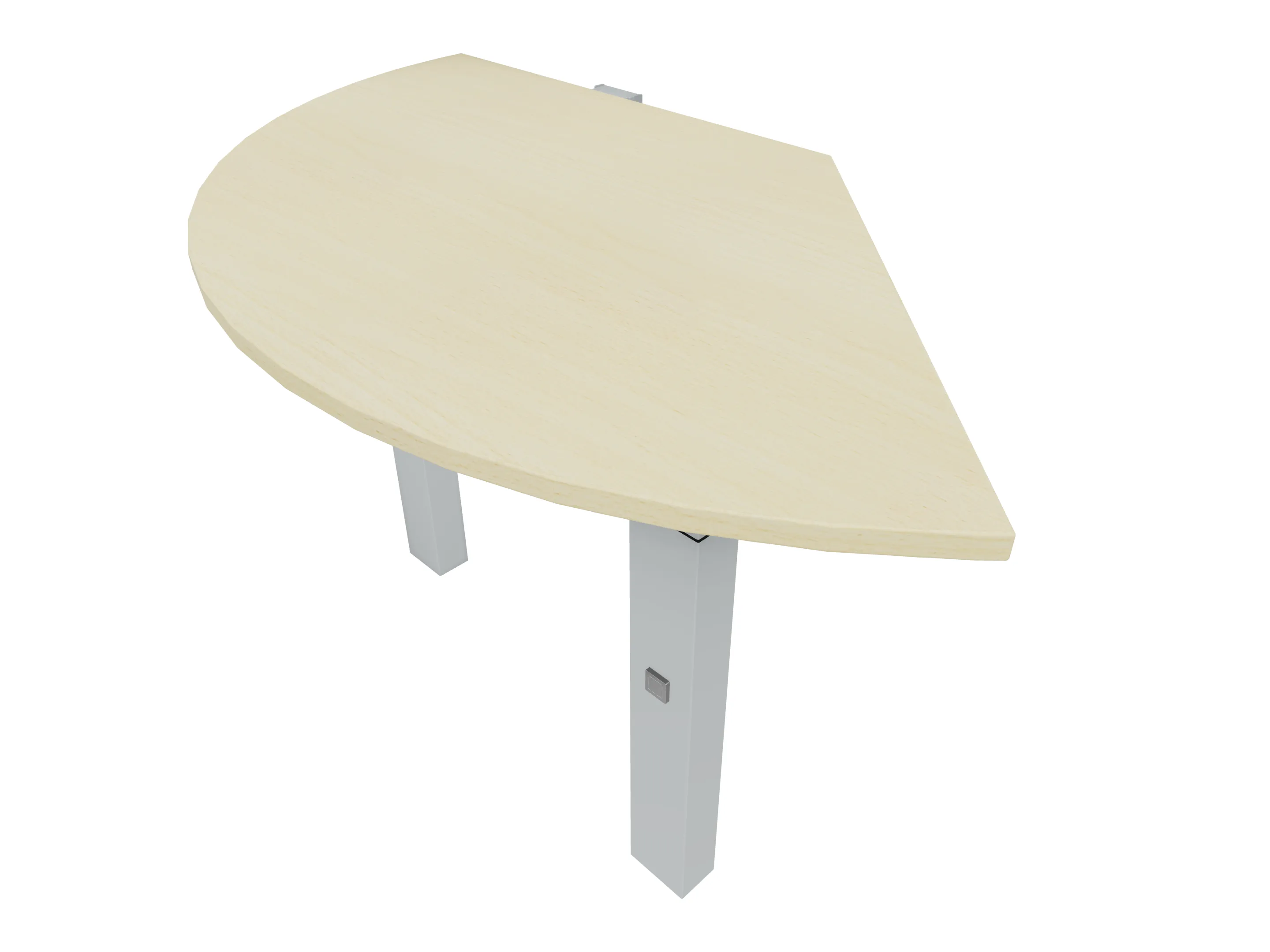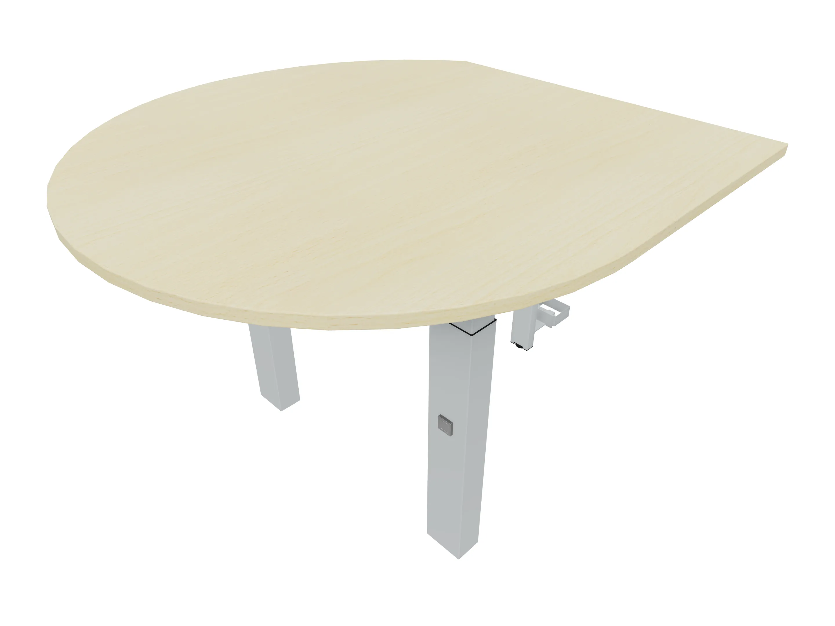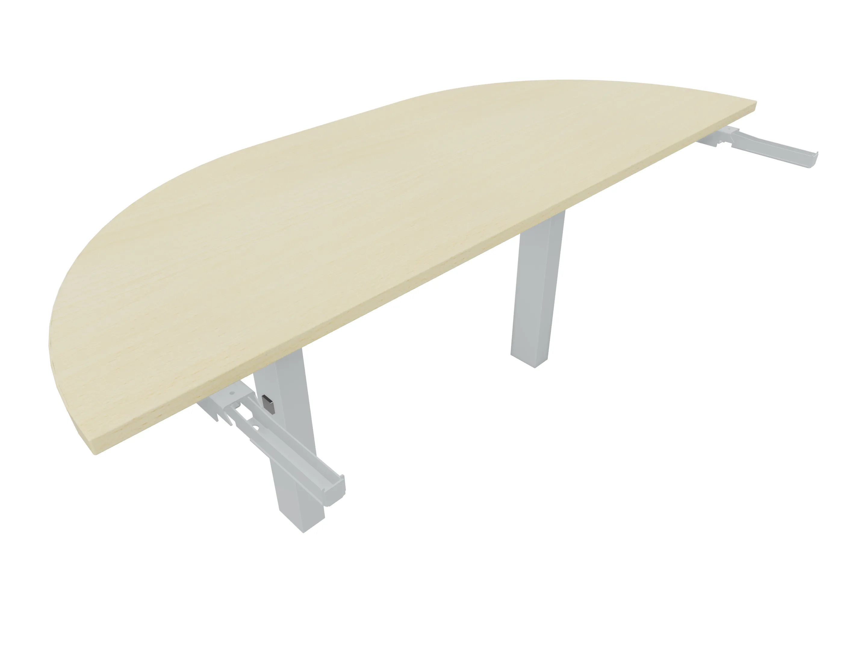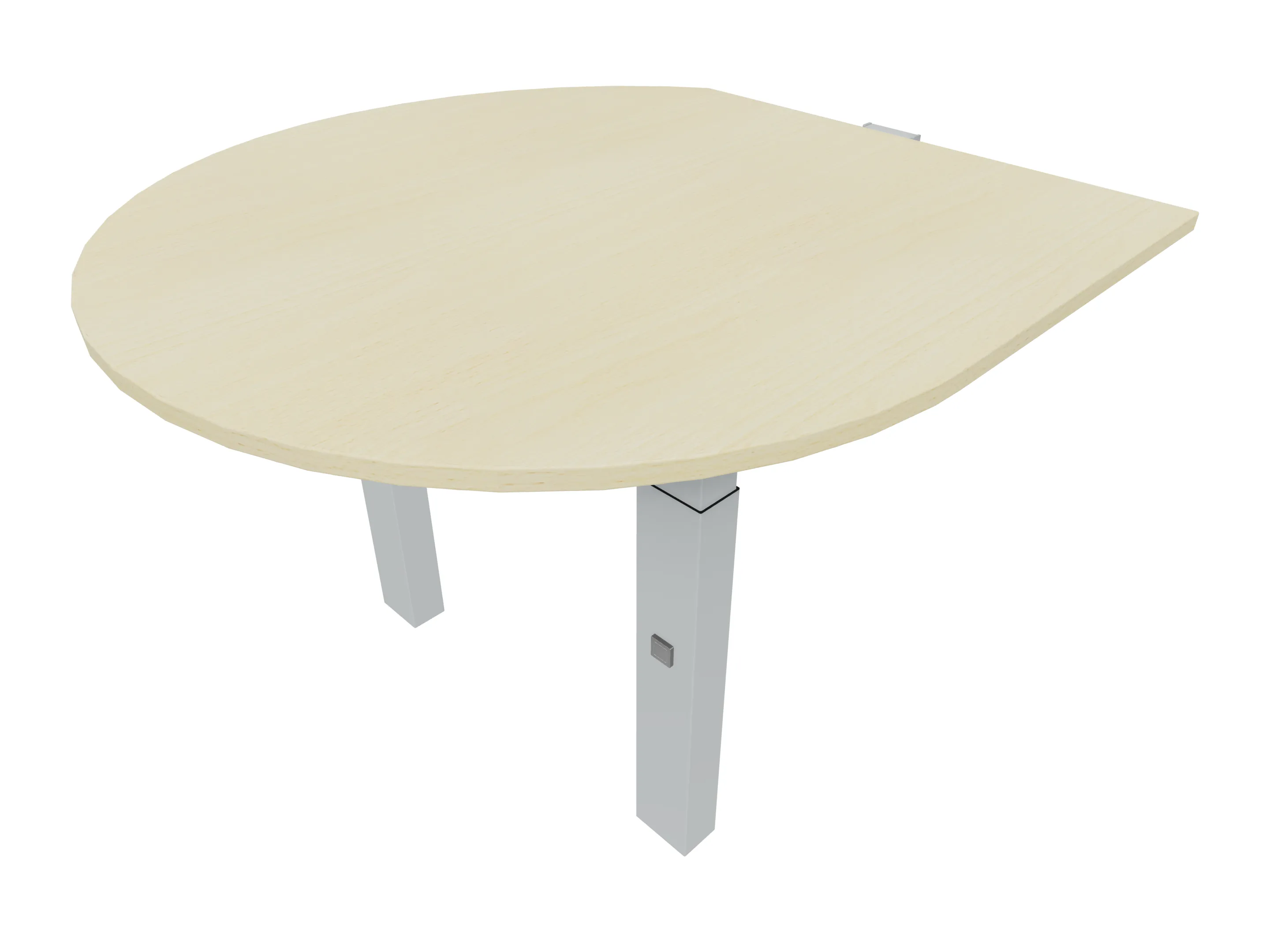Aanbouwelement voor plaatsing aan zit-sta bureaus, van 1625mm breed en 800mm diep. Blad is voorzien van een doorlopende ronding, diameter 800mm. Inclusief twee koppel-steunpoten met hoogte verstelling (650-850mm, d.m.v. "Easy-Push").