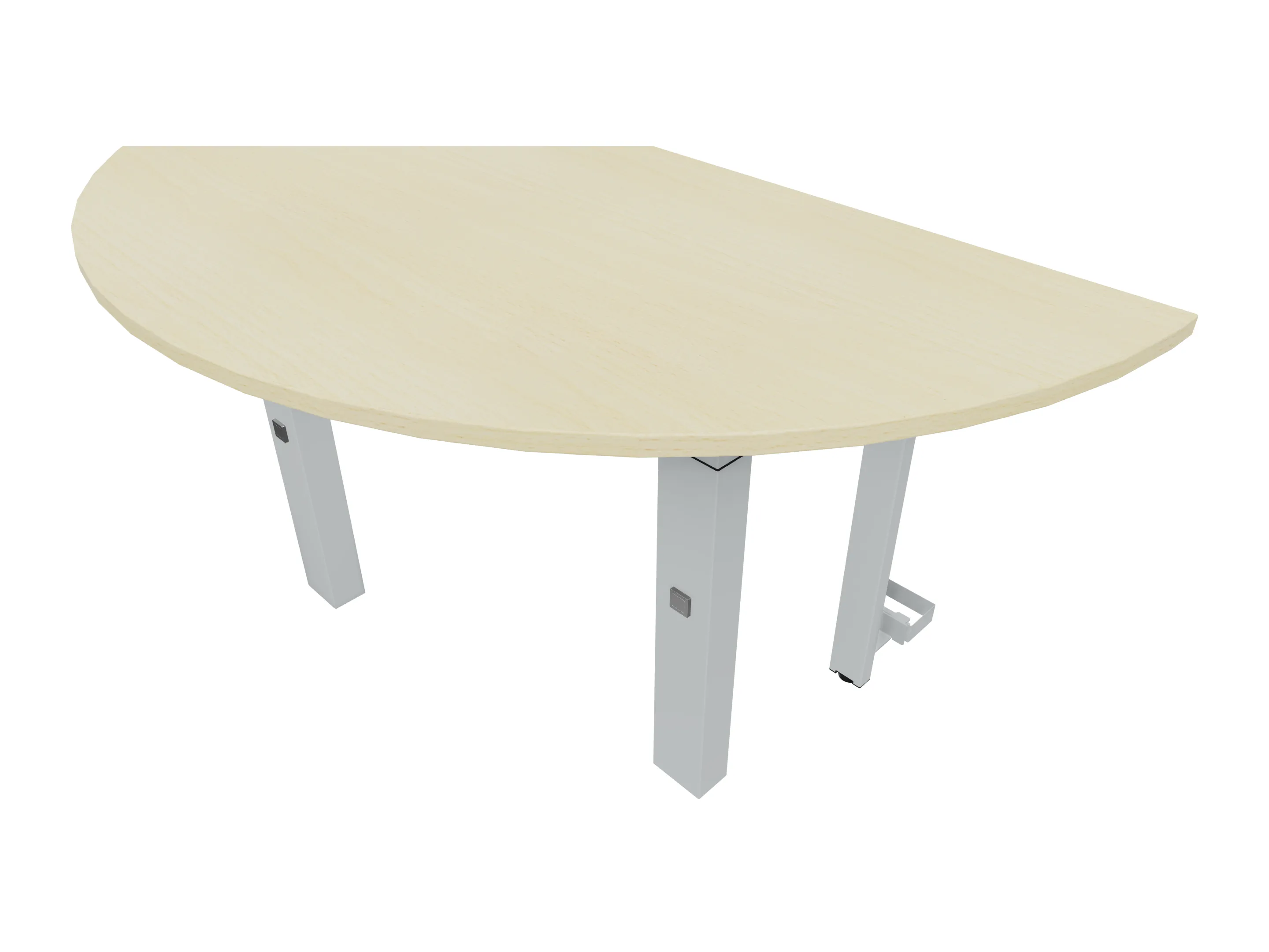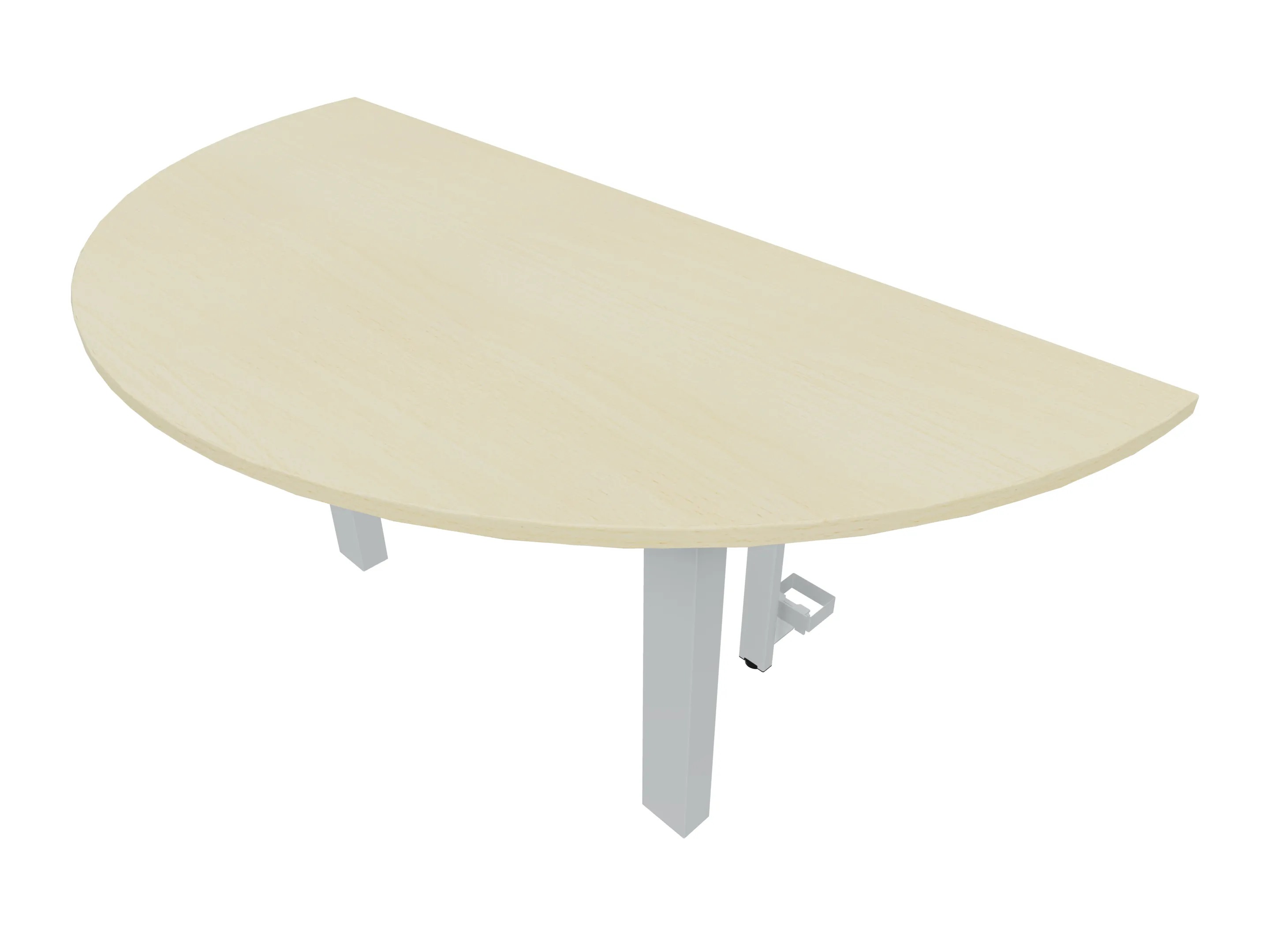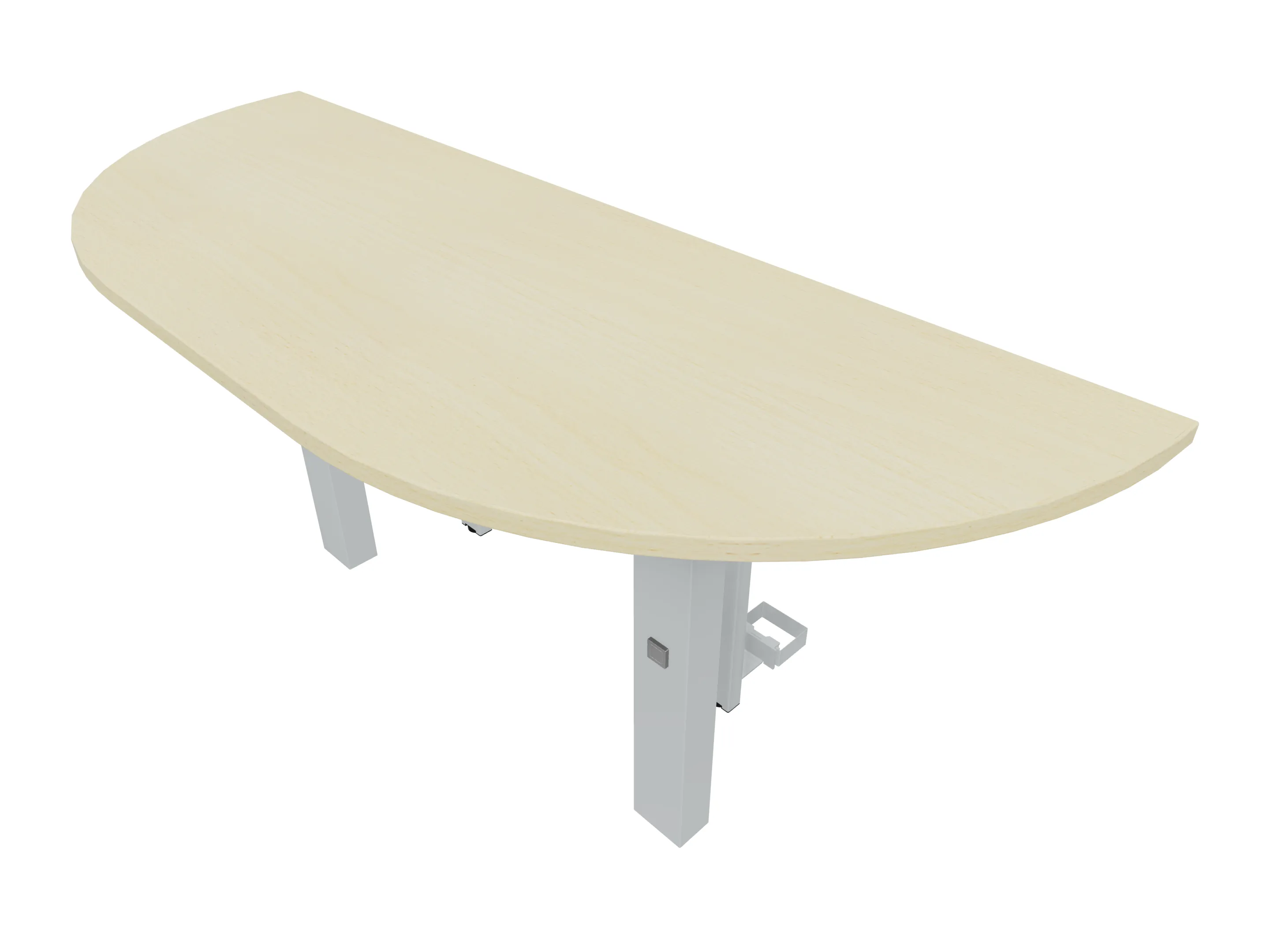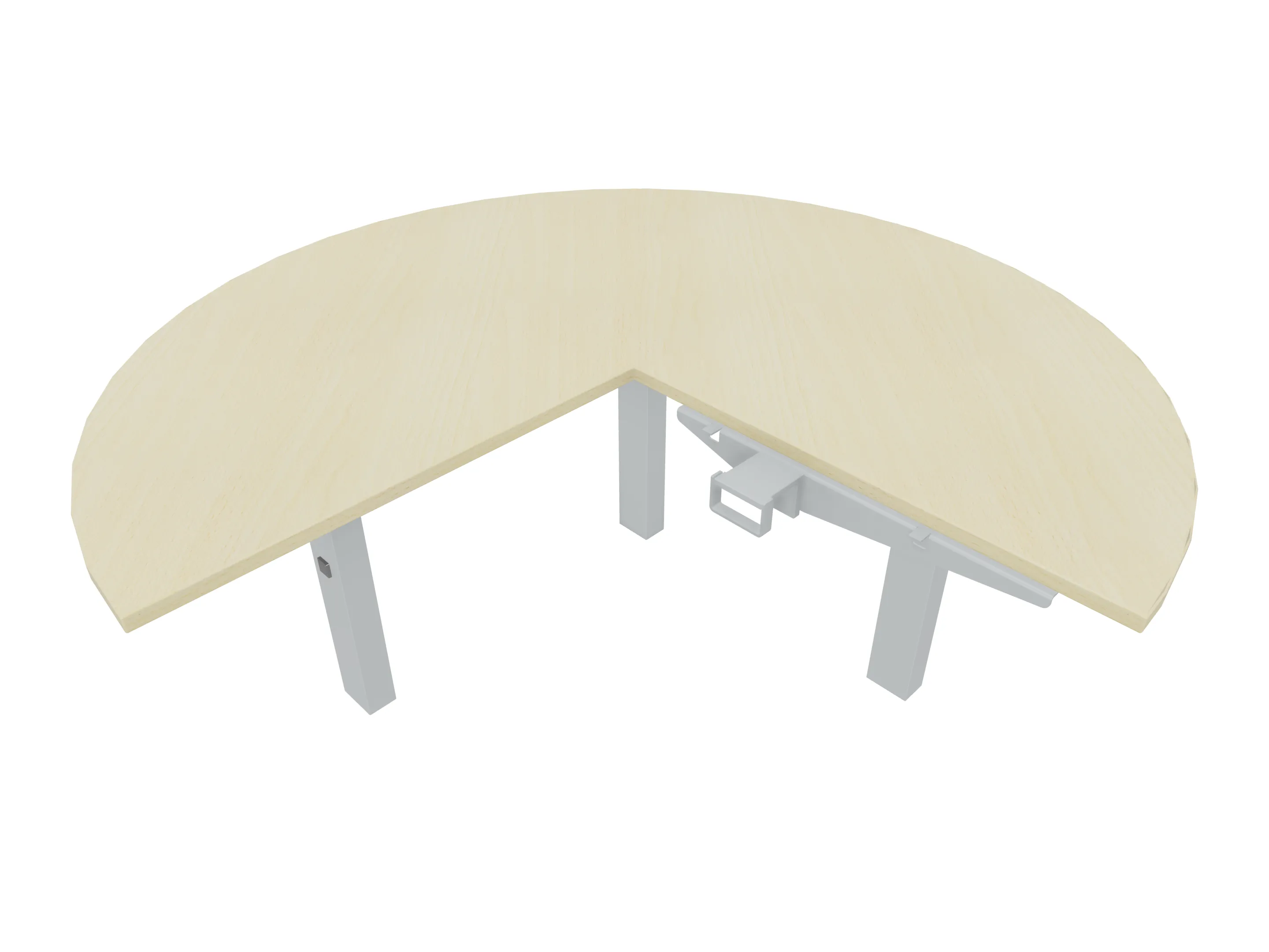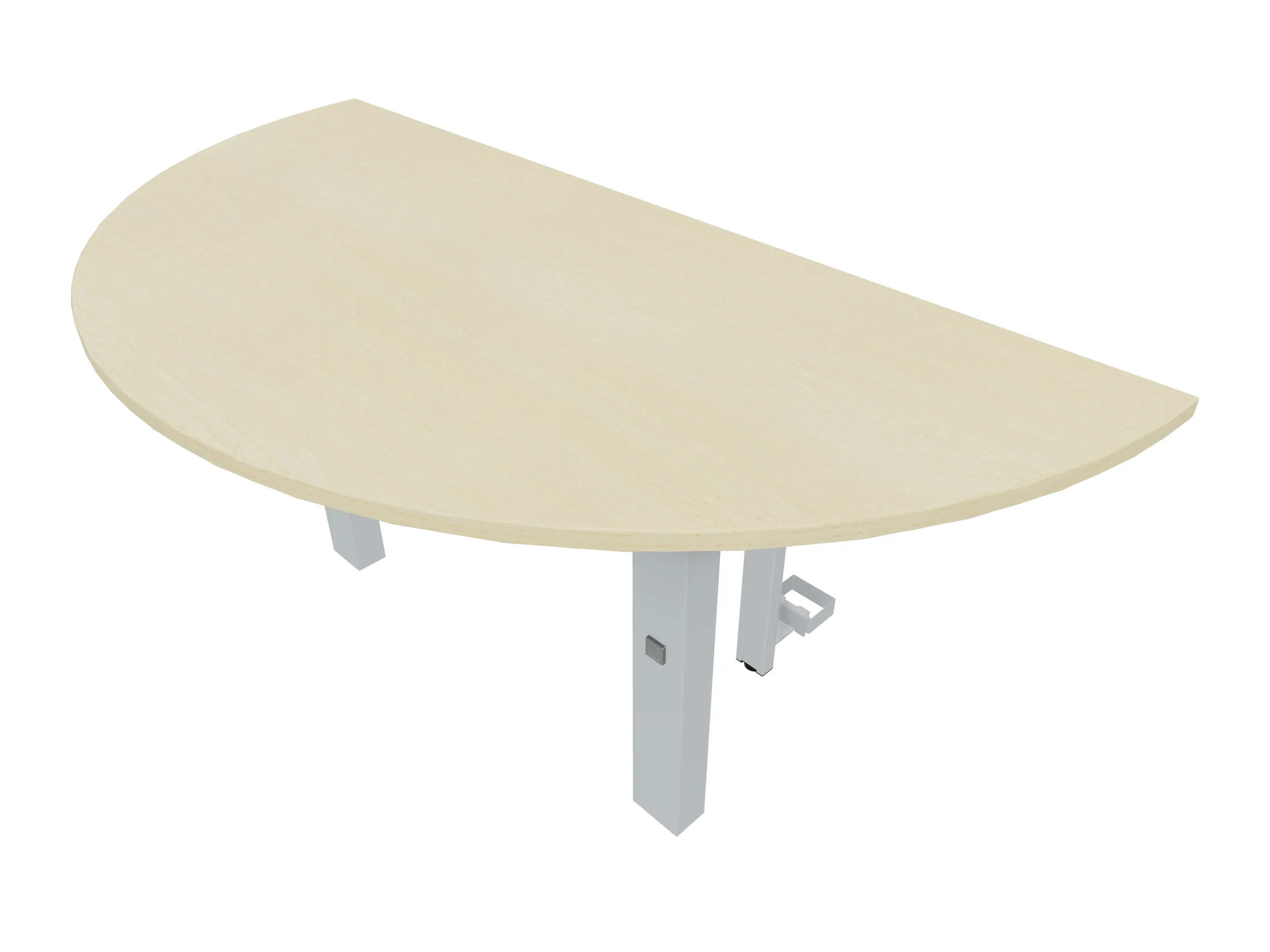 Aanbouwelement voor plaatsing aan zit-sta bureaus, van 1625mm breed en 800mm diep. Blad is voorzien van een doorlopende ronding, diameter 800mm. Inclusief twee koppel-steunpoten met hoogte verstelling (650-850mm, d.m.v. "Easy-Push").