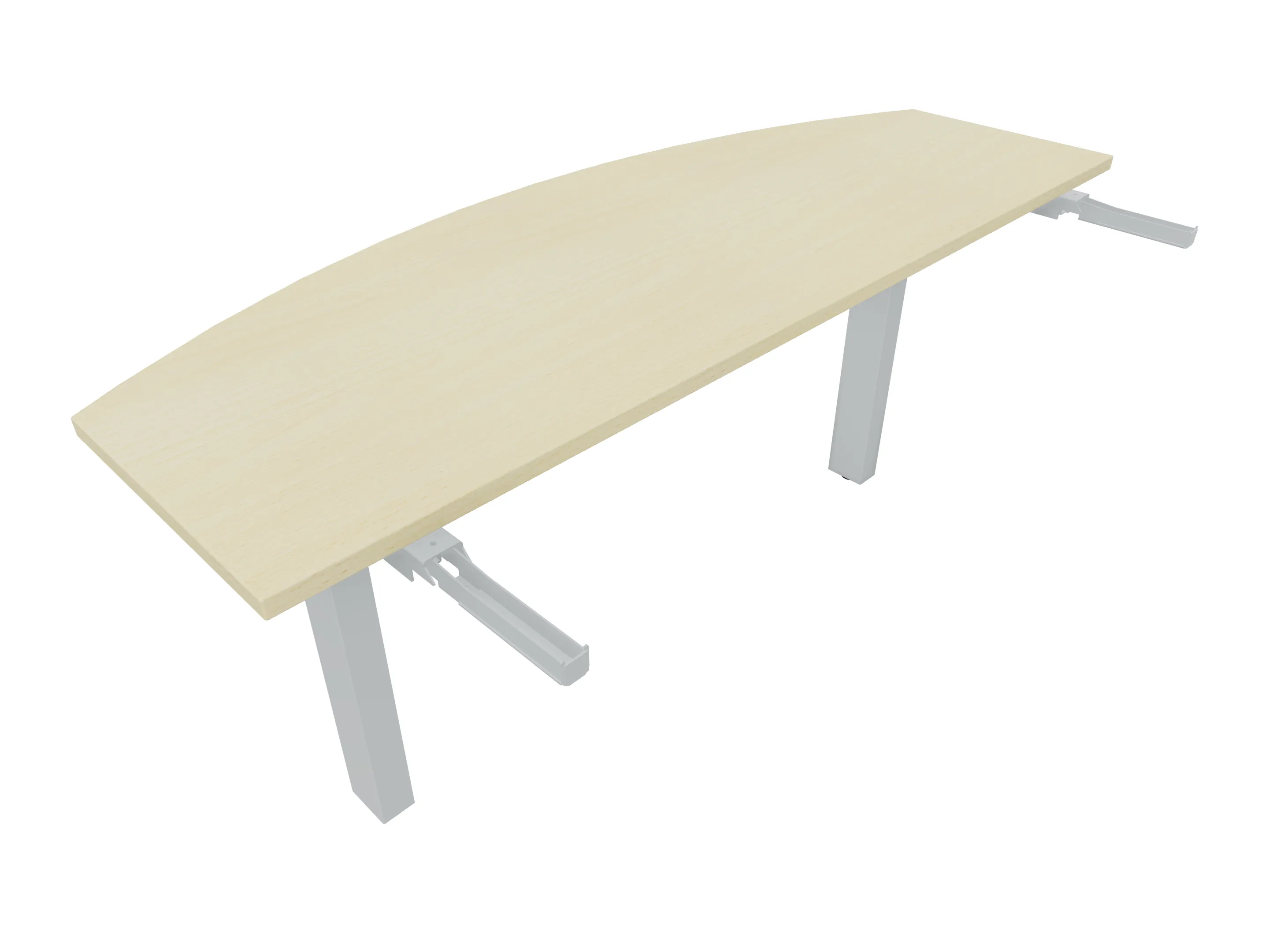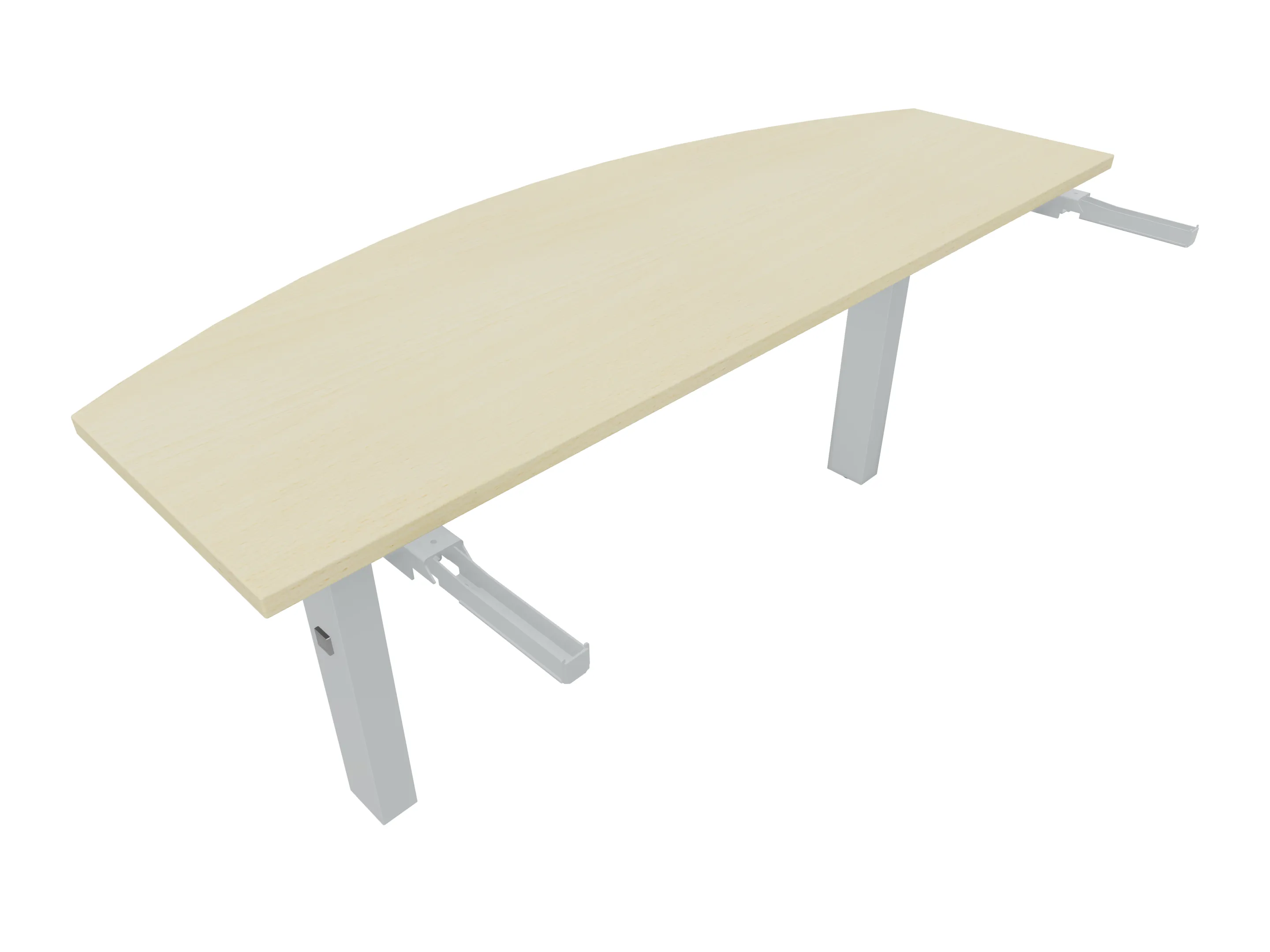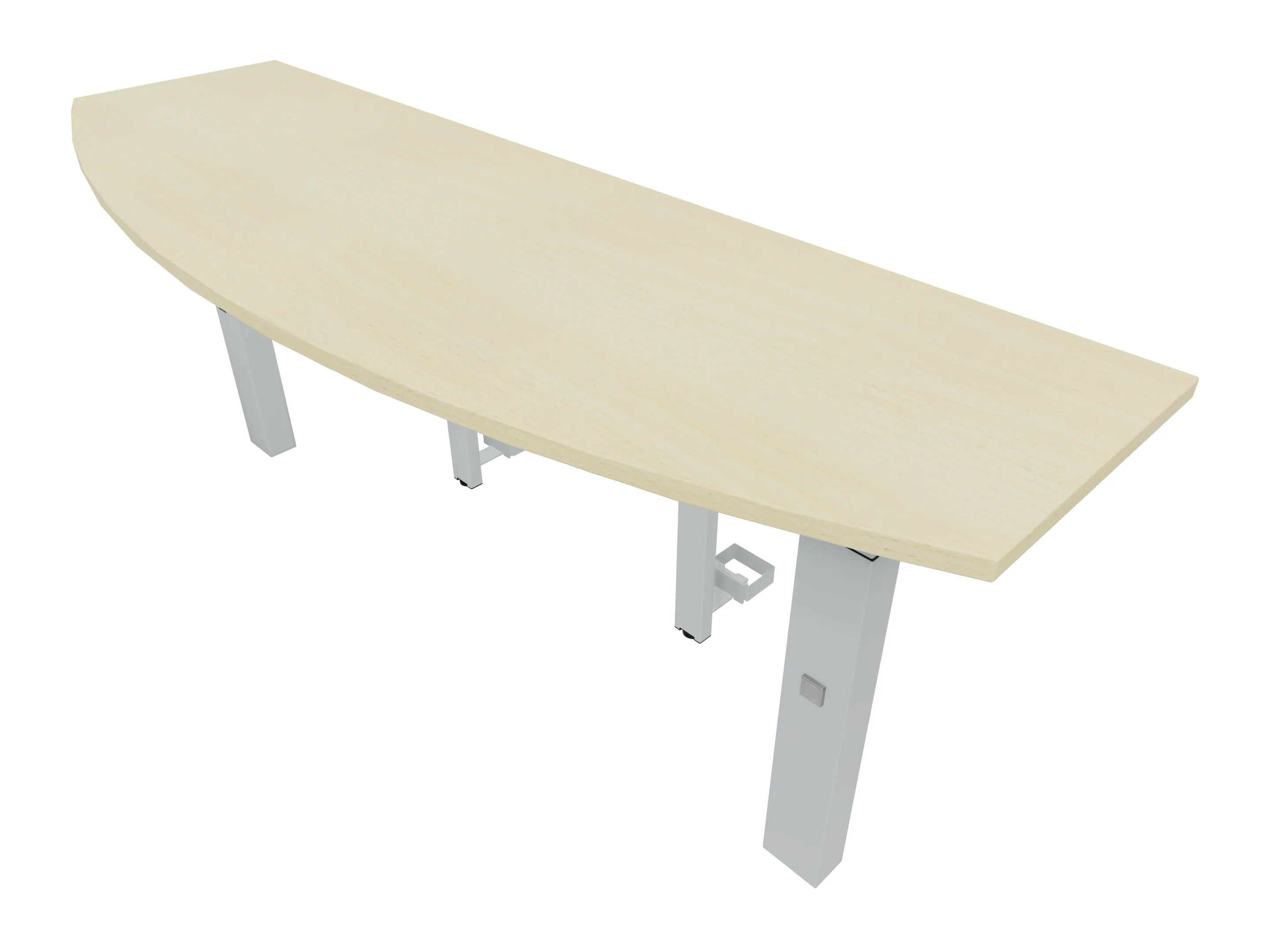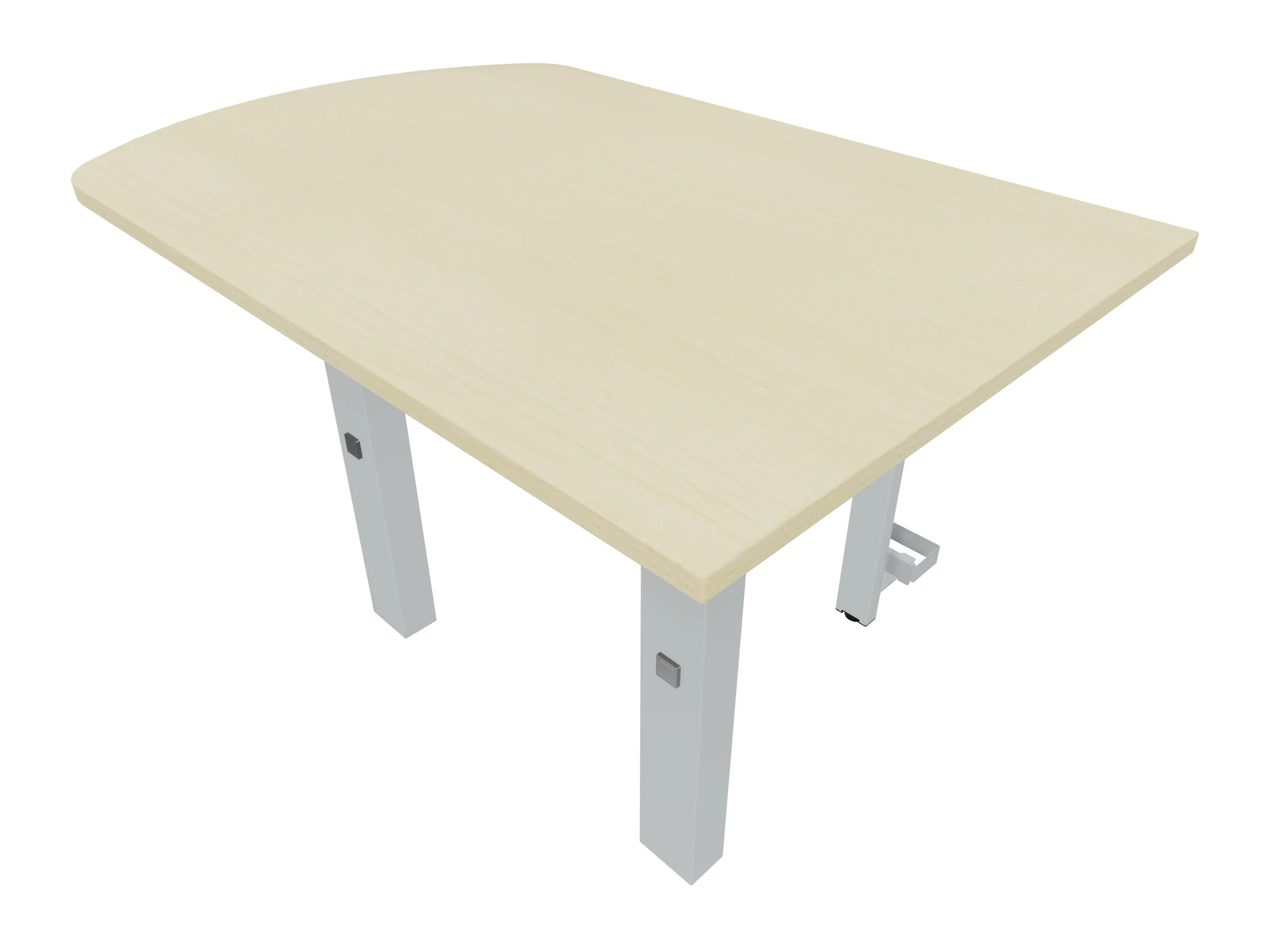 Aanbouwelement voor plaatsing aan zit-sta bureaus, van 1625mm breed en 800mm diep. Blad is voorzien van een doorlopende ronding, diameter 800mm. Inclusief twee koppel-steunpoten met hoogte verstelling (650-850mm, d.m.v. "Easy-Push").
