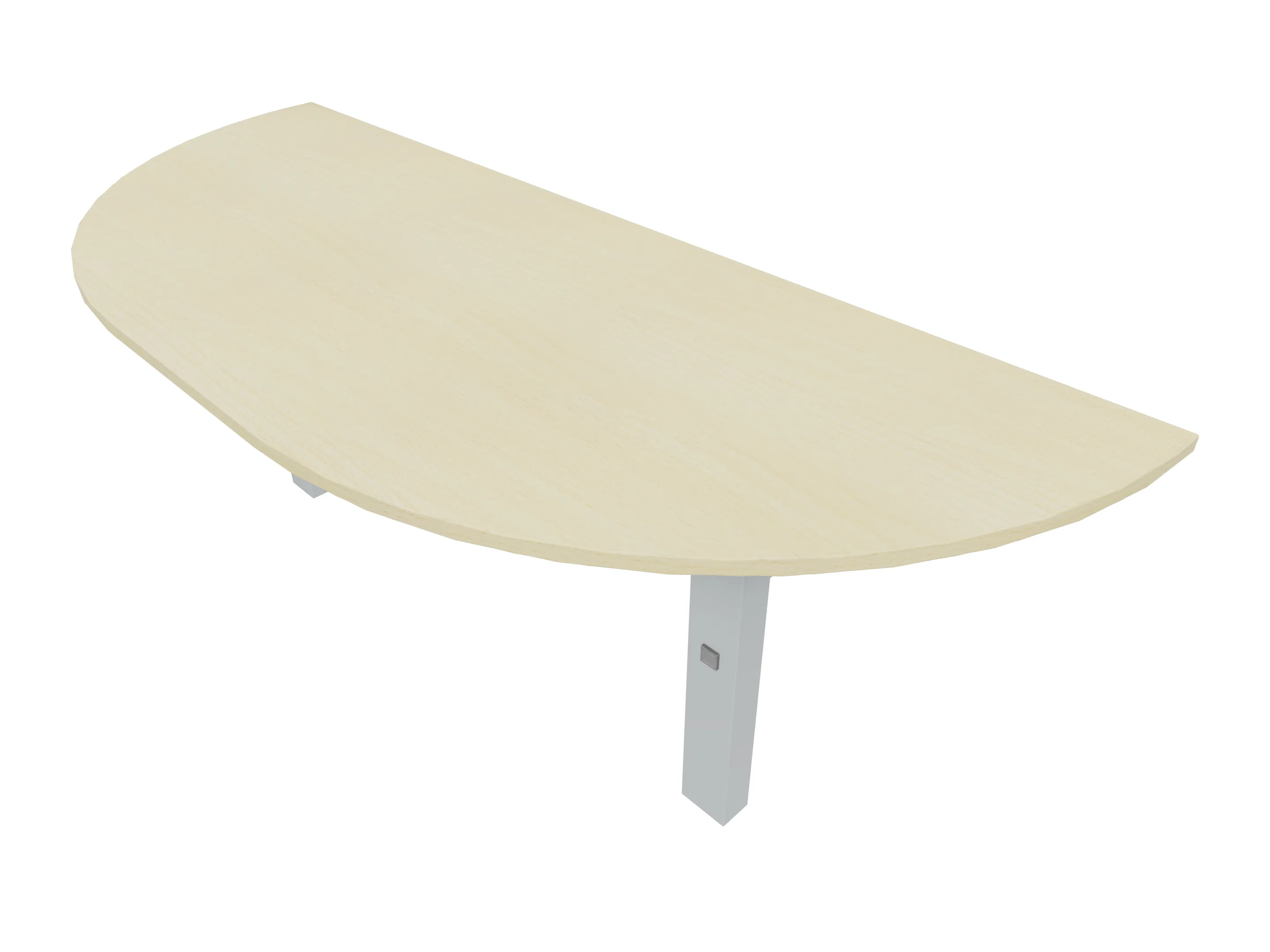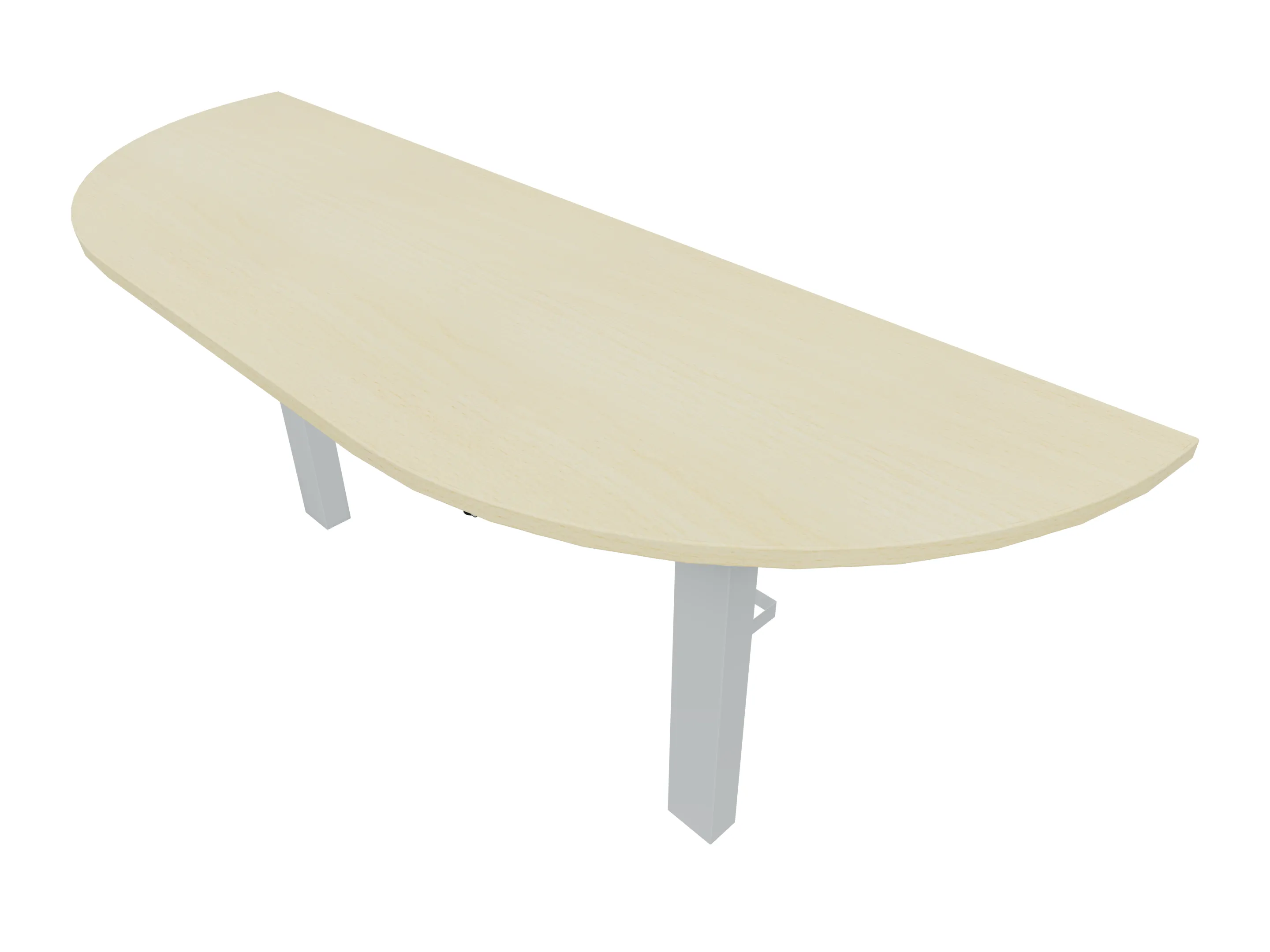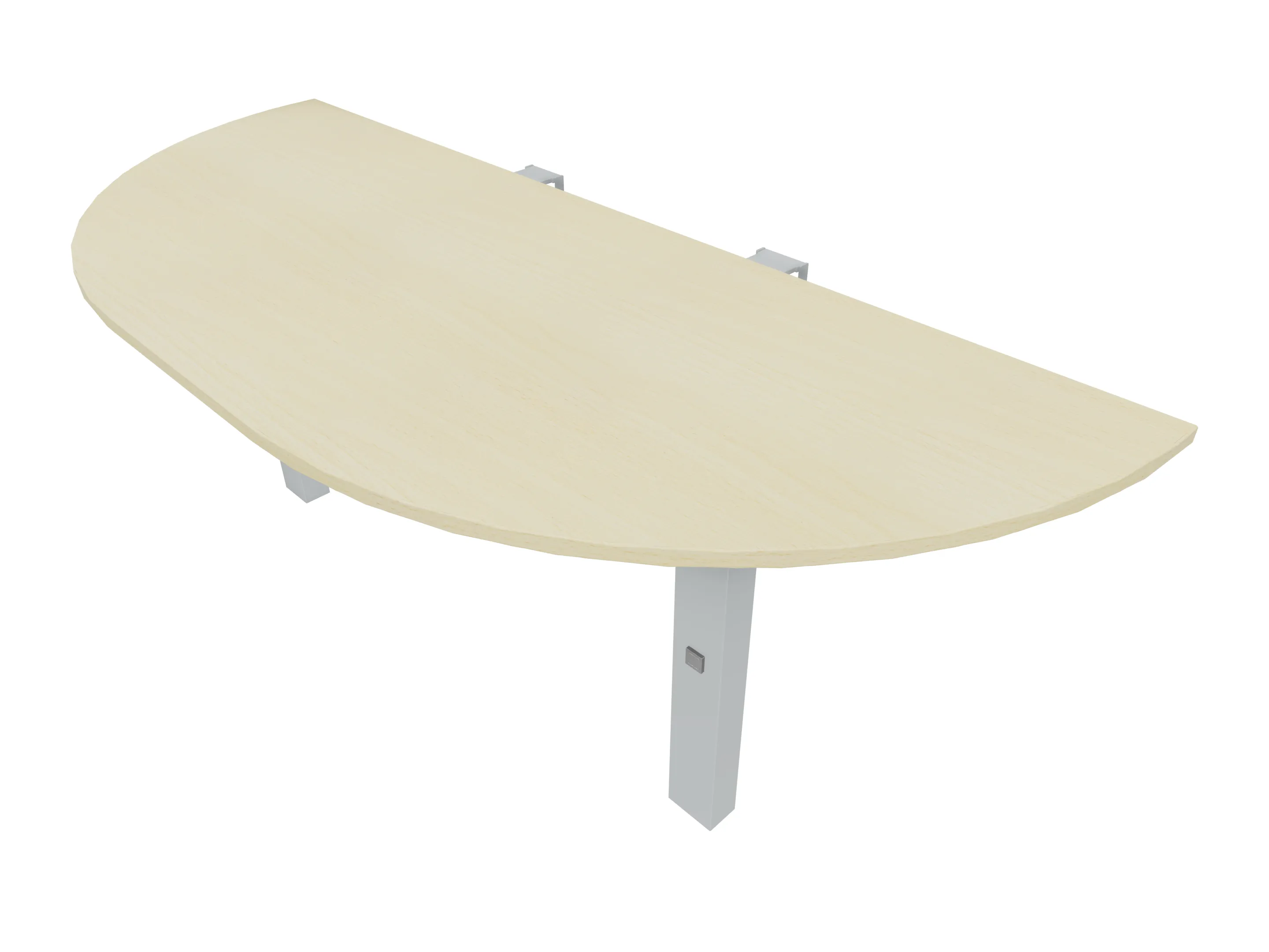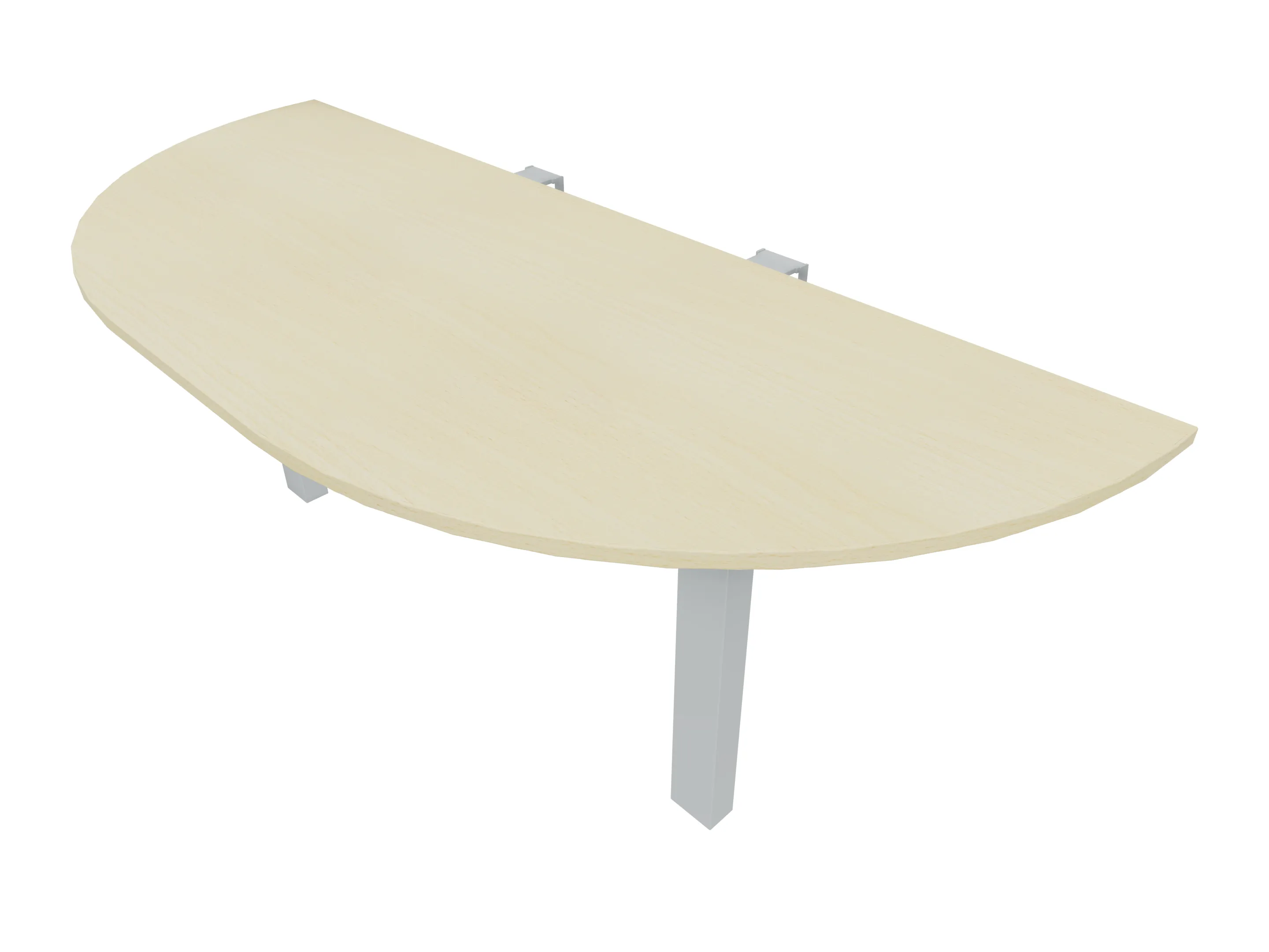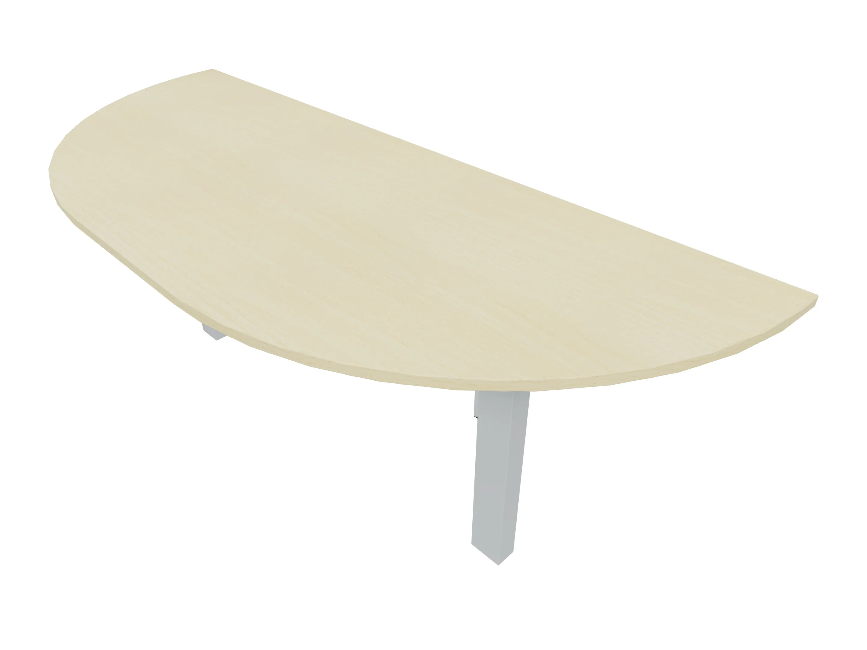 Voorzetelement voor plaatsing aan voorzijde van het bureau, van 1600mm breed en 800mm diep. Blad is voorzien van een doorlopende ronding, diameter 800mm. Inclusief twee steunpoten met hoogte verstelling.