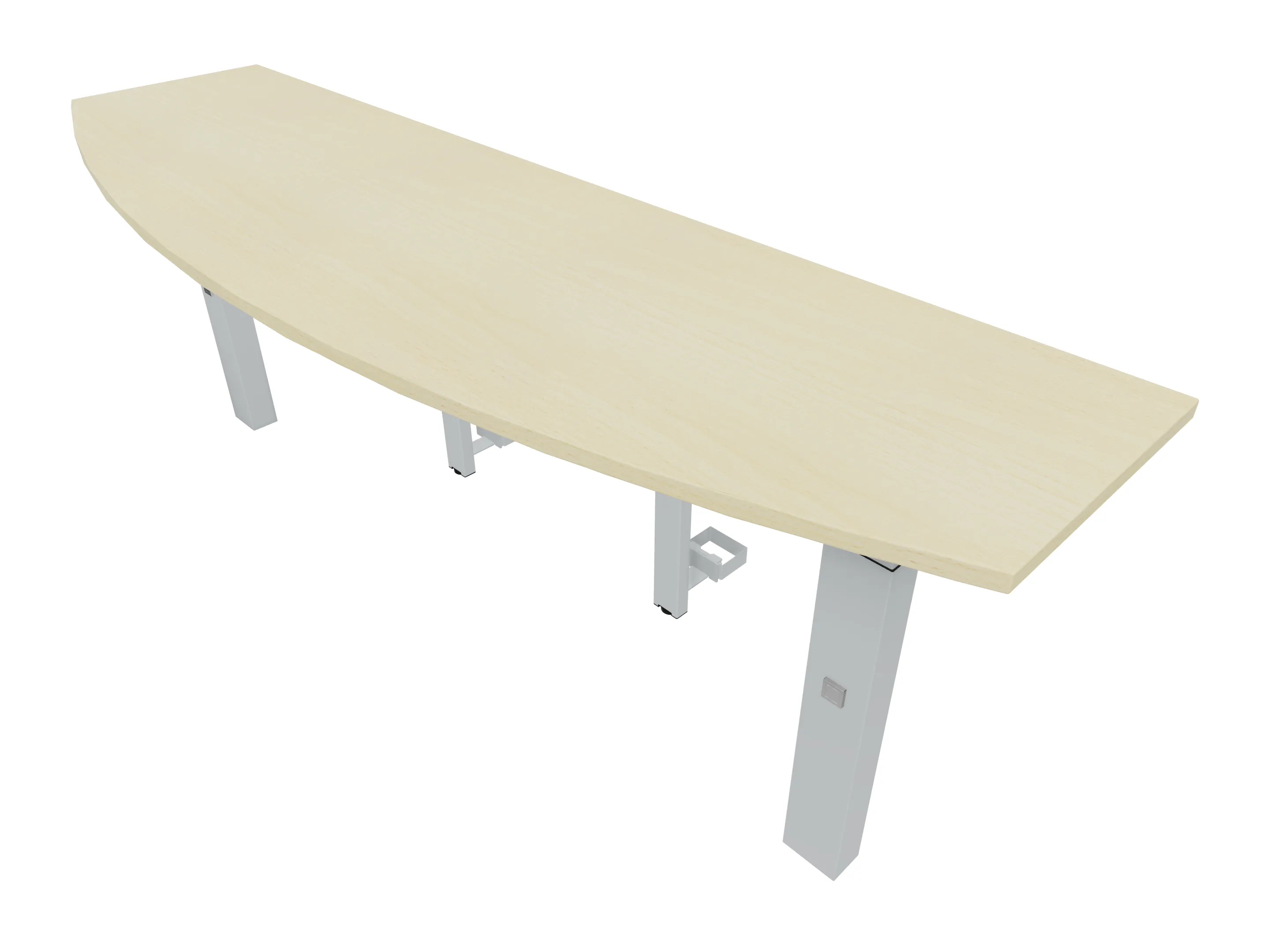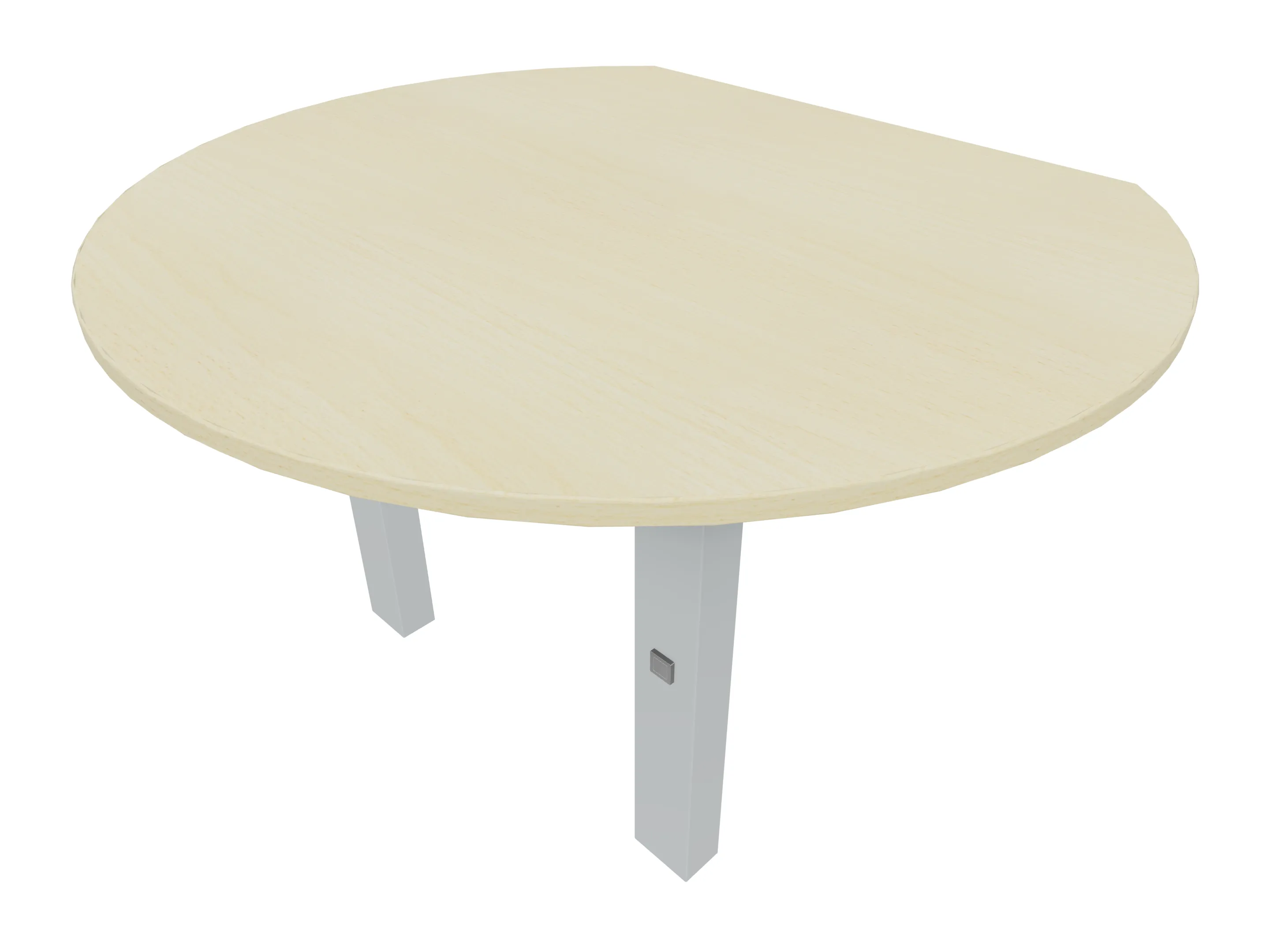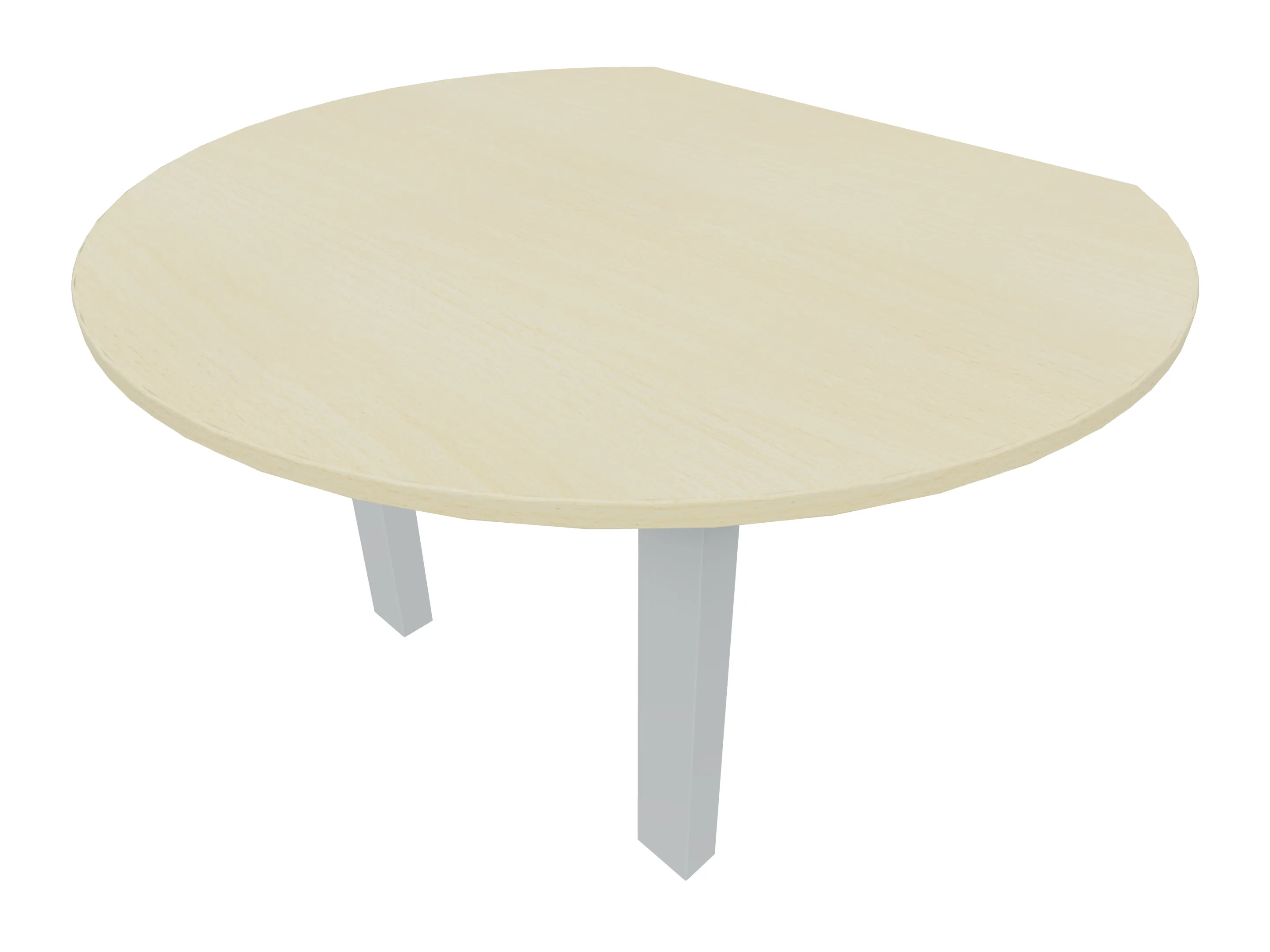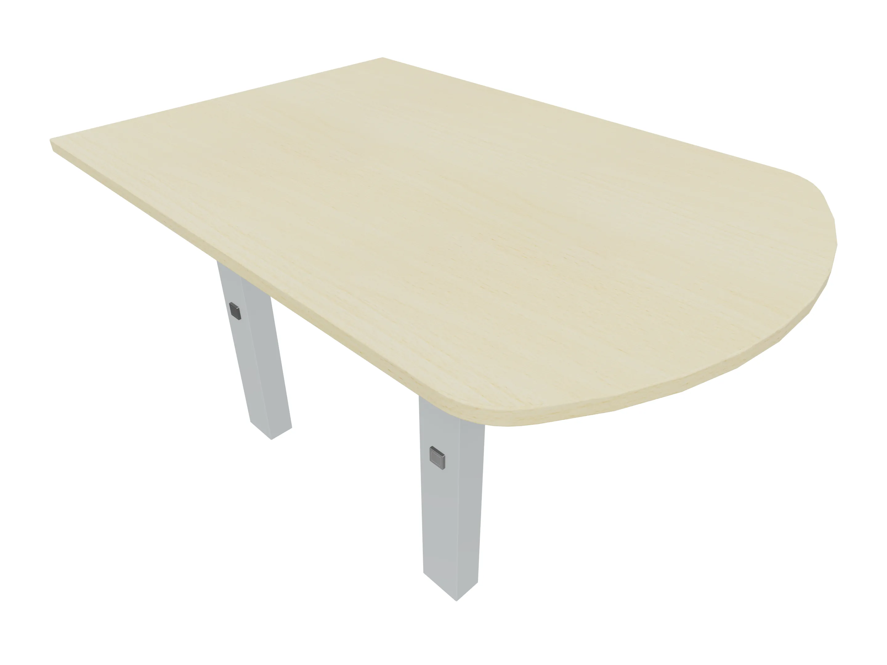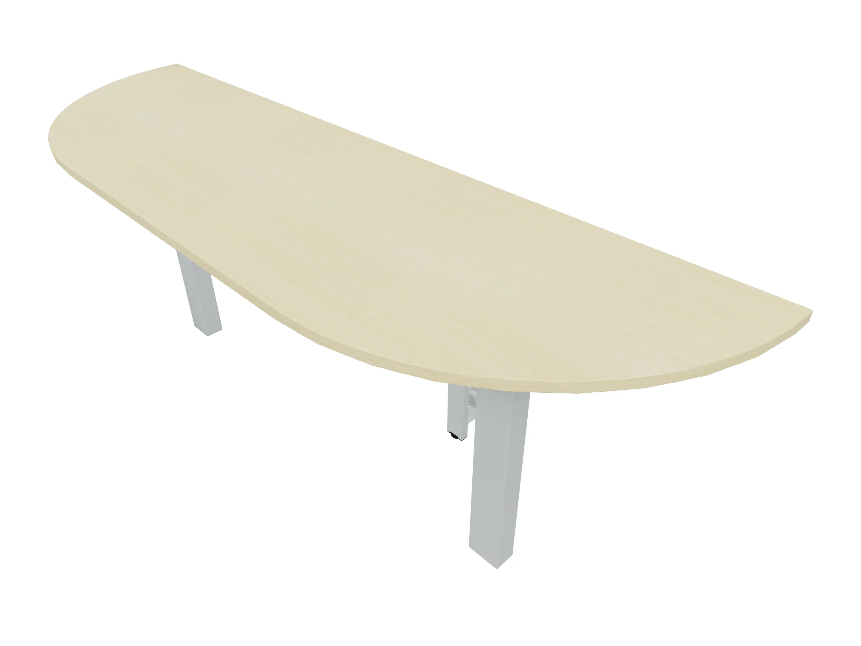 Voorzetelement voor plaatsing aan voorzijde van het bureau, van 1600mm breed en 800mm diep. Blad is voorzien van een doorlopende ronding, diameter 800mm. Inclusief twee steunpoten met hoogte verstelling.