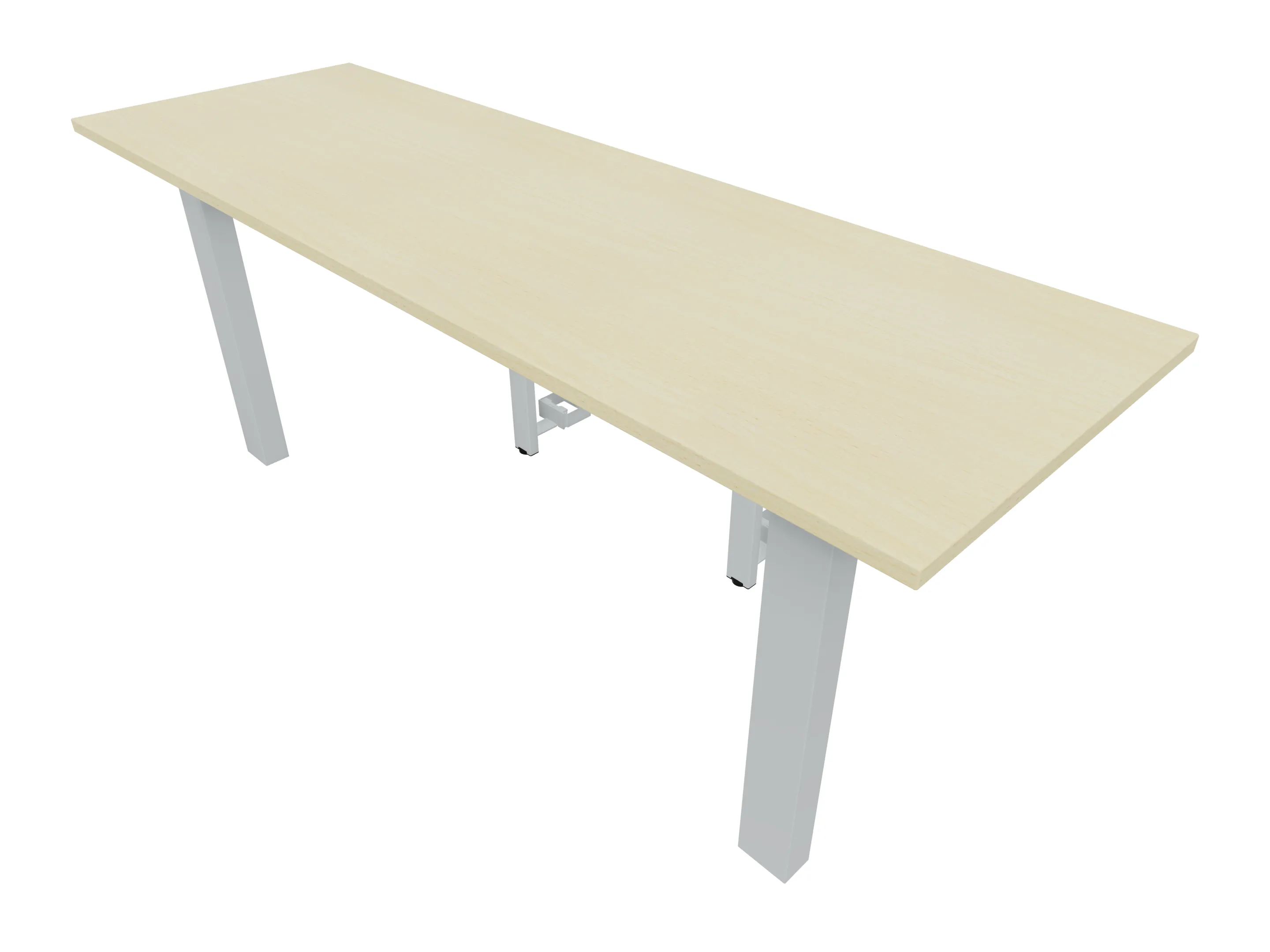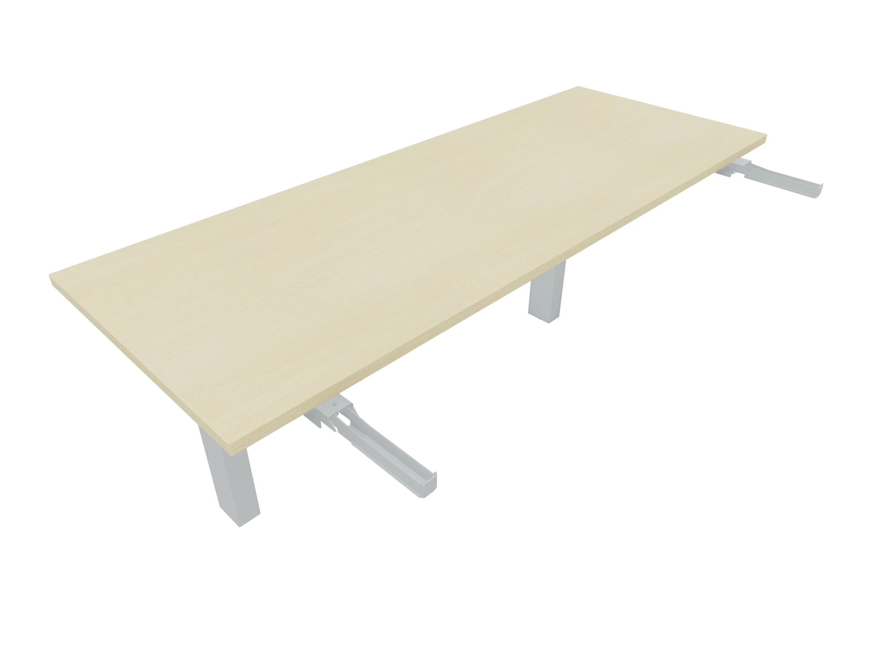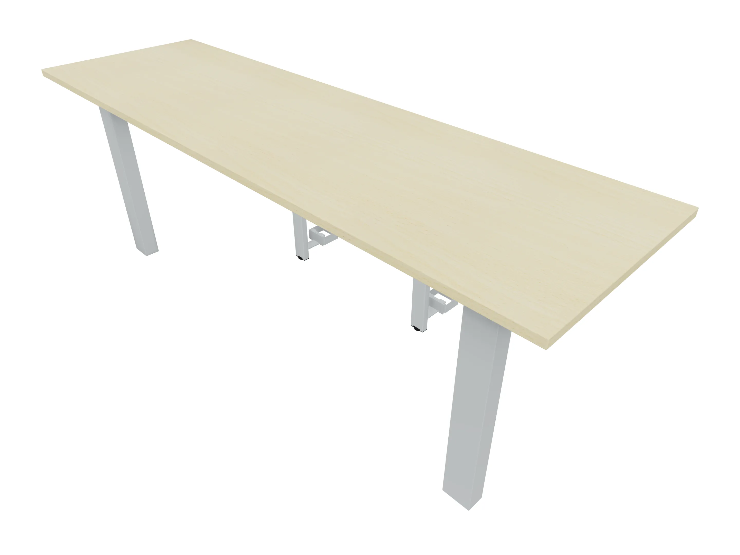Aanbouwelement voor plaatsing aan zit-sta bureaus, van 2025mm breed en 600mm diep, voor koppeling aan poten. Inclusief twee koppel-steunpoten zonder hoogte verstelling.
