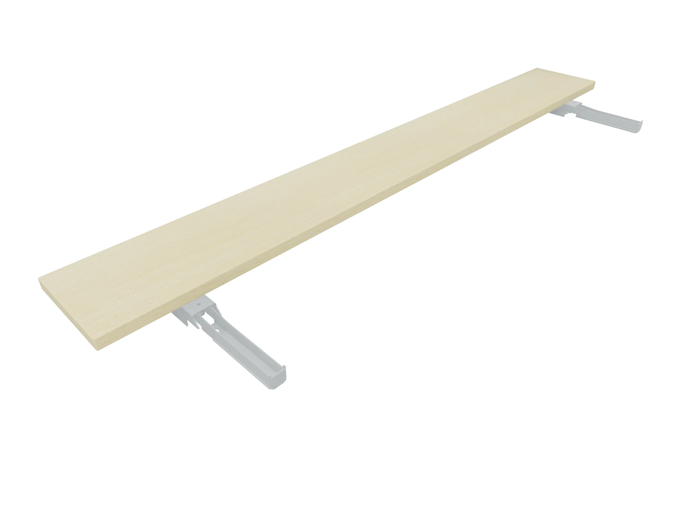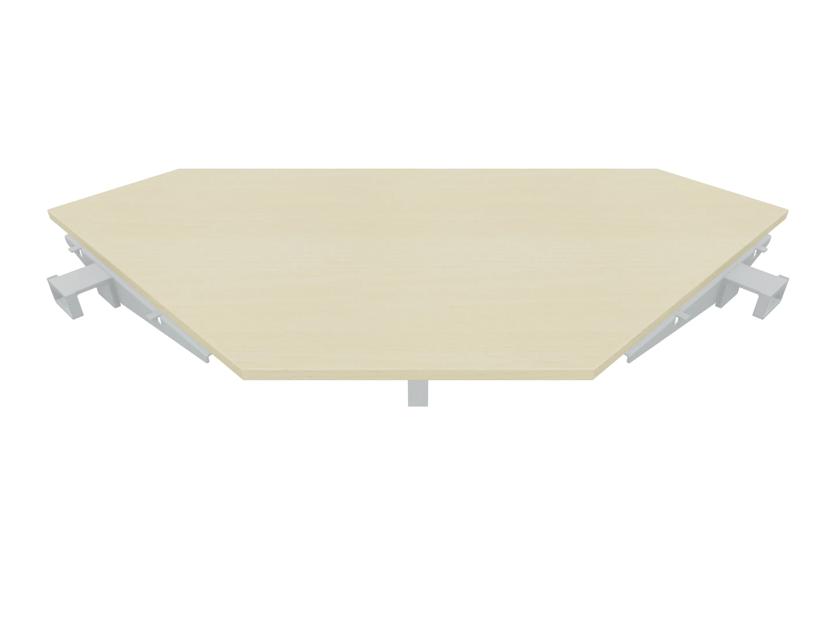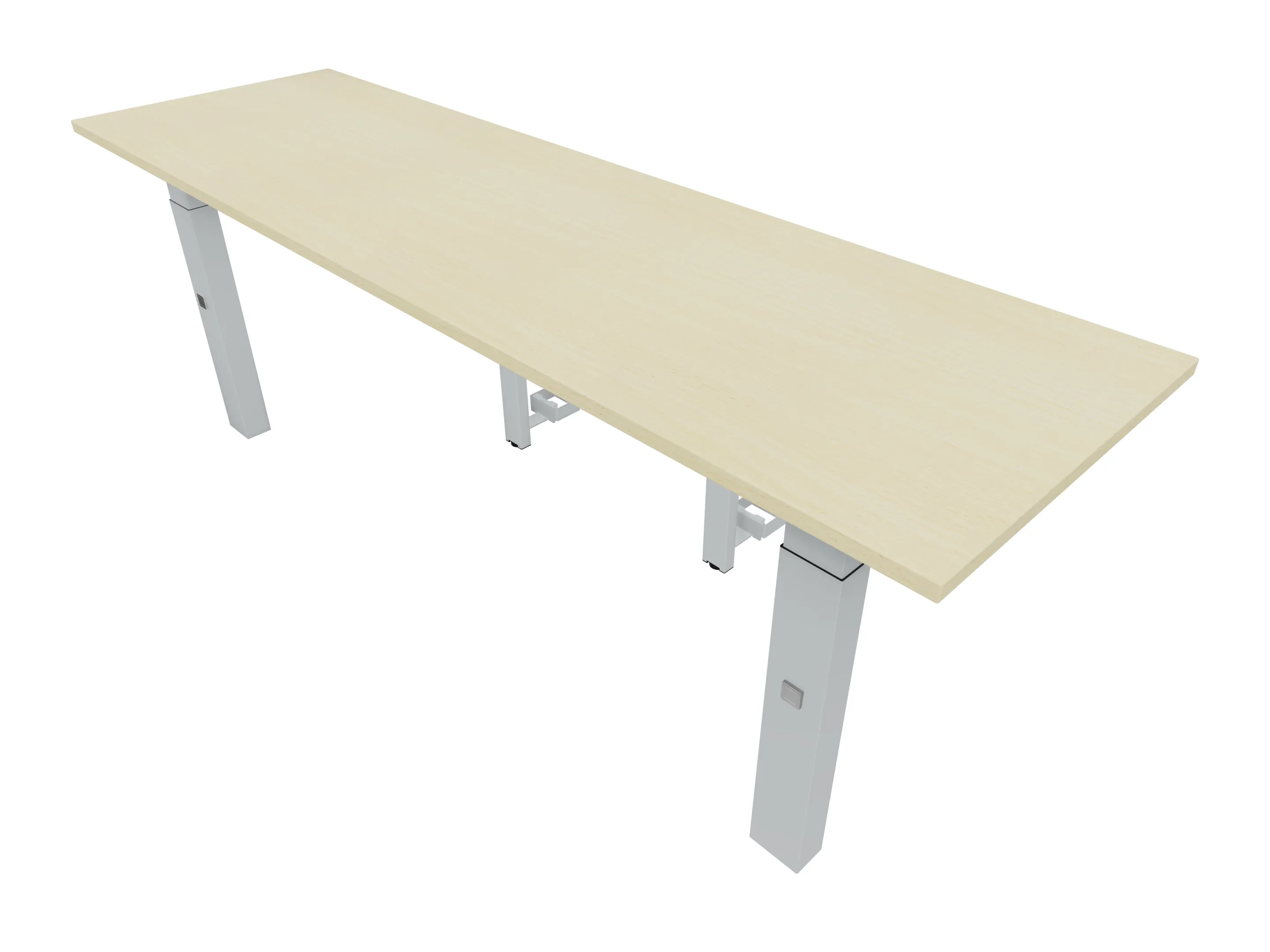 Aanbouwelement voor plaatsing aan zit-sta bureaus, van 2025mm breed en 600mm diep, voor koppeling aan poten. Inclusief twee koppel-steunpoten zonder hoogte verstelling.