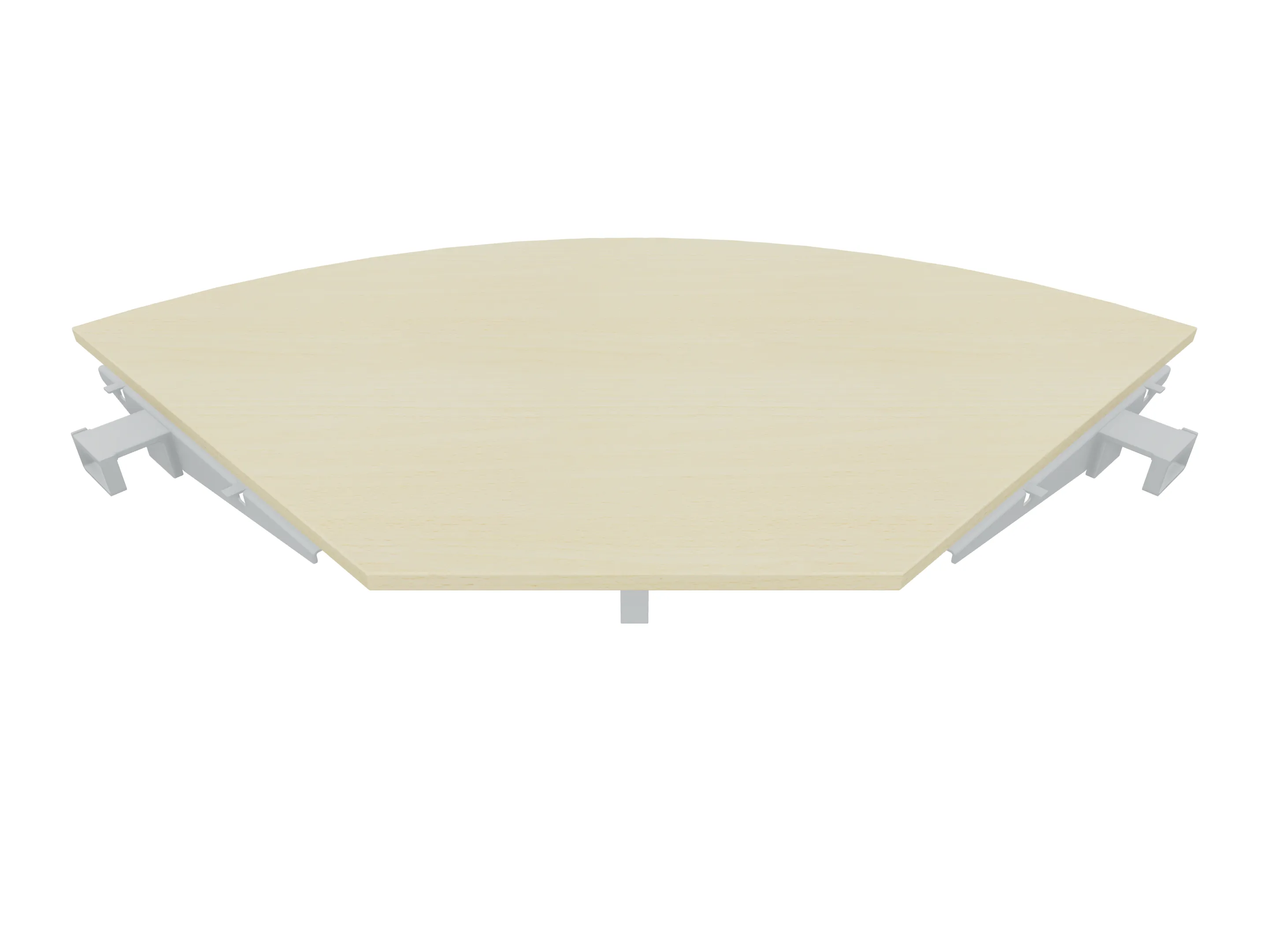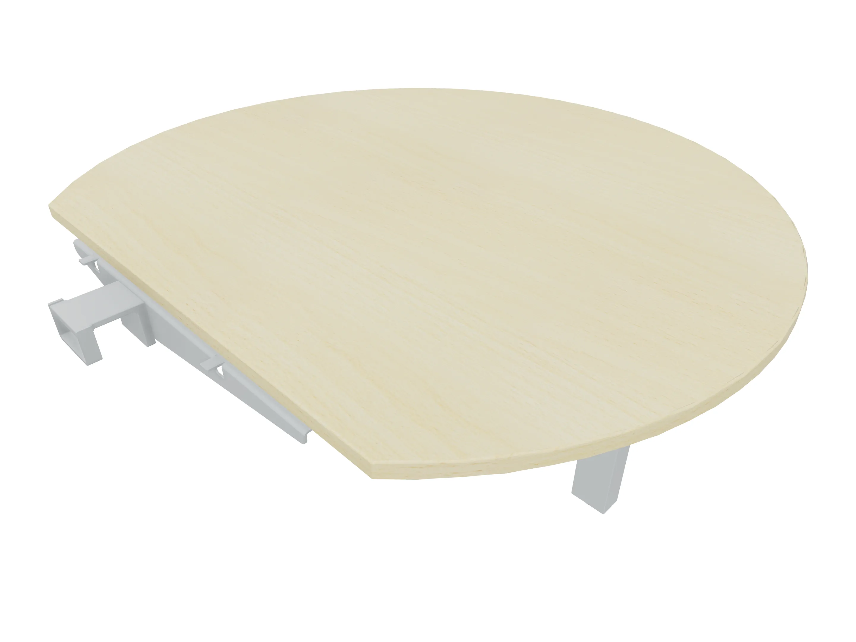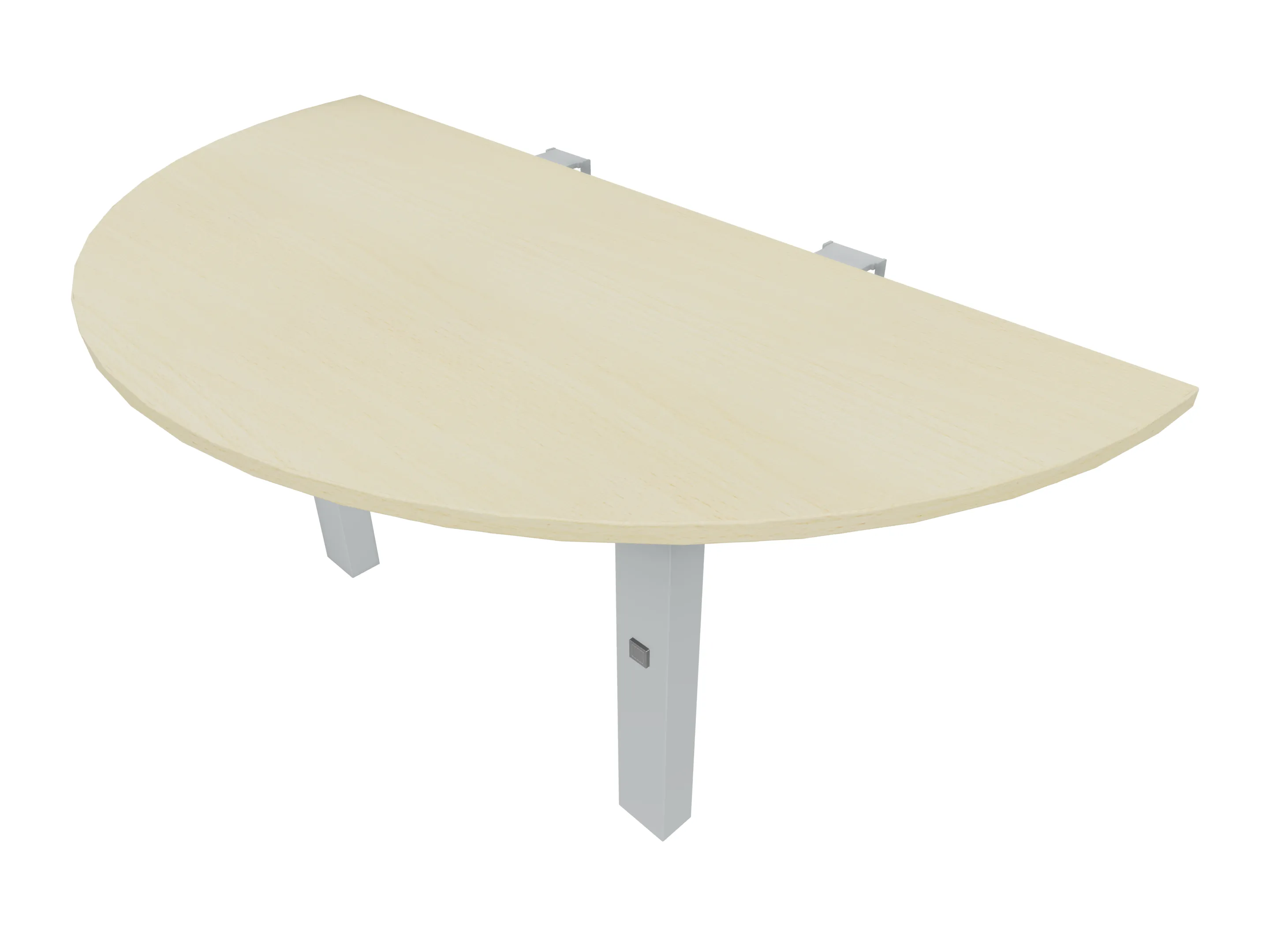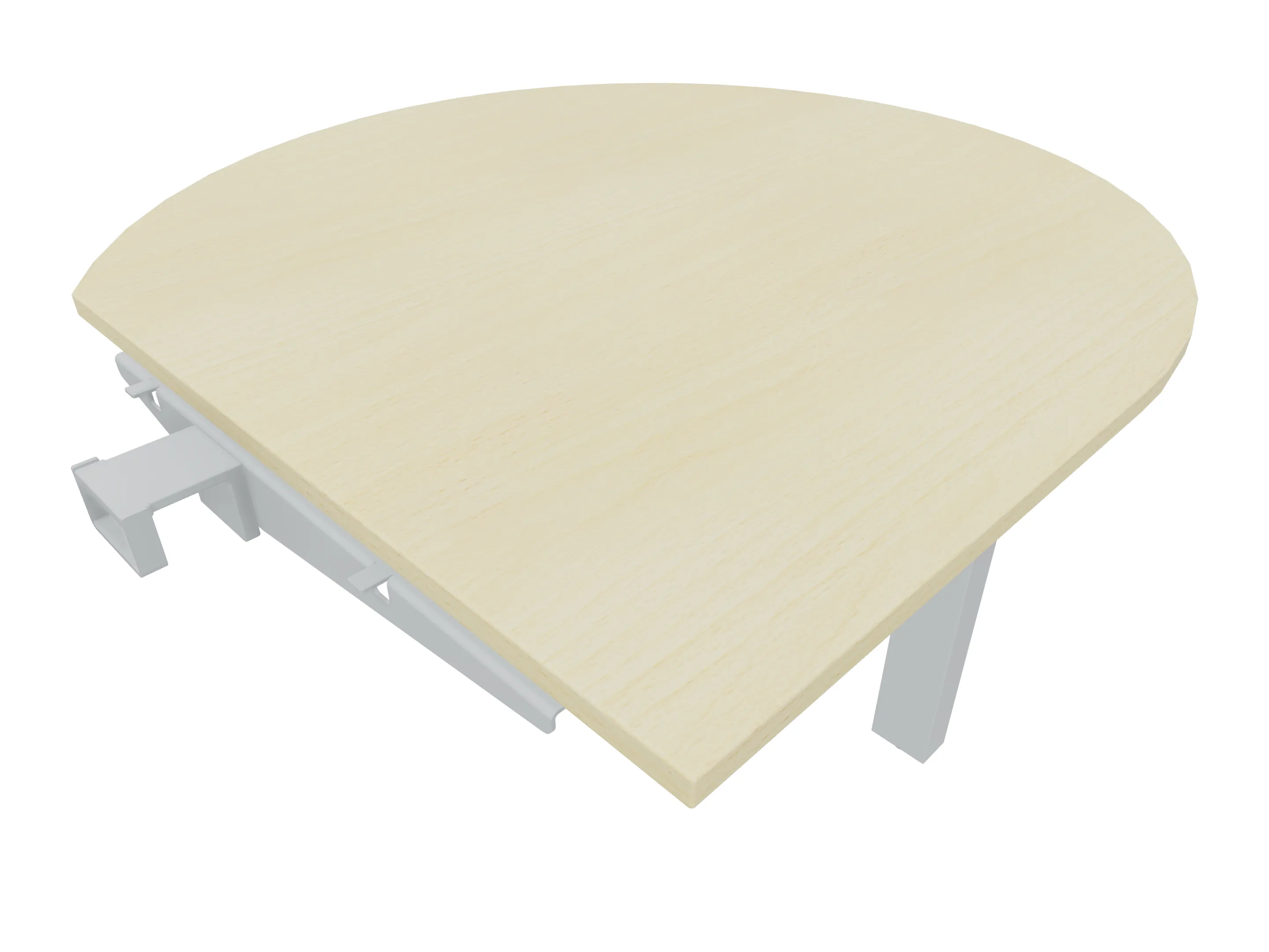 Aanbouwelement voor plaatsing aan zit-sta bureaus, van 1625mm breed en 800mm diep. Blad is voorzien van een doorlopende ronding, diameter 800mm. Inclusief twee koppel-steunpoten zonder hoogte verstelling.