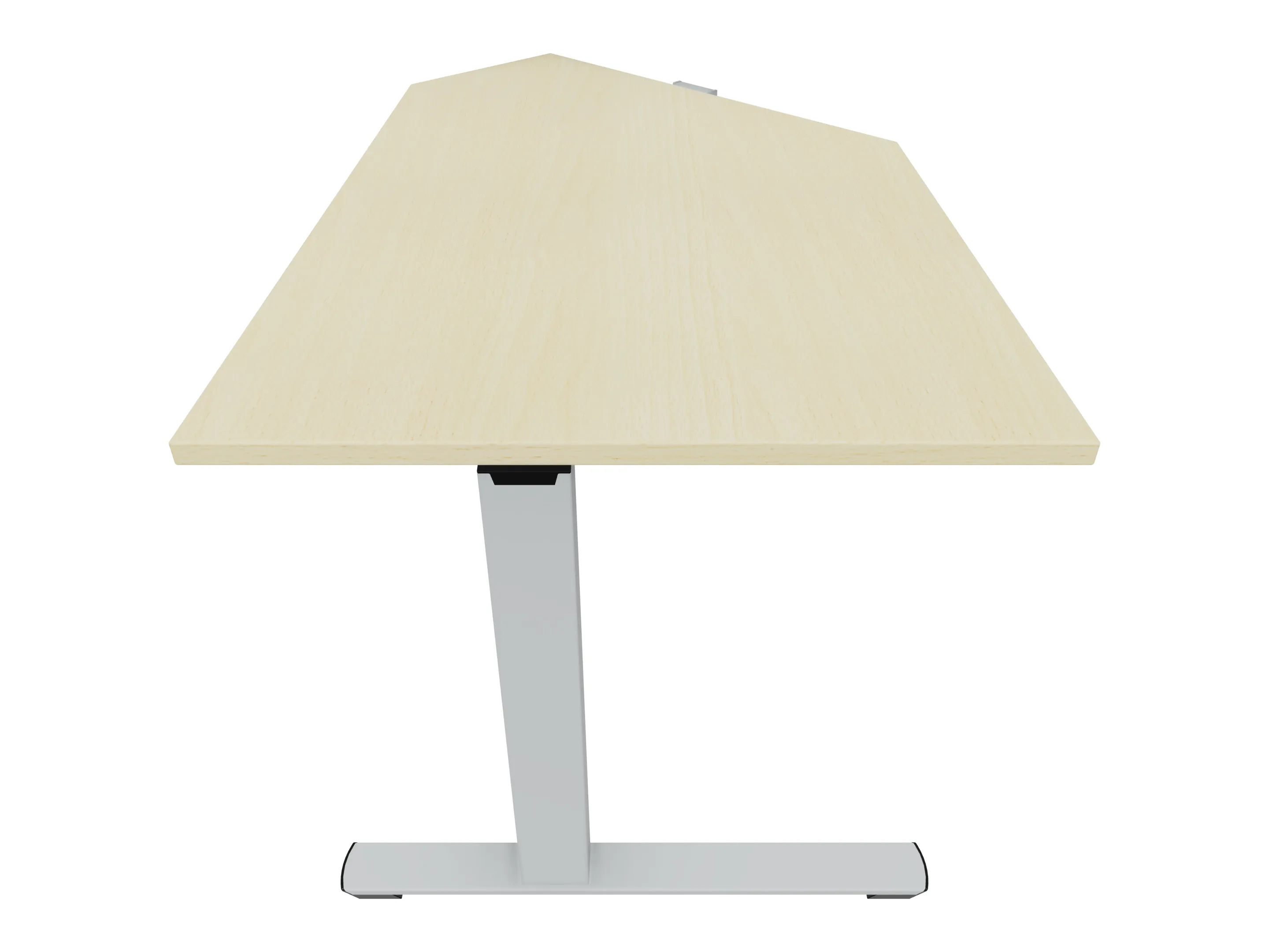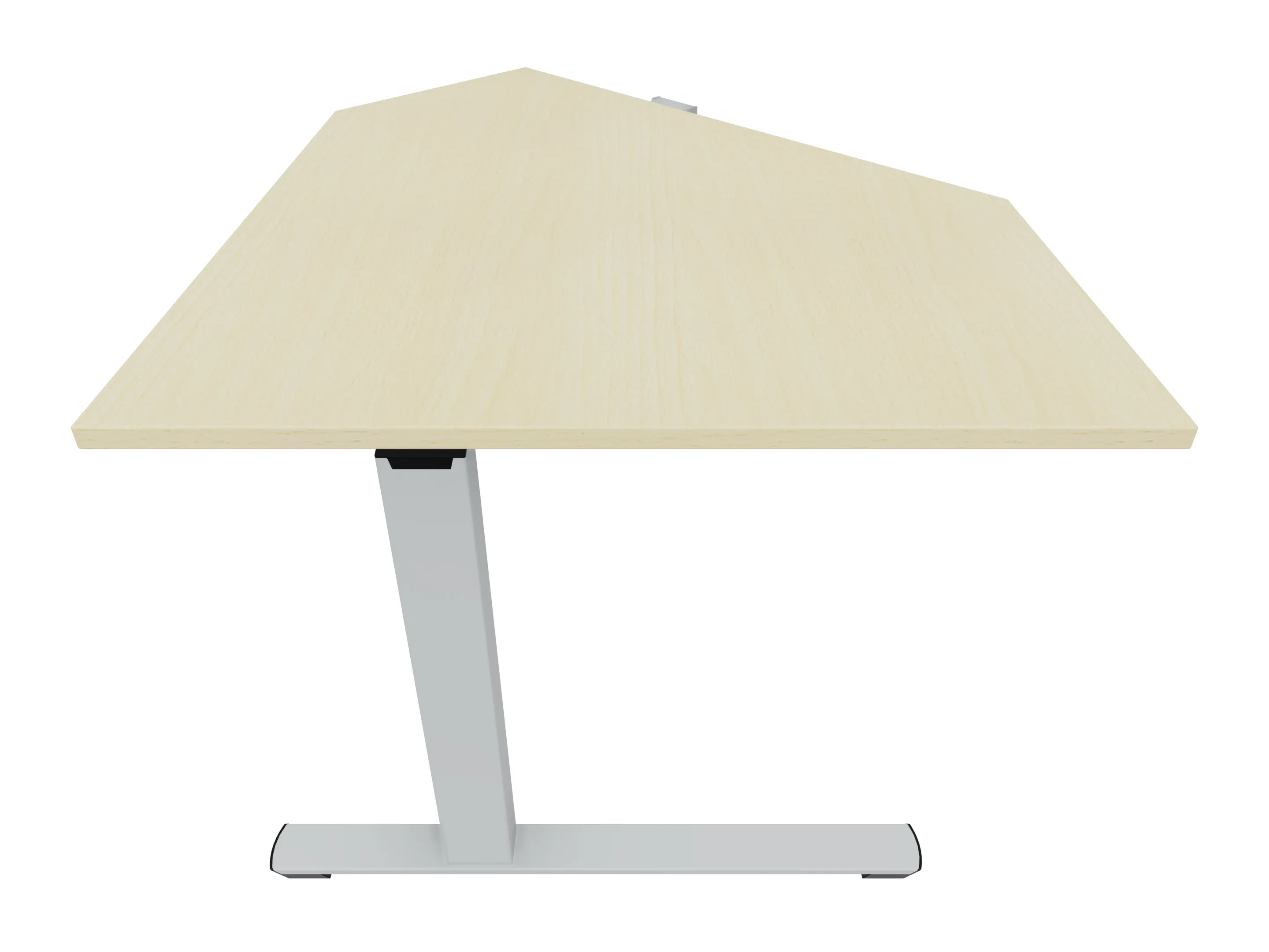 Eindelement in 135° met een aanbouwzijde van 800mm, een zitzijde van 800, en lengte 1162mm. Rechts geplaatst aan het bureau. Inclusief steunpoten zonder hoogte verstelling.