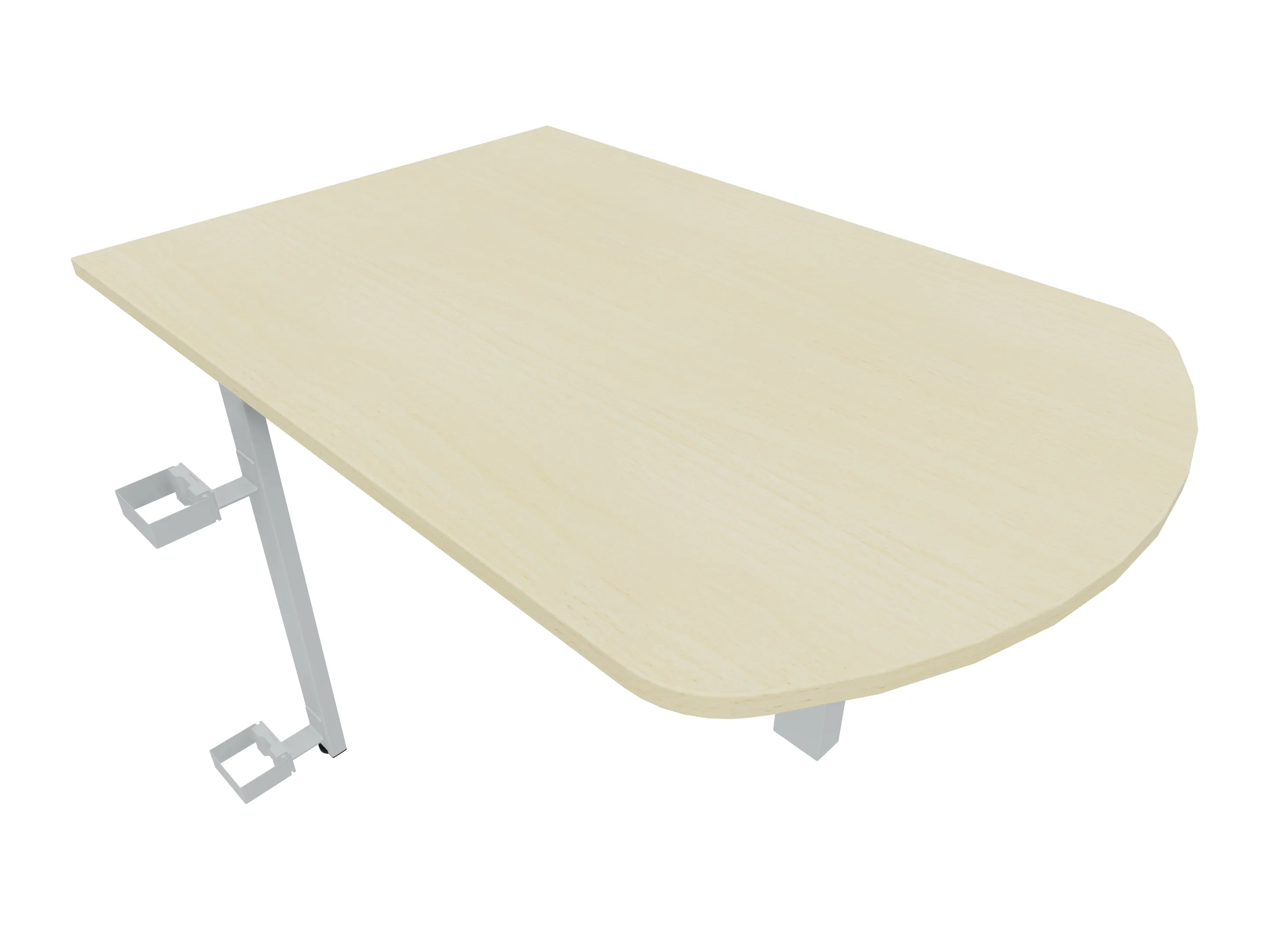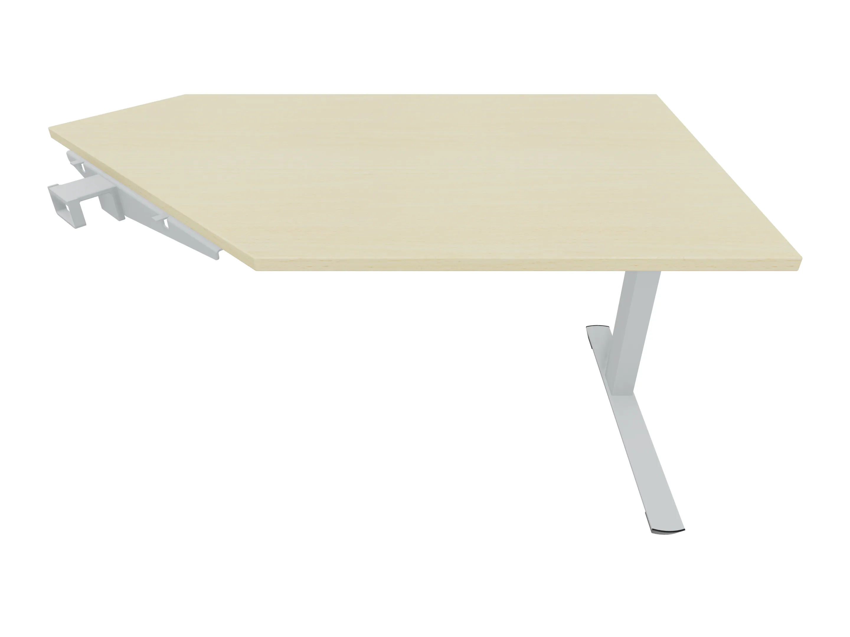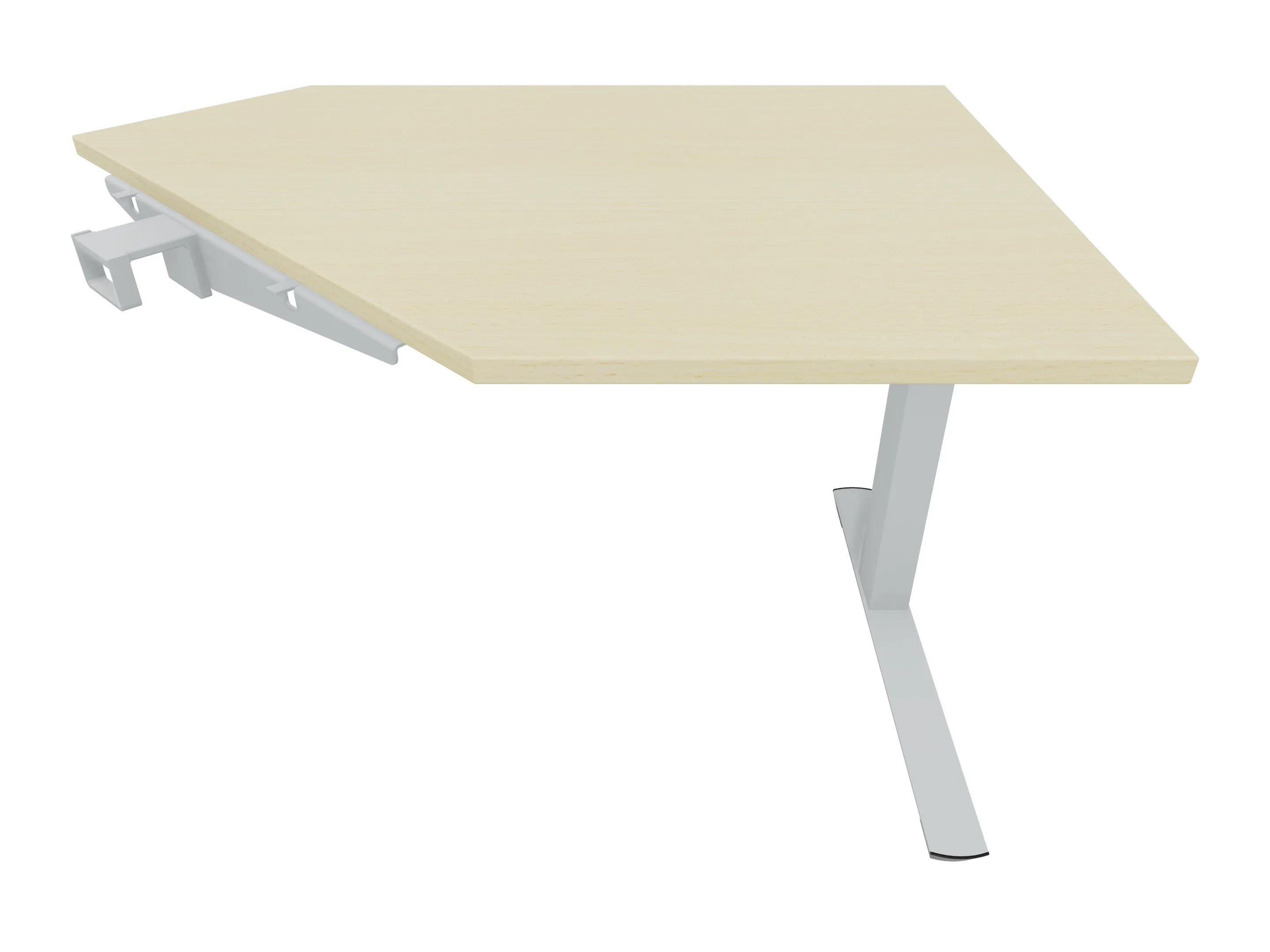 Aanbouwelement voor plaatsing aan zit-sta bureaus, van 1625mm breed en 600mm diep. Blad is voorzien van een gerond blad. Inclusief twee koppel-steunpoten zonder hoogte verstelling.