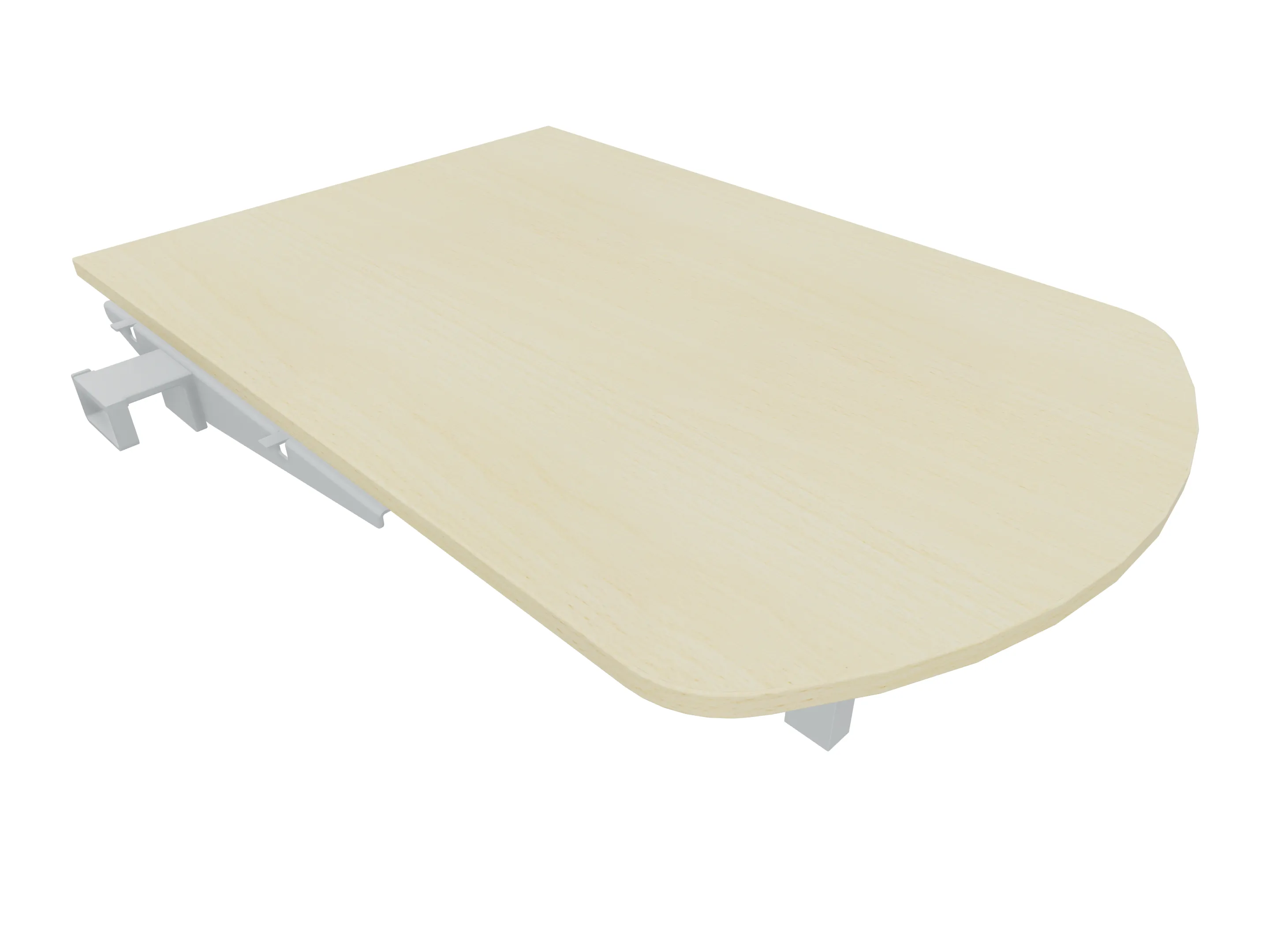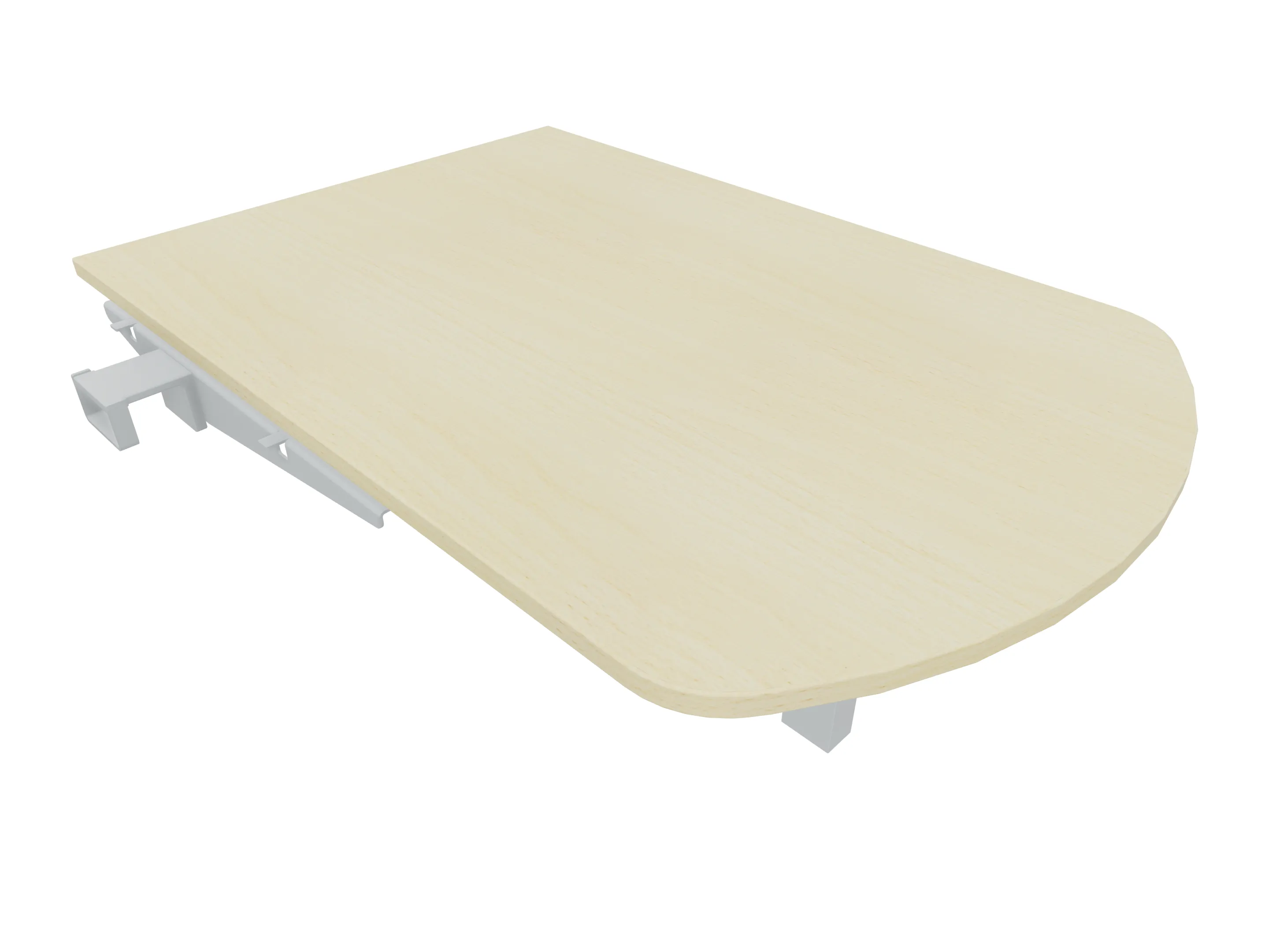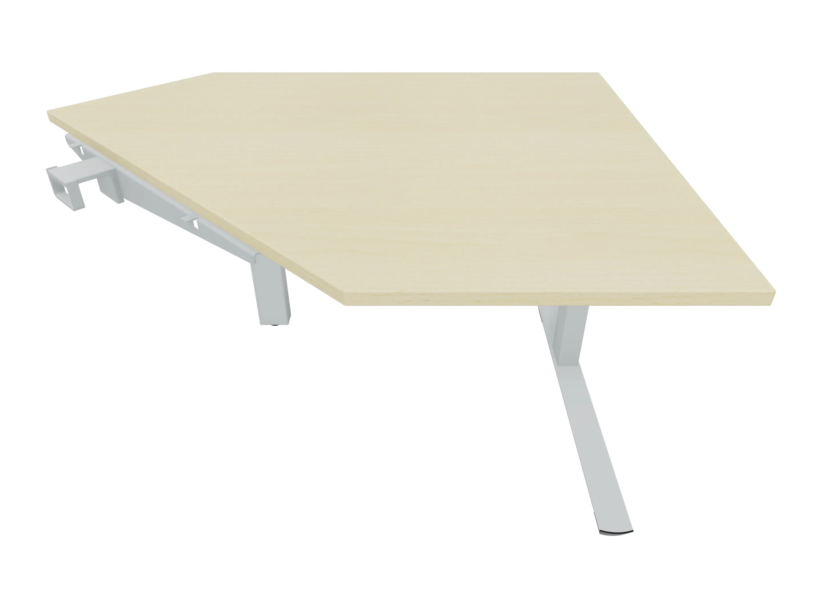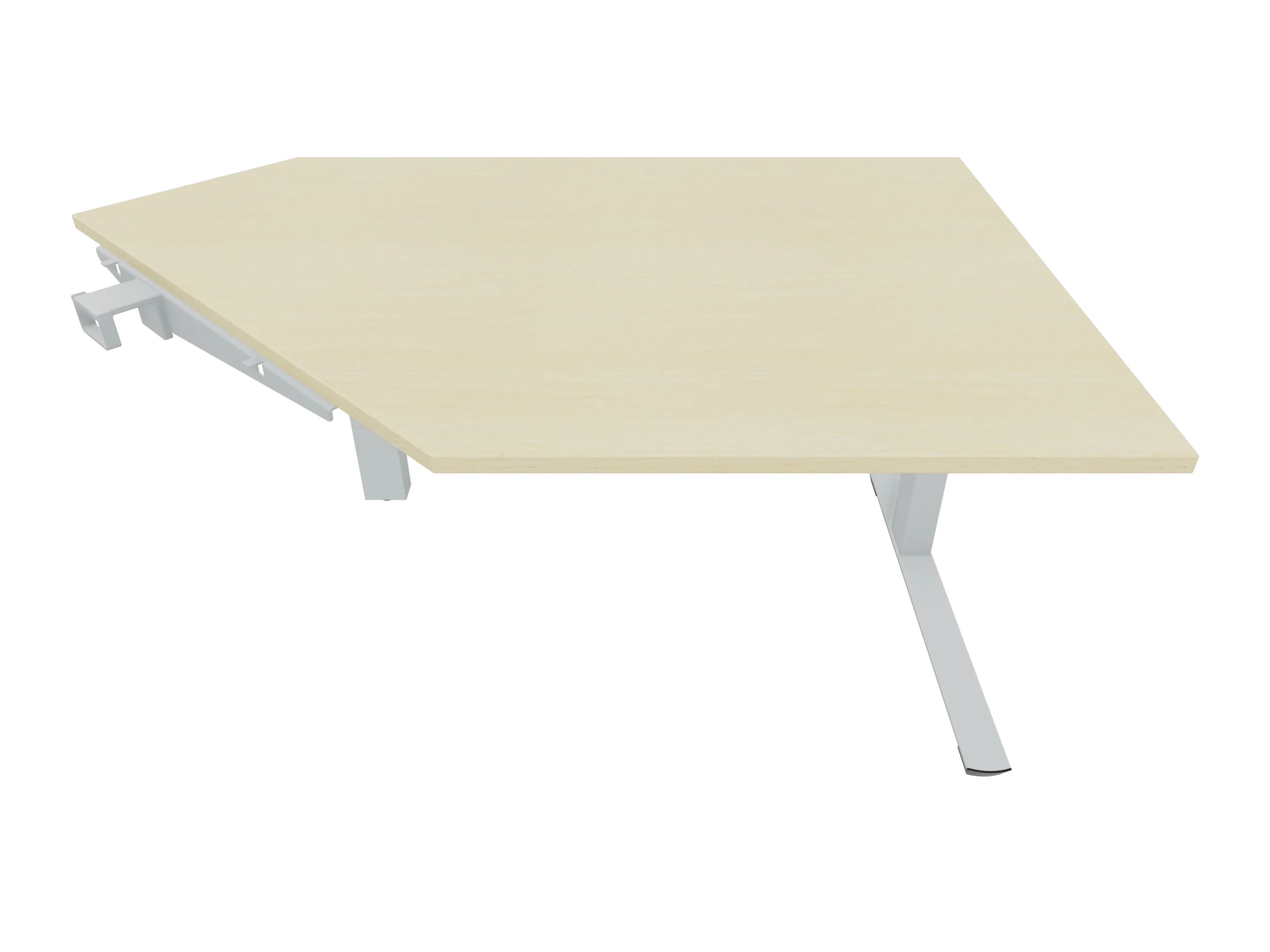 Aanbouwelement voor plaatsing aan zit-sta bureaus, van 1625mm breed en 600mm diep. Blad is voorzien van een gerond blad. Inclusief twee koppel-steunpoten zonder hoogte verstelling.