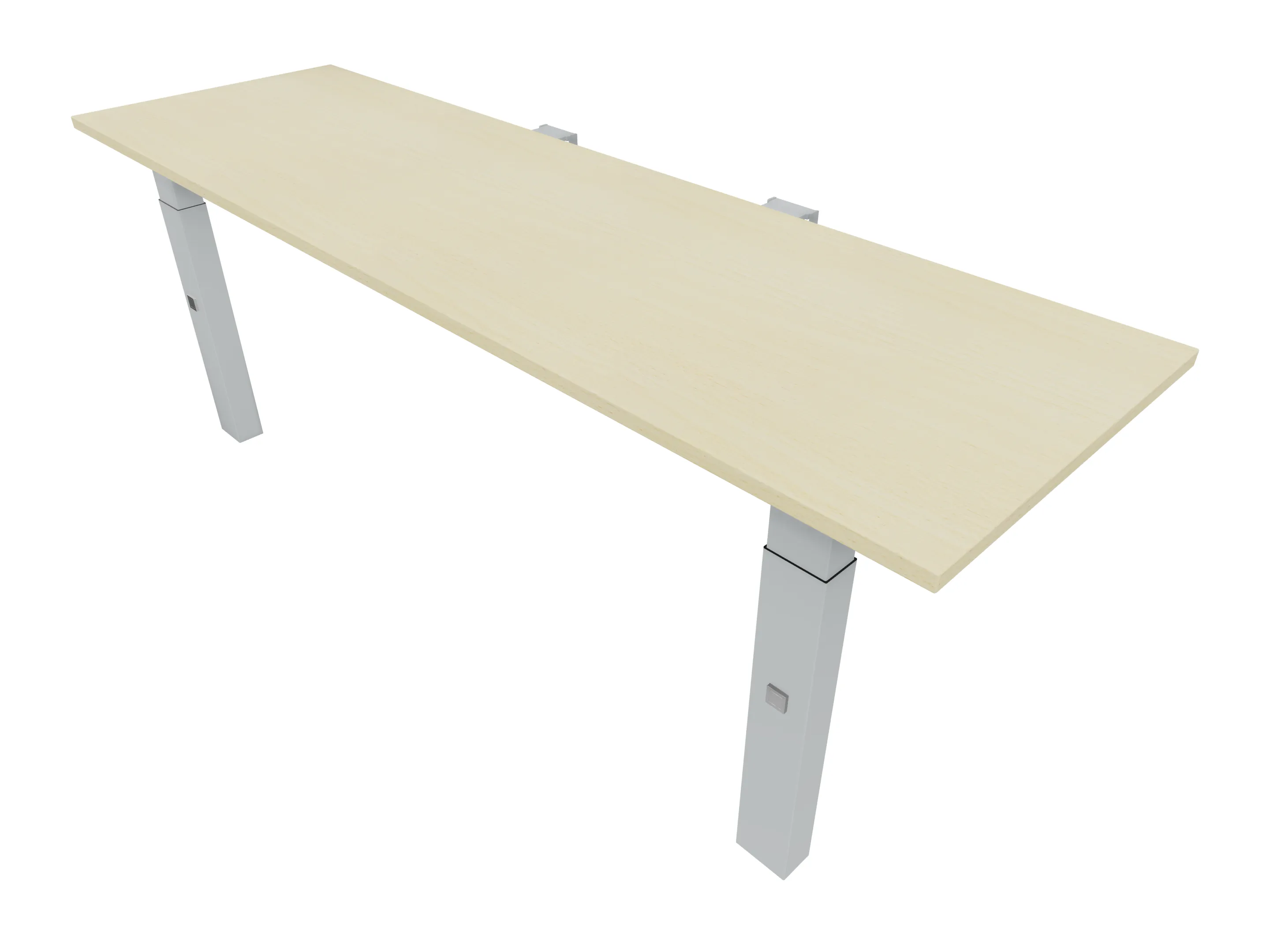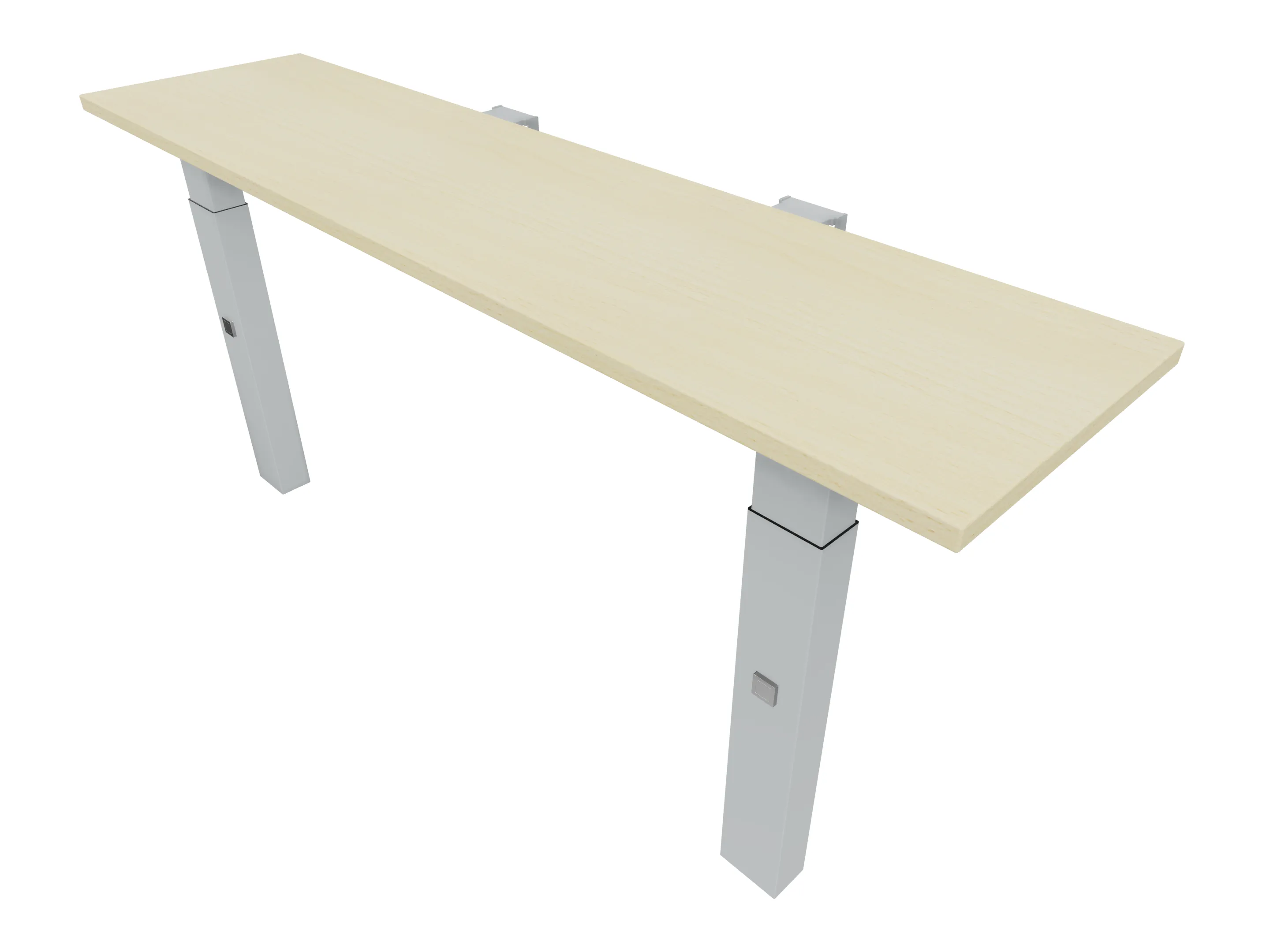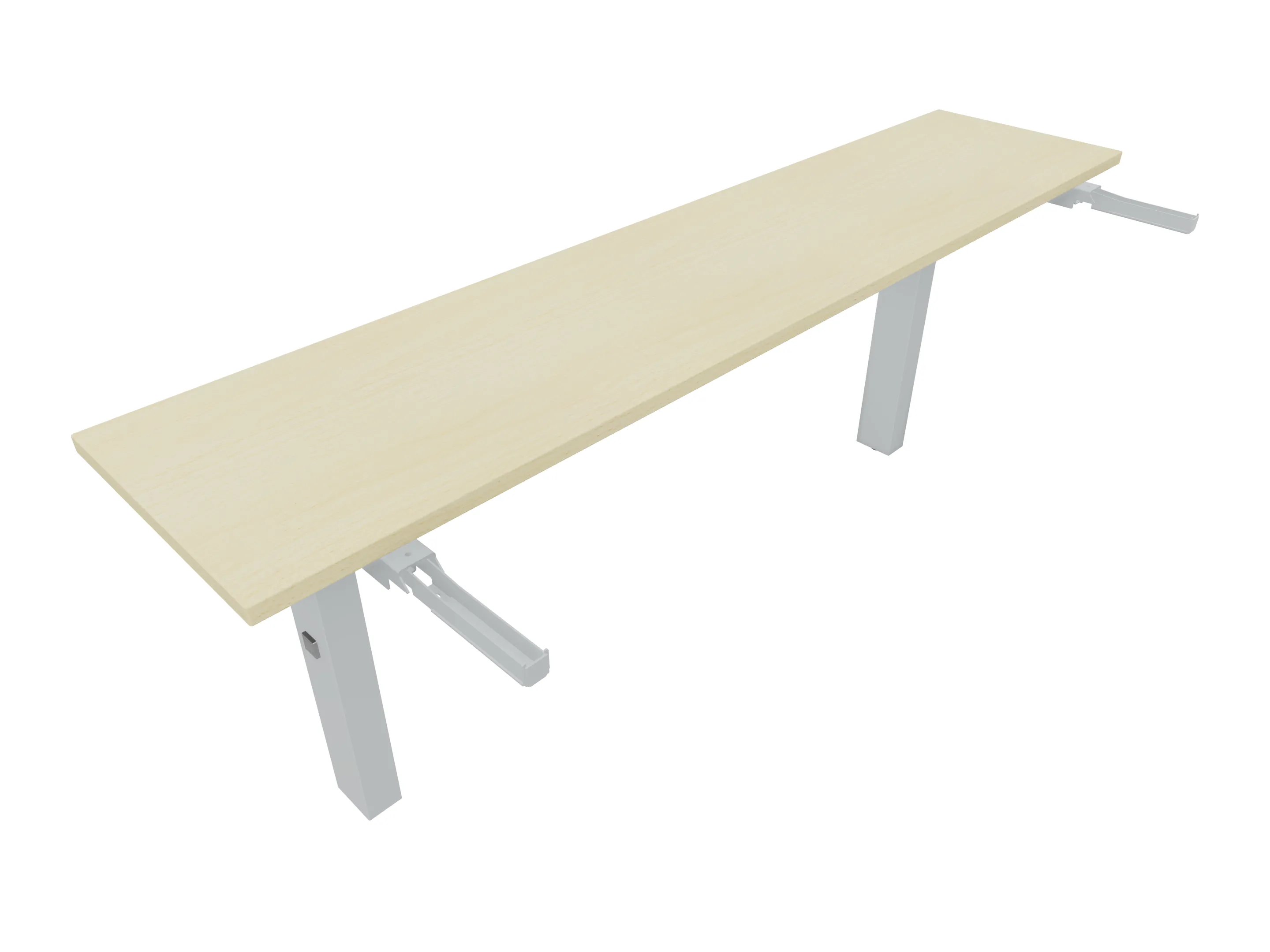 Aanbouwelement voor plaatsing aan zit-sta bureaus, van 2025mm breed en 600mm diep, voor koppeling aan poten. Inclusief twee koppel-steunpoten met hoogte verstelling (650-850mm, d.m.v. "Easy-Push").