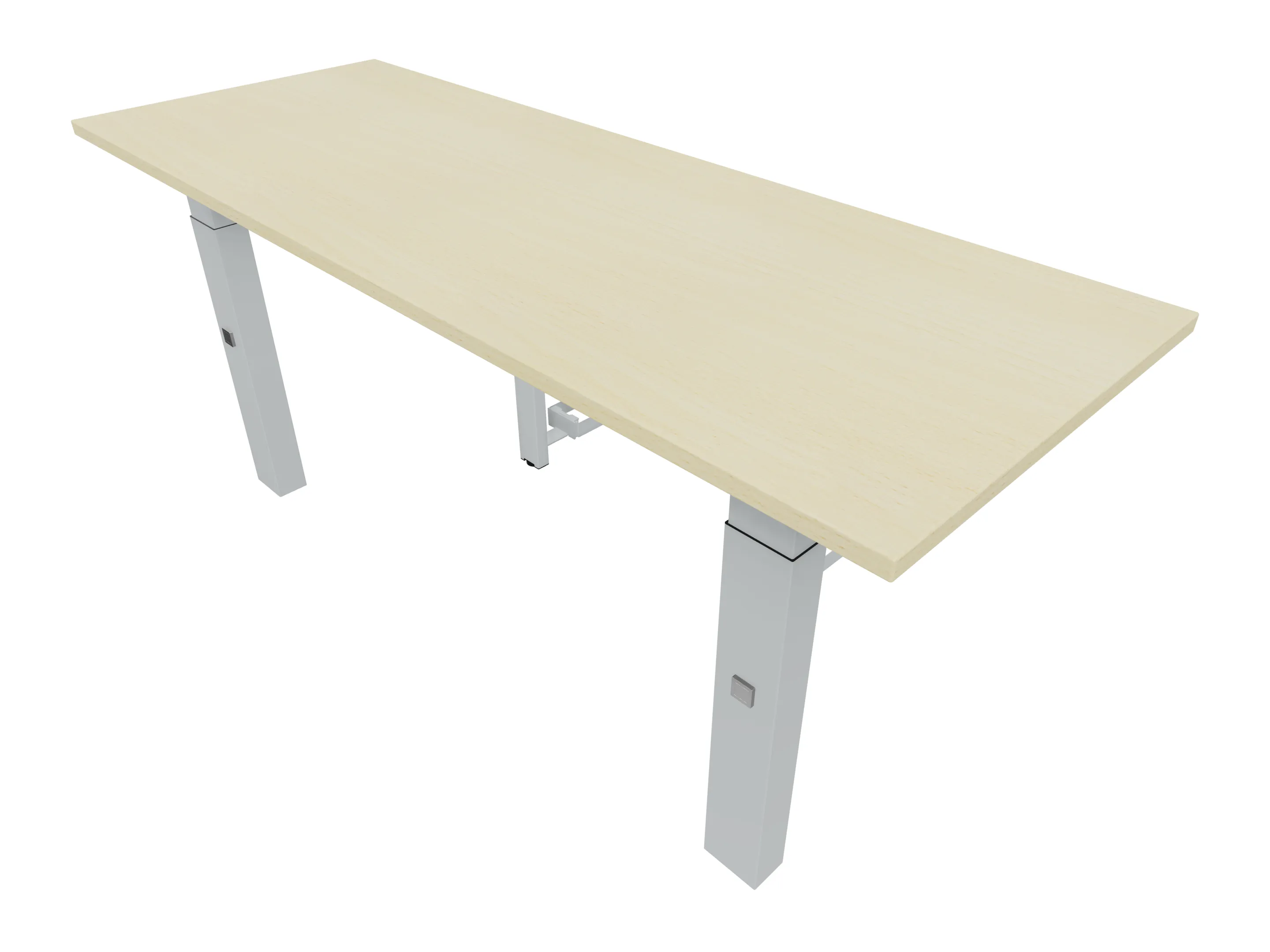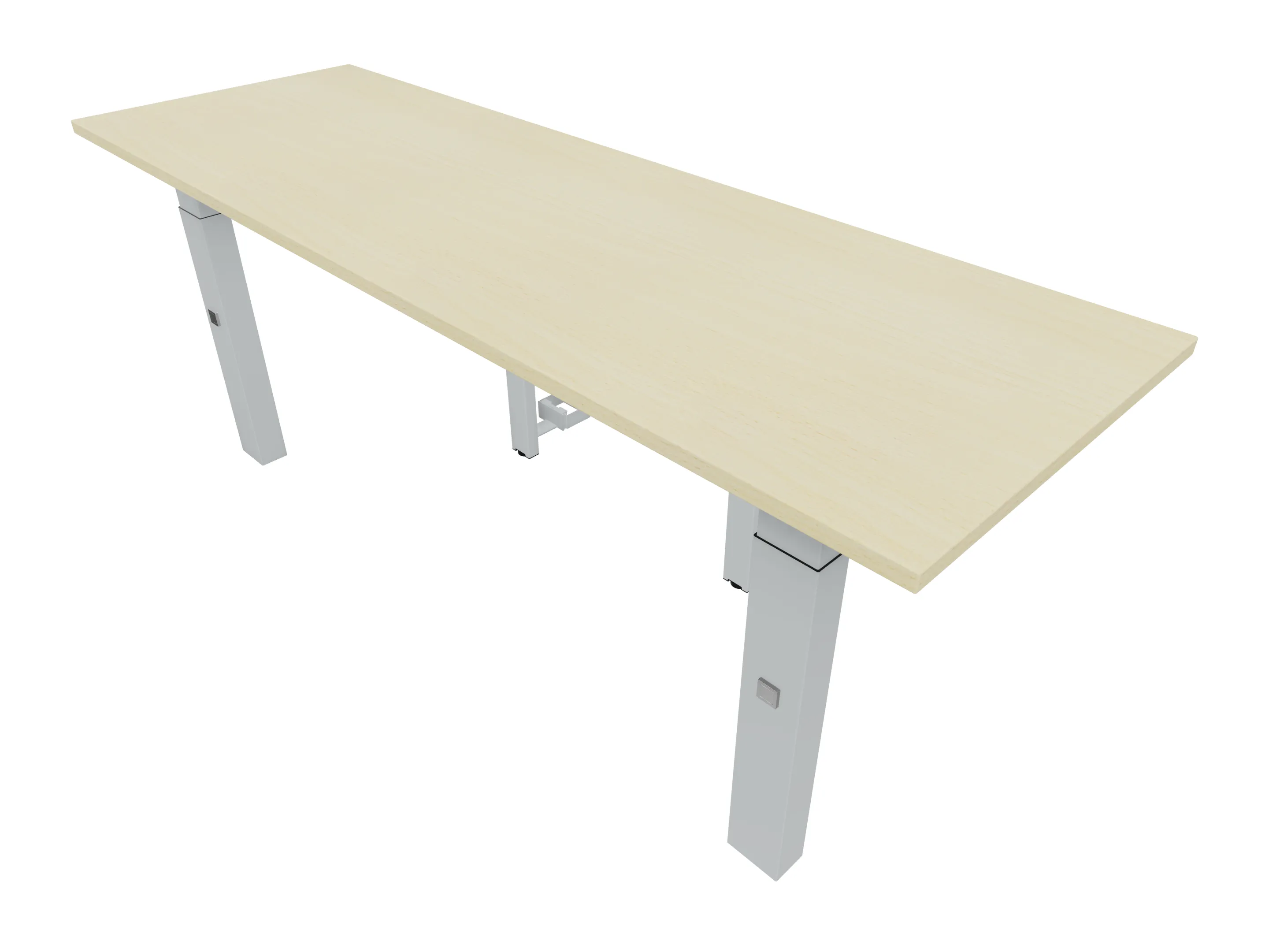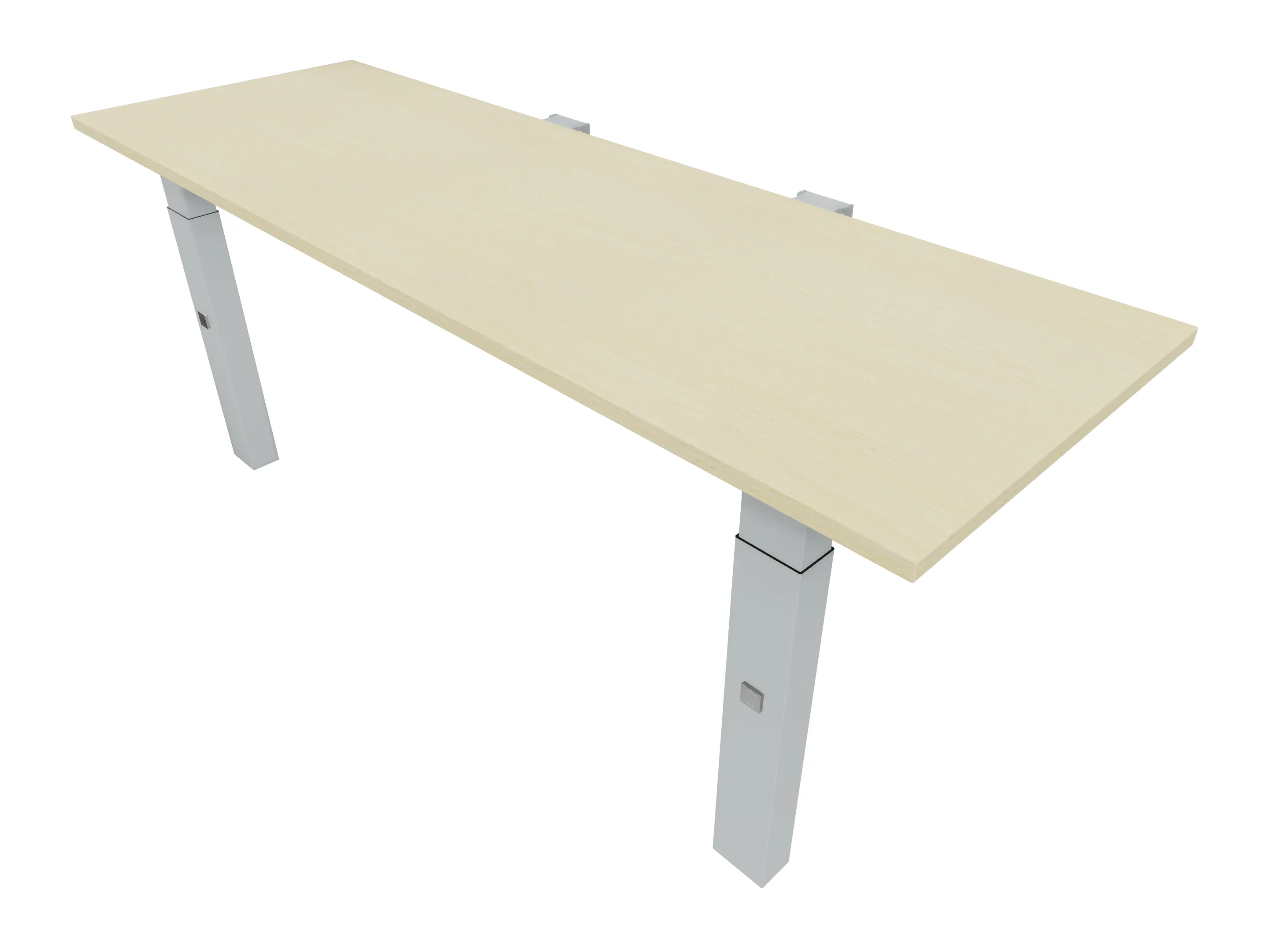 Aanbouwelement voor plaatsing aan zit-sta bureaus, van 2025mm breed en 600mm diep, voor koppeling aan poten. Inclusief twee koppel-steunpoten met hoogte verstelling (650-850mm, d.m.v. "Easy-Push").