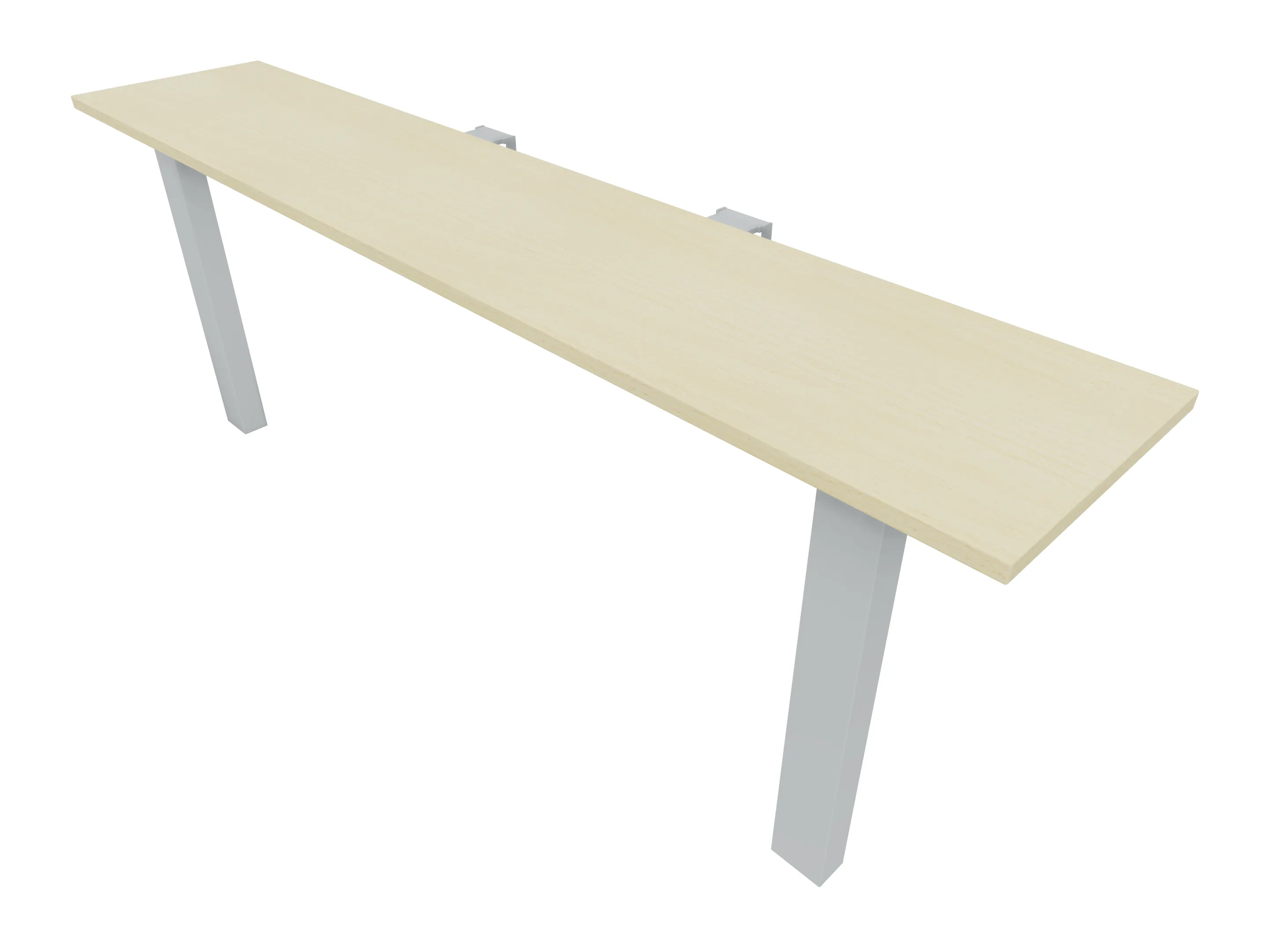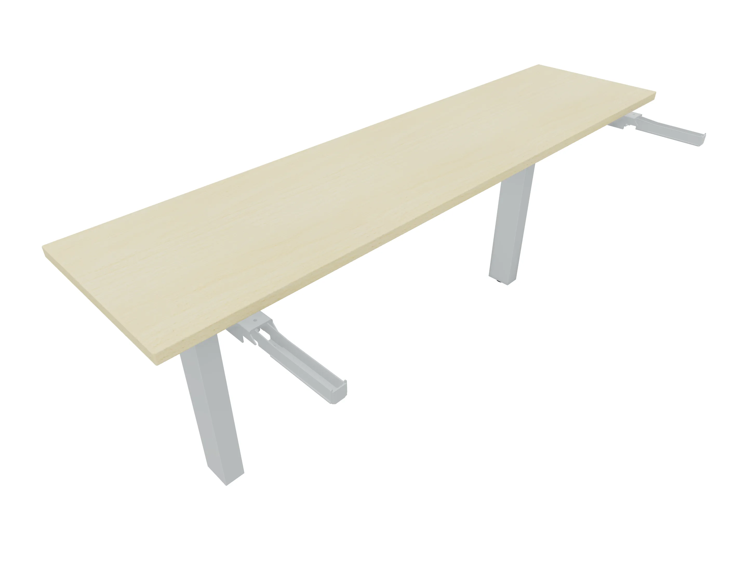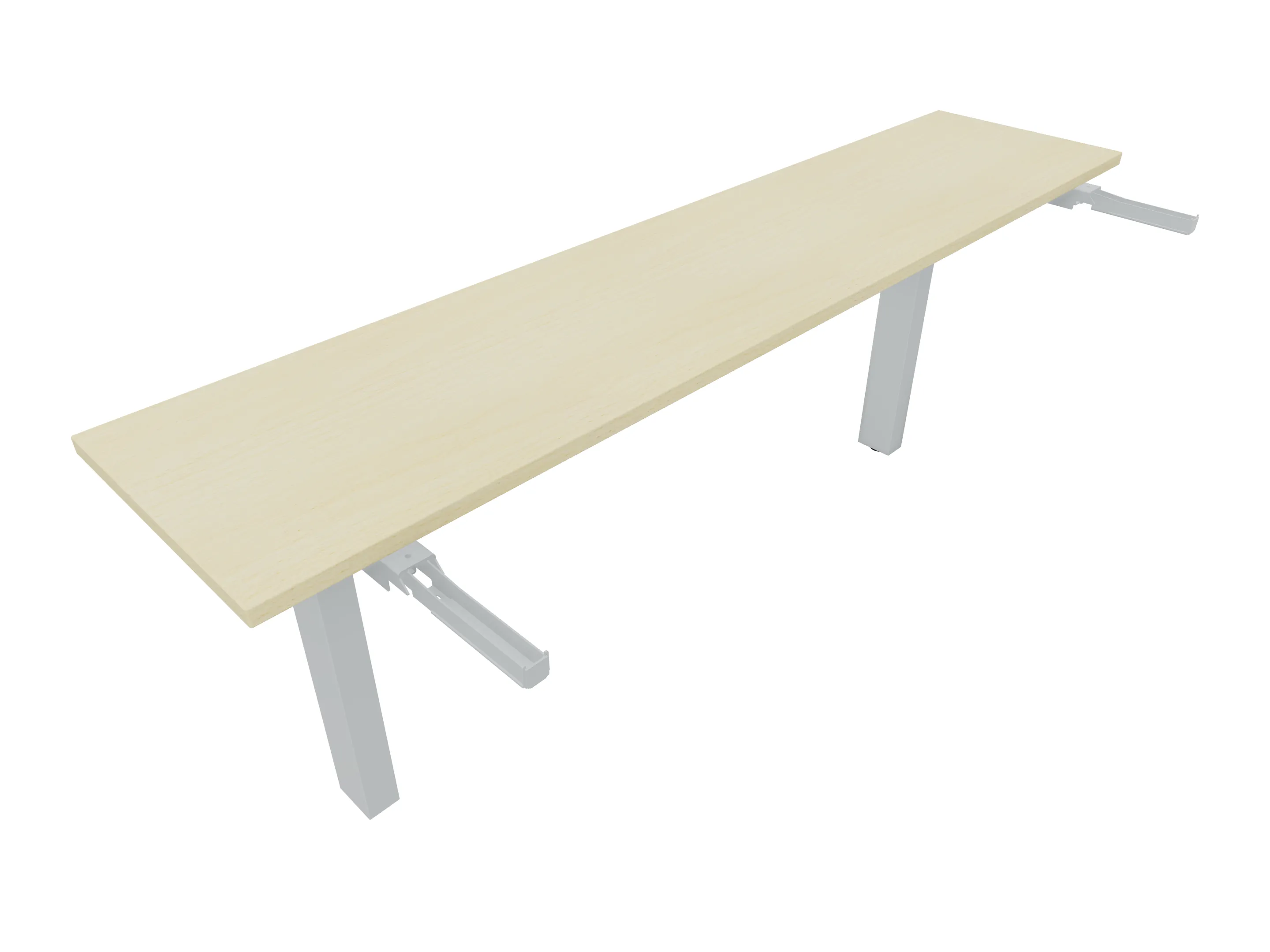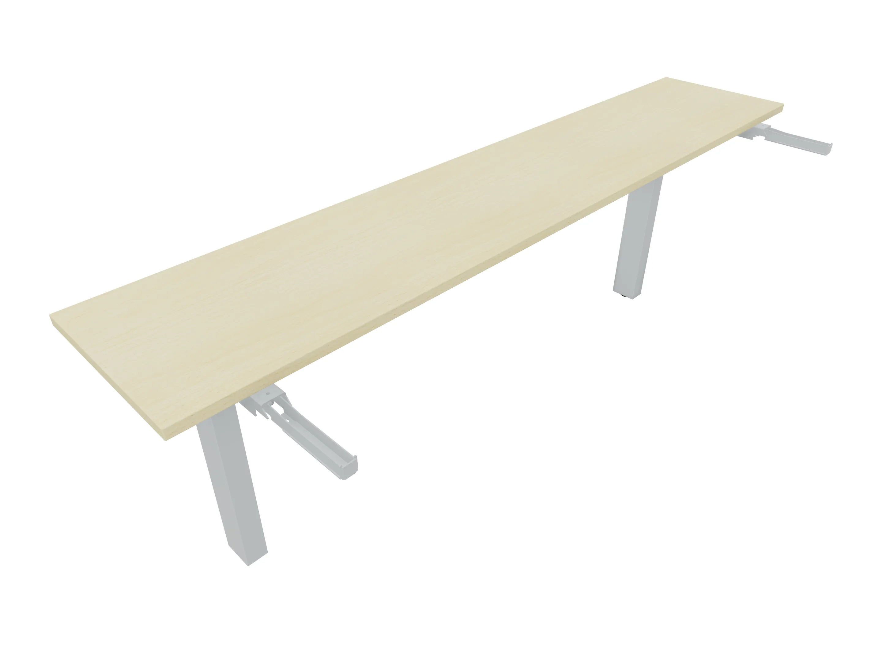 Aanbouwelement voor plaatsing aan zit-sta bureaus, van 2025mm breed en 400mm diep, voor koppeling aan poten. Inclusief twee koppel-steunpoten zonder hoogte verstelling.
